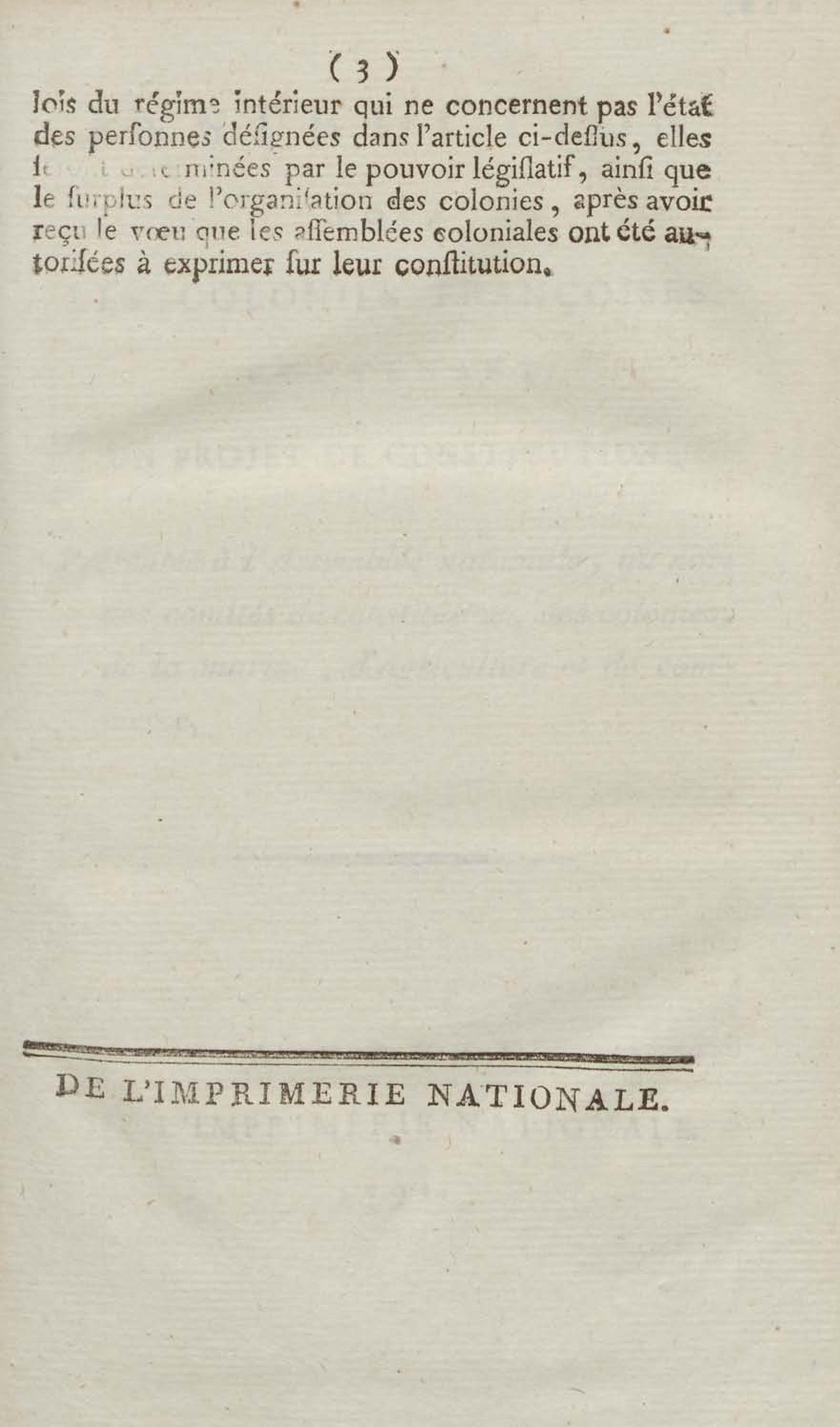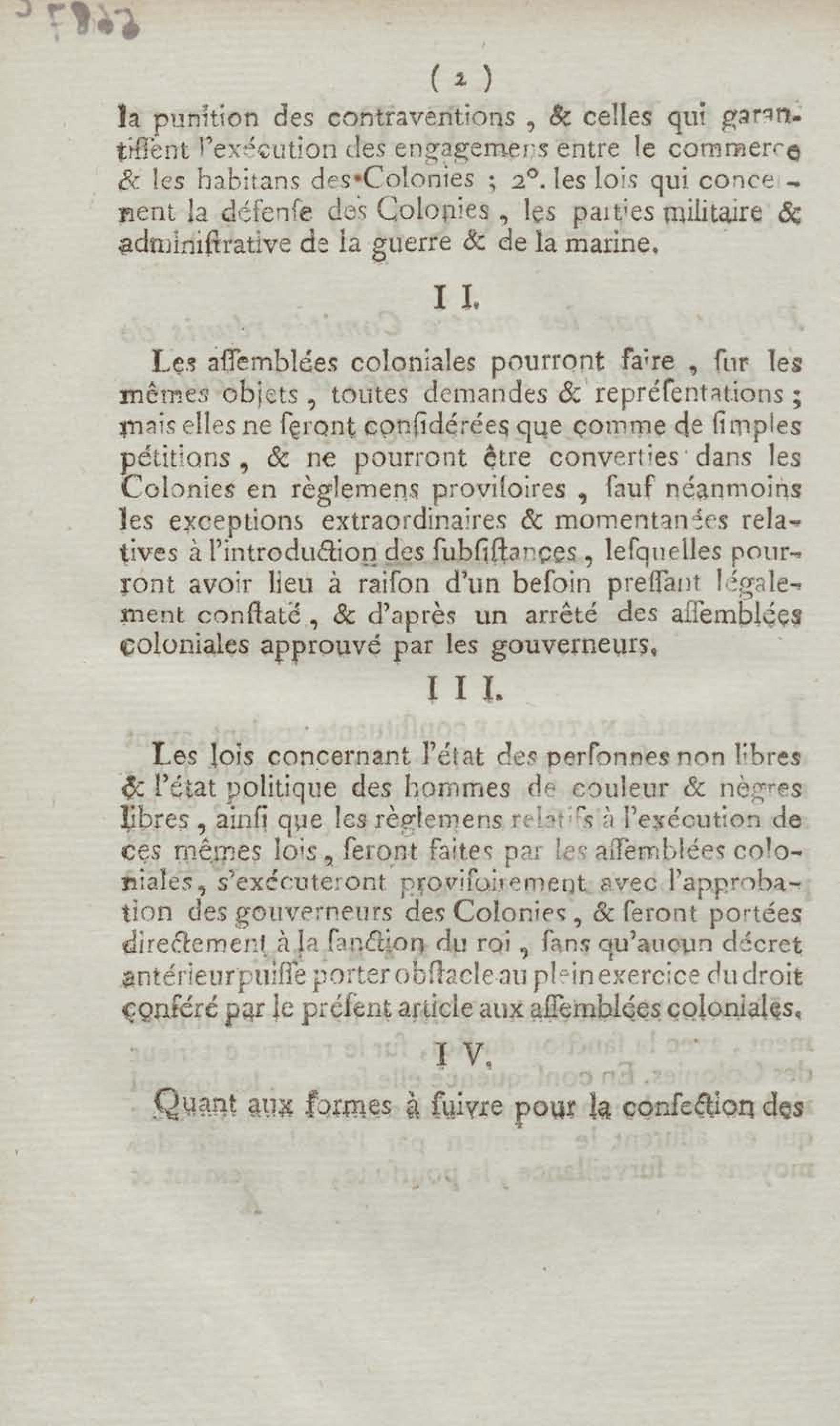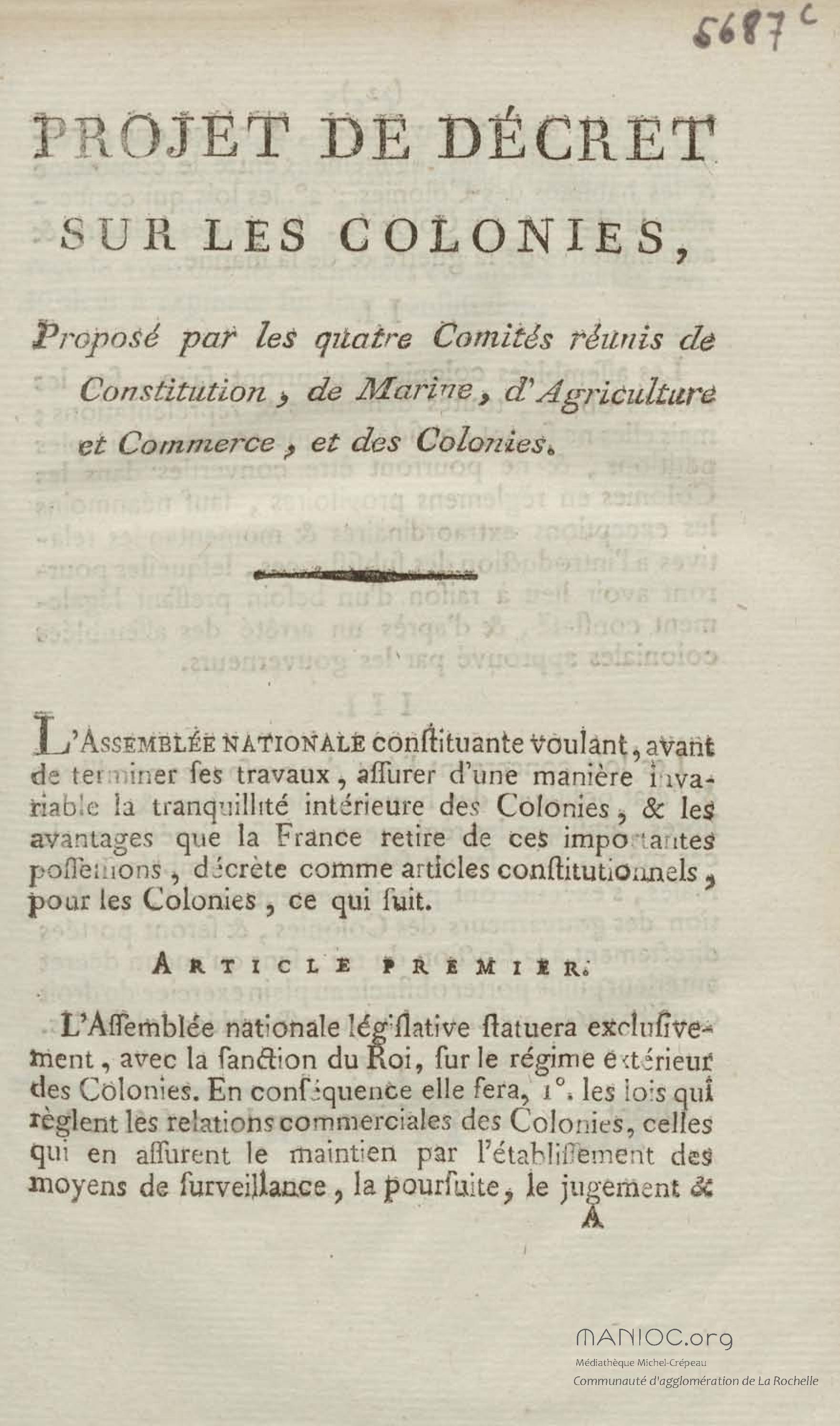 - Projet de décret sur les colonies