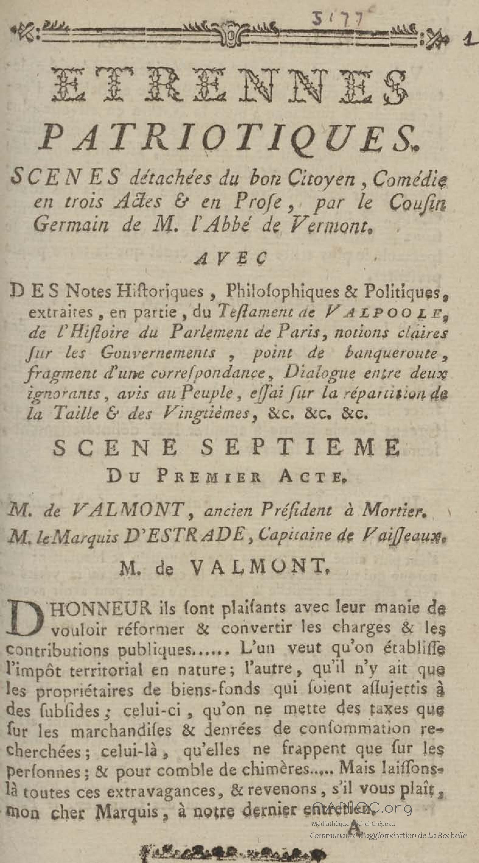 - Etrennes patriotiques : scènes détachées du bon citoyen, comédie en trois actes & en prose