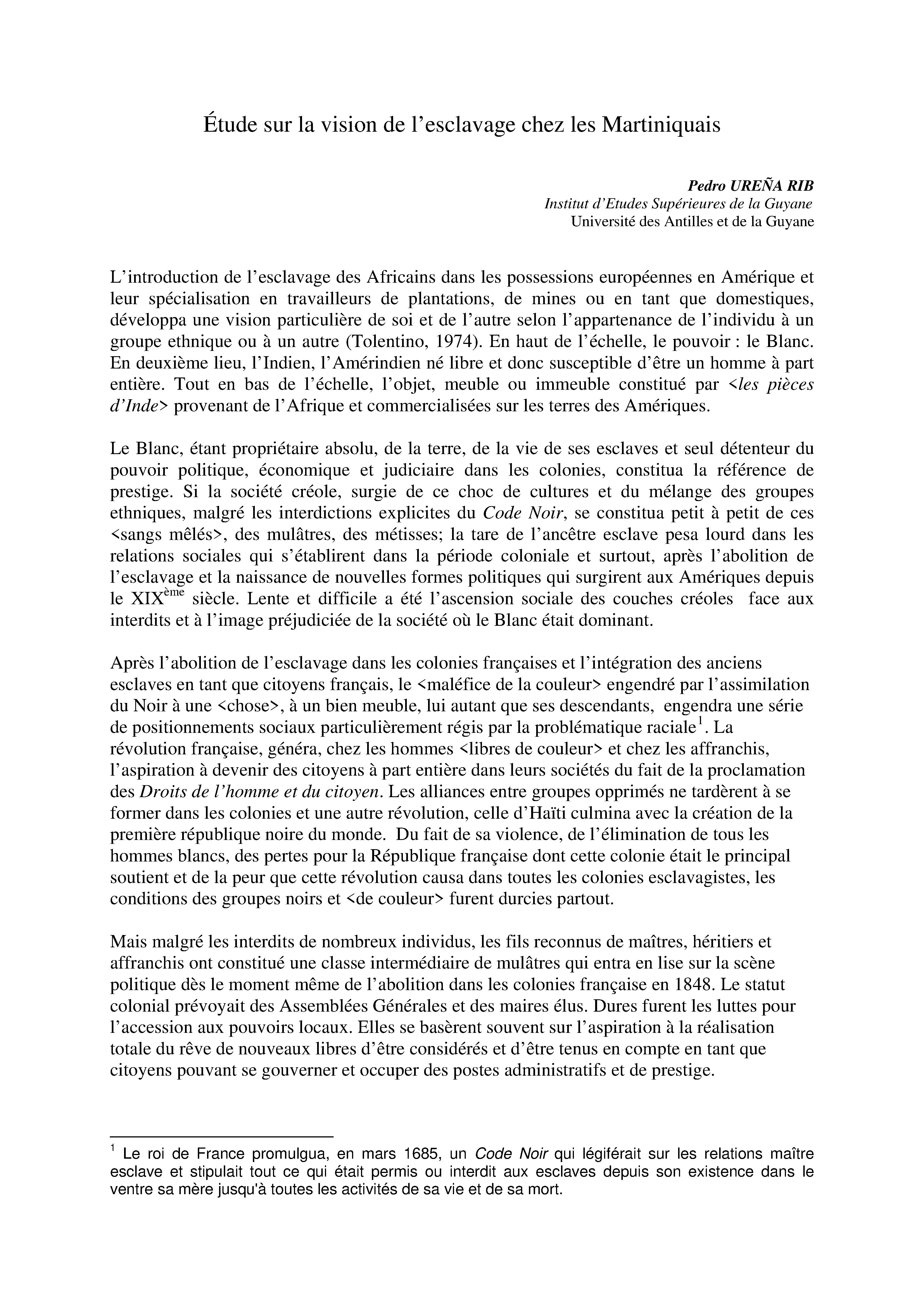 Contenus avec " Est auteur de : Étude sur la vision de l'esclavage chez les Martiniquais "