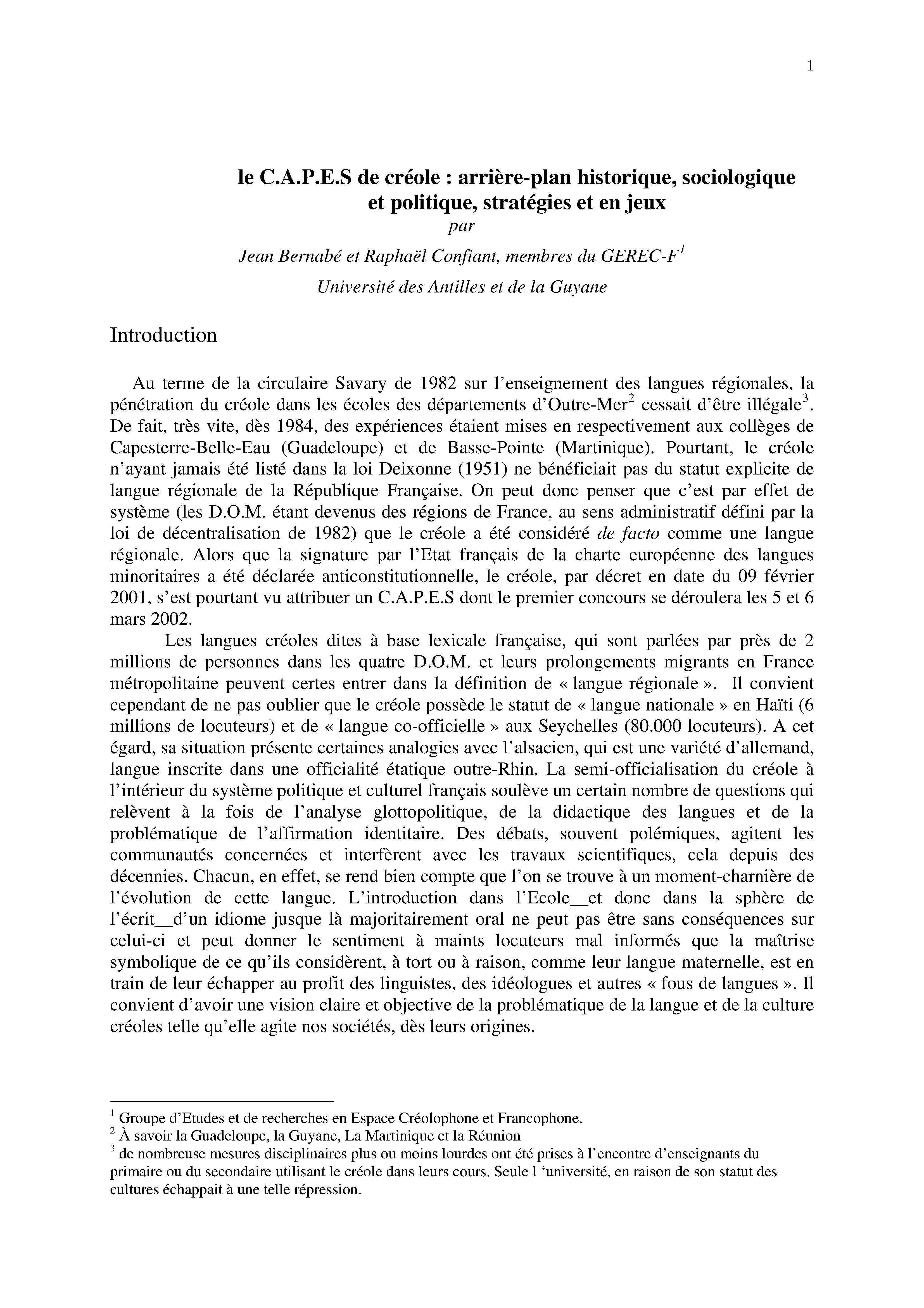 Le C.A.P.E.S de créole : arrière-plan historique, sociologique et politique, stratégies et enjeux