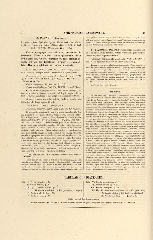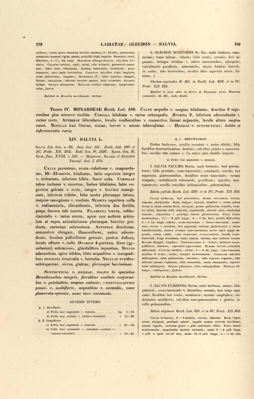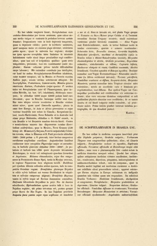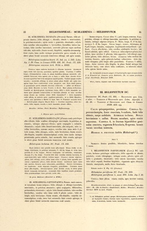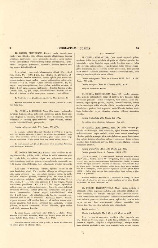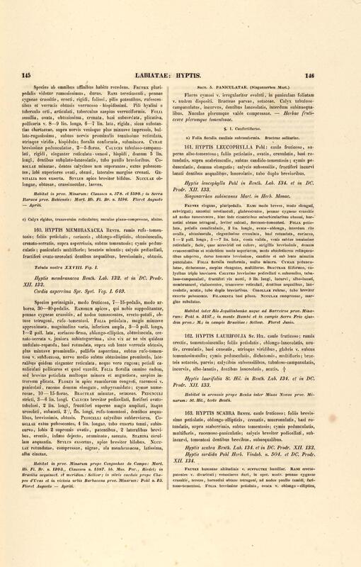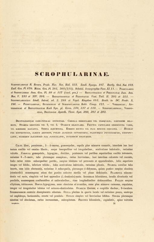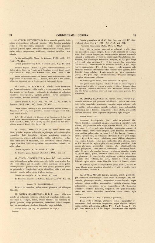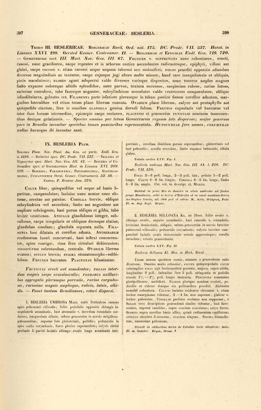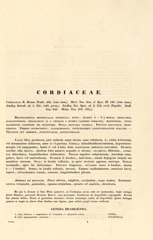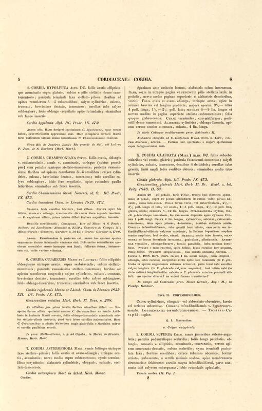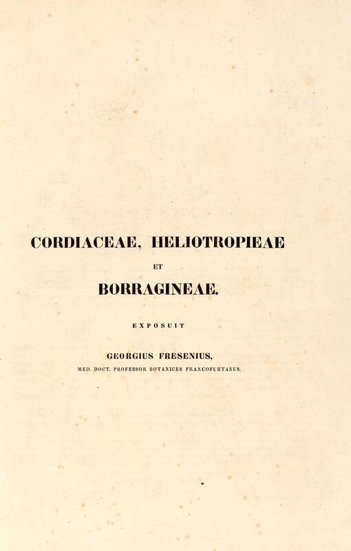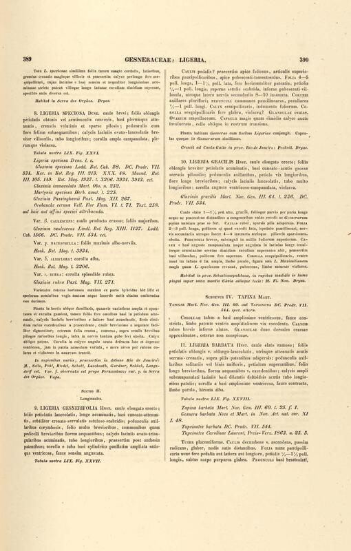 Flora brasiliensis : enumeratio plantarum in Brasilia hactenus detectarum quas suis aliorumque botanicorum studiis descriptas et methodo naturali digestas partim icone illustratas. Volumen VIII, Pars I, Cordiaceae, Heliotropieae, Borragineae, labiatae, Scrophularinae, Gesneraceae