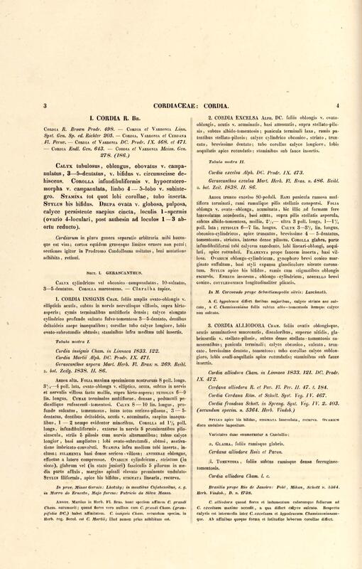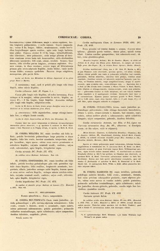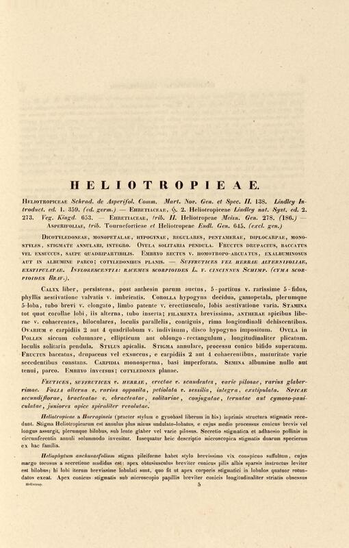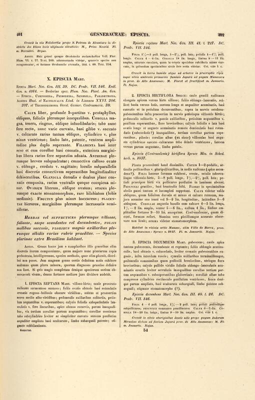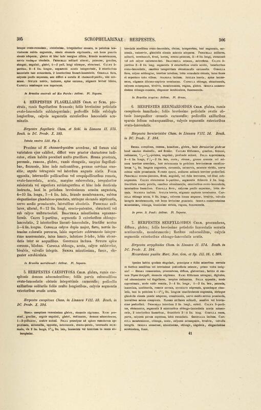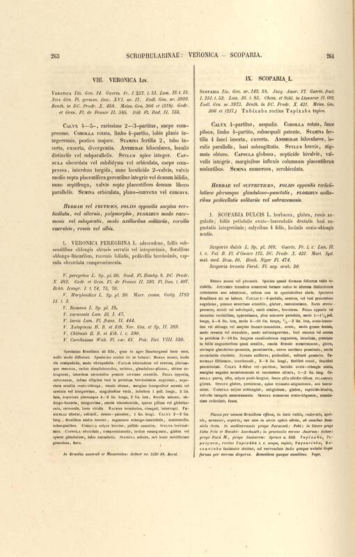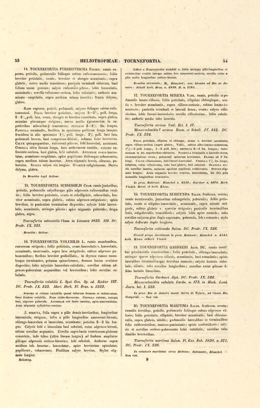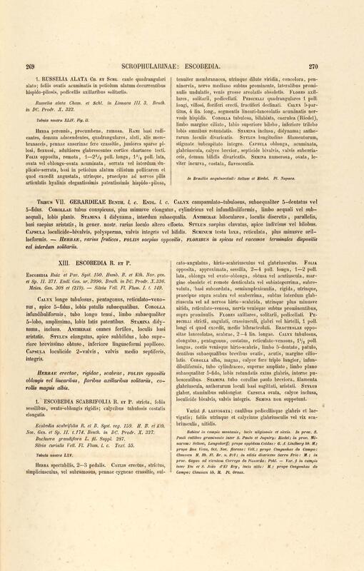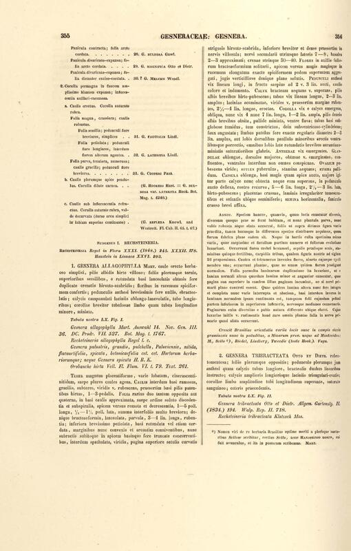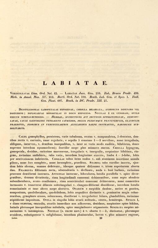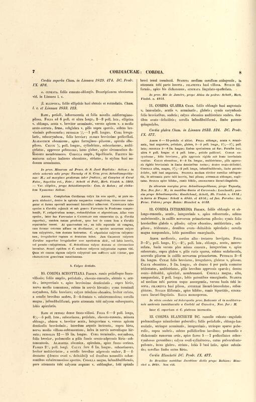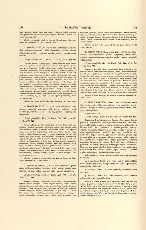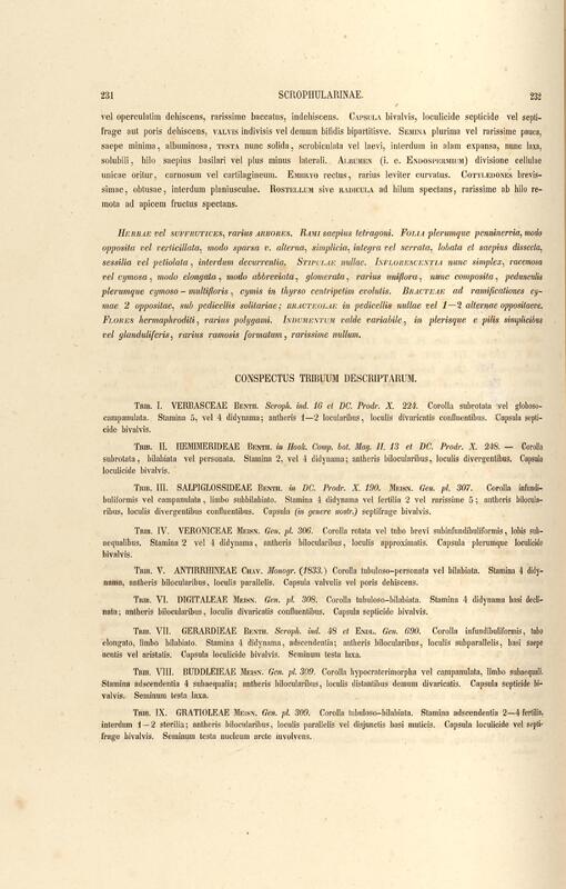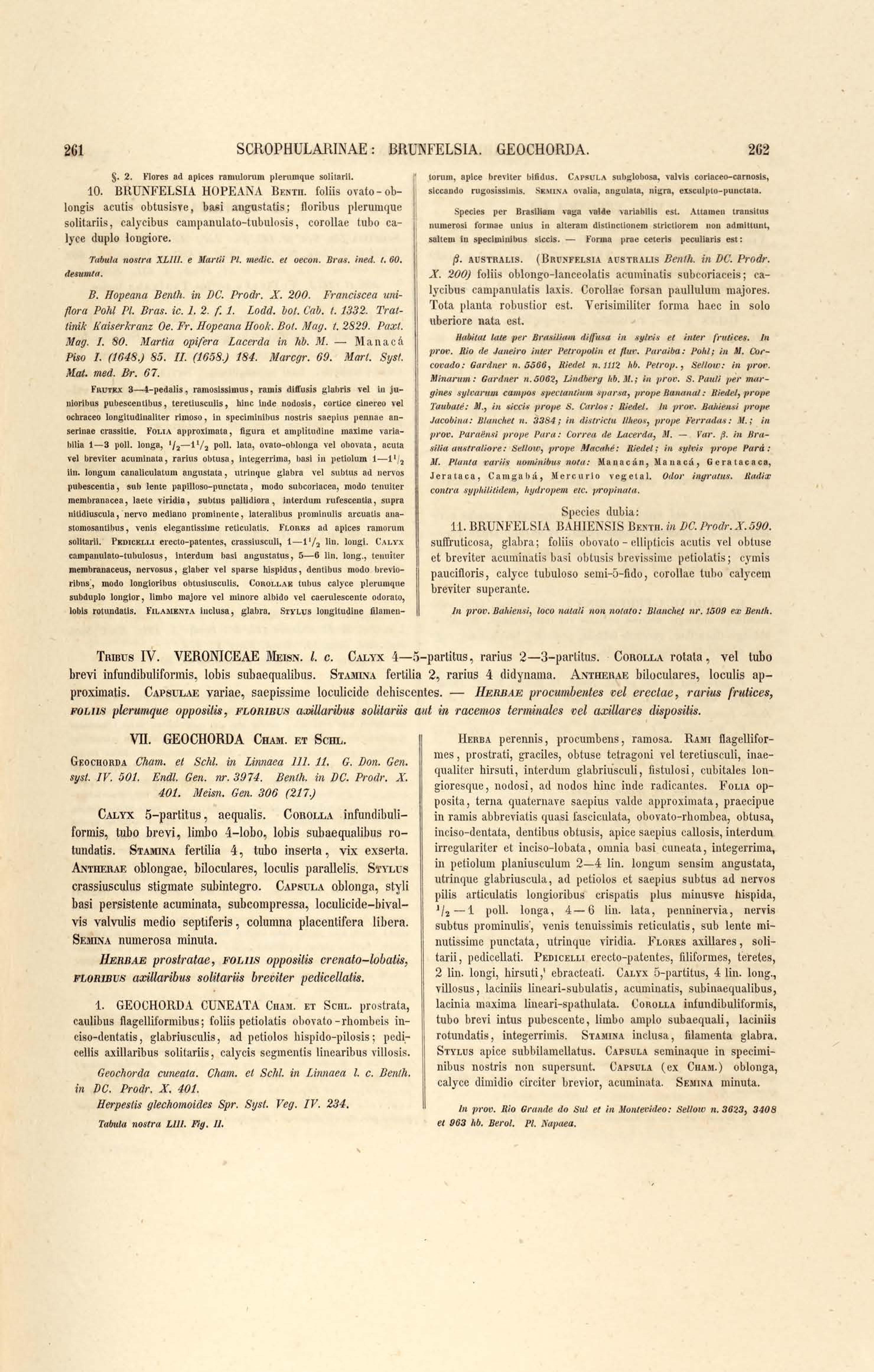 Flora brasiliensis : enumeratio plantarum in Brasilia hactenus detectarum quas suis aliorumque botanicorum studiis descriptas et methodo naturali digestas partim icone illustratas. Volumen VIII, Pars I, Cordiaceae, Heliotropieae, Borragineae, labiatae, Scrophularinae, Gesneraceae