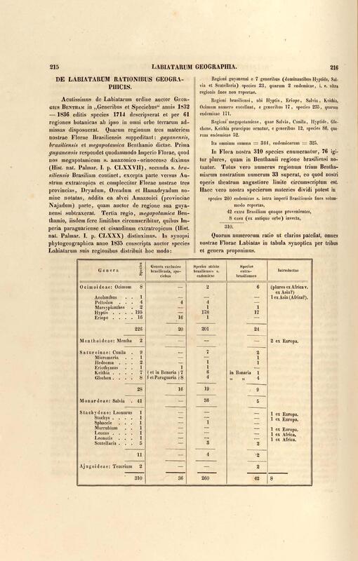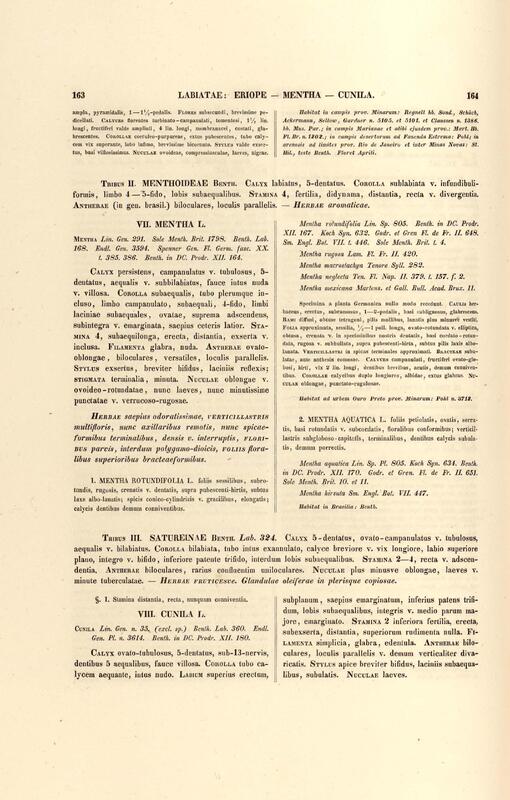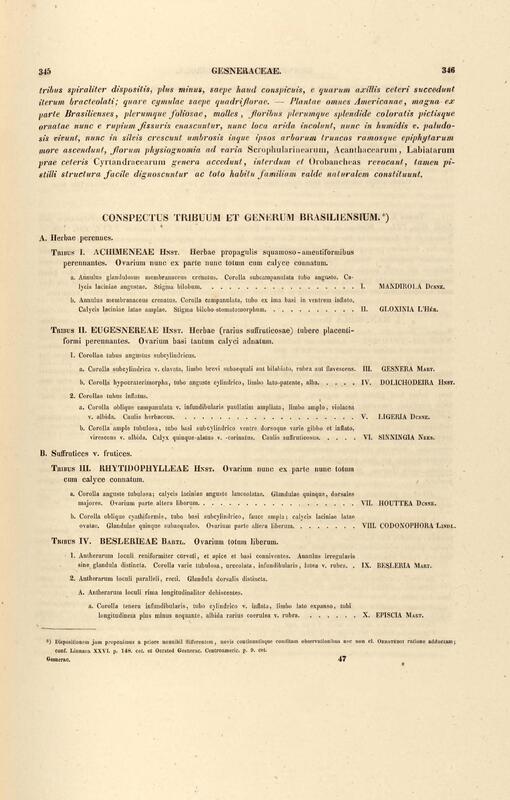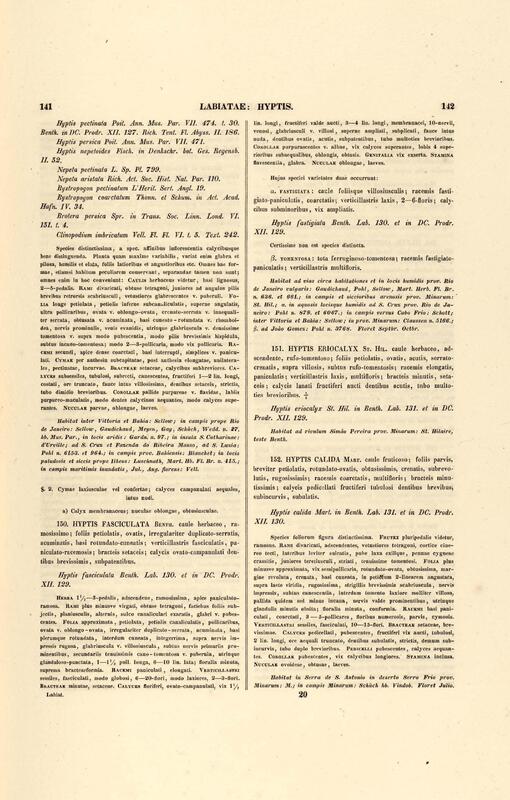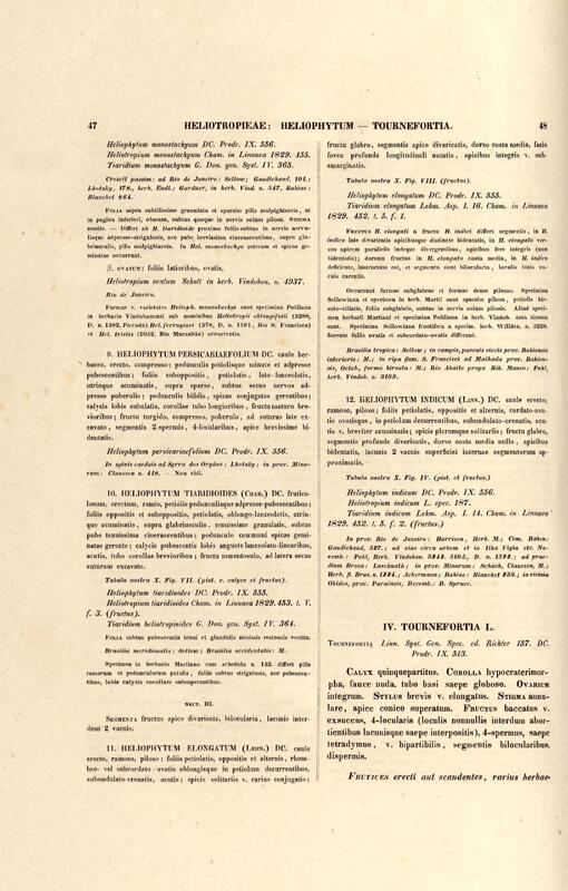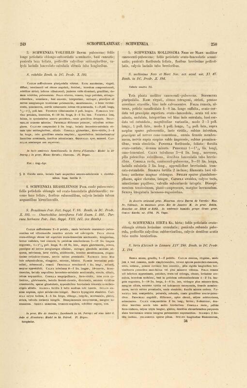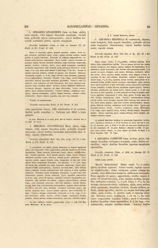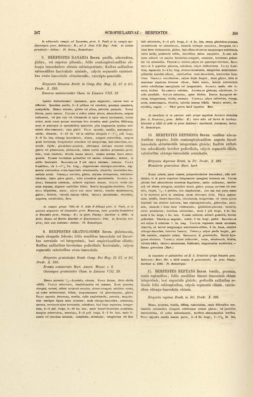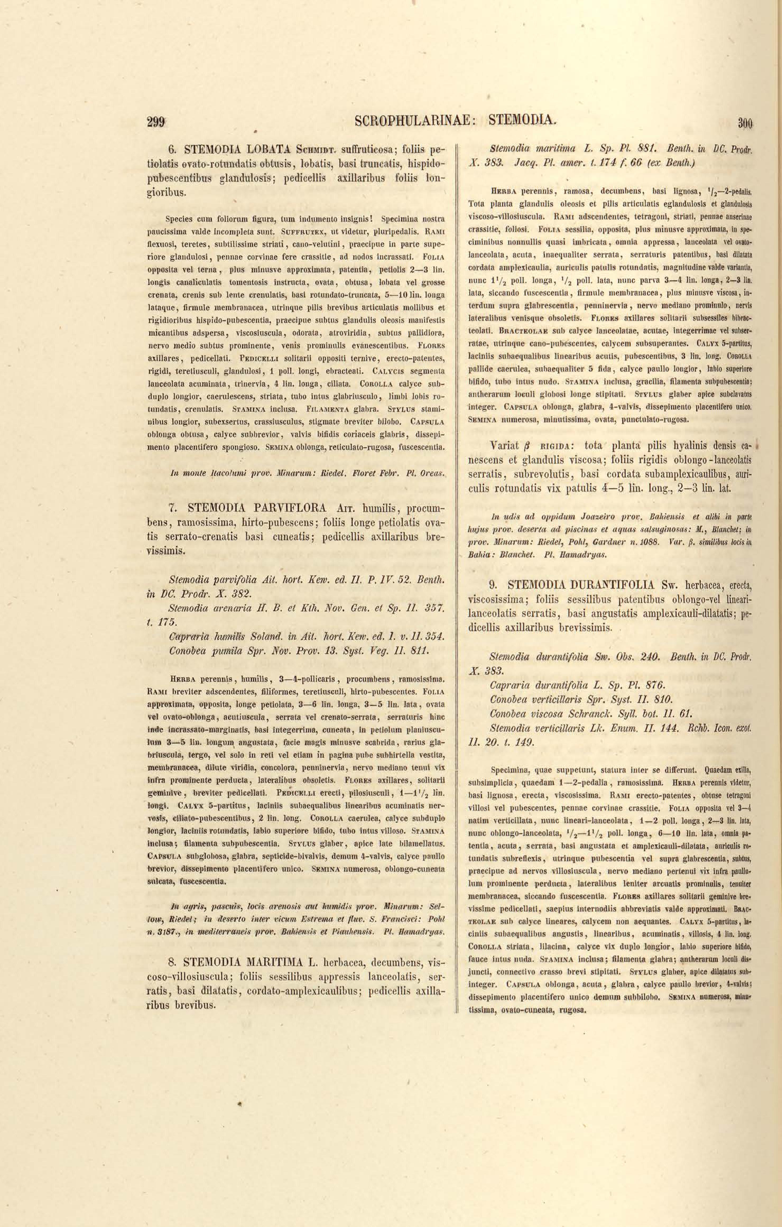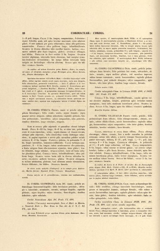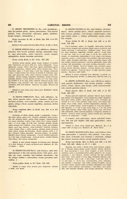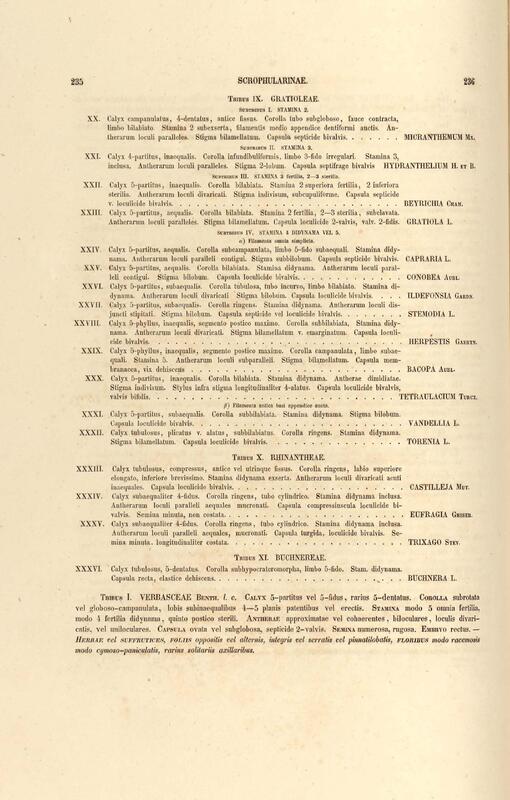Flora brasiliensis : enumeratio plantarum in Brasilia hactenus detectarum quas suis aliorumque botanicorum studiis descriptas et methodo naturali digestas partim icone illustratas. Volumen VIII, Pars I, Cordiaceae, Heliotropieae, Borragineae, labiatae, Scrophularinae, Gesneraceae