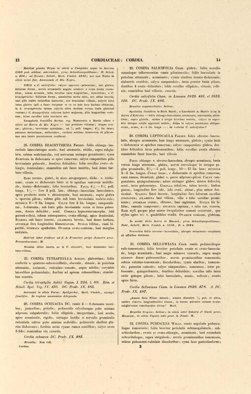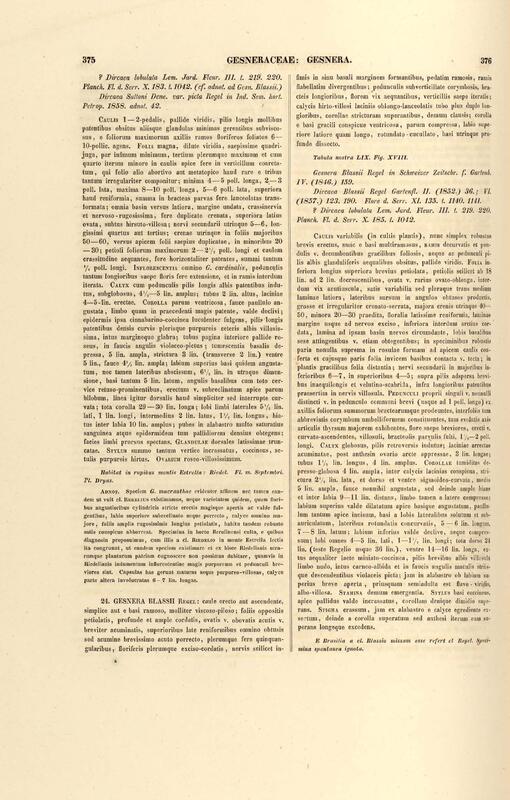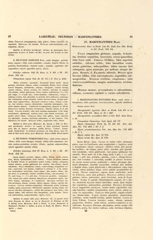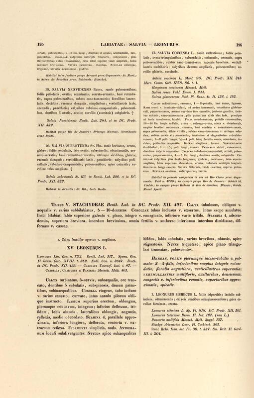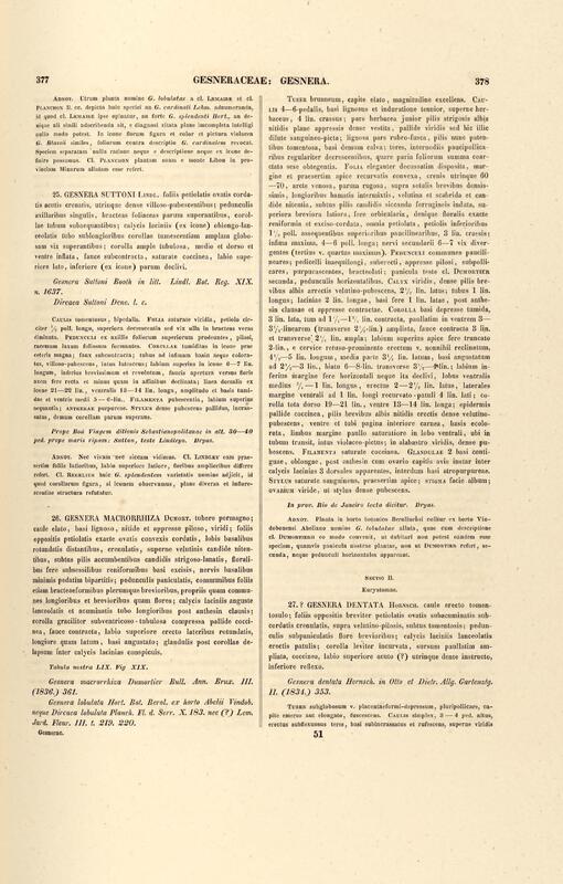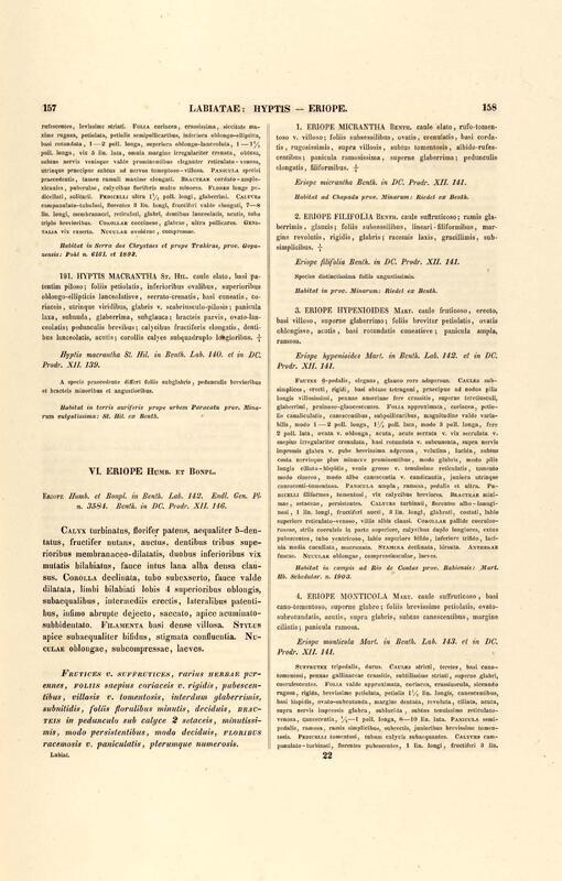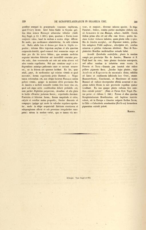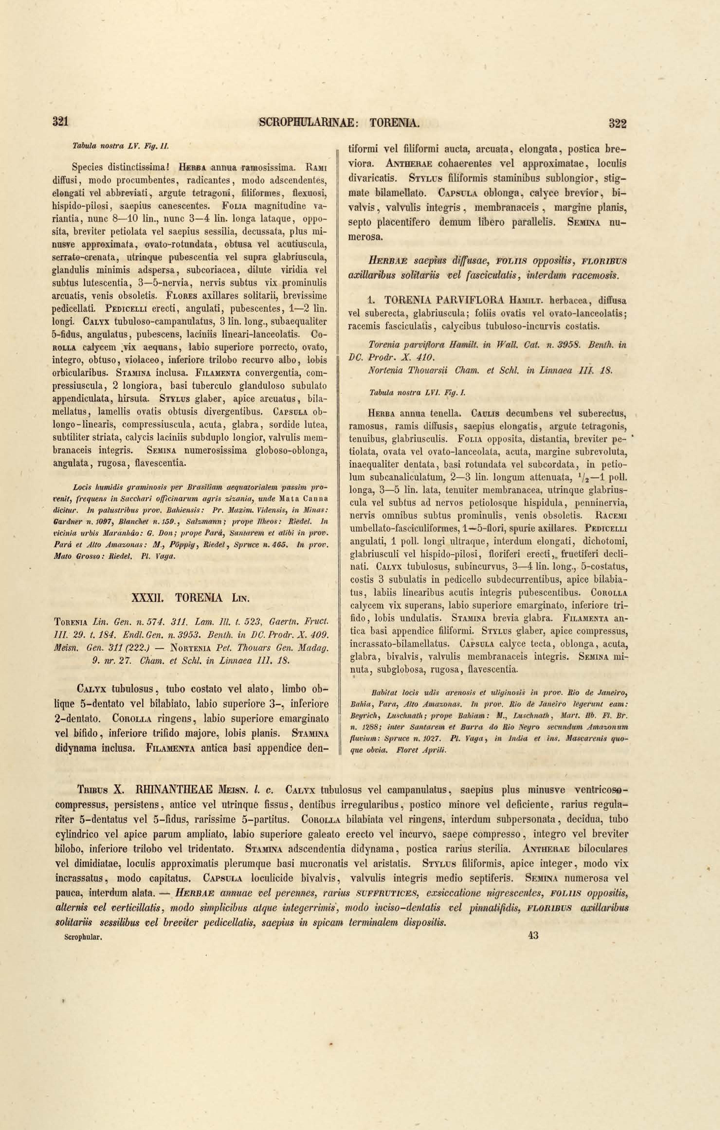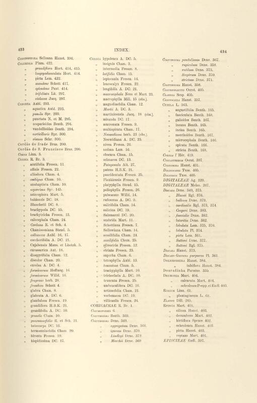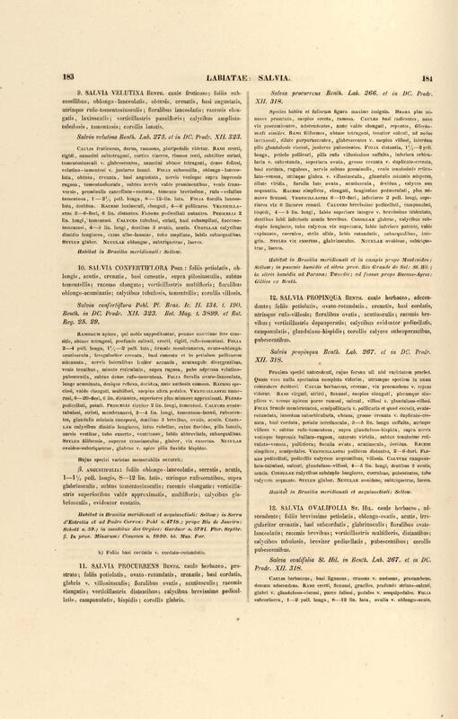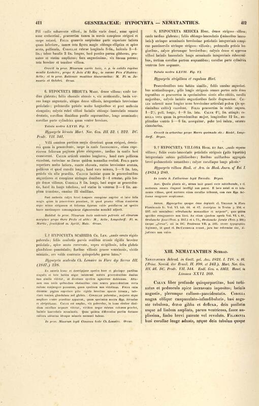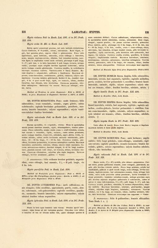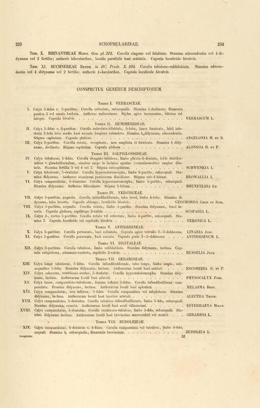 Flora brasiliensis : enumeratio plantarum in Brasilia hactenus detectarum quas suis aliorumque botanicorum studiis descriptas et methodo naturali digestas partim icone illustratas. Volumen VIII, Pars I, Cordiaceae, Heliotropieae, Borragineae, labiatae, Scrophularinae, Gesneraceae