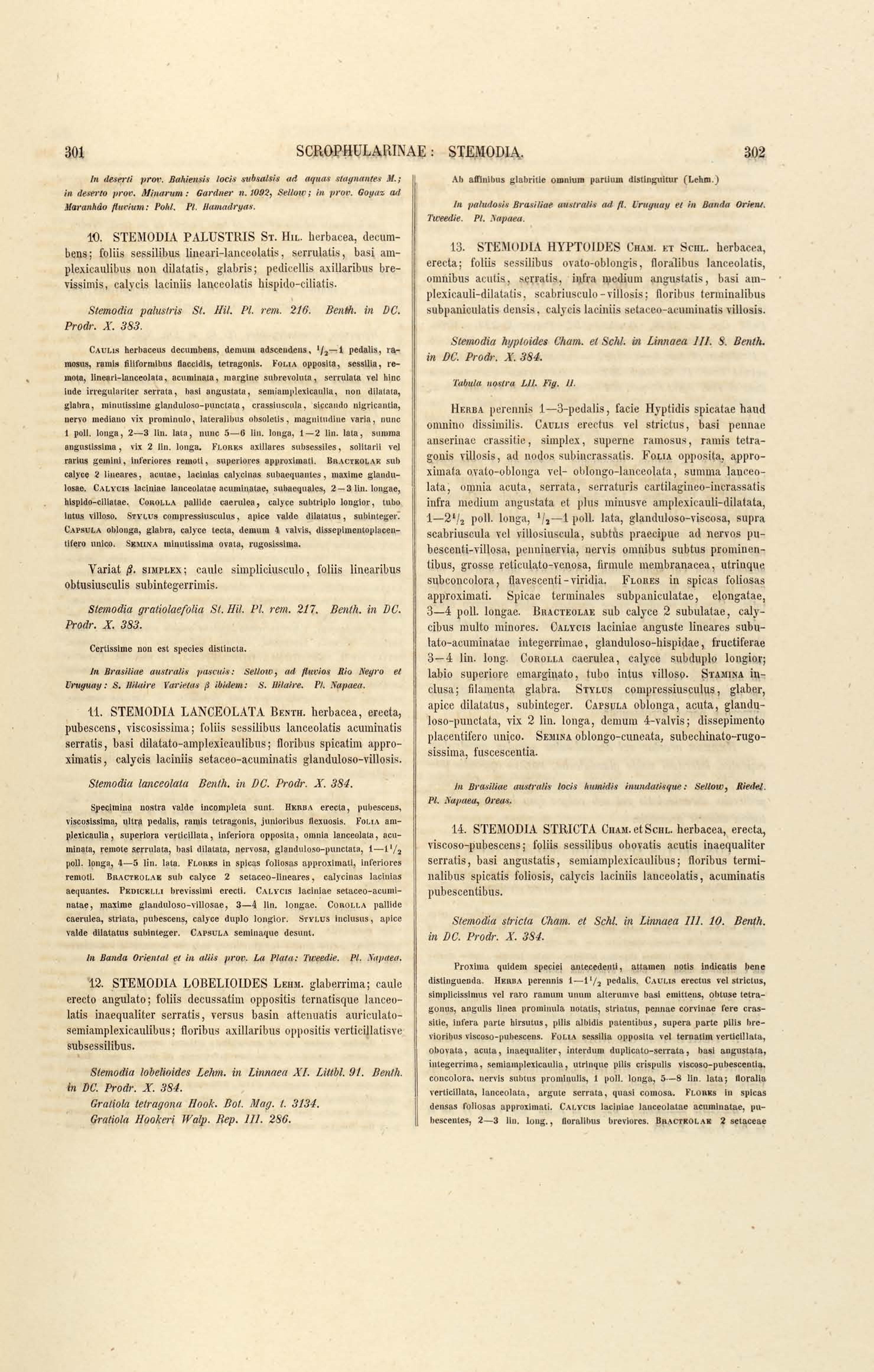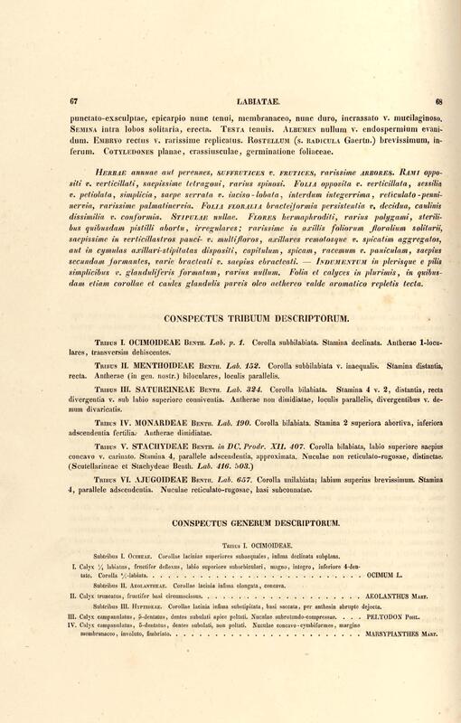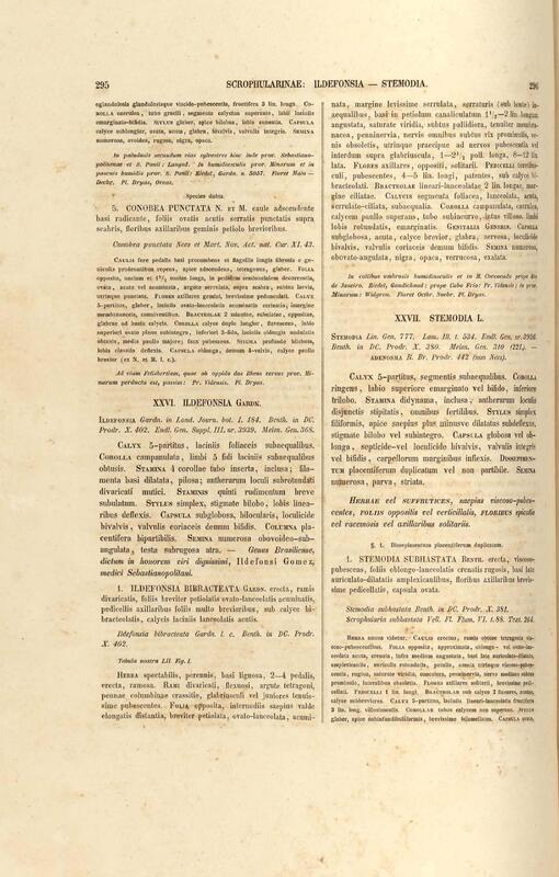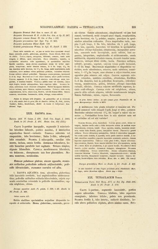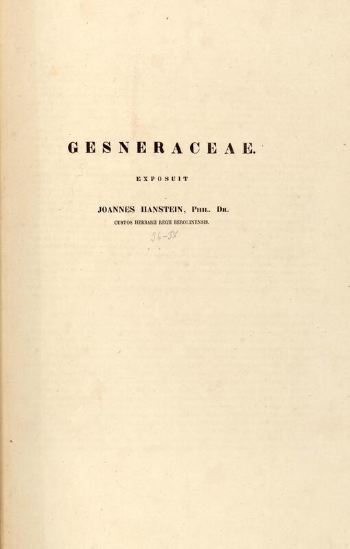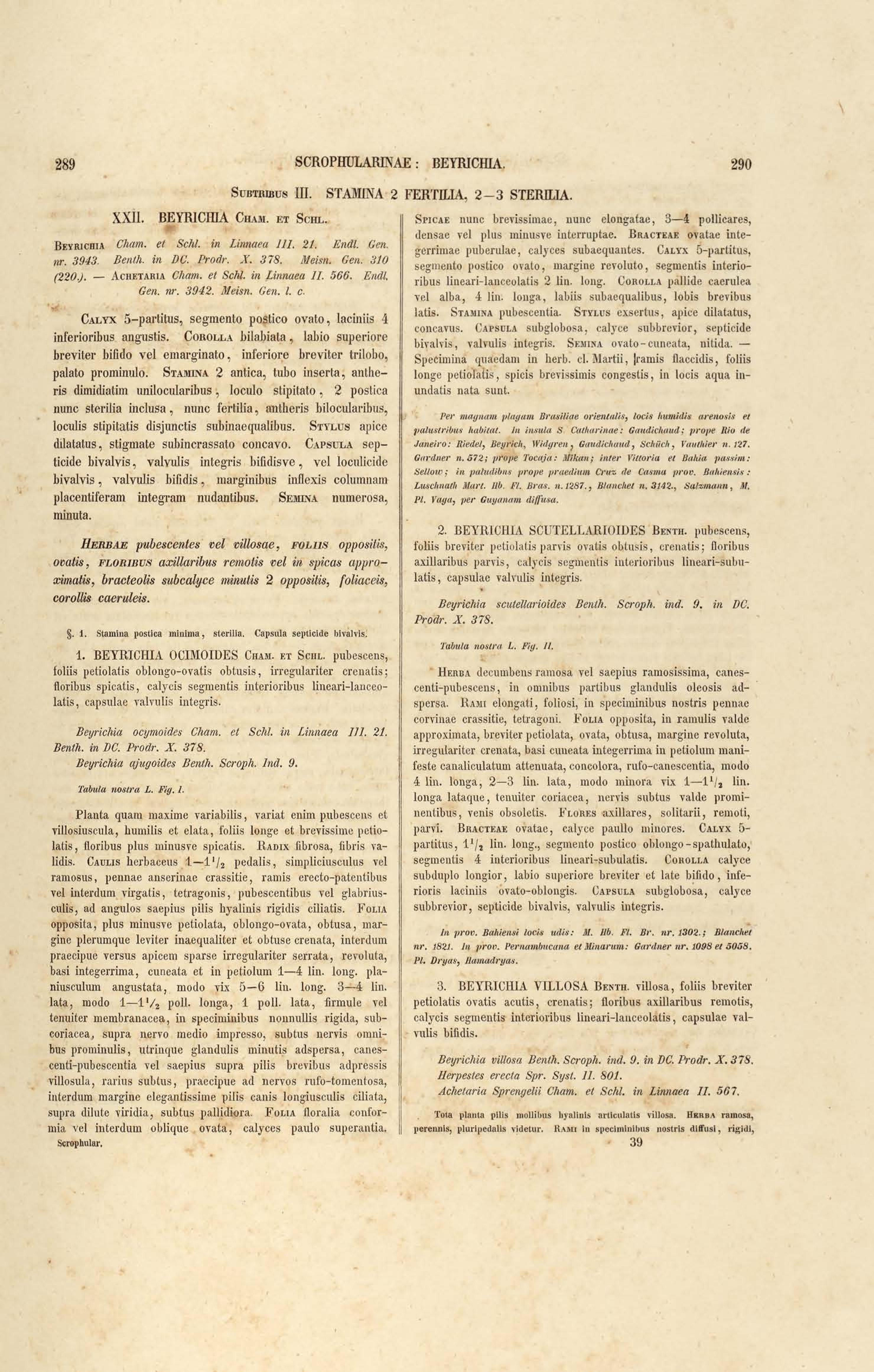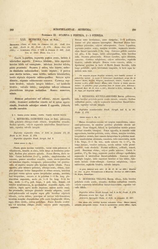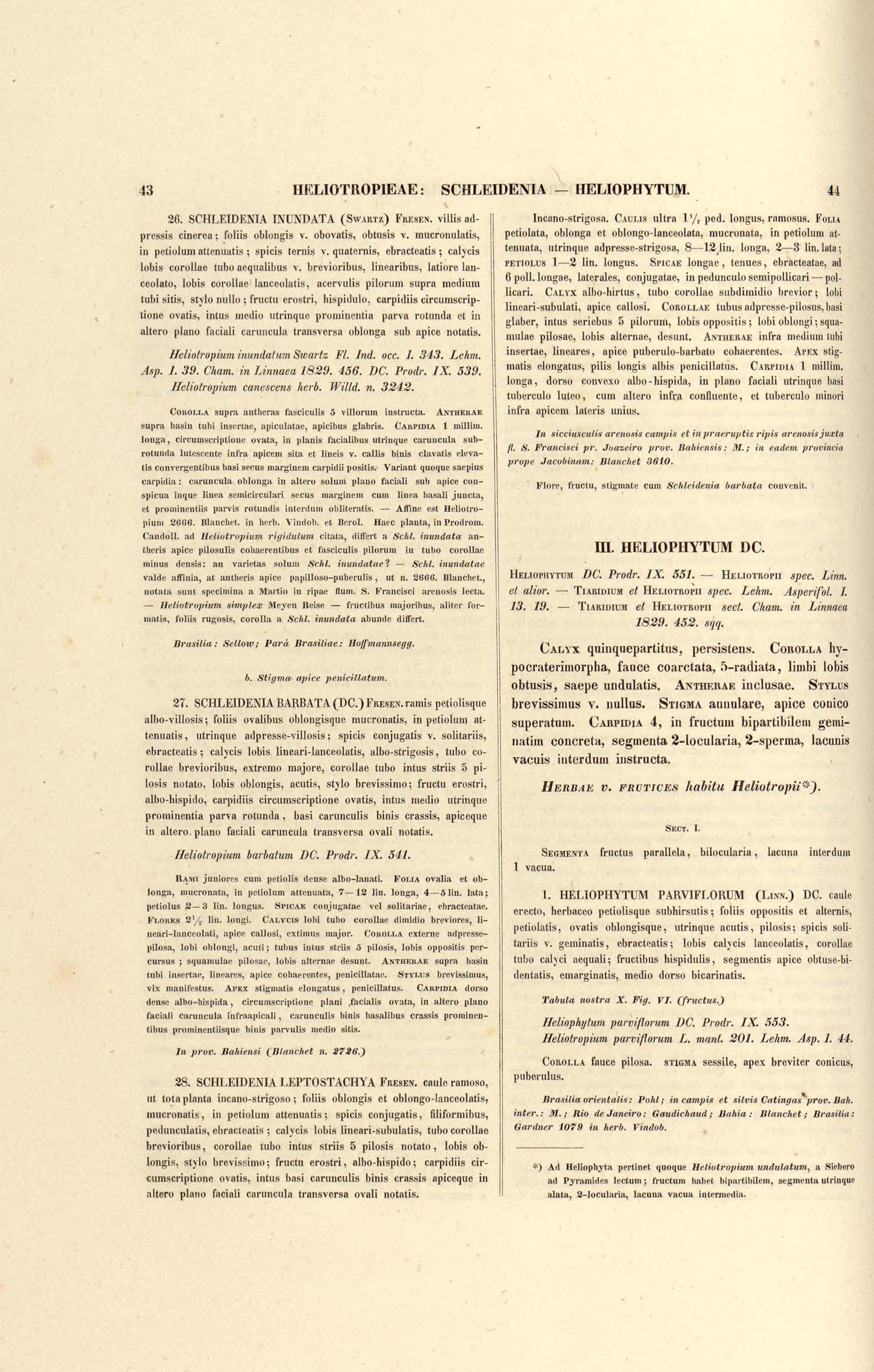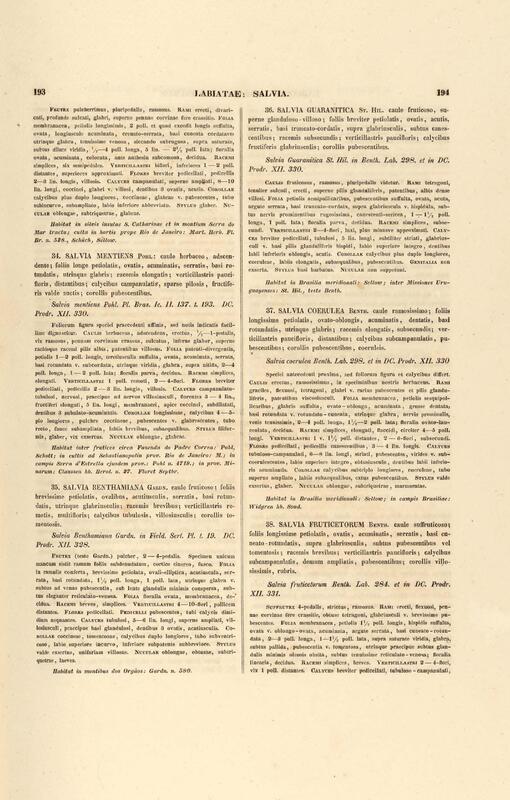 Flora brasiliensis : enumeratio plantarum in Brasilia hactenus detectarum quas suis aliorumque botanicorum studiis descriptas et methodo naturali digestas partim icone illustratas. Volumen VIII, Pars I, Cordiaceae, Heliotropieae, Borragineae, labiatae, Scrophularinae, Gesneraceae
