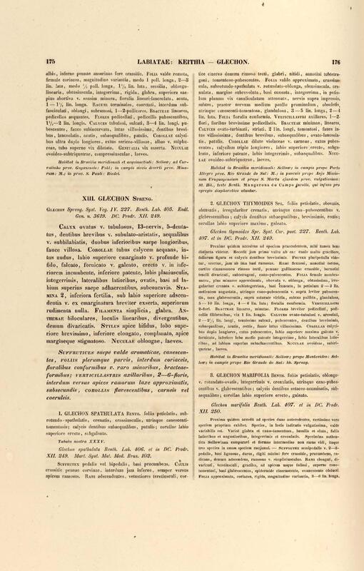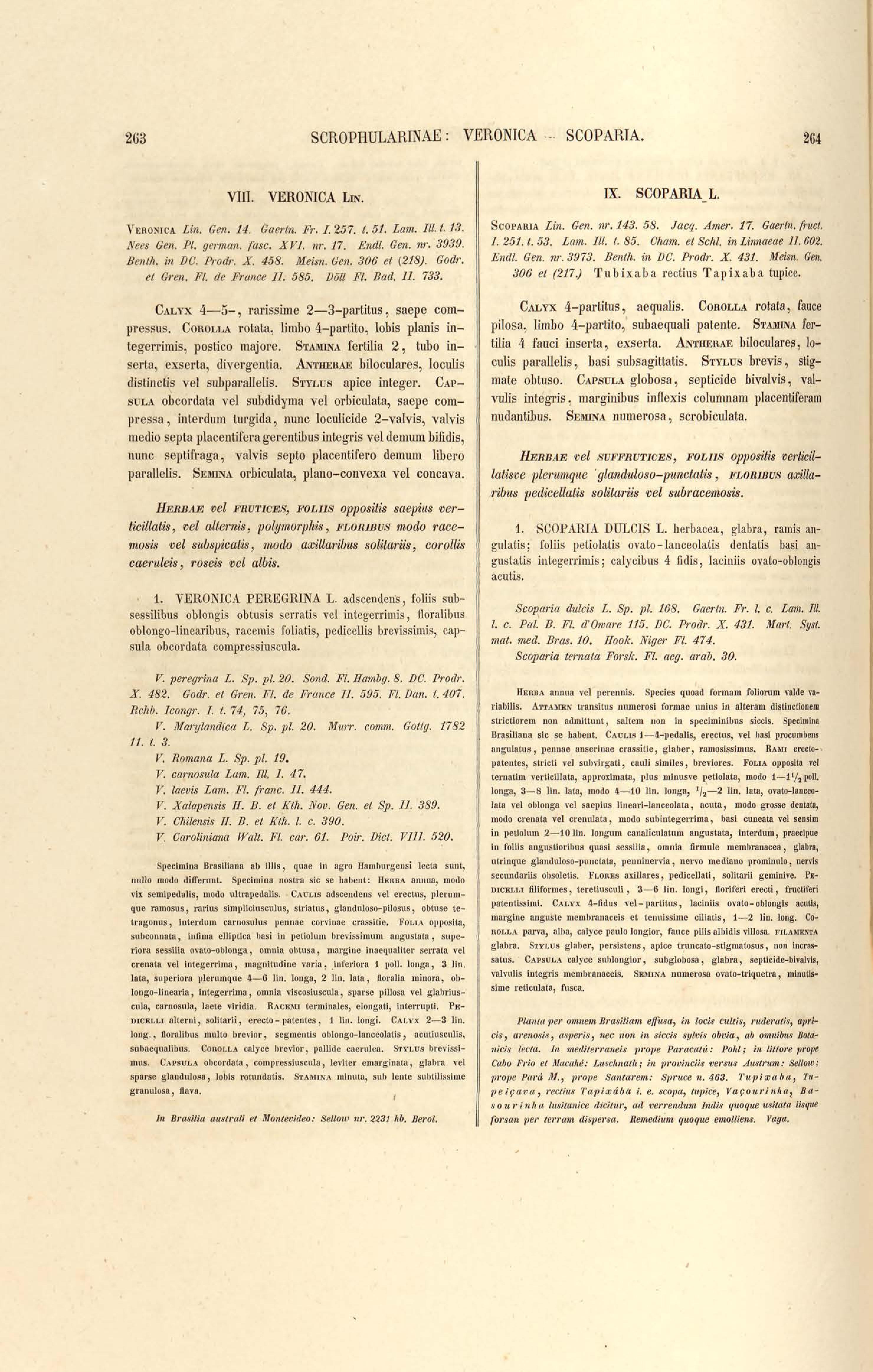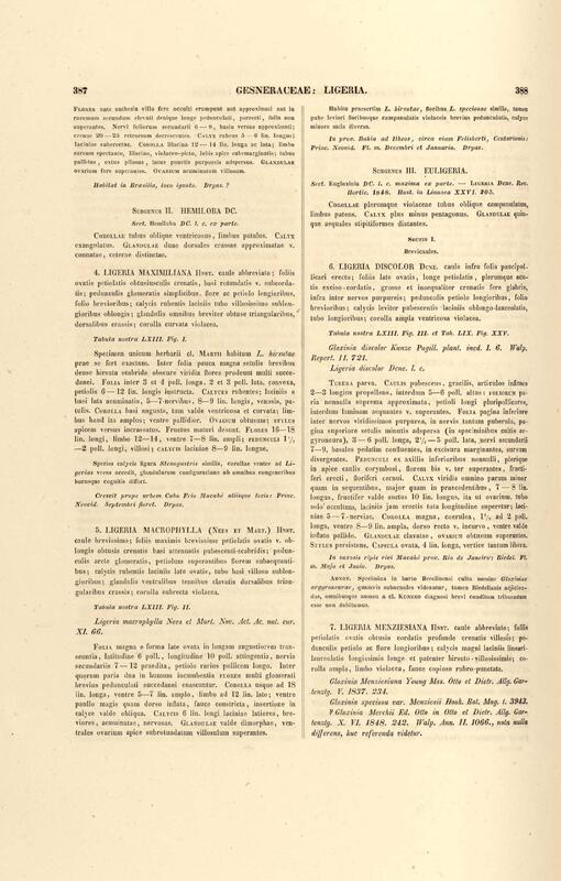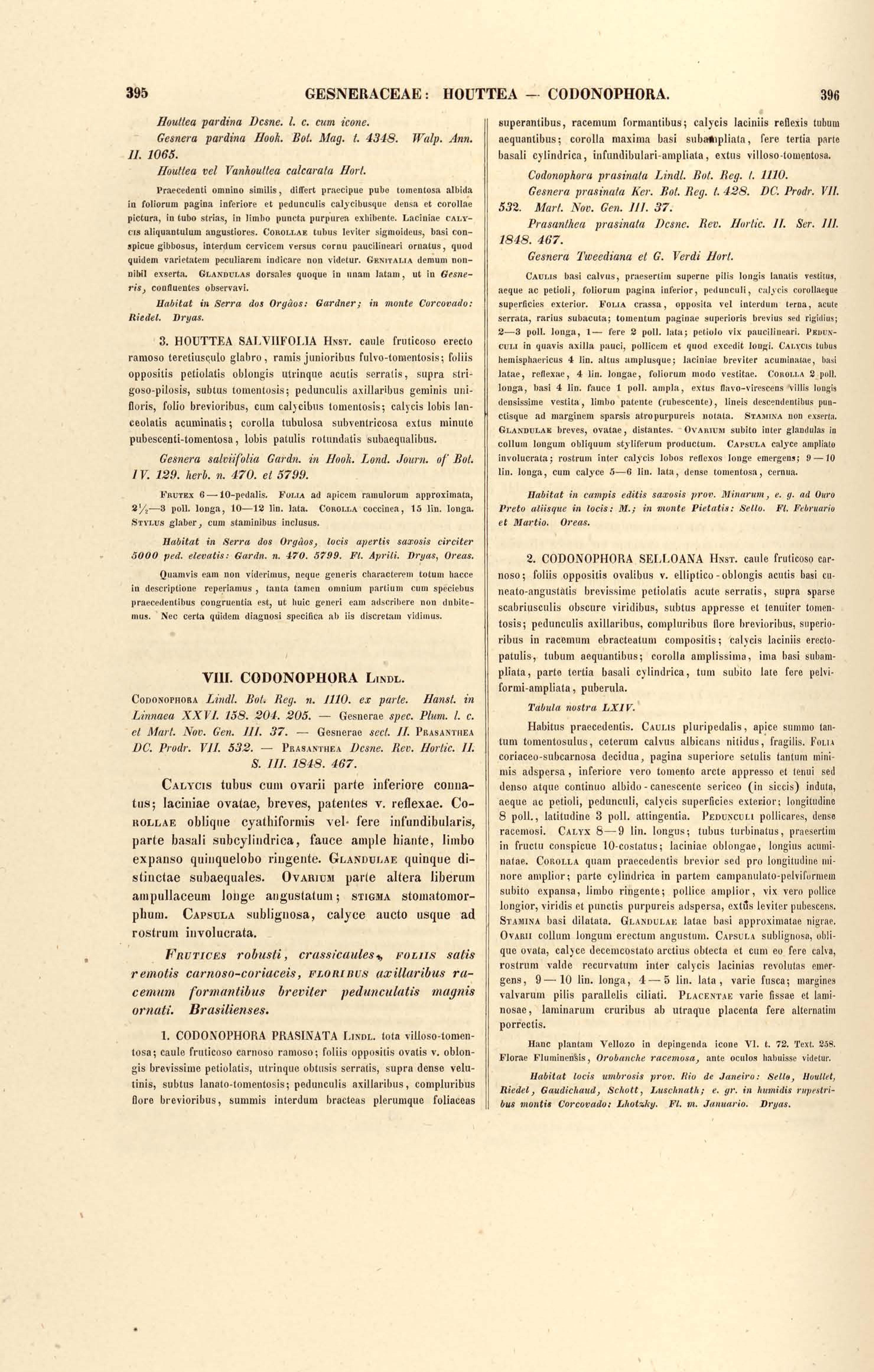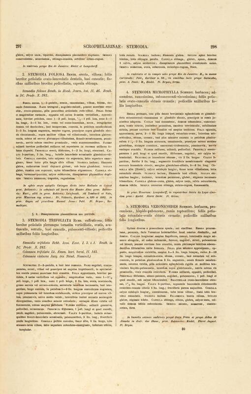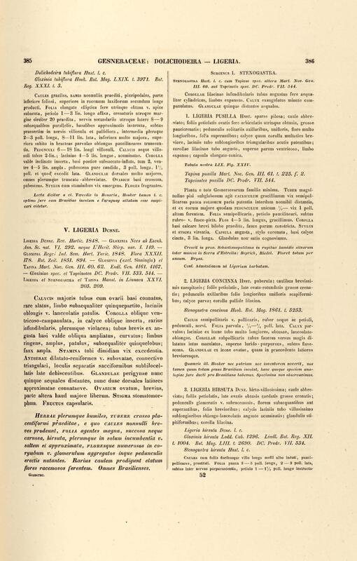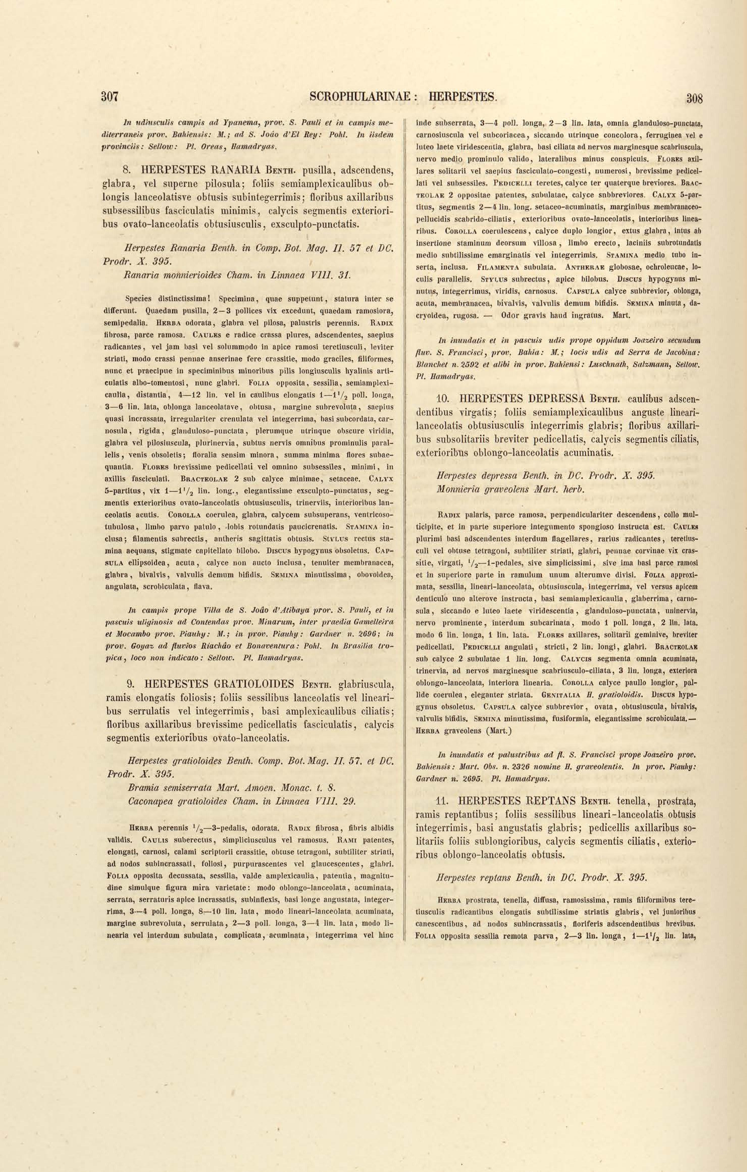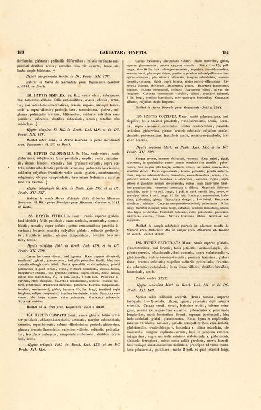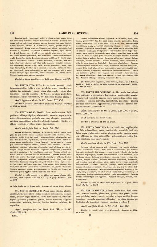 Flora brasiliensis : enumeratio plantarum in Brasilia hactenus detectarum quas suis aliorumque botanicorum studiis descriptas et methodo naturali digestas partim icone illustratas. Volumen VIII, Pars I, Cordiaceae, Heliotropieae, Borragineae, labiatae, Scrophularinae, Gesneraceae
