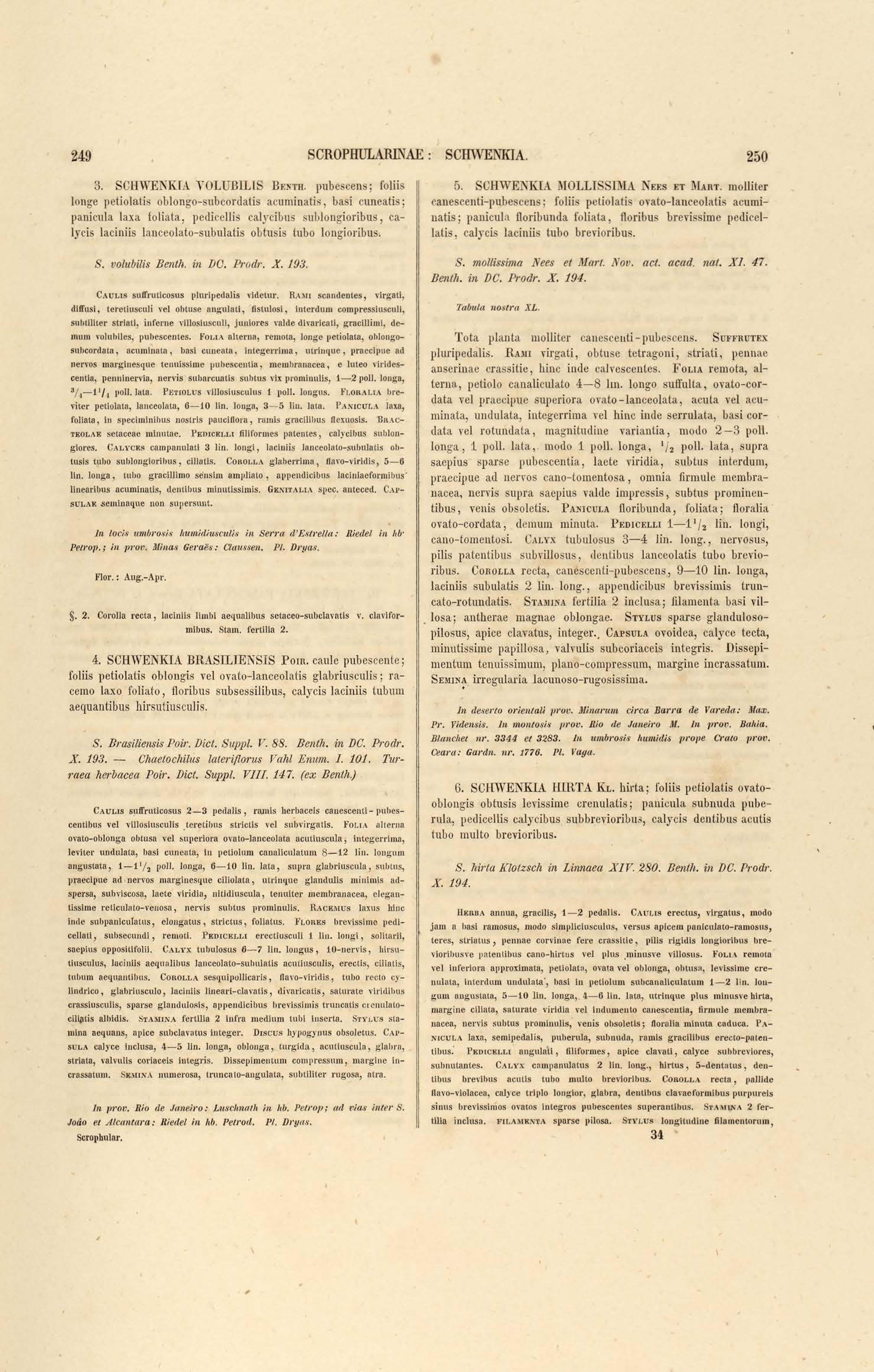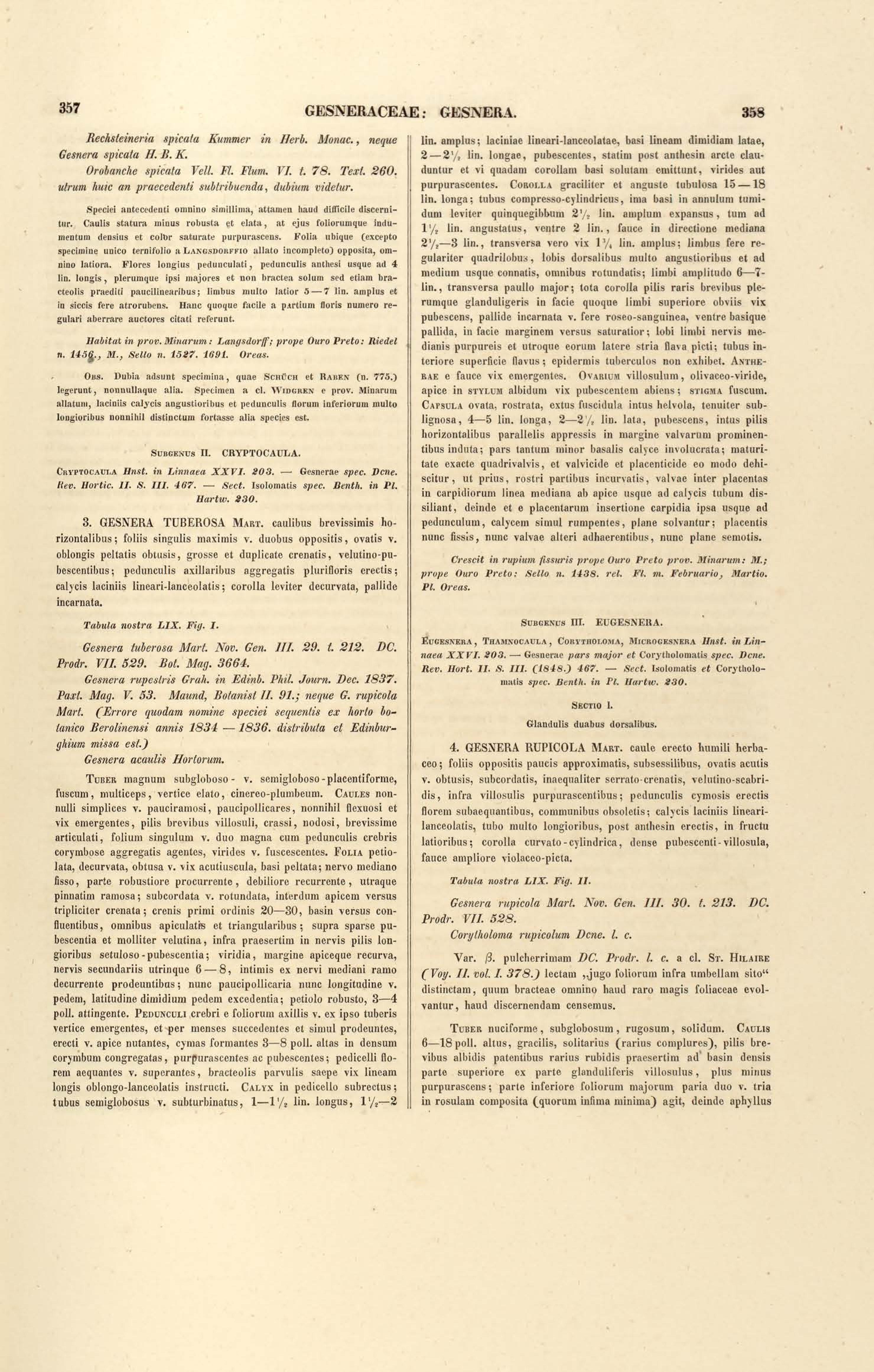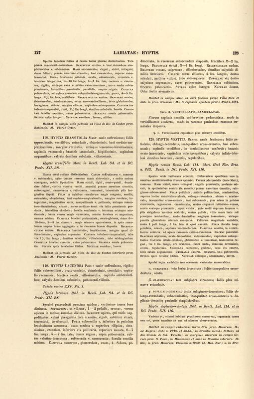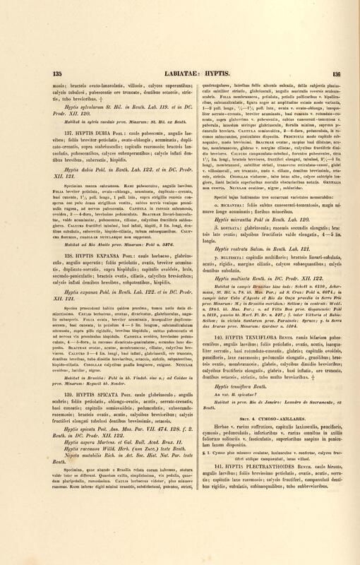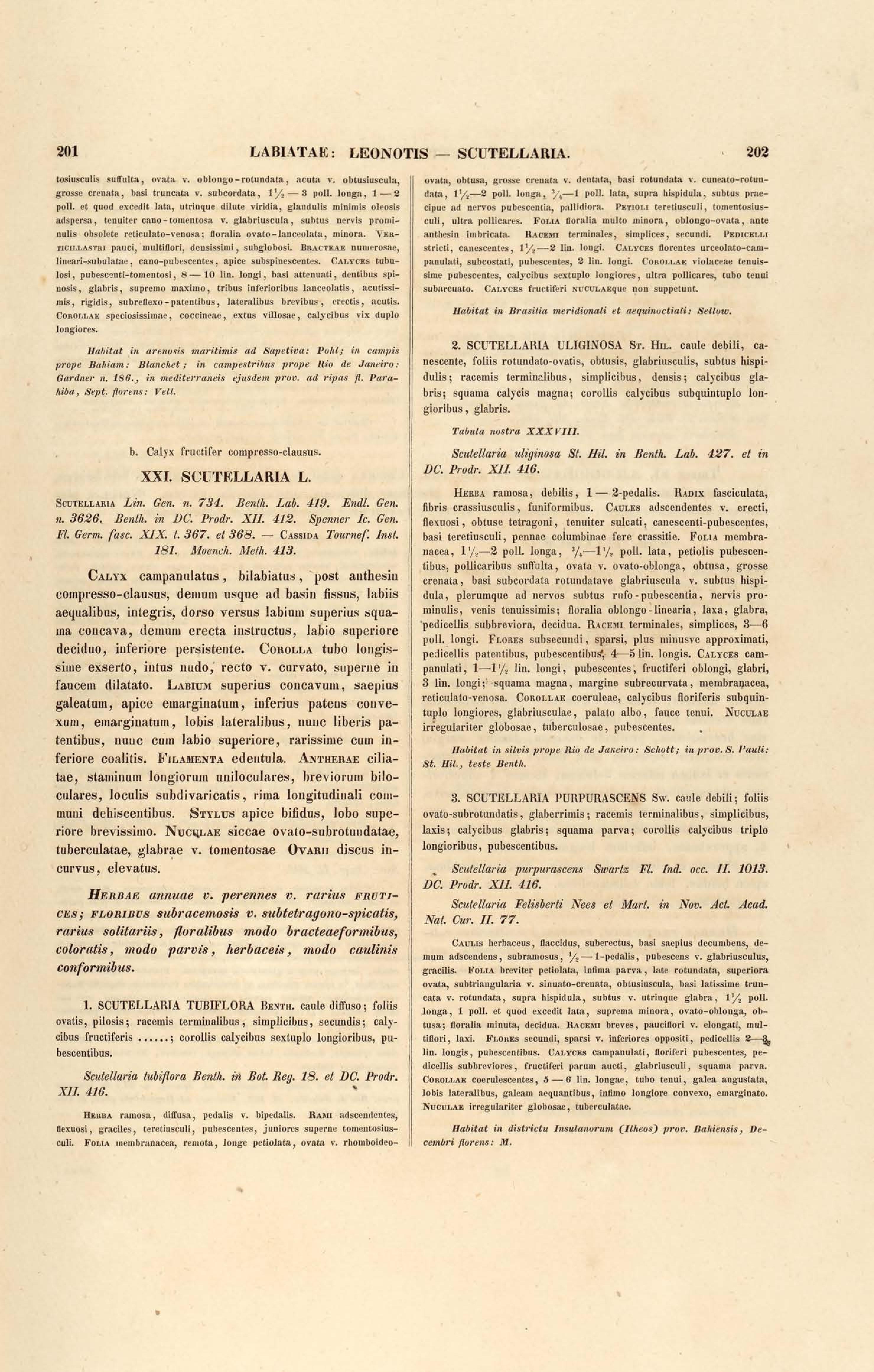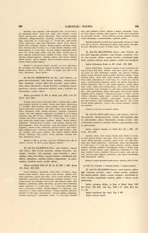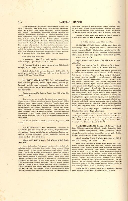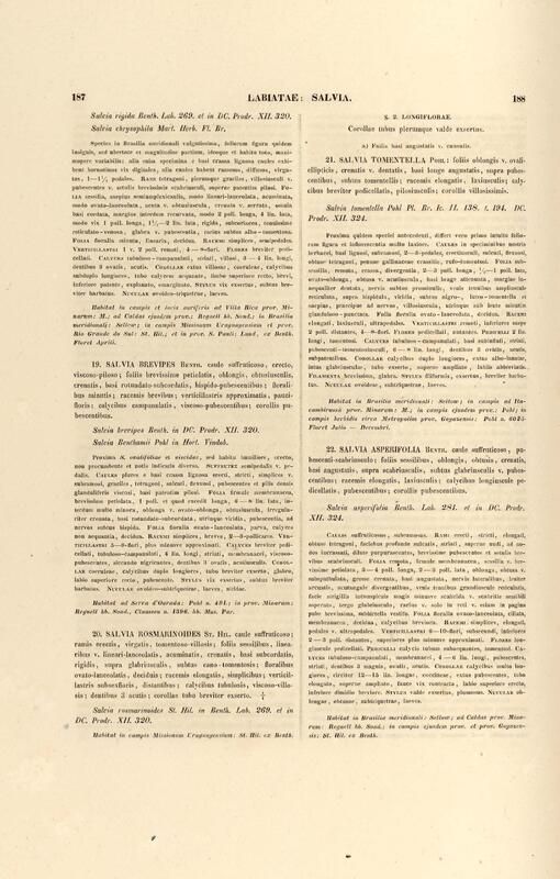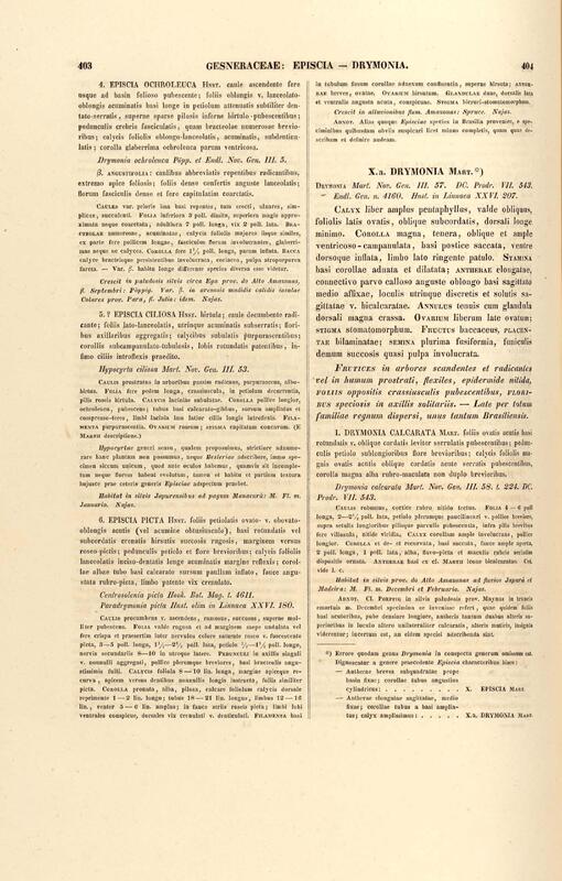 Flora brasiliensis : enumeratio plantarum in Brasilia hactenus detectarum quas suis aliorumque botanicorum studiis descriptas et methodo naturali digestas partim icone illustratas. Volumen VIII, Pars I, Cordiaceae, Heliotropieae, Borragineae, labiatae, Scrophularinae, Gesneraceae