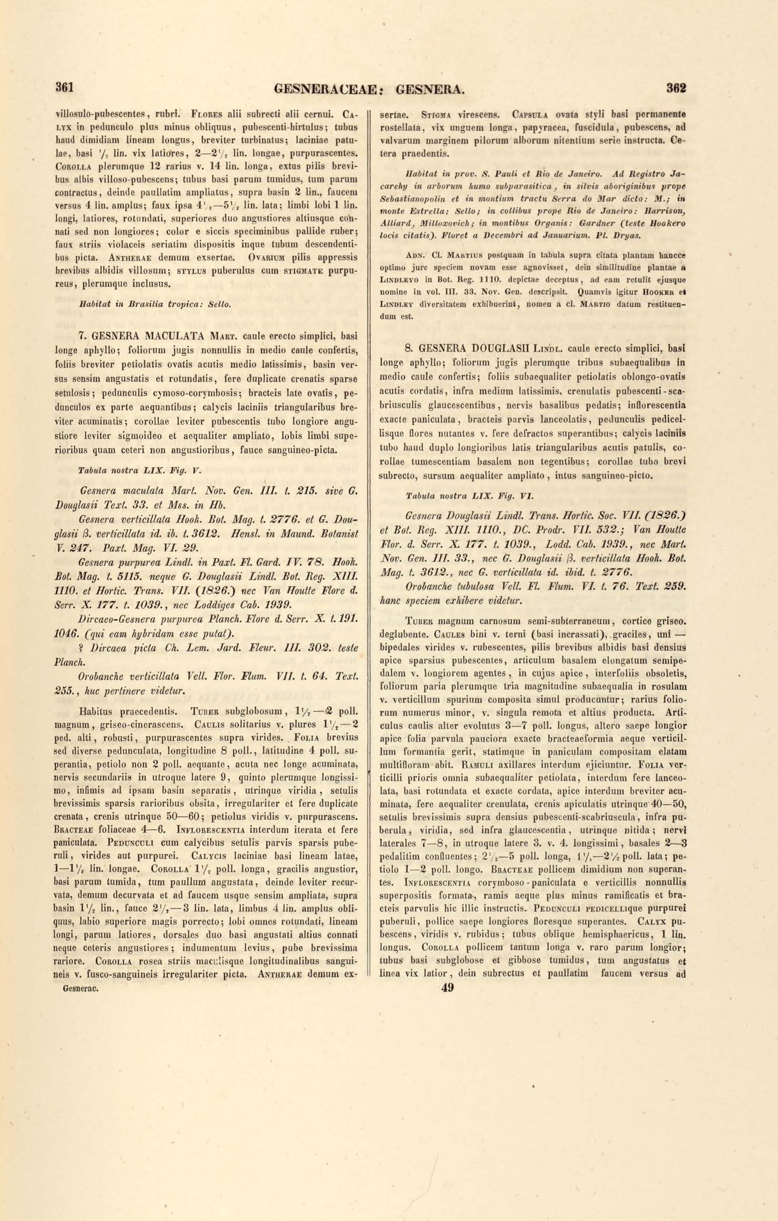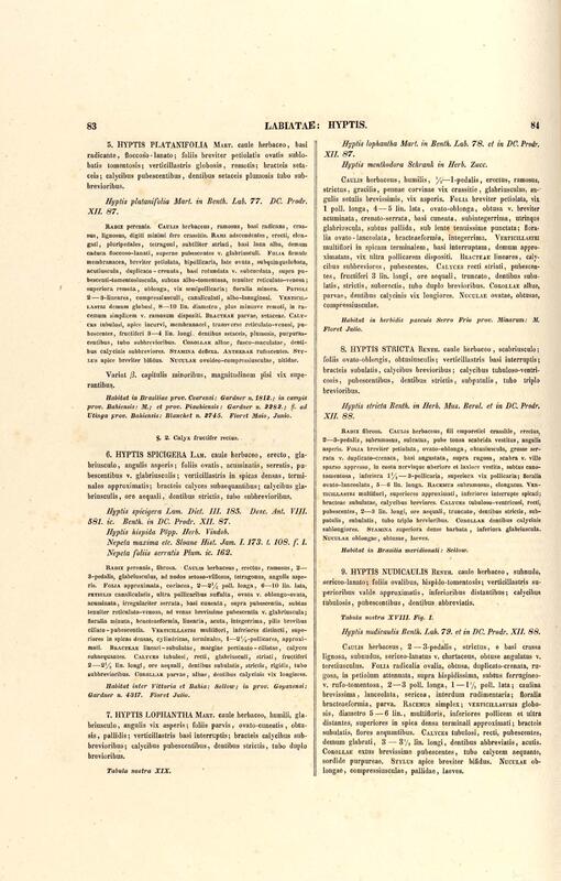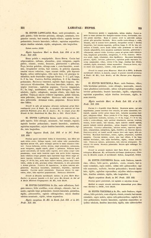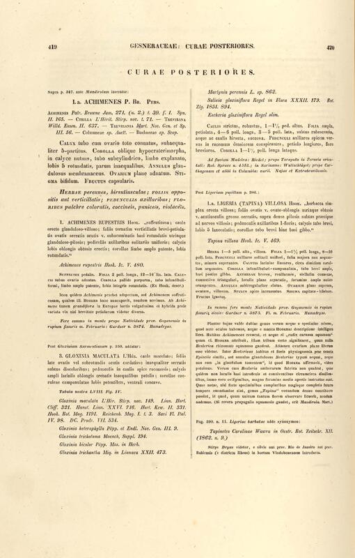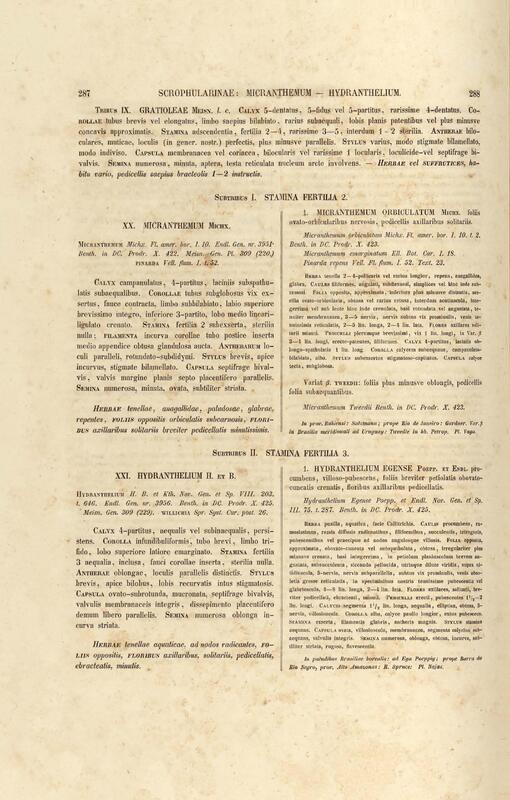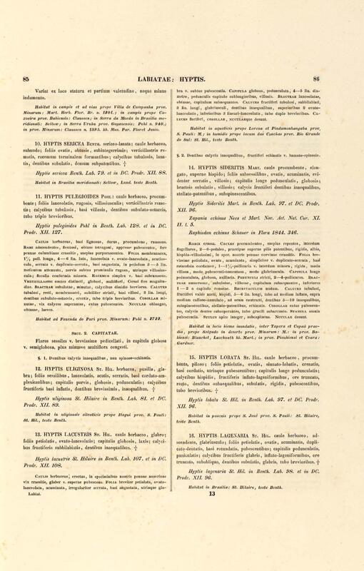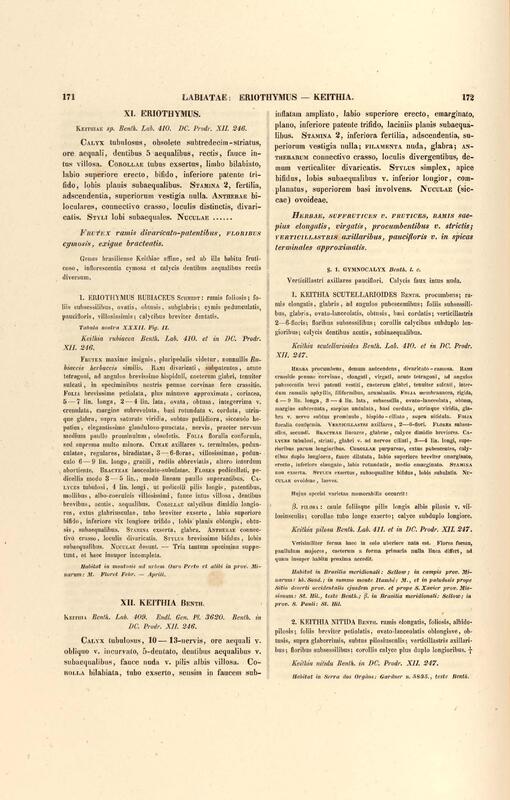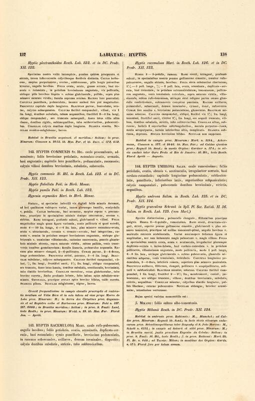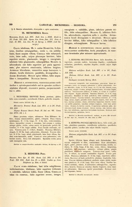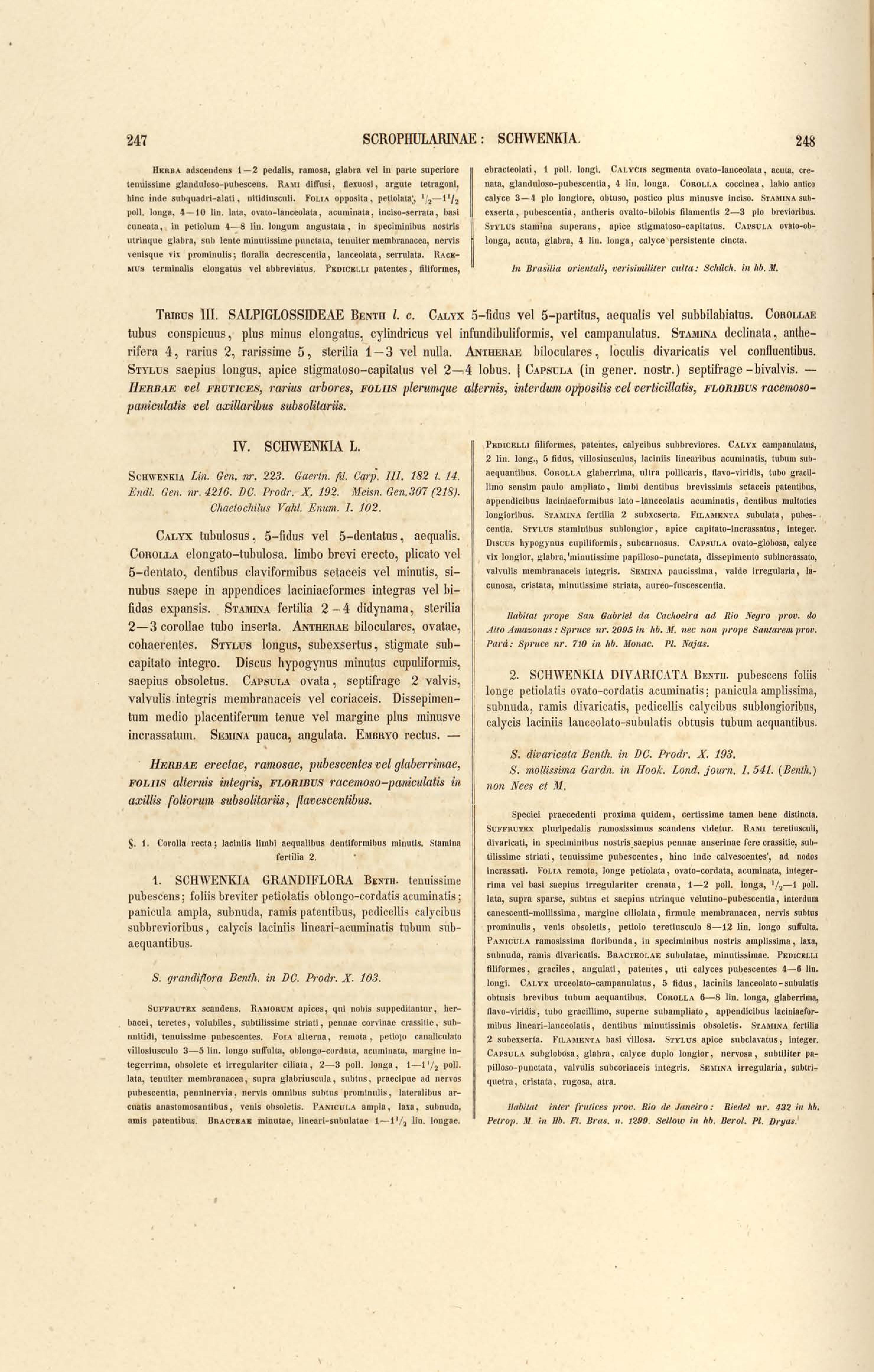 Flora brasiliensis : enumeratio plantarum in Brasilia hactenus detectarum quas suis aliorumque botanicorum studiis descriptas et methodo naturali digestas partim icone illustratas. Volumen VIII, Pars I, Cordiaceae, Heliotropieae, Borragineae, labiatae, Scrophularinae, Gesneraceae