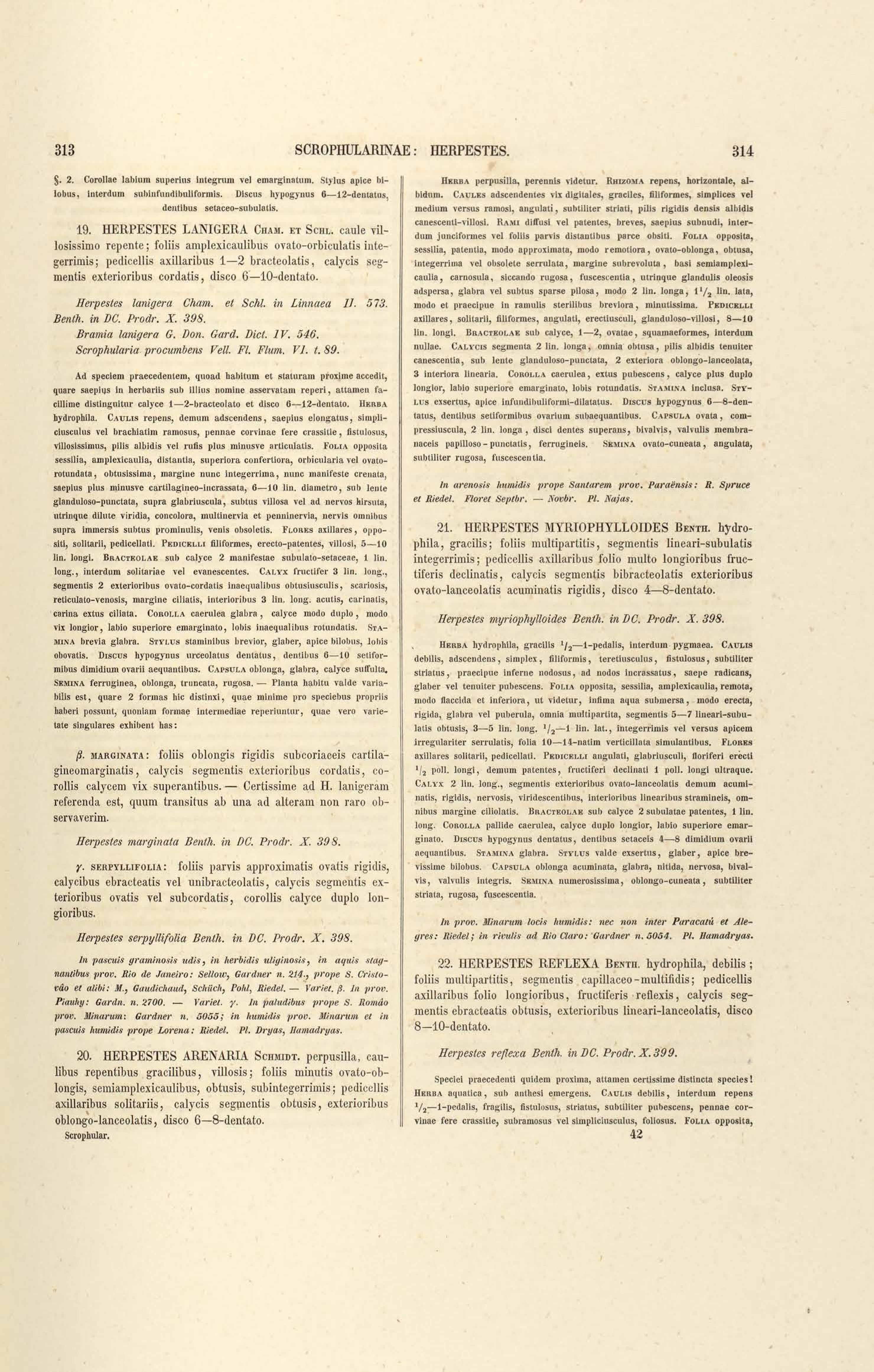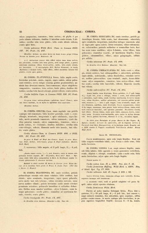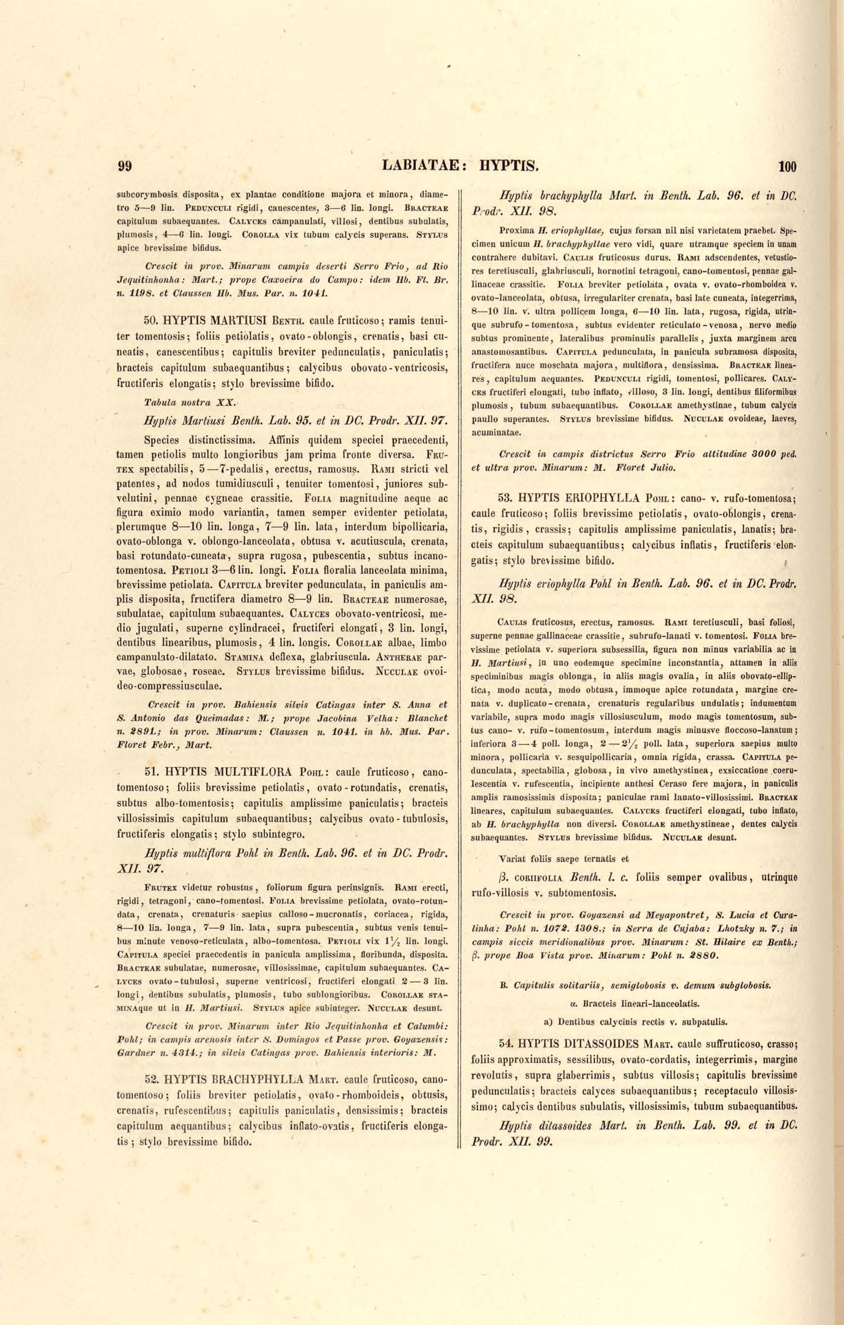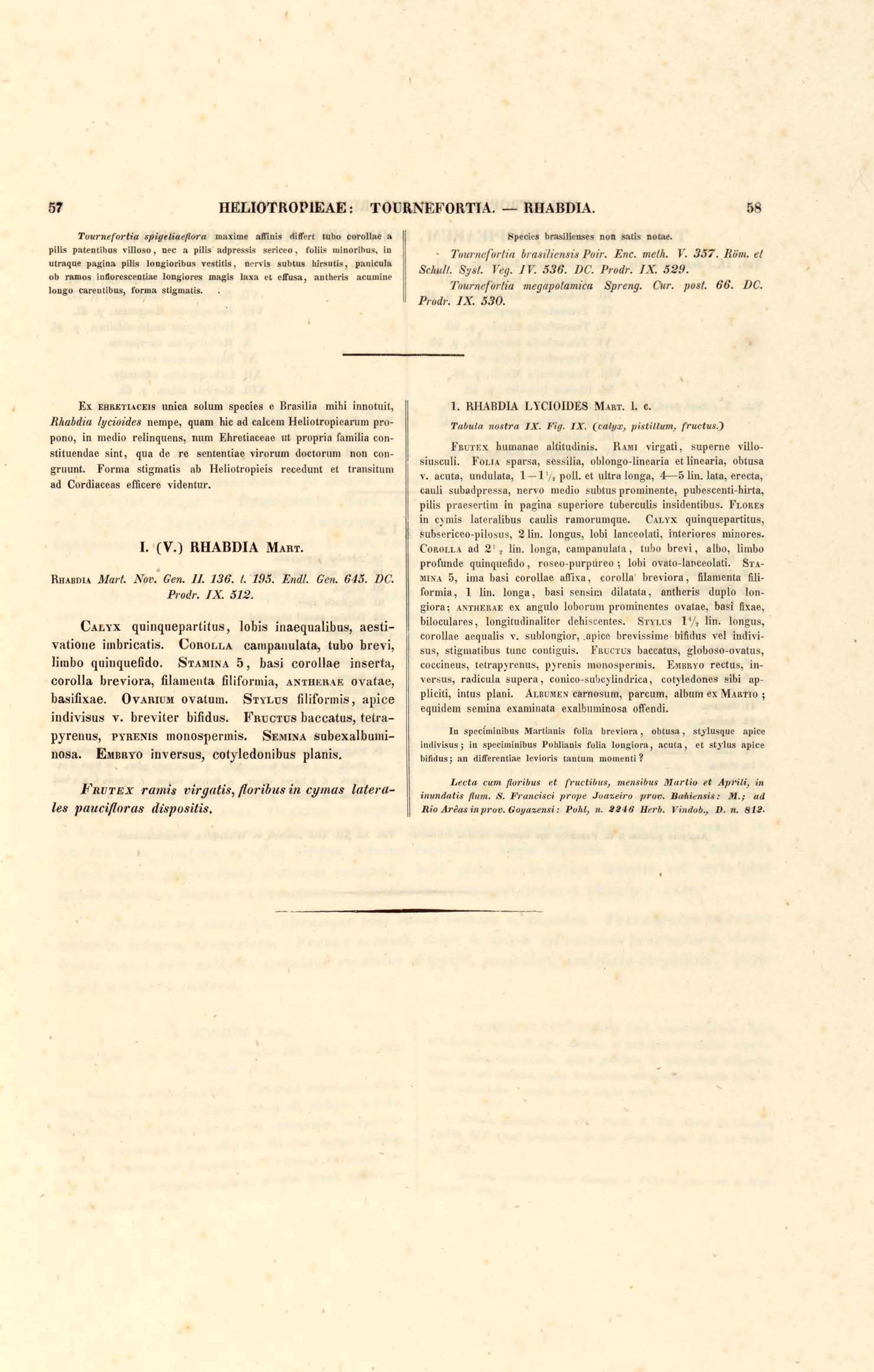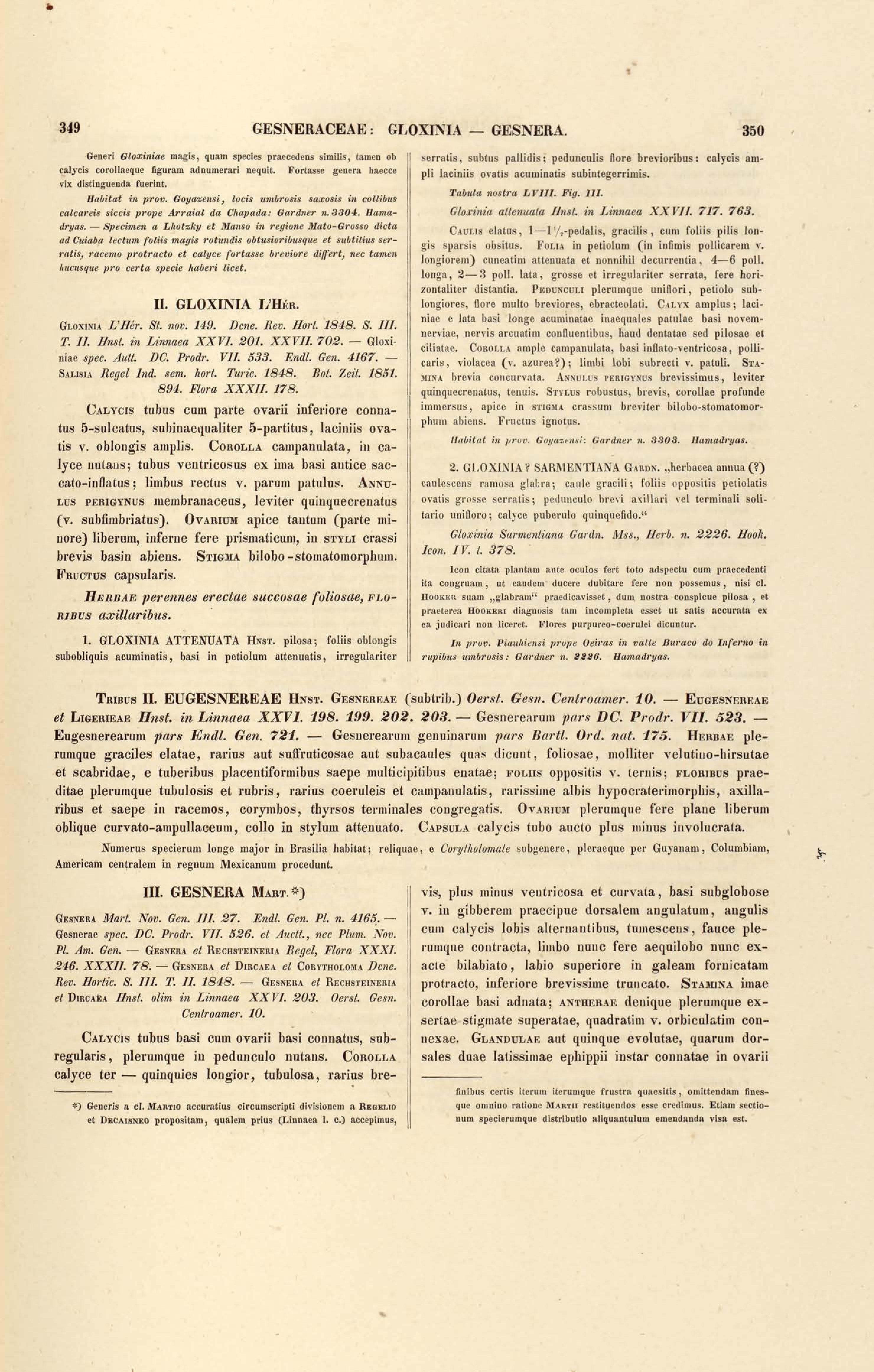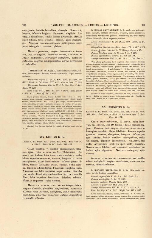 Flora brasiliensis : enumeratio plantarum in Brasilia hactenus detectarum quas suis aliorumque botanicorum studiis descriptas et methodo naturali digestas partim icone illustratas. Volumen VIII, Pars I, Cordiaceae, Heliotropieae, Borragineae, labiatae, Scrophularinae, Gesneraceae