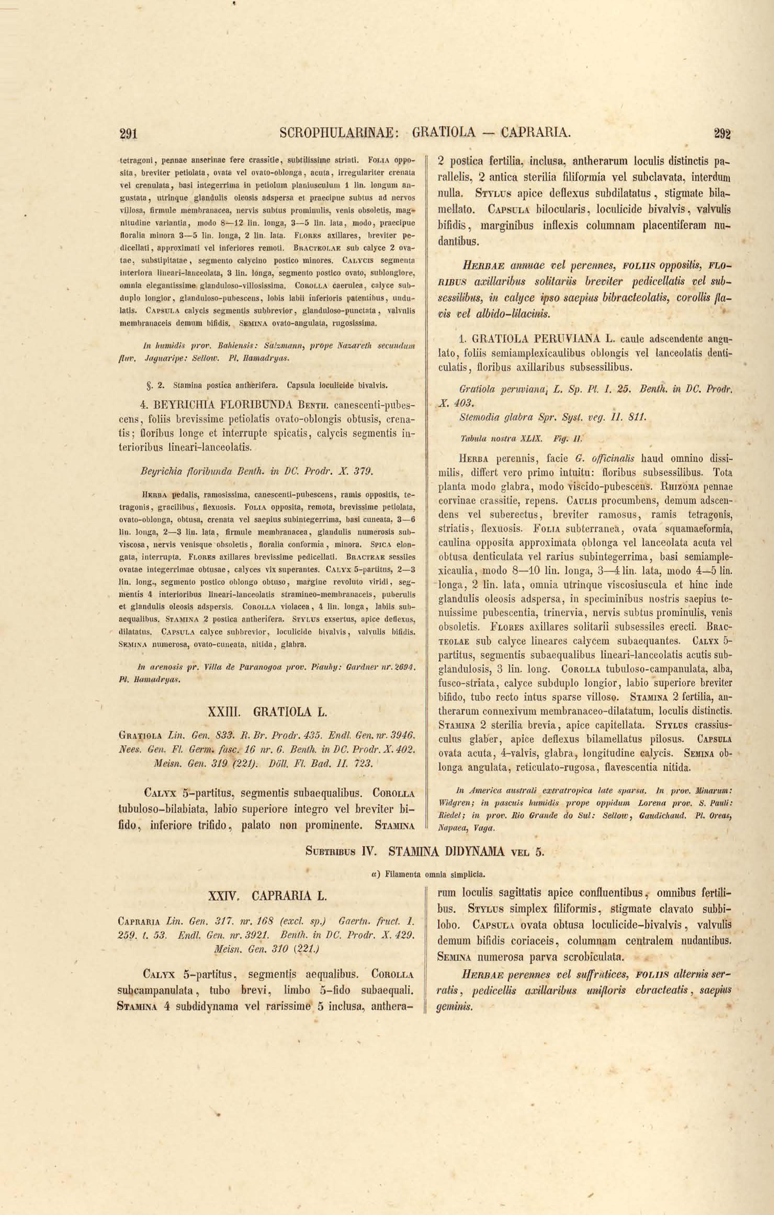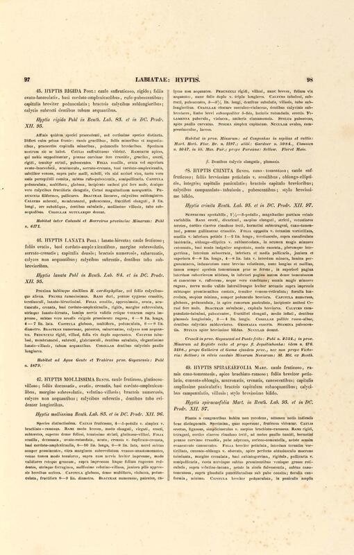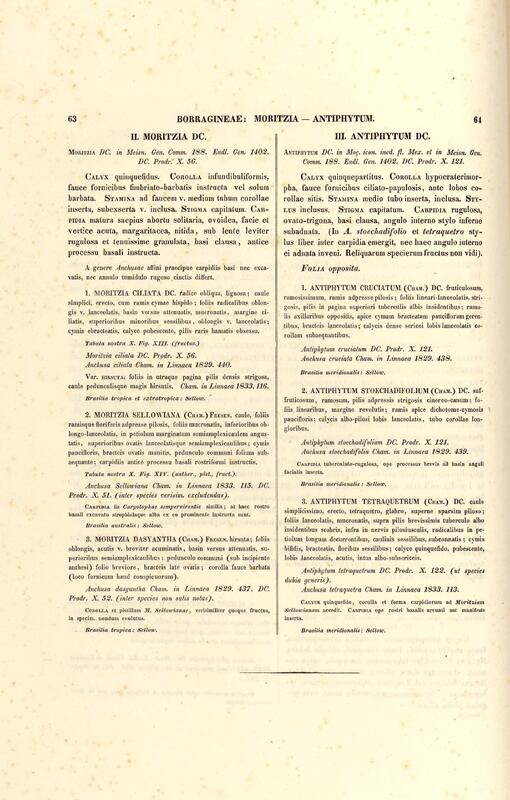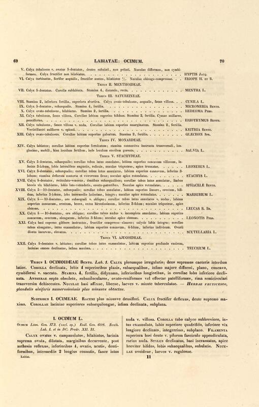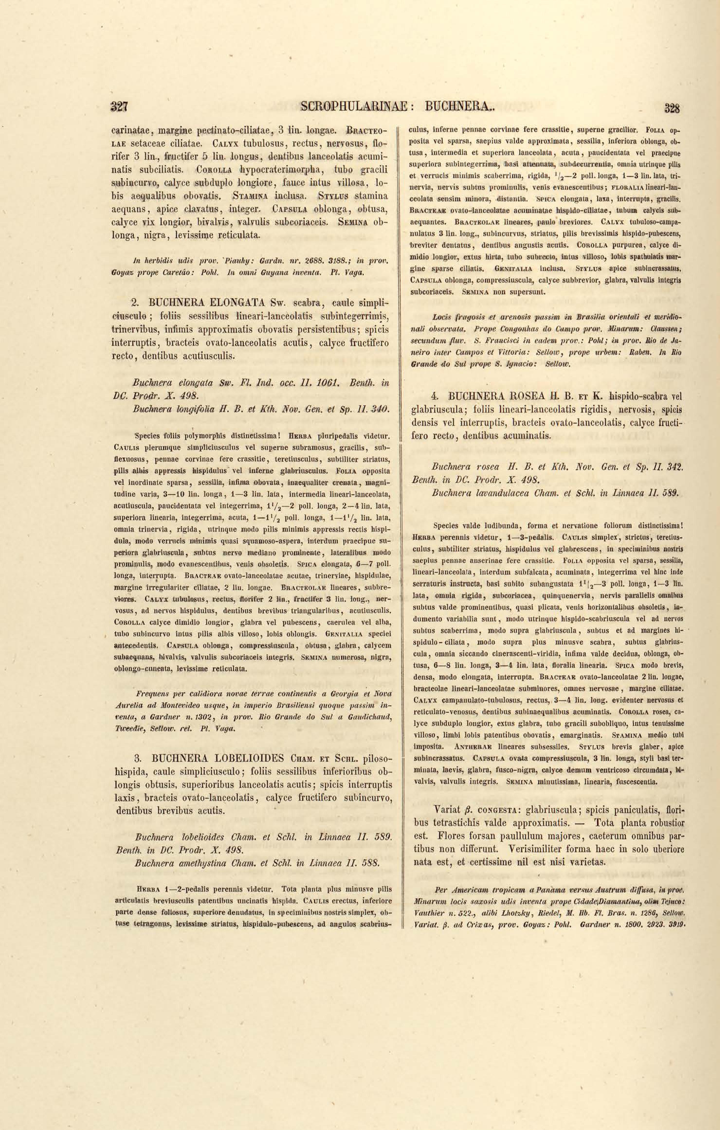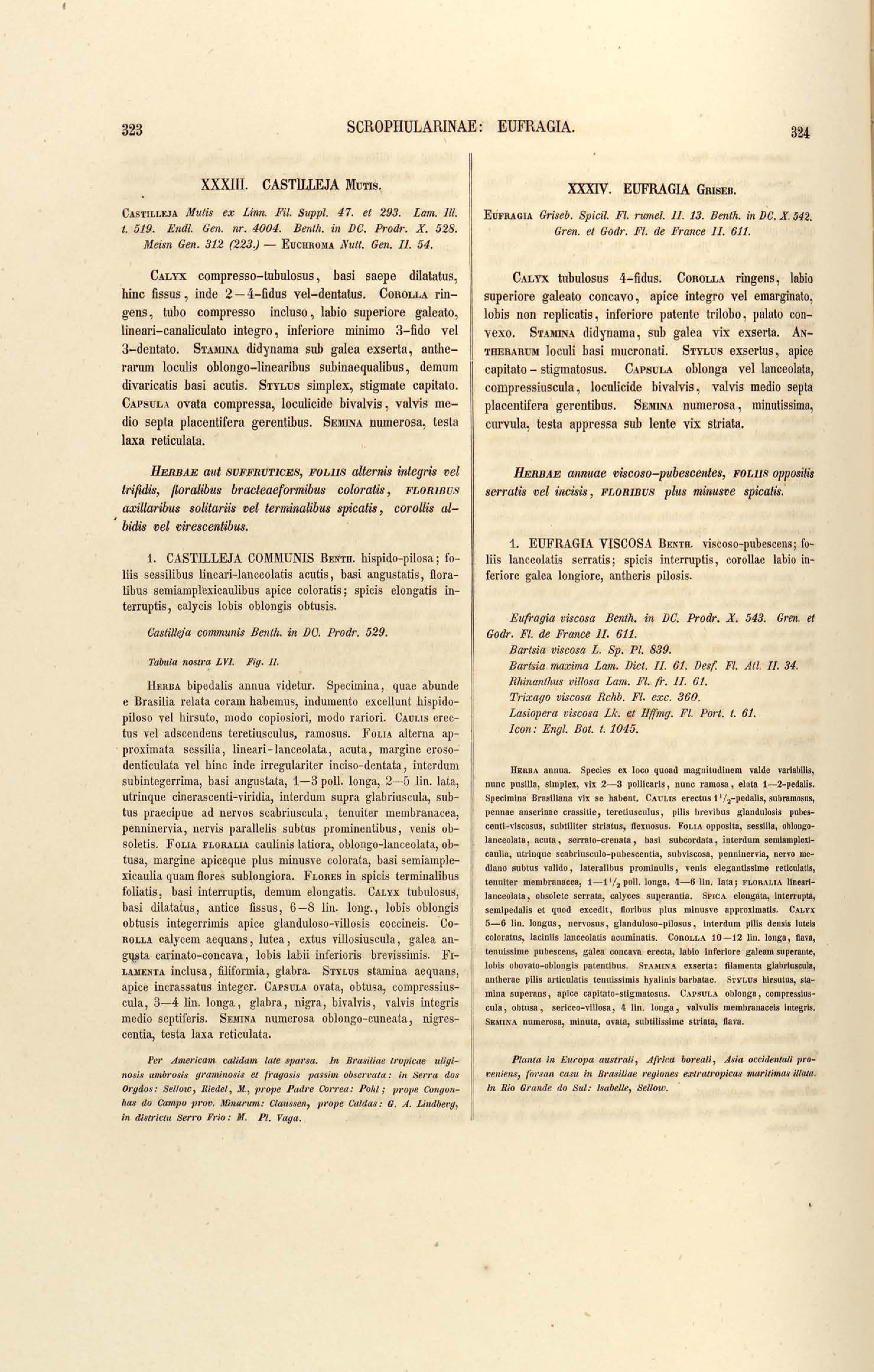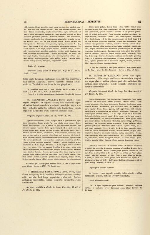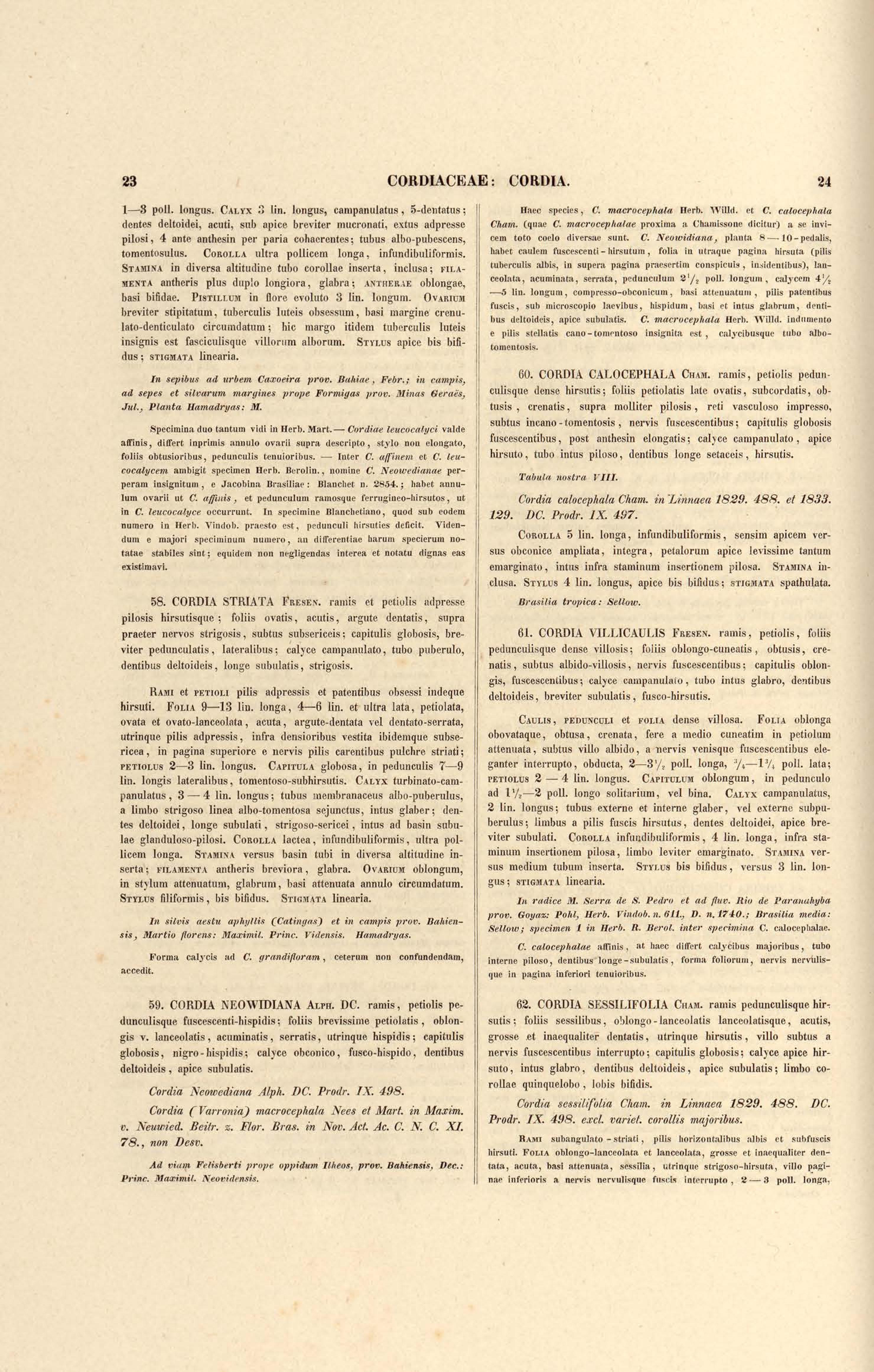 Flora brasiliensis : enumeratio plantarum in Brasilia hactenus detectarum quas suis aliorumque botanicorum studiis descriptas et methodo naturali digestas partim icone illustratas. Volumen VIII, Pars I, Cordiaceae, Heliotropieae, Borragineae, labiatae, Scrophularinae, Gesneraceae
