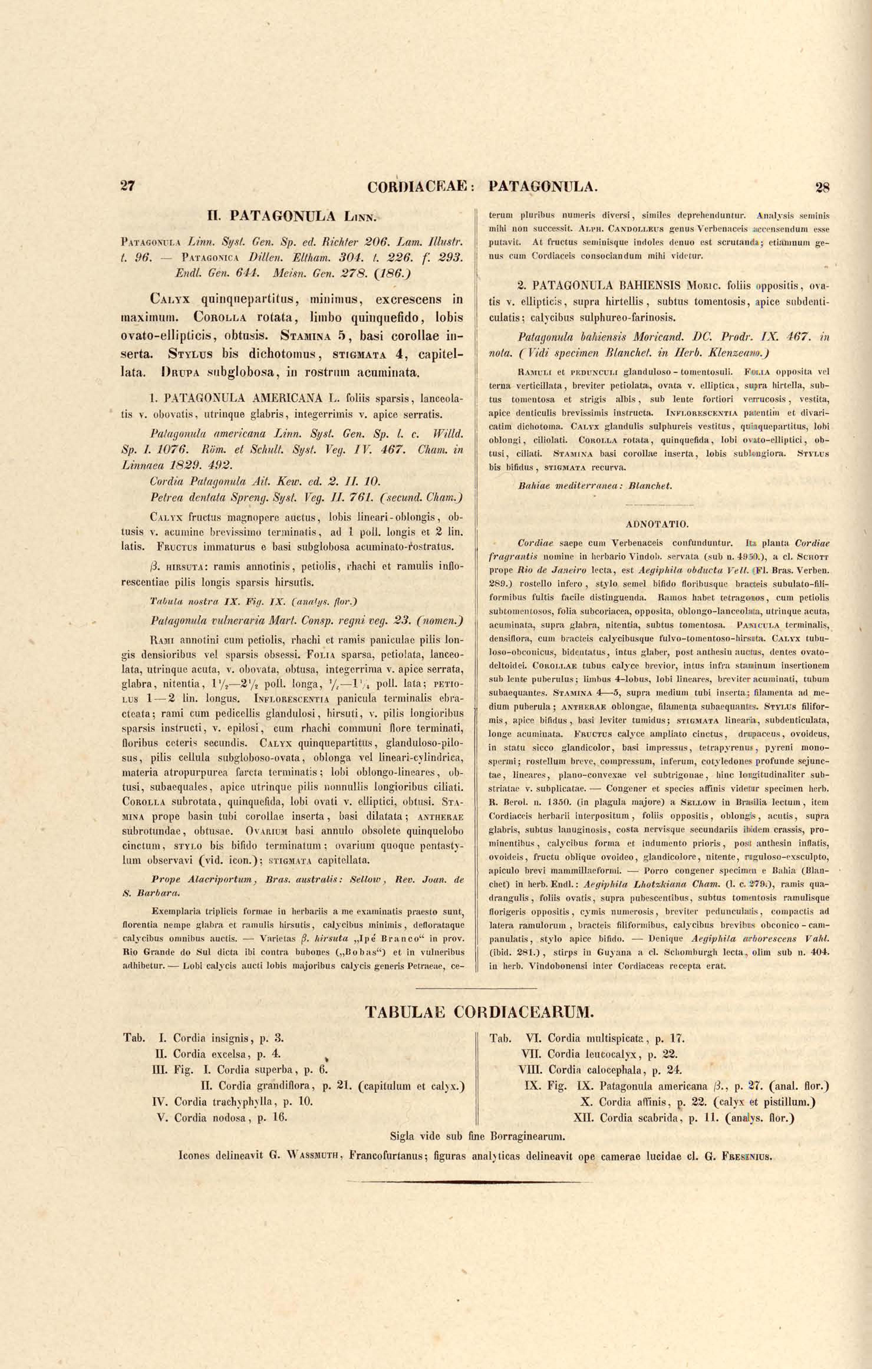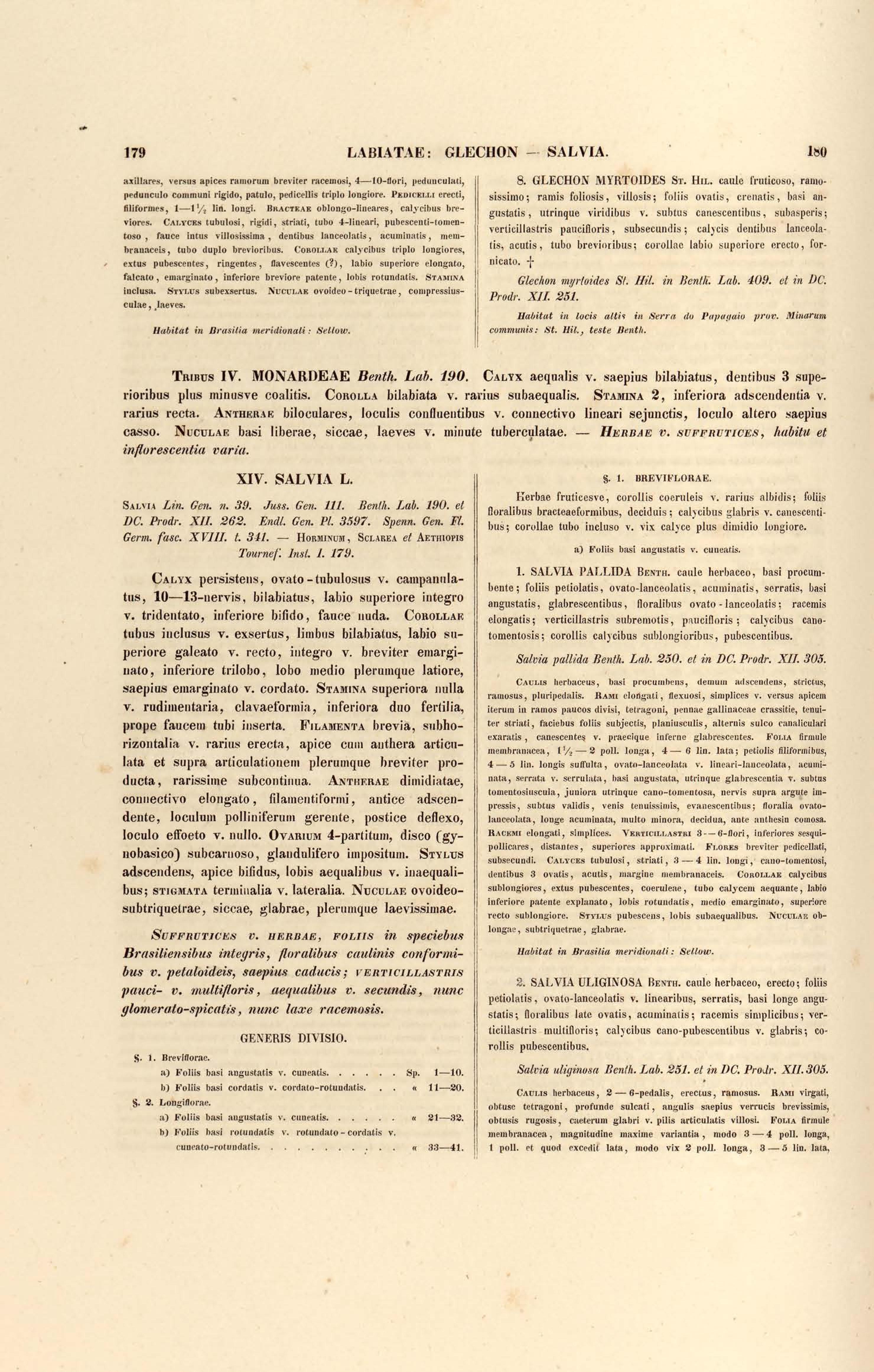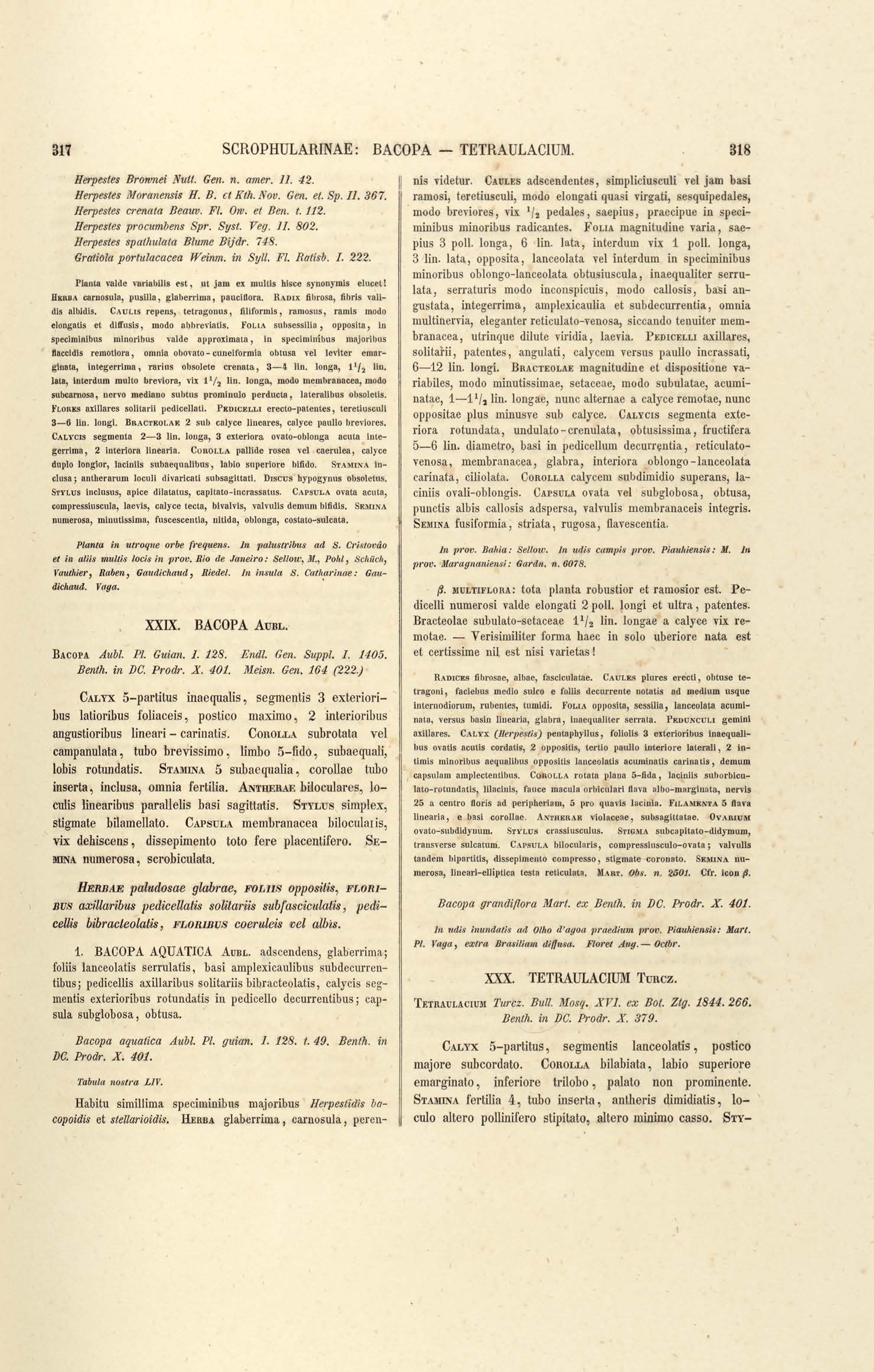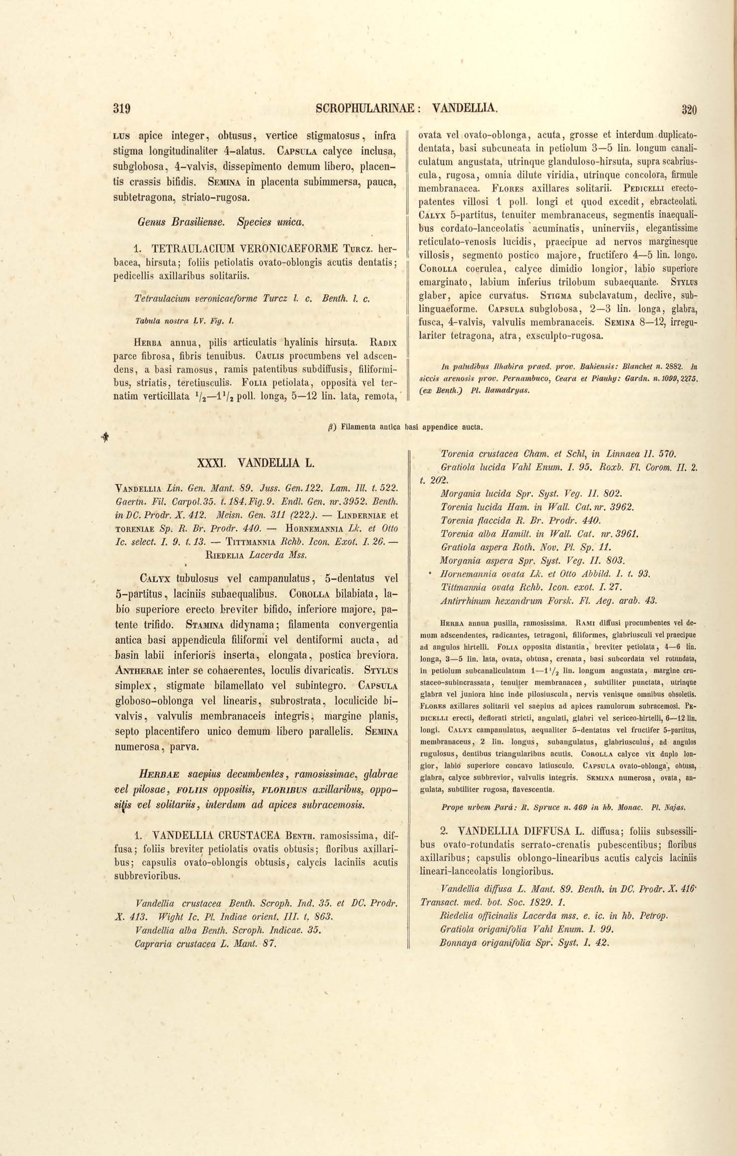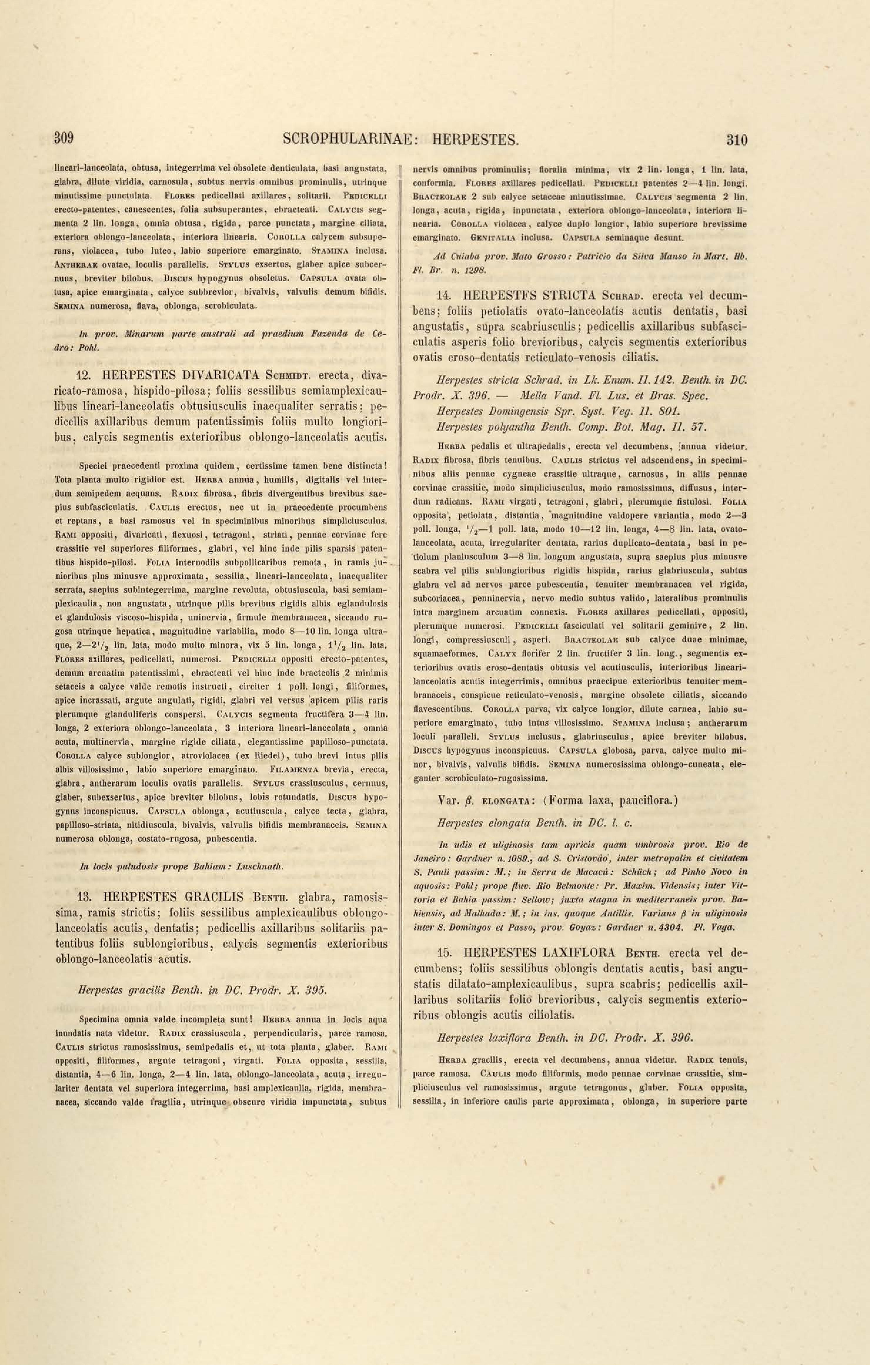 Flora brasiliensis : enumeratio plantarum in Brasilia hactenus detectarum quas suis aliorumque botanicorum studiis descriptas et methodo naturali digestas partim icone illustratas. Volumen VIII, Pars I, Cordiaceae, Heliotropieae, Borragineae, labiatae, Scrophularinae, Gesneraceae