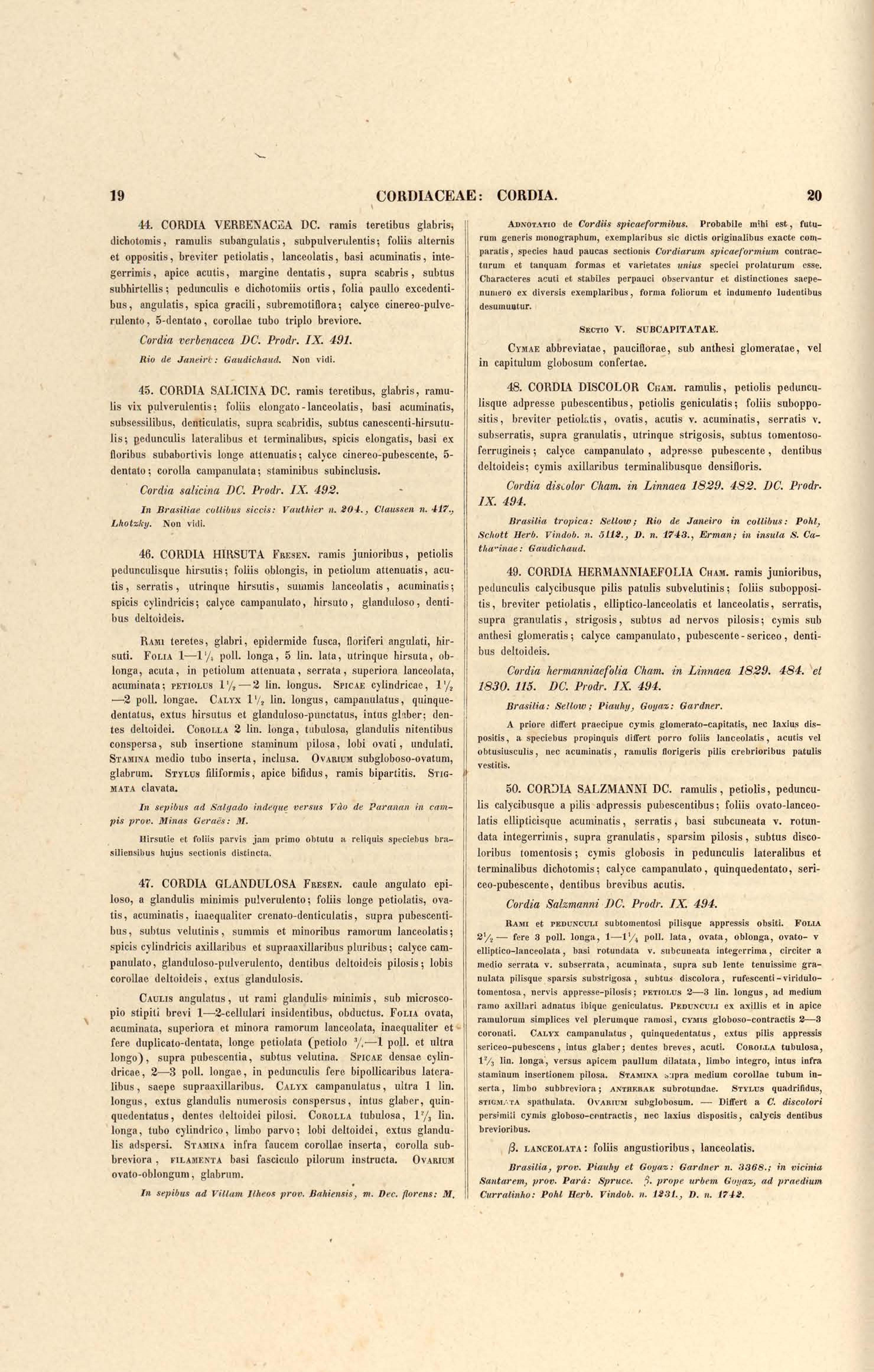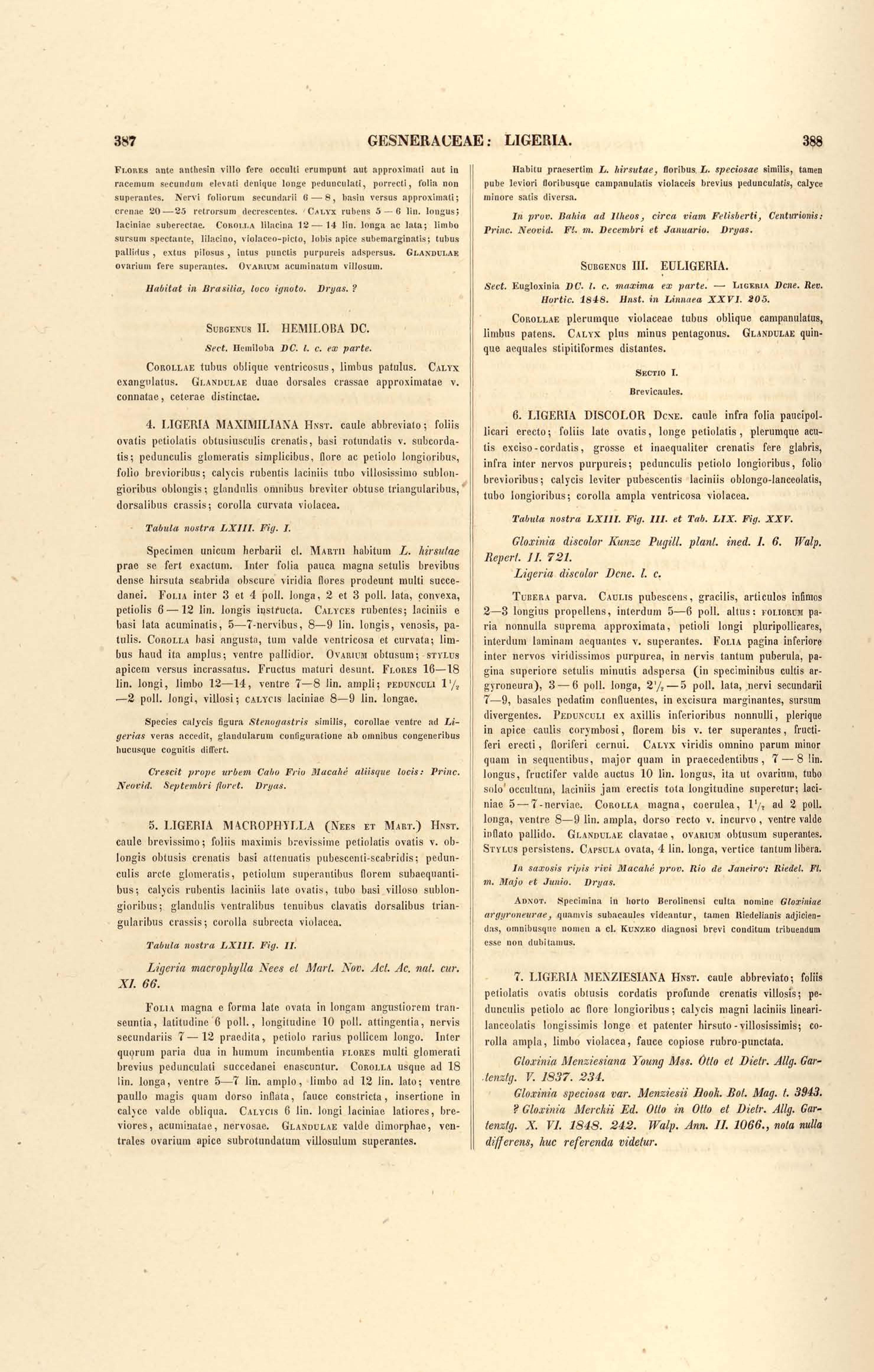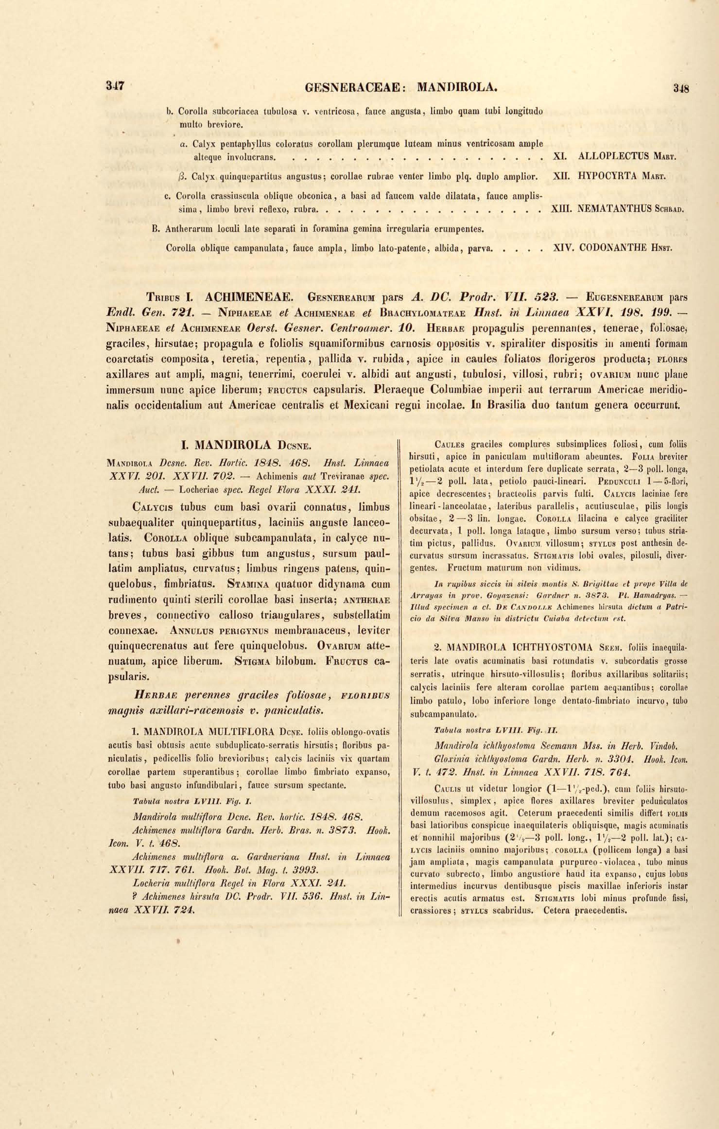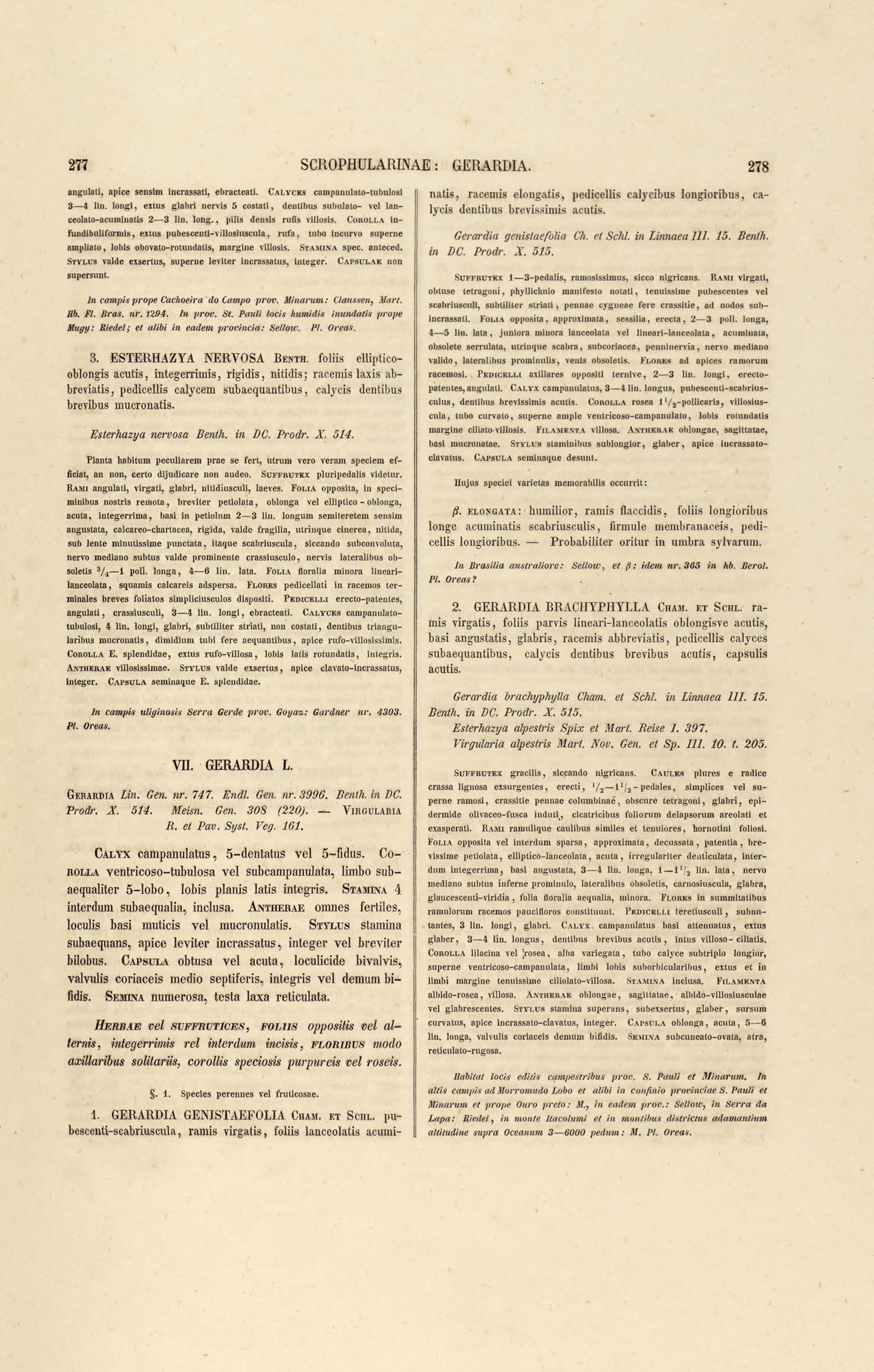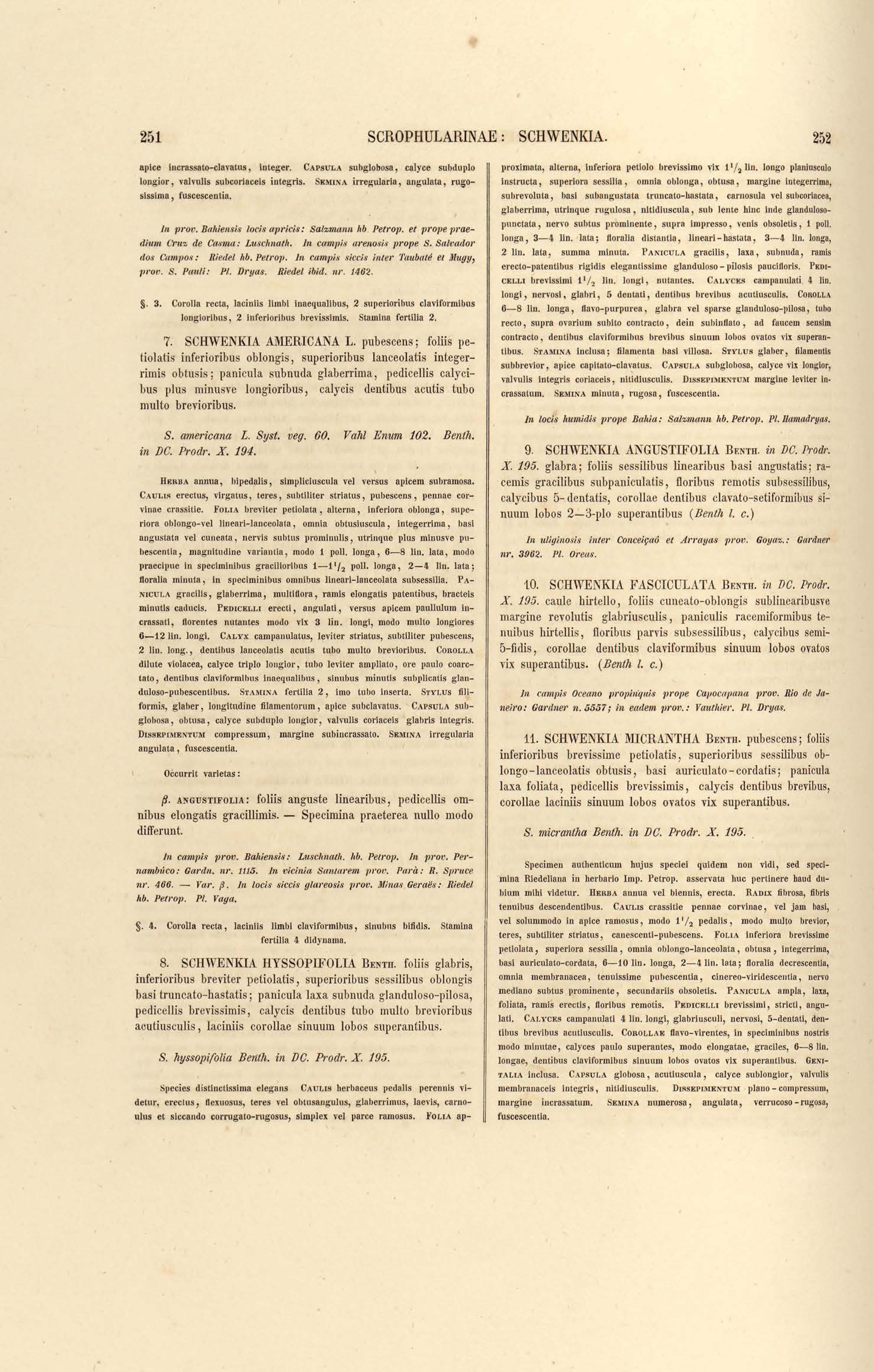 Flora brasiliensis : enumeratio plantarum in Brasilia hactenus detectarum quas suis aliorumque botanicorum studiis descriptas et methodo naturali digestas partim icone illustratas. Volumen VIII, Pars I, Cordiaceae, Heliotropieae, Borragineae, labiatae, Scrophularinae, Gesneraceae