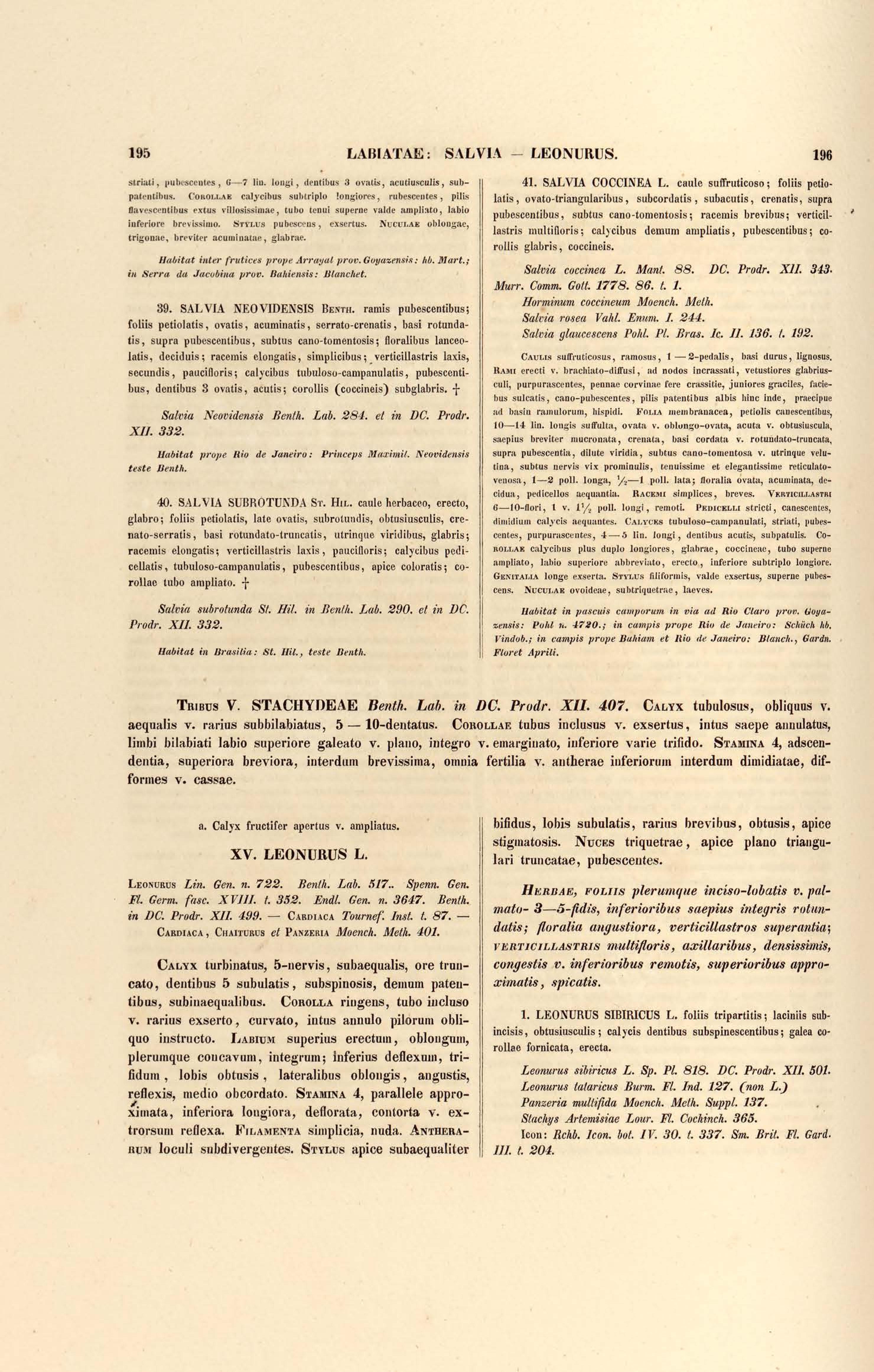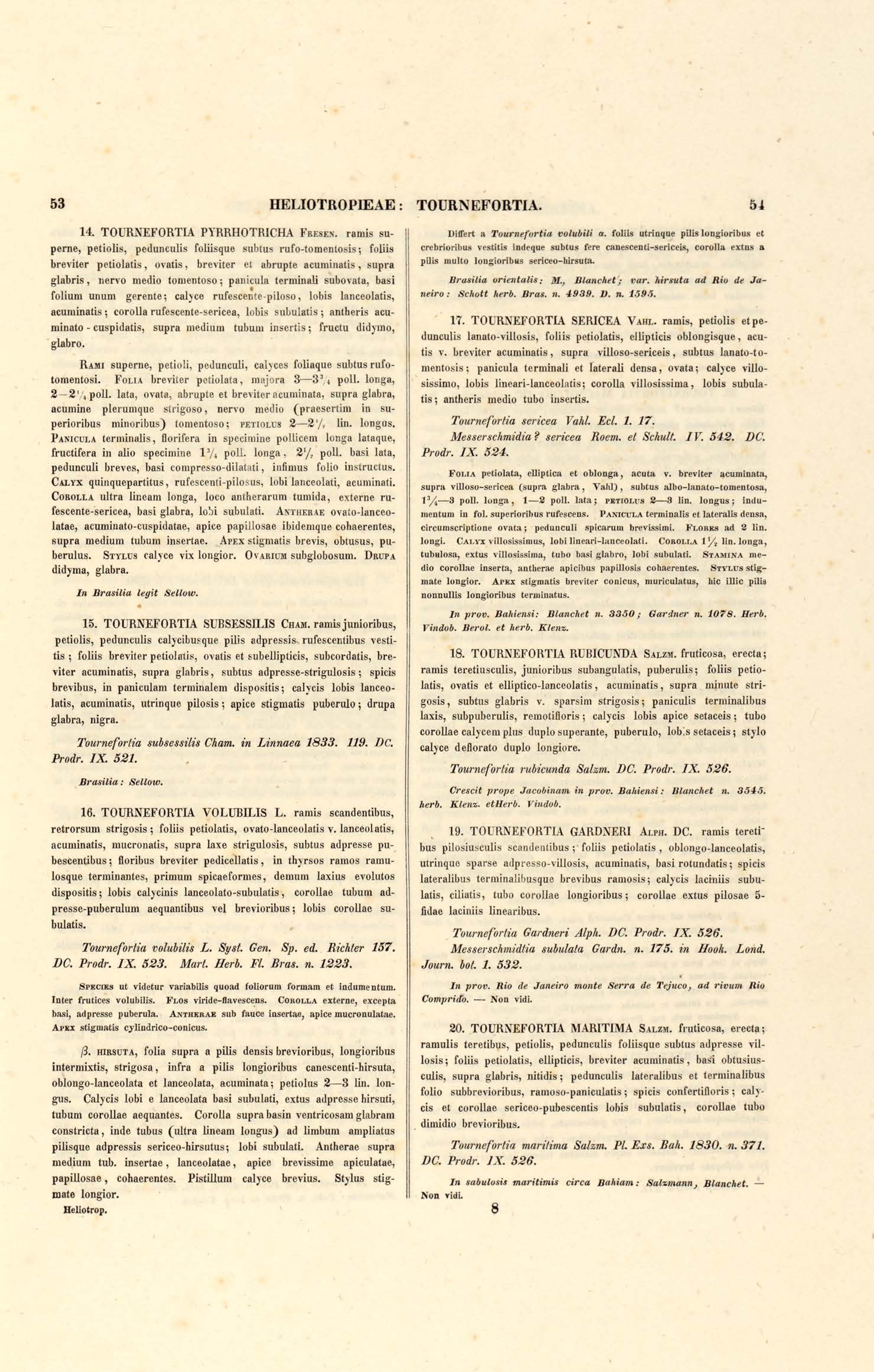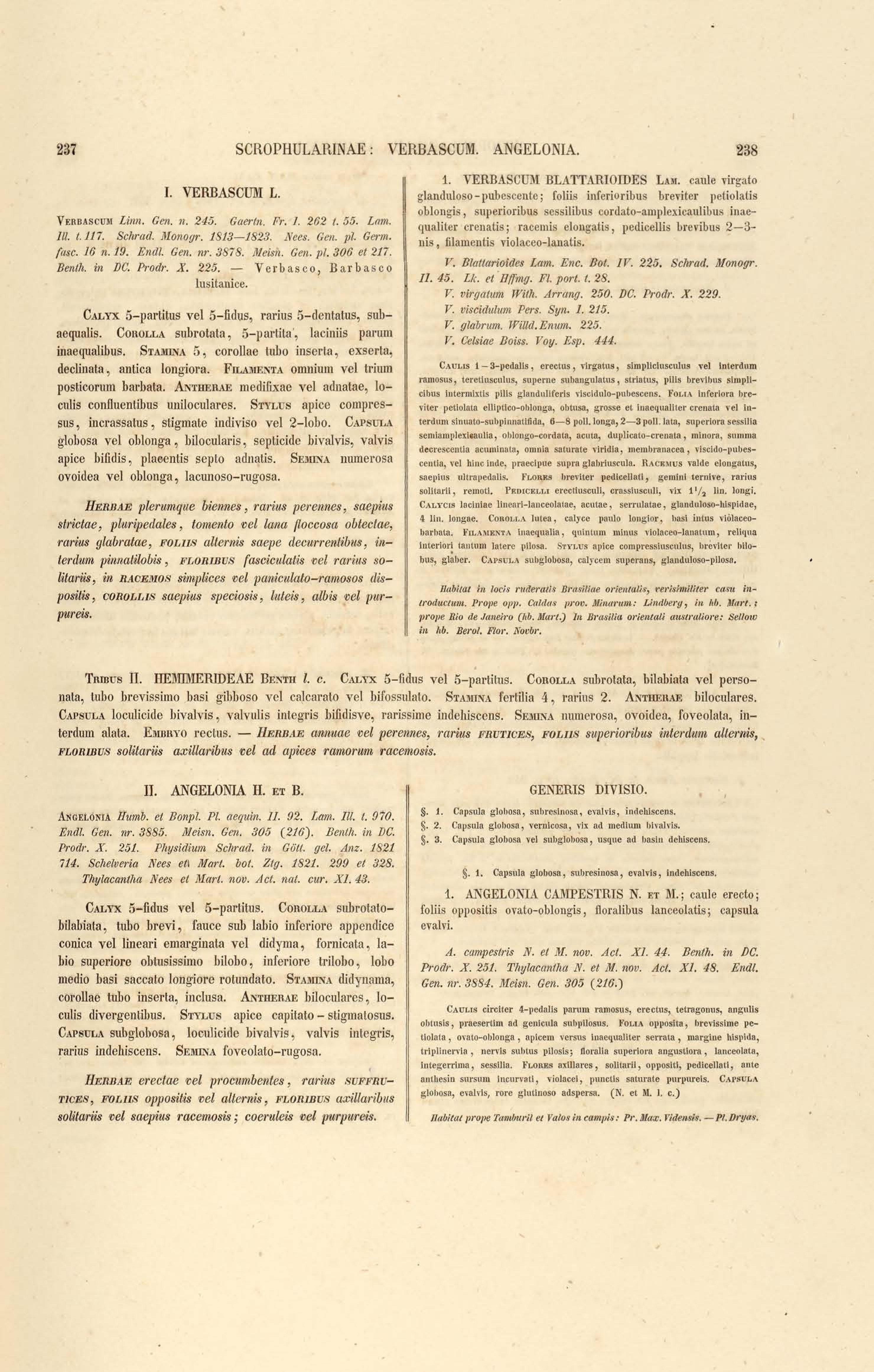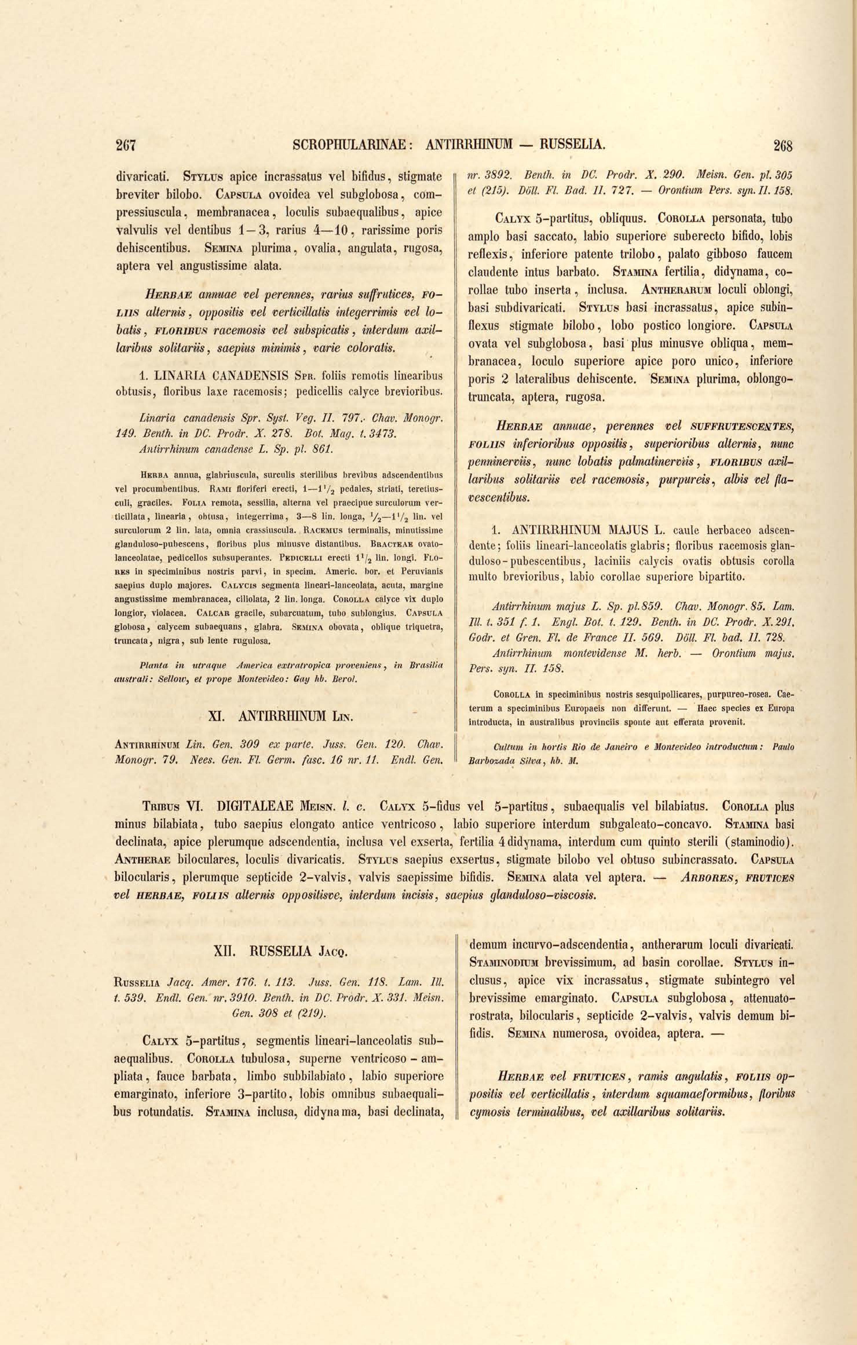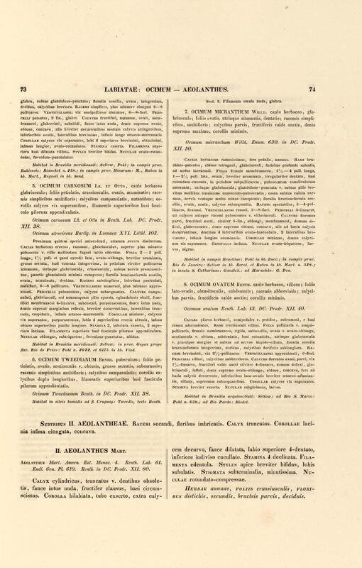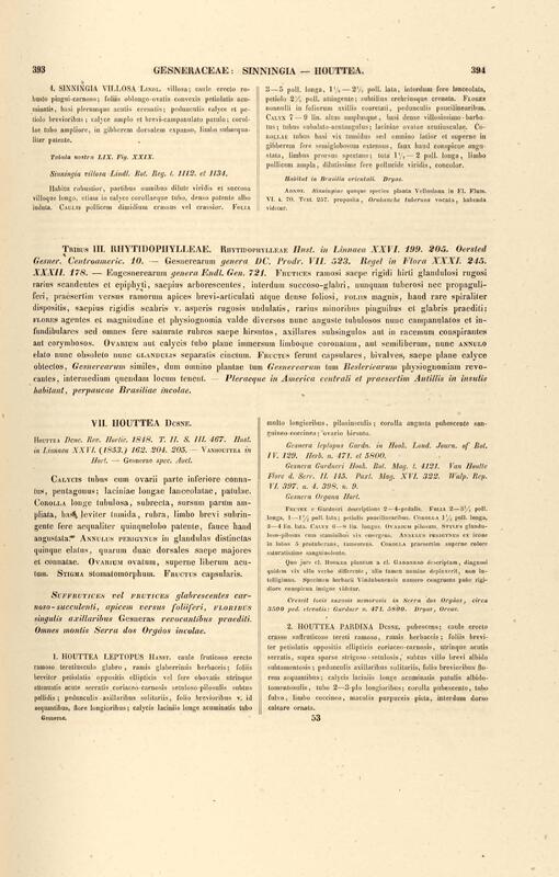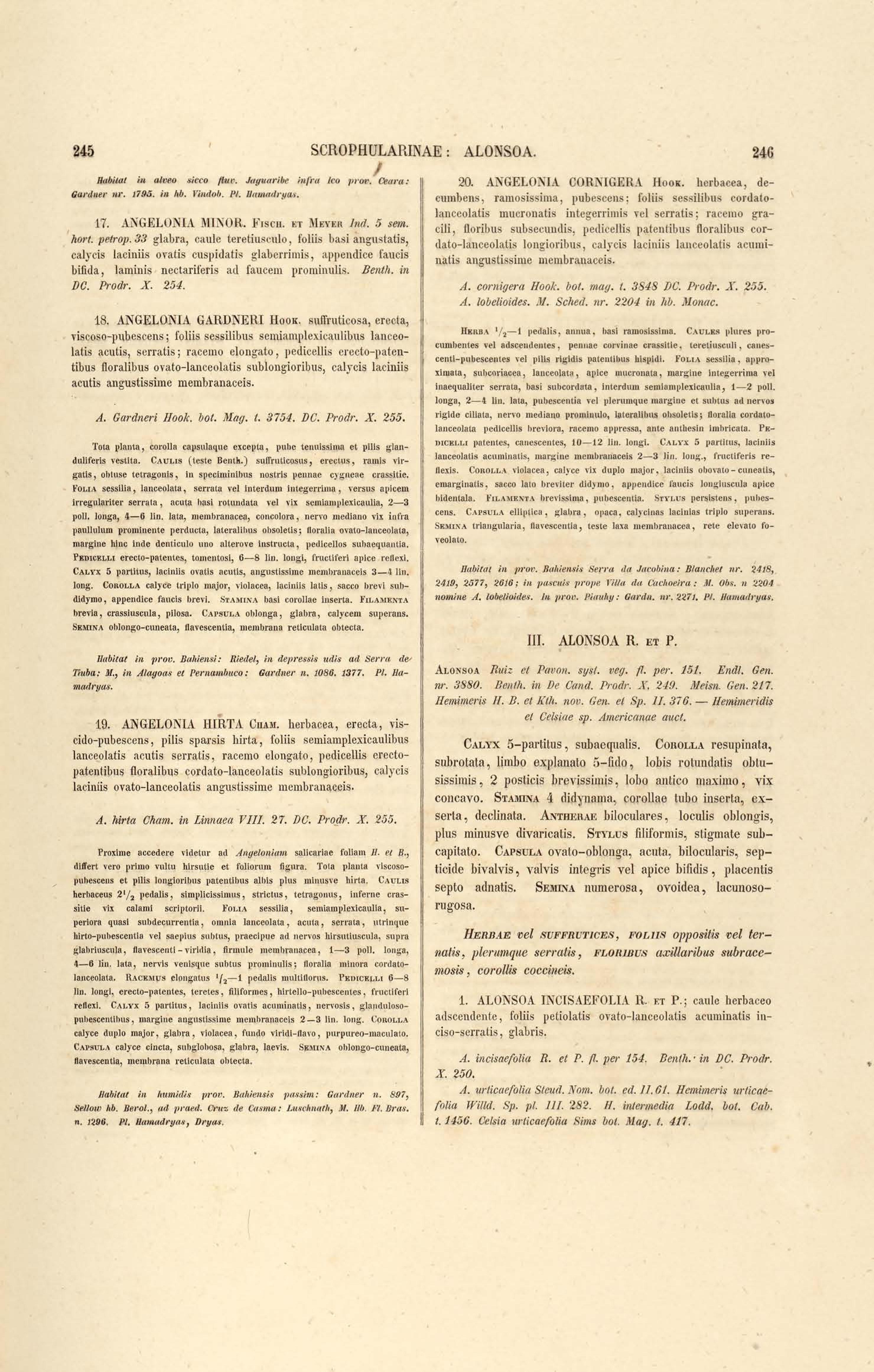 Flora brasiliensis : enumeratio plantarum in Brasilia hactenus detectarum quas suis aliorumque botanicorum studiis descriptas et methodo naturali digestas partim icone illustratas. Volumen VIII, Pars I, Cordiaceae, Heliotropieae, Borragineae, labiatae, Scrophularinae, Gesneraceae