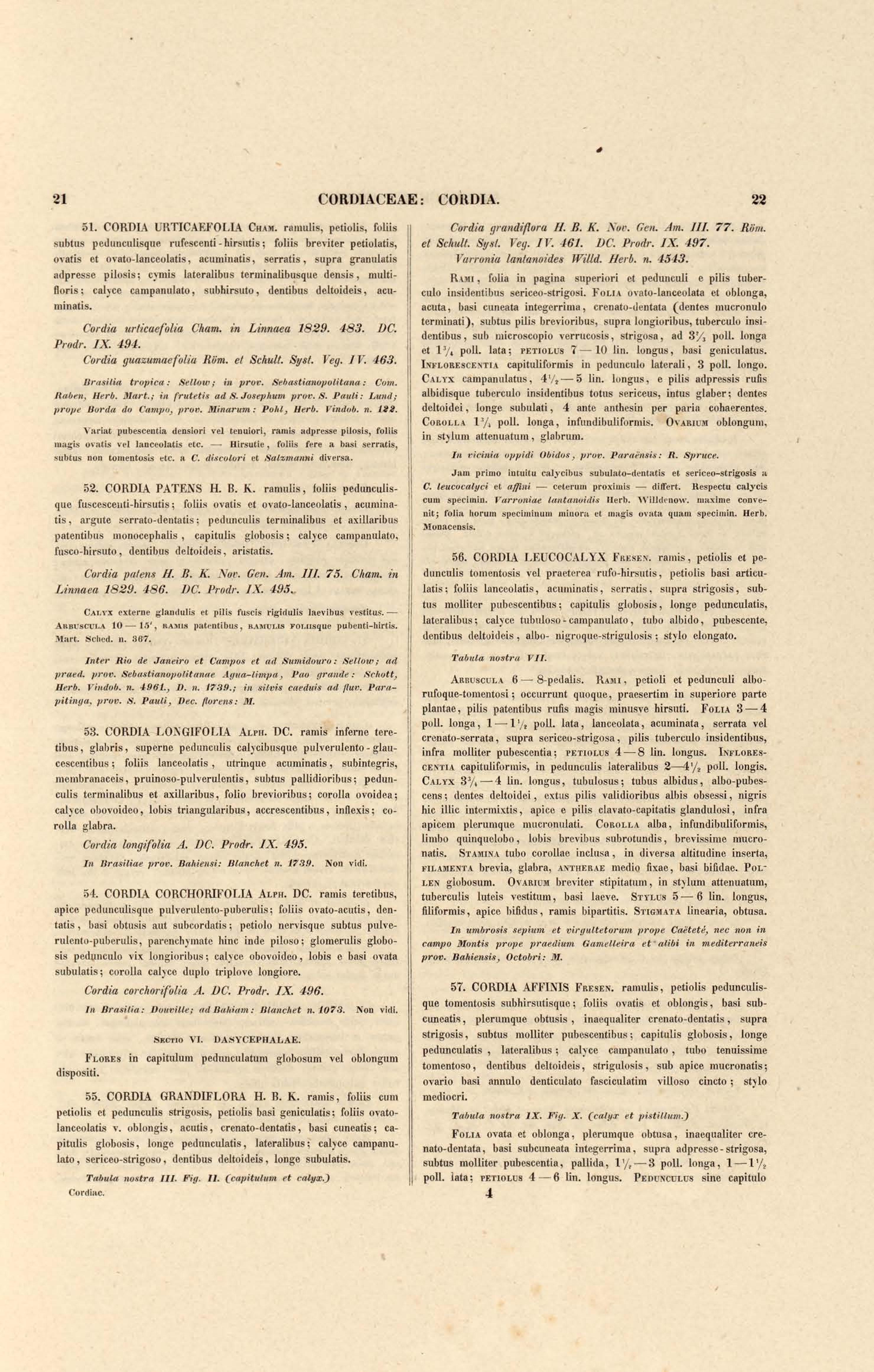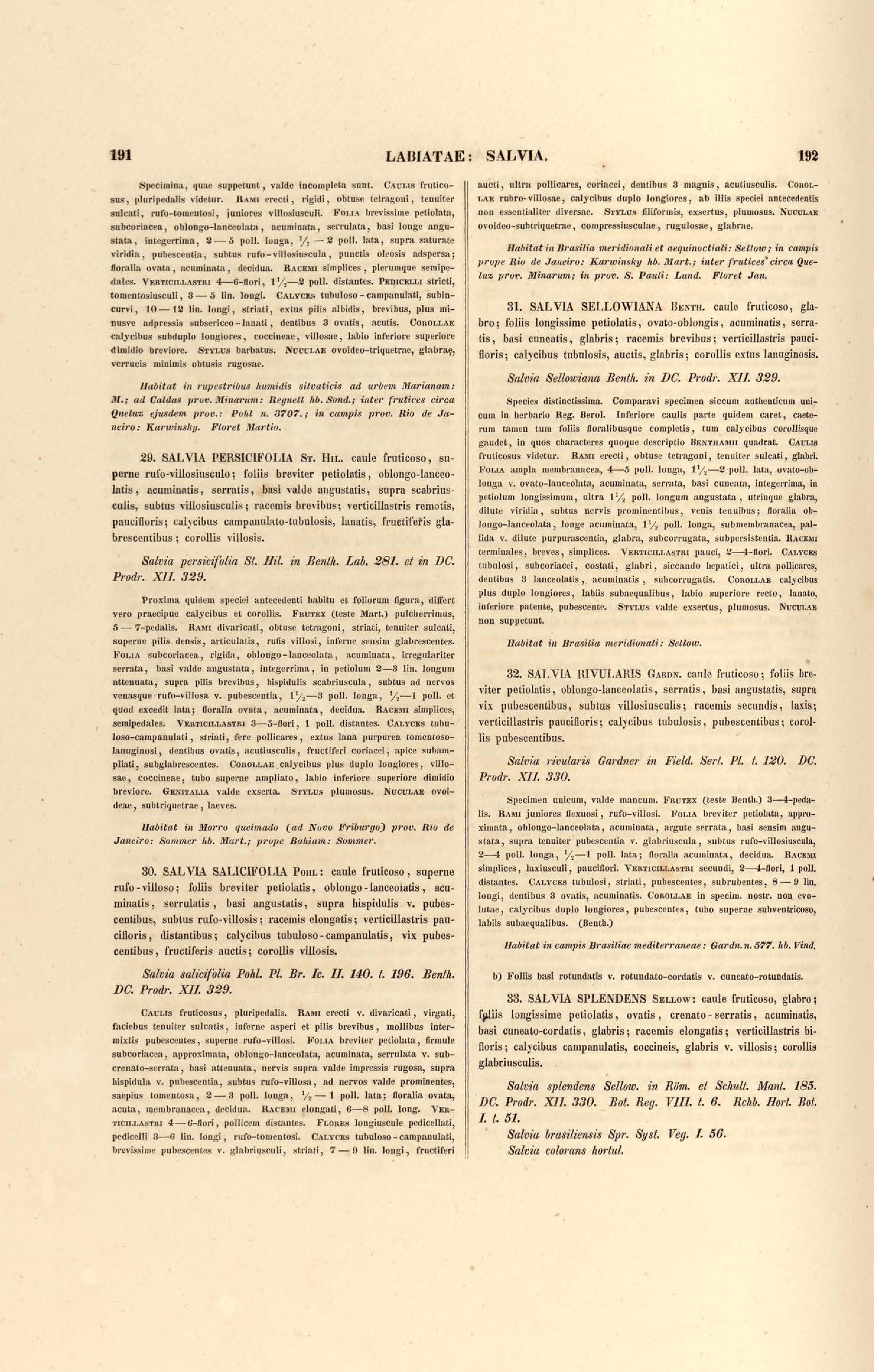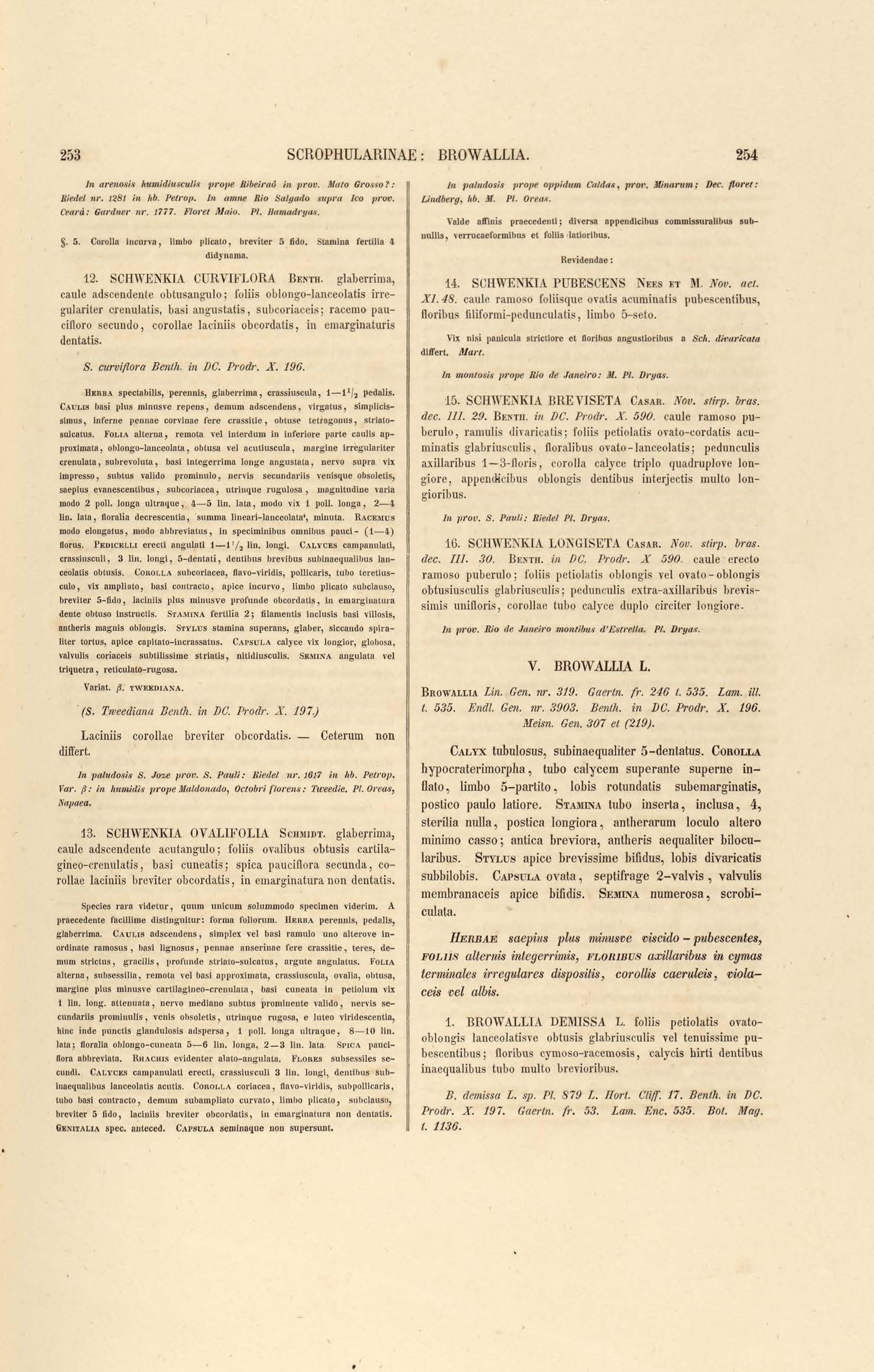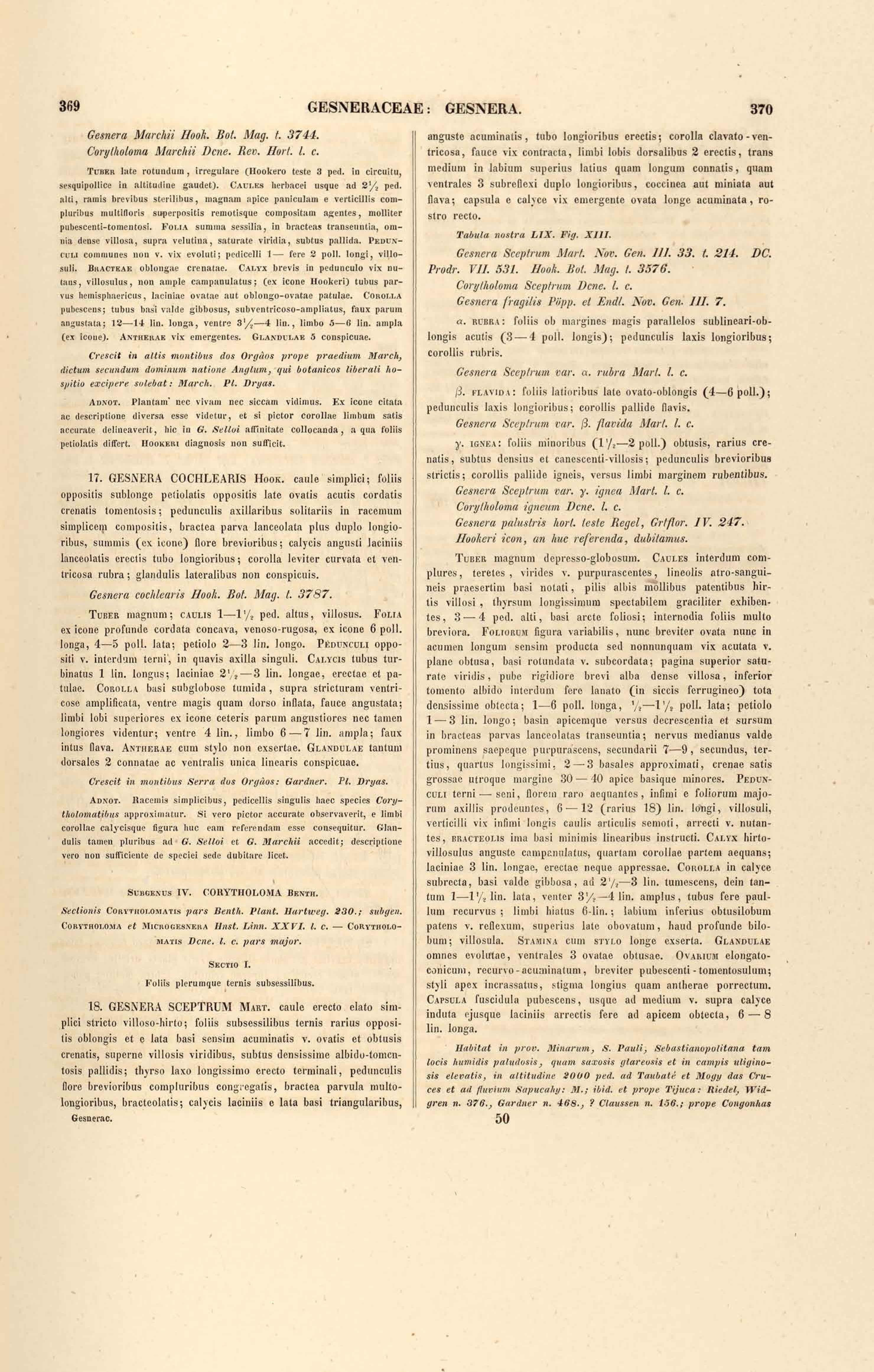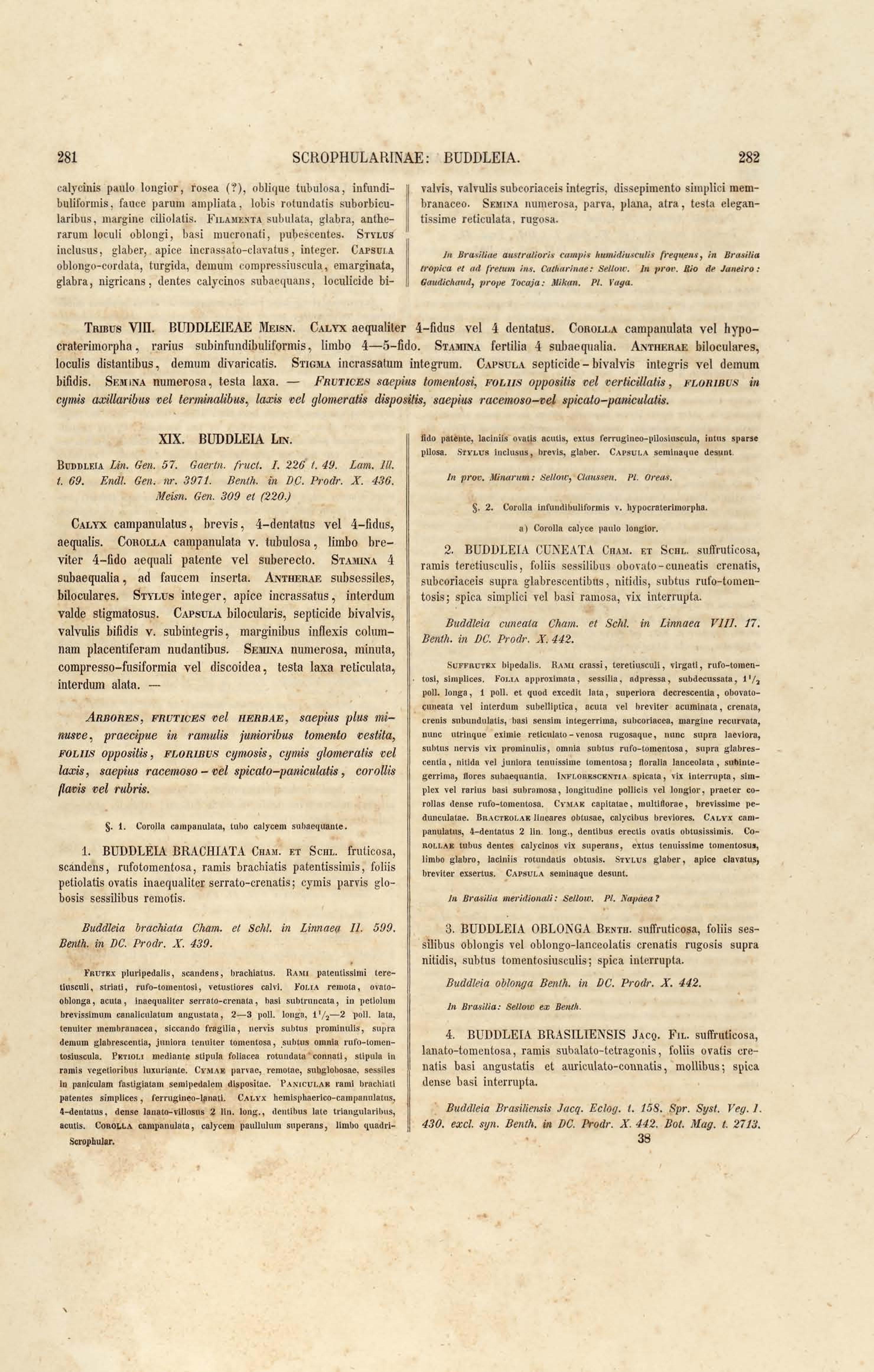 Flora brasiliensis : enumeratio plantarum in Brasilia hactenus detectarum quas suis aliorumque botanicorum studiis descriptas et methodo naturali digestas partim icone illustratas. Volumen VIII, Pars I, Cordiaceae, Heliotropieae, Borragineae, labiatae, Scrophularinae, Gesneraceae