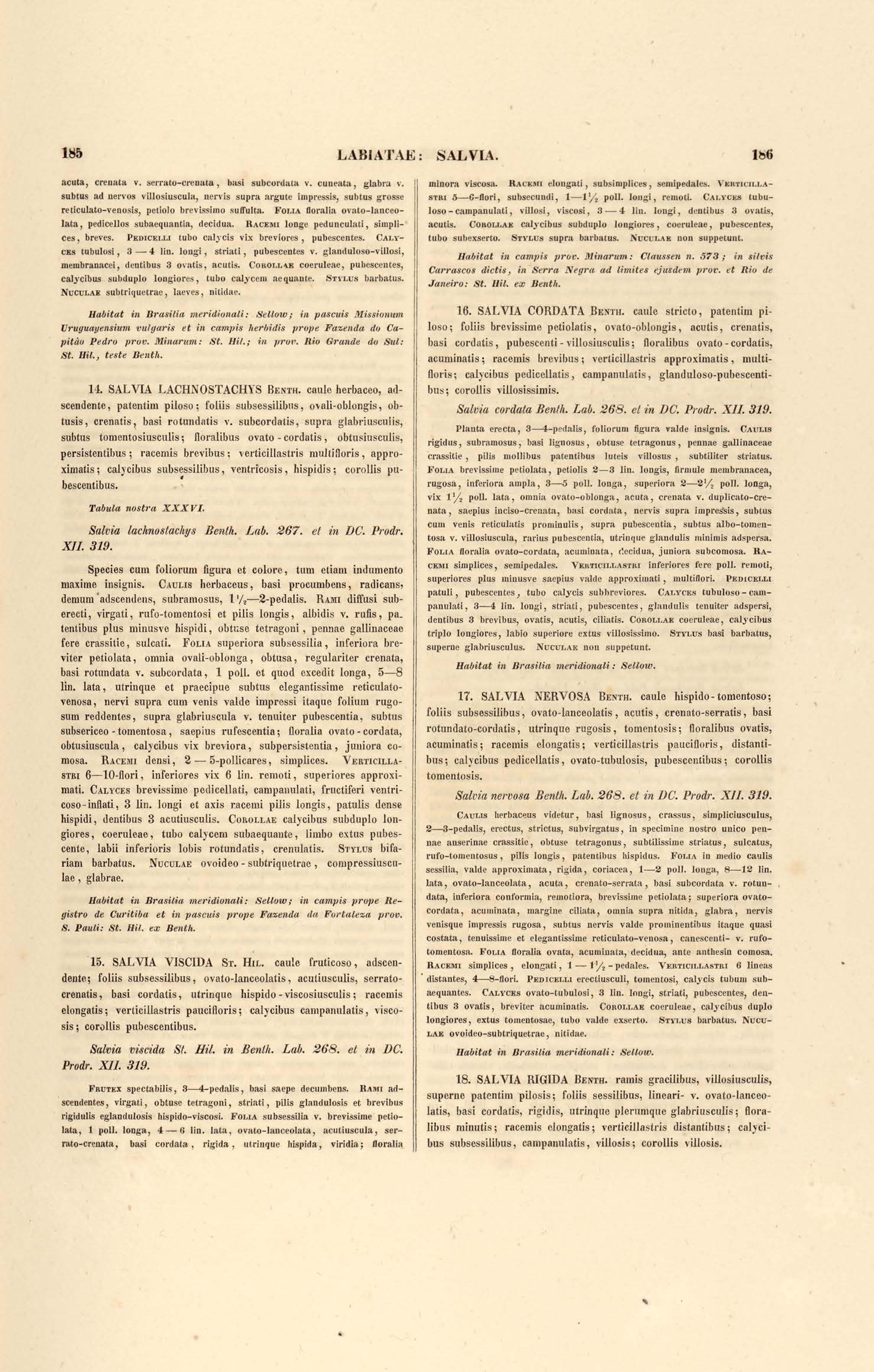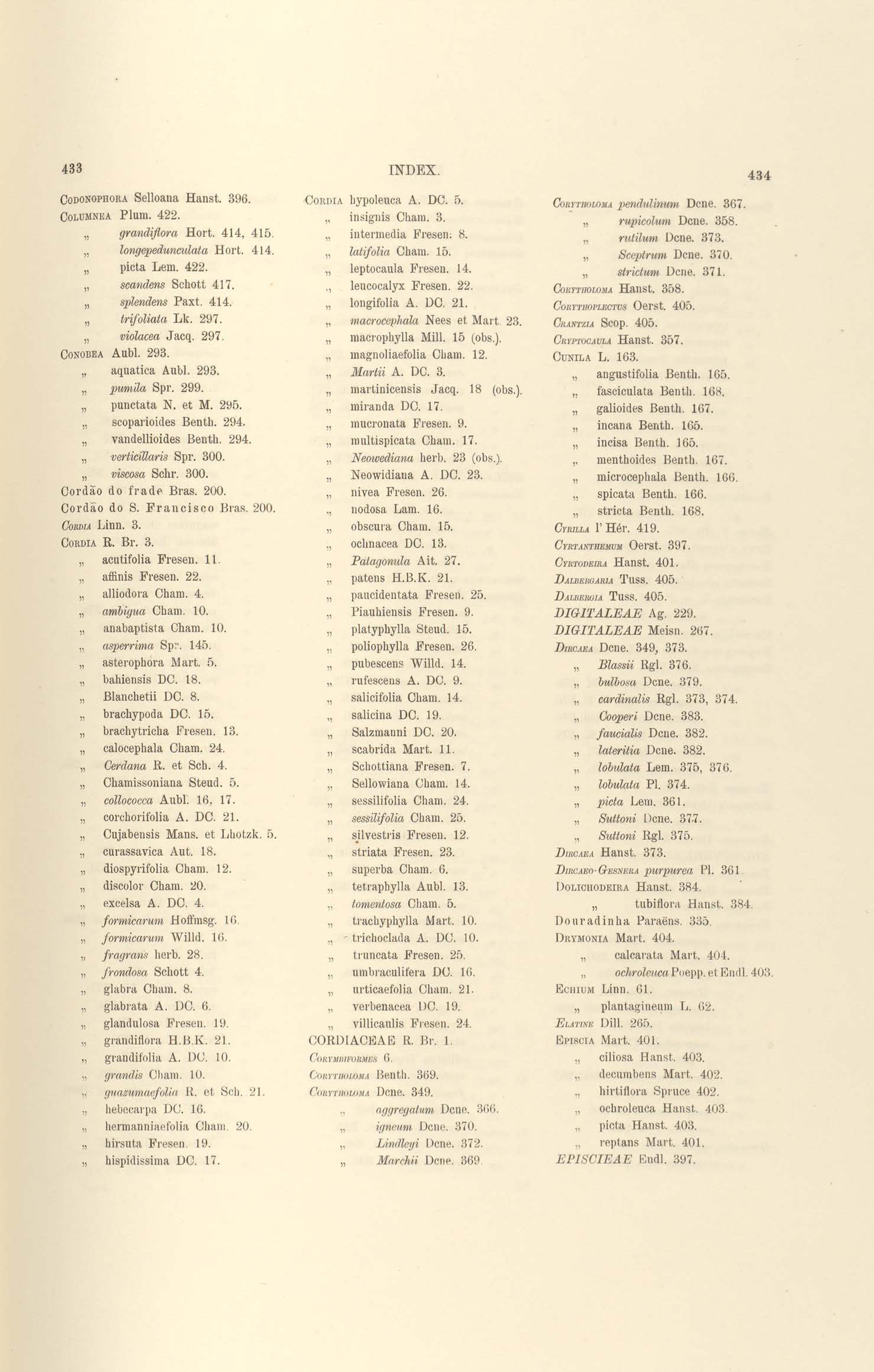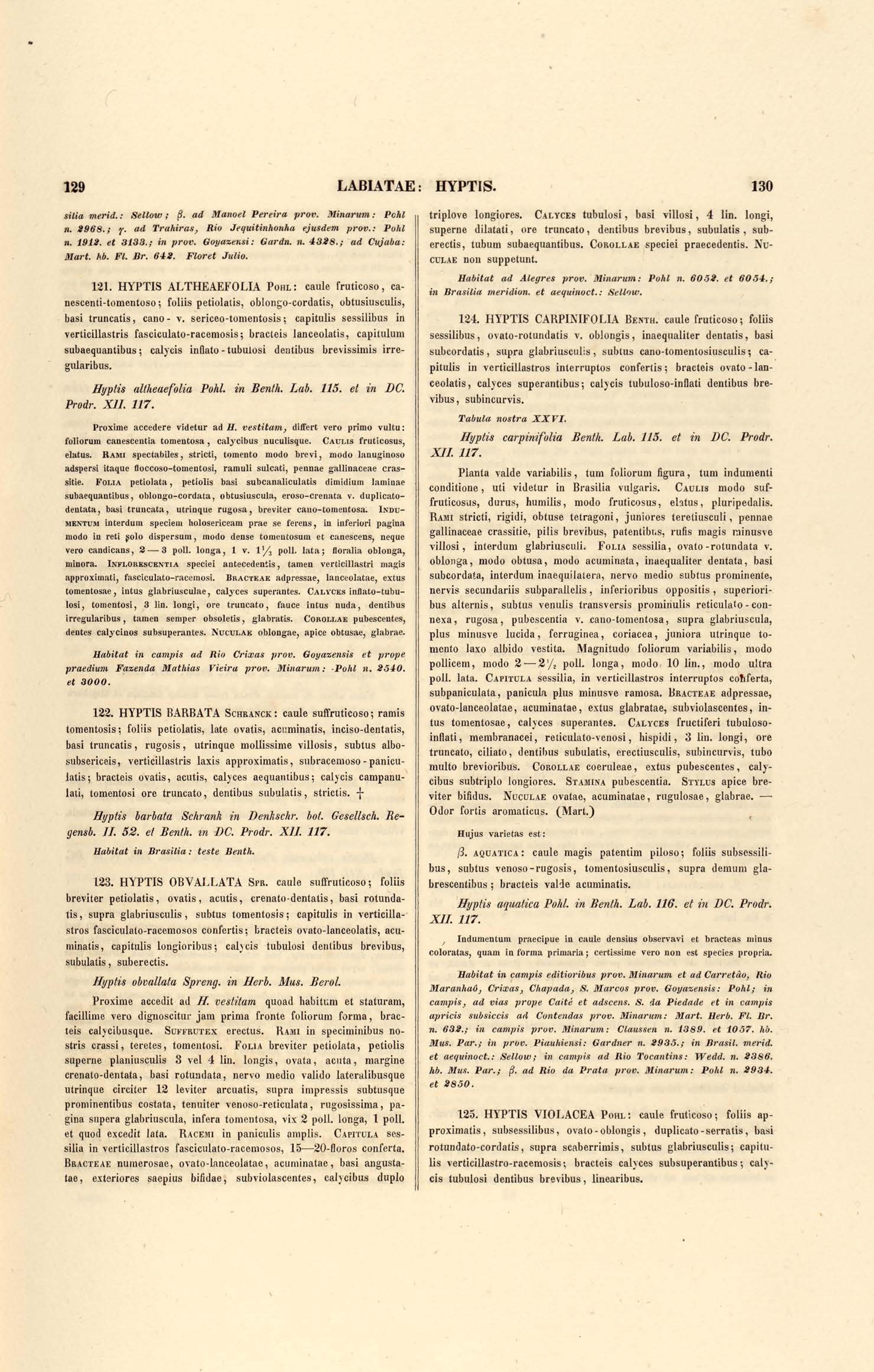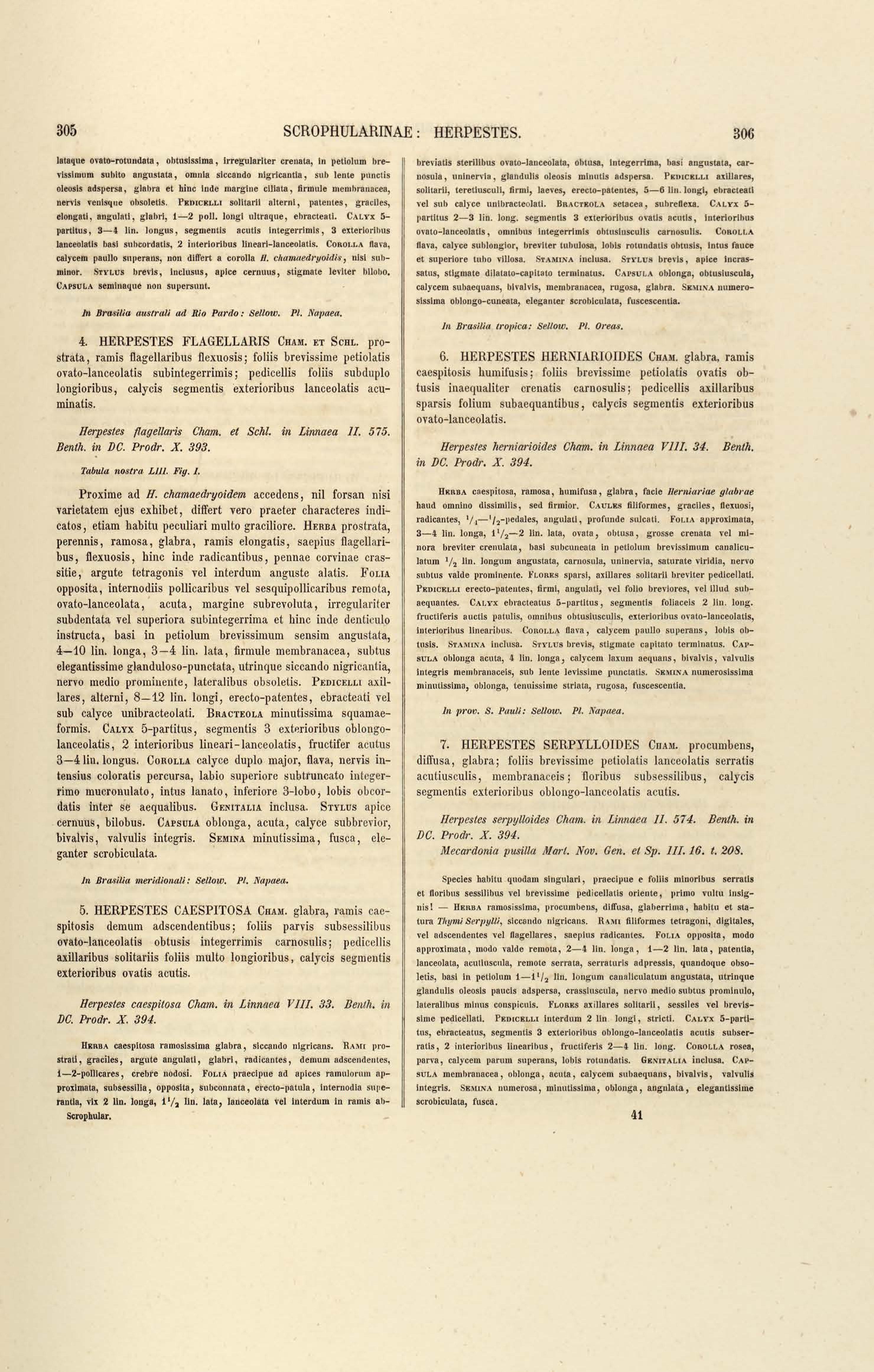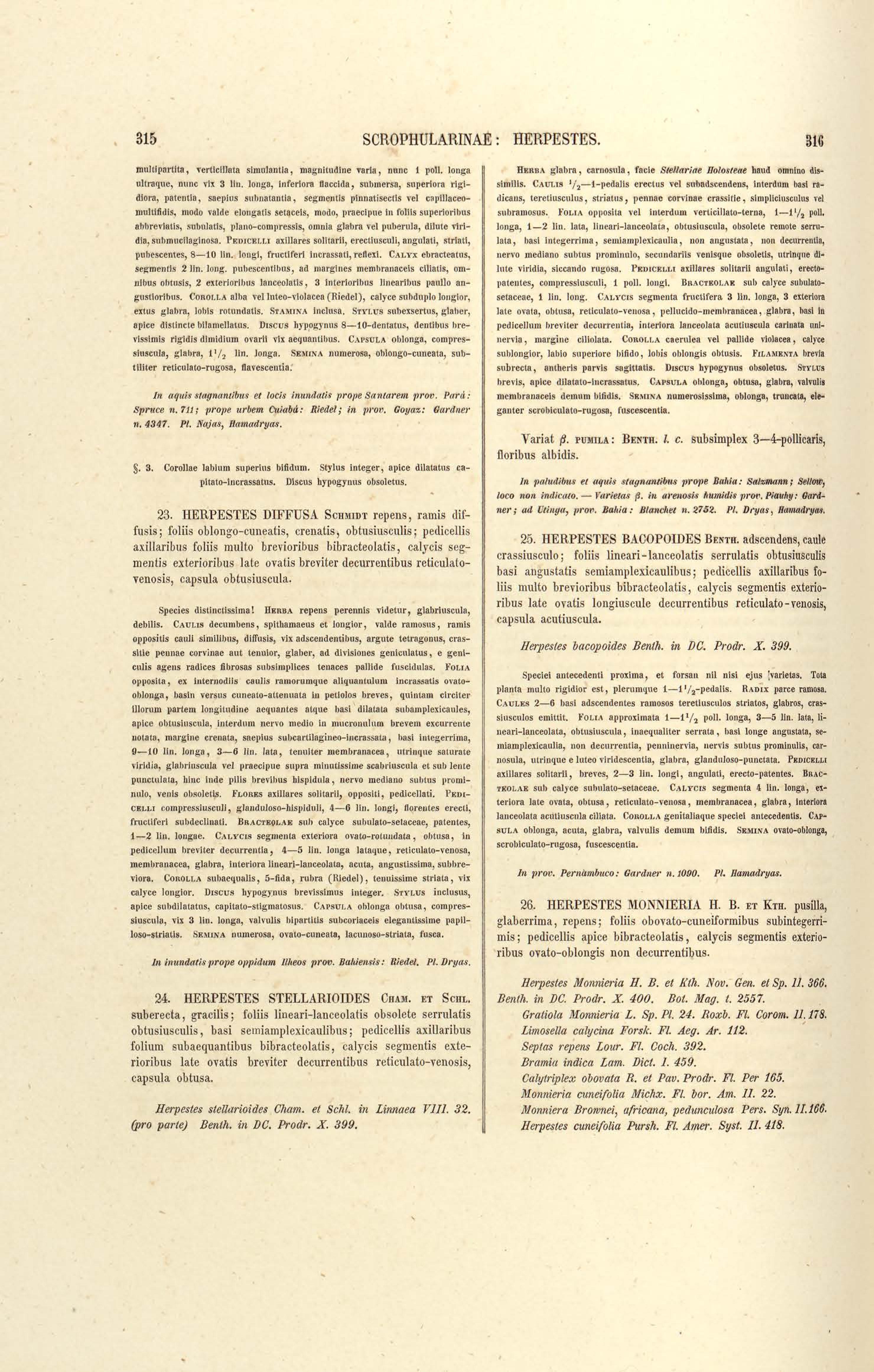 Flora brasiliensis : enumeratio plantarum in Brasilia hactenus detectarum quas suis aliorumque botanicorum studiis descriptas et methodo naturali digestas partim icone illustratas. Volumen VIII, Pars I, Cordiaceae, Heliotropieae, Borragineae, labiatae, Scrophularinae, Gesneraceae