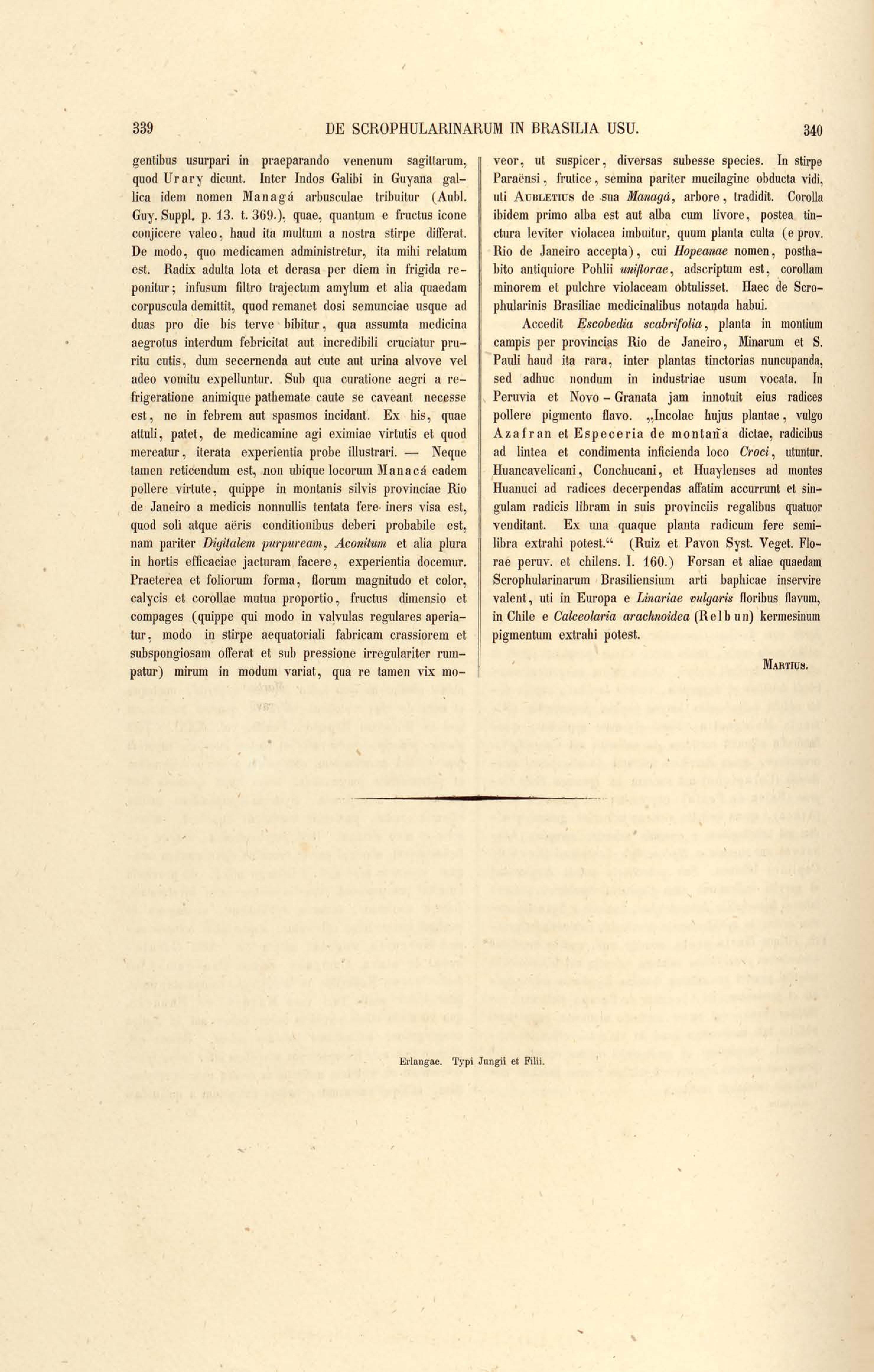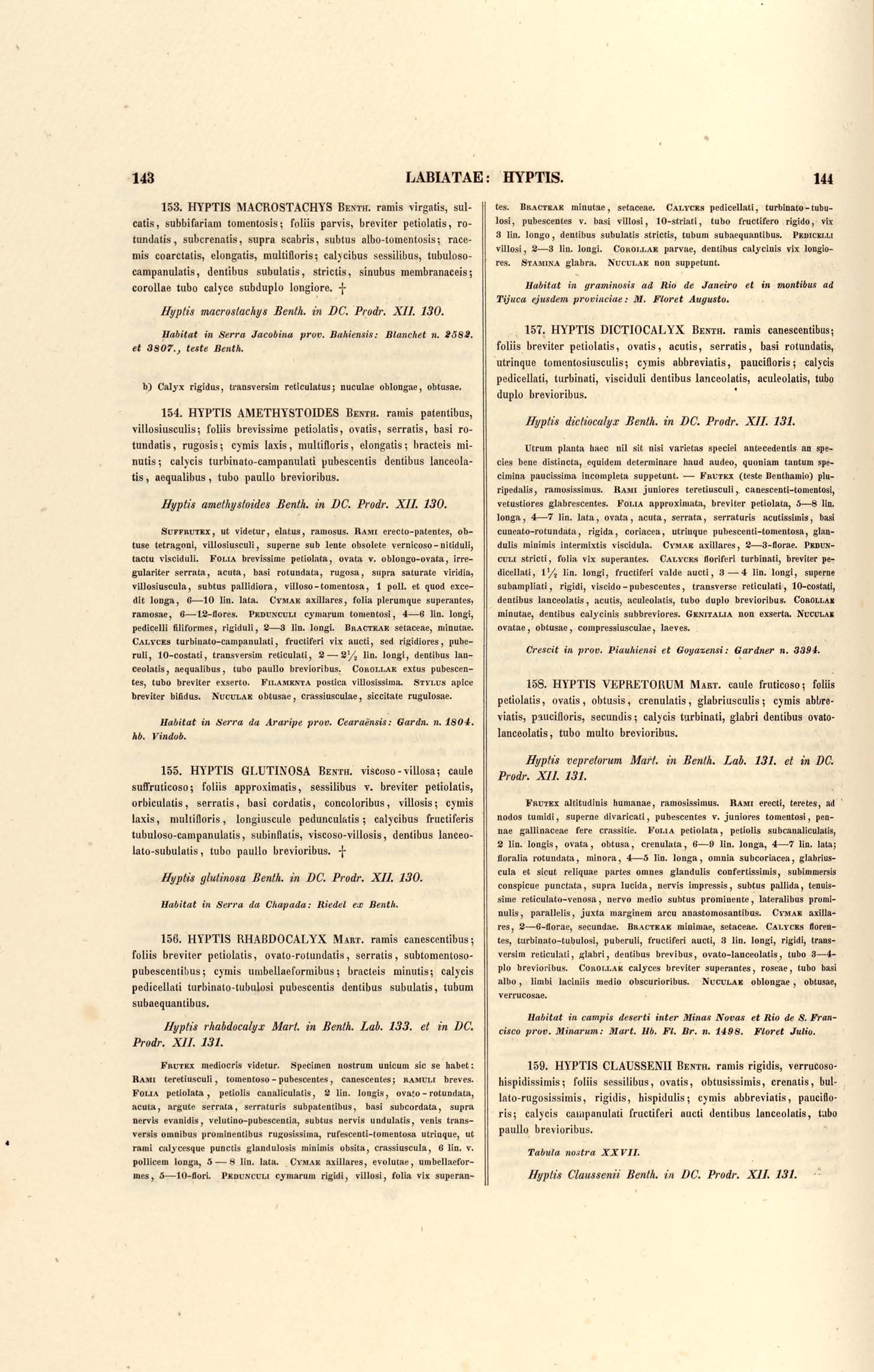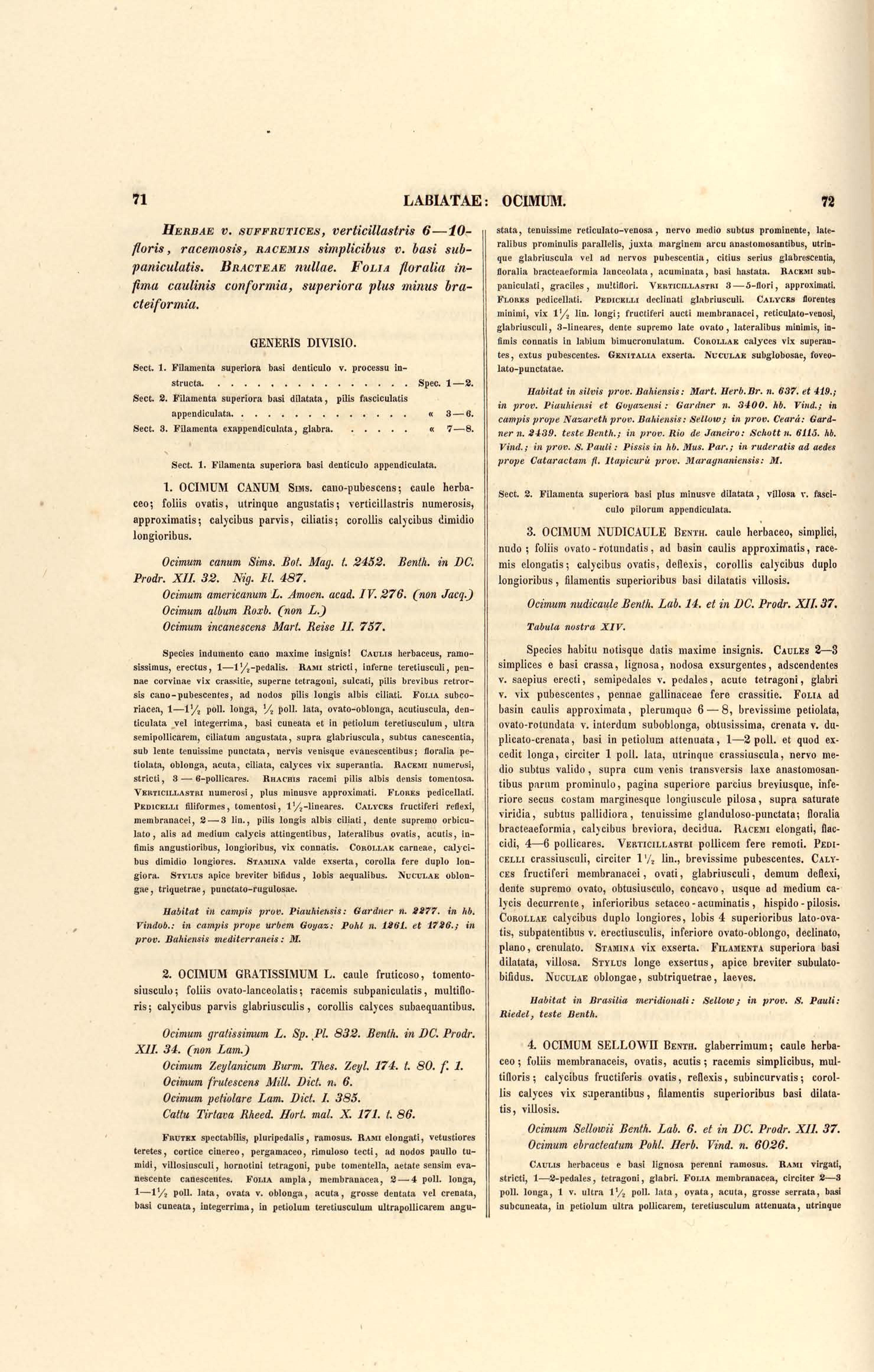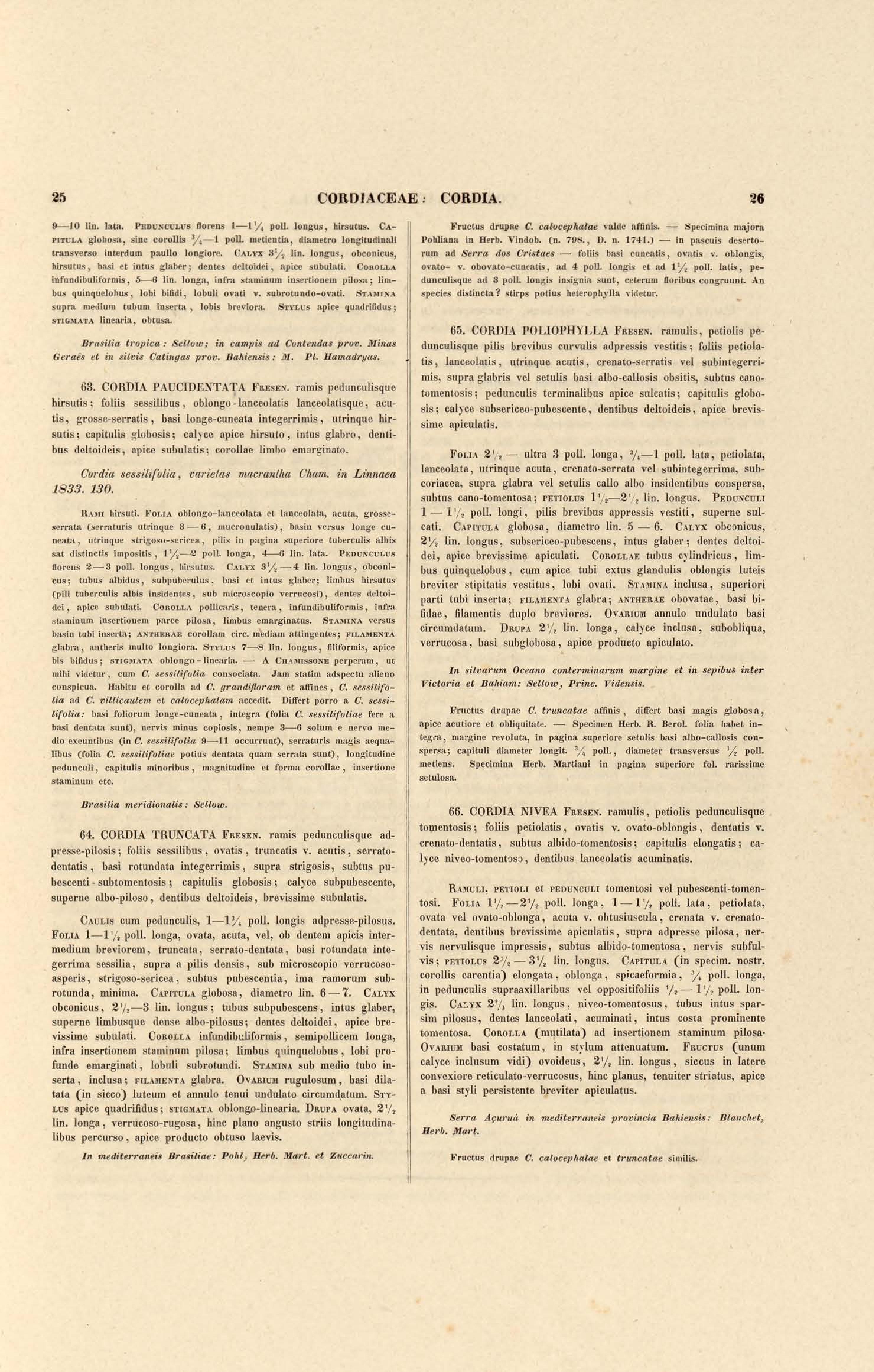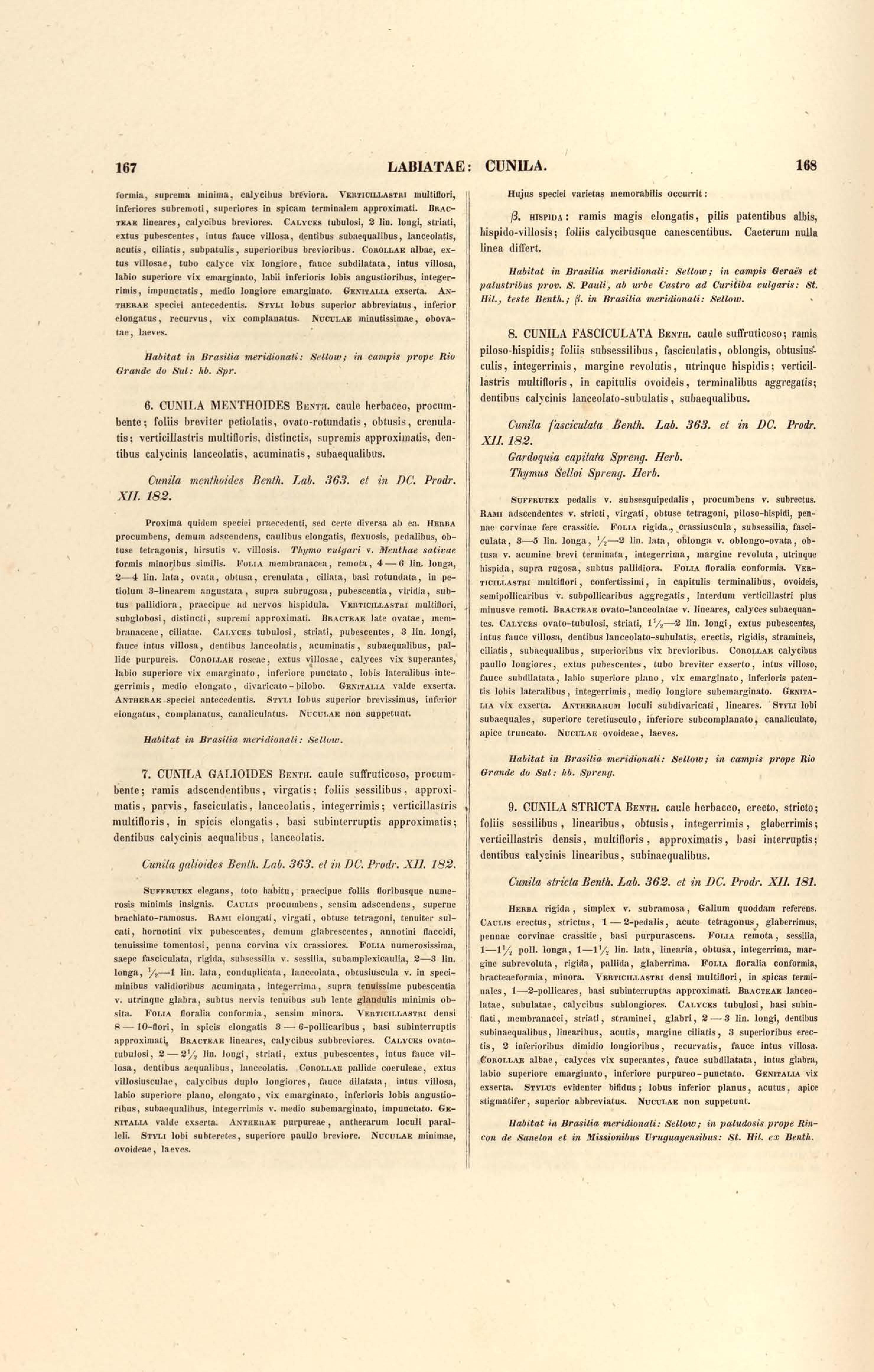 Flora brasiliensis : enumeratio plantarum in Brasilia hactenus detectarum quas suis aliorumque botanicorum studiis descriptas et methodo naturali digestas partim icone illustratas. Volumen VIII, Pars I, Cordiaceae, Heliotropieae, Borragineae, labiatae, Scrophularinae, Gesneraceae