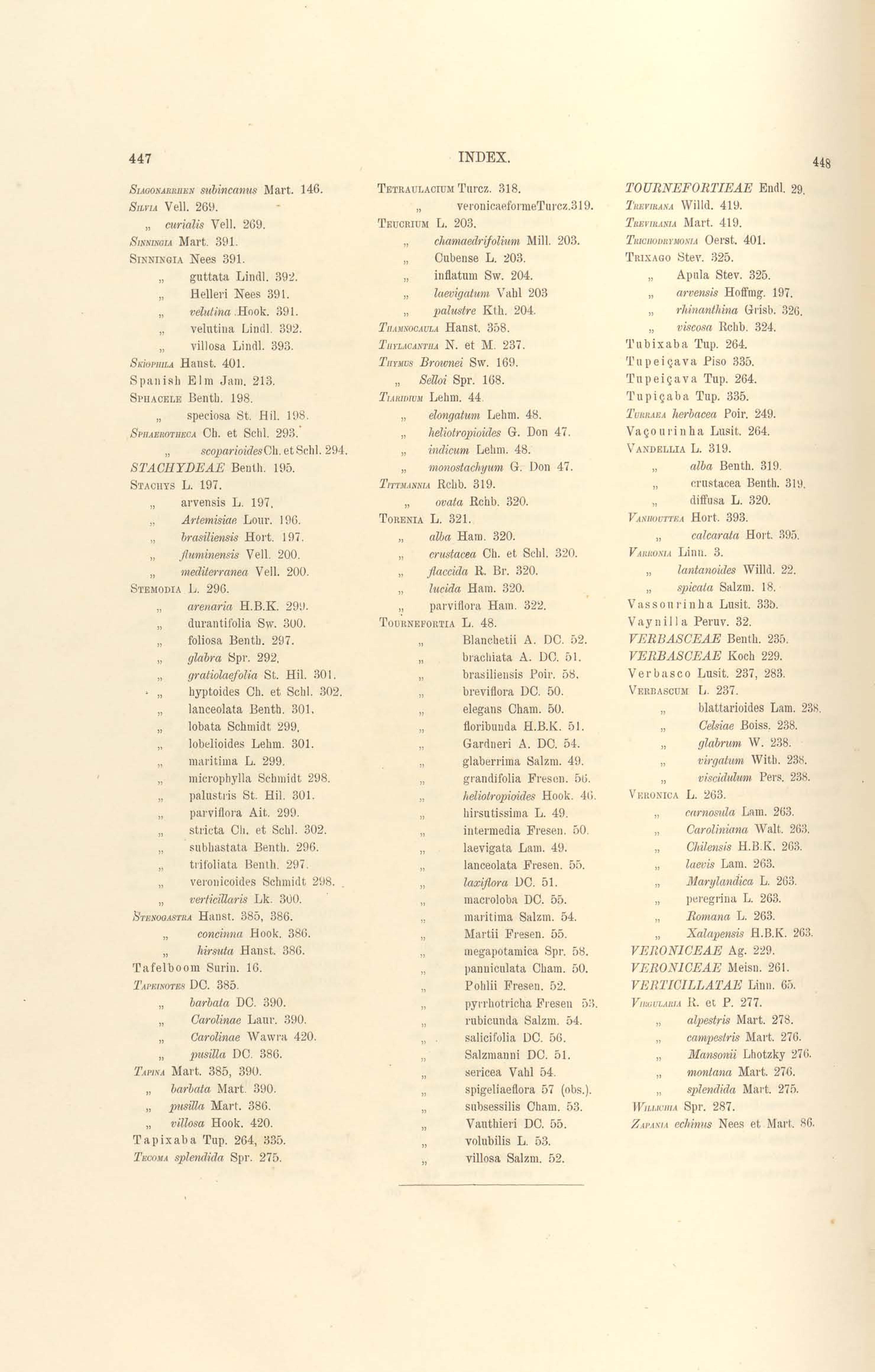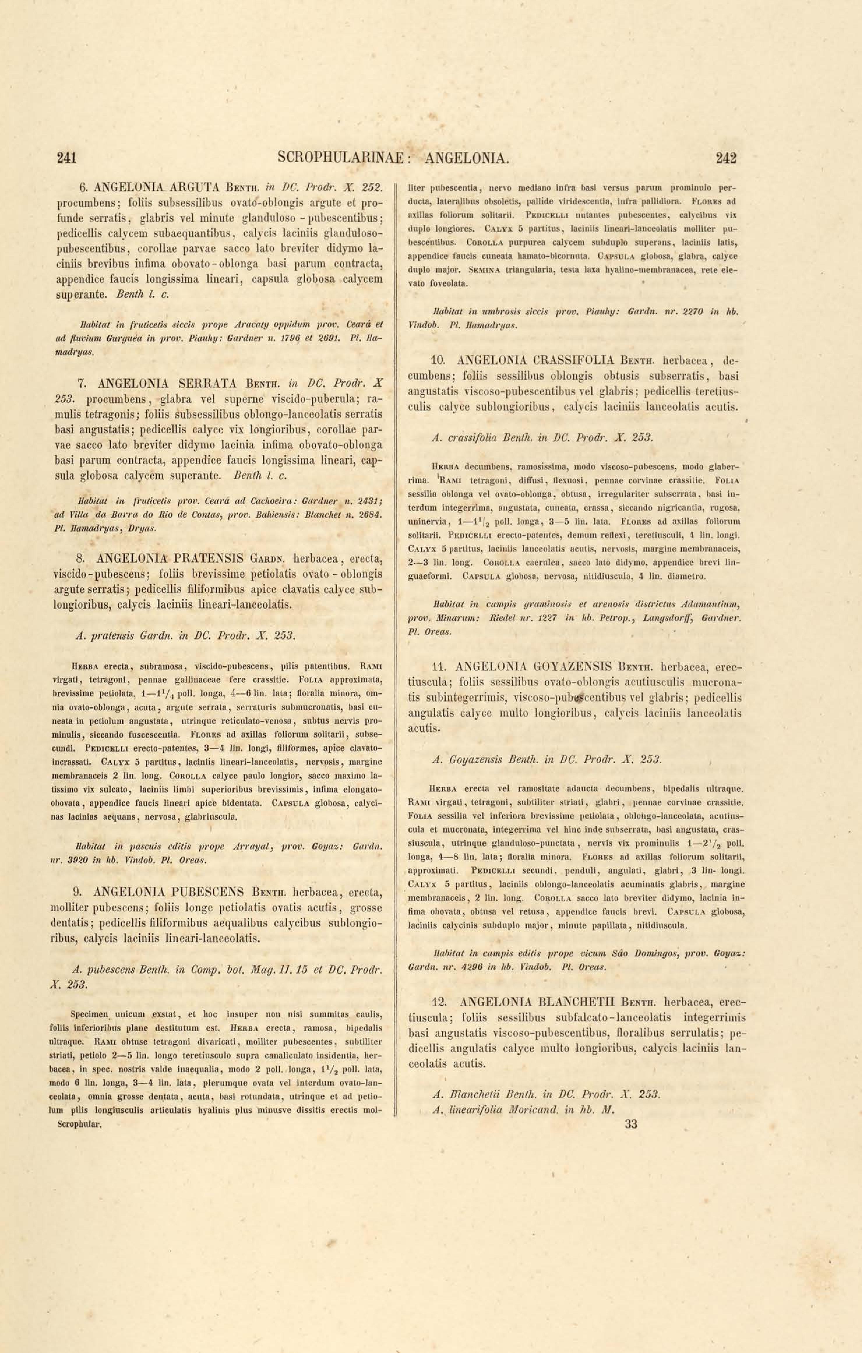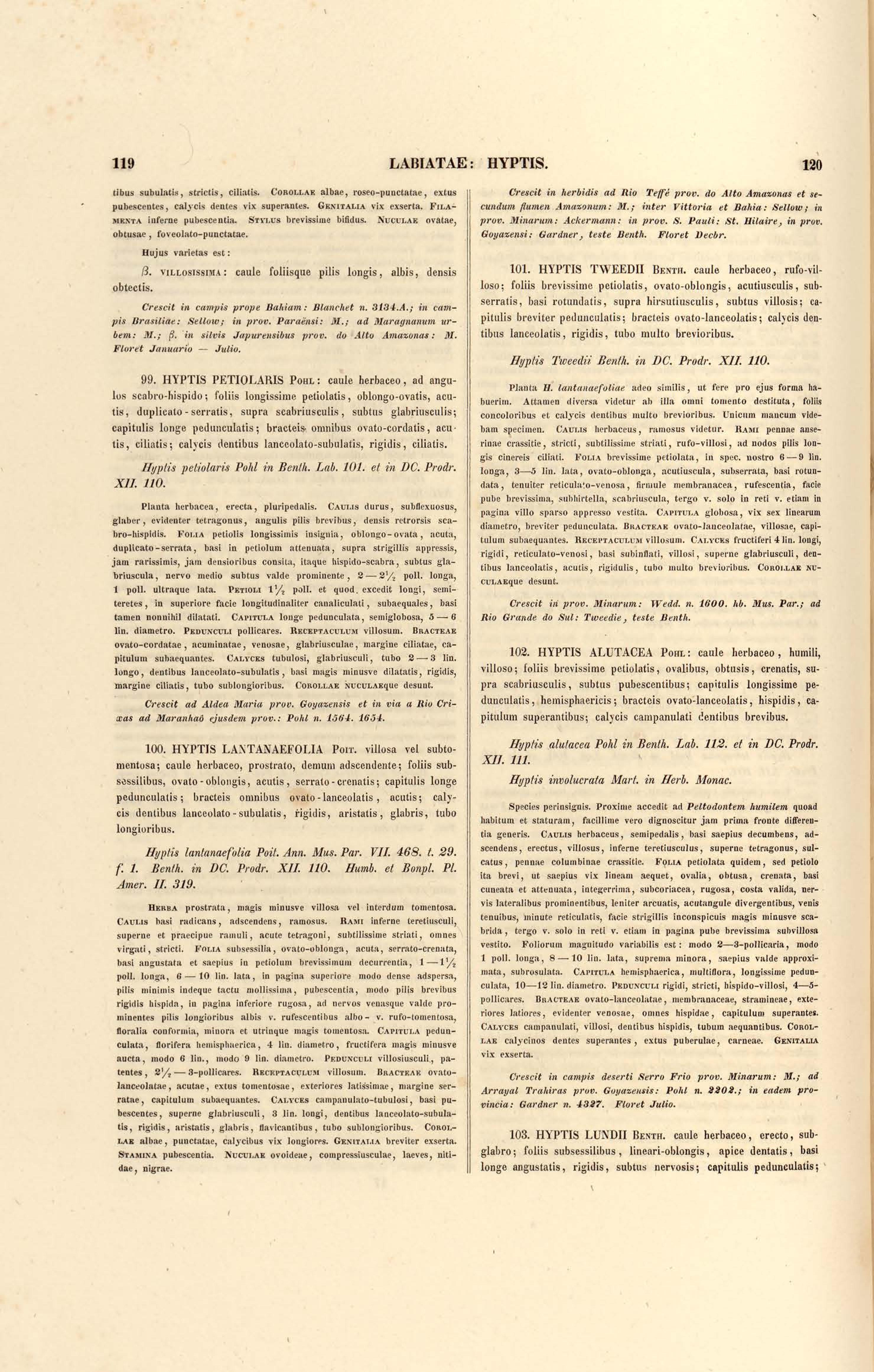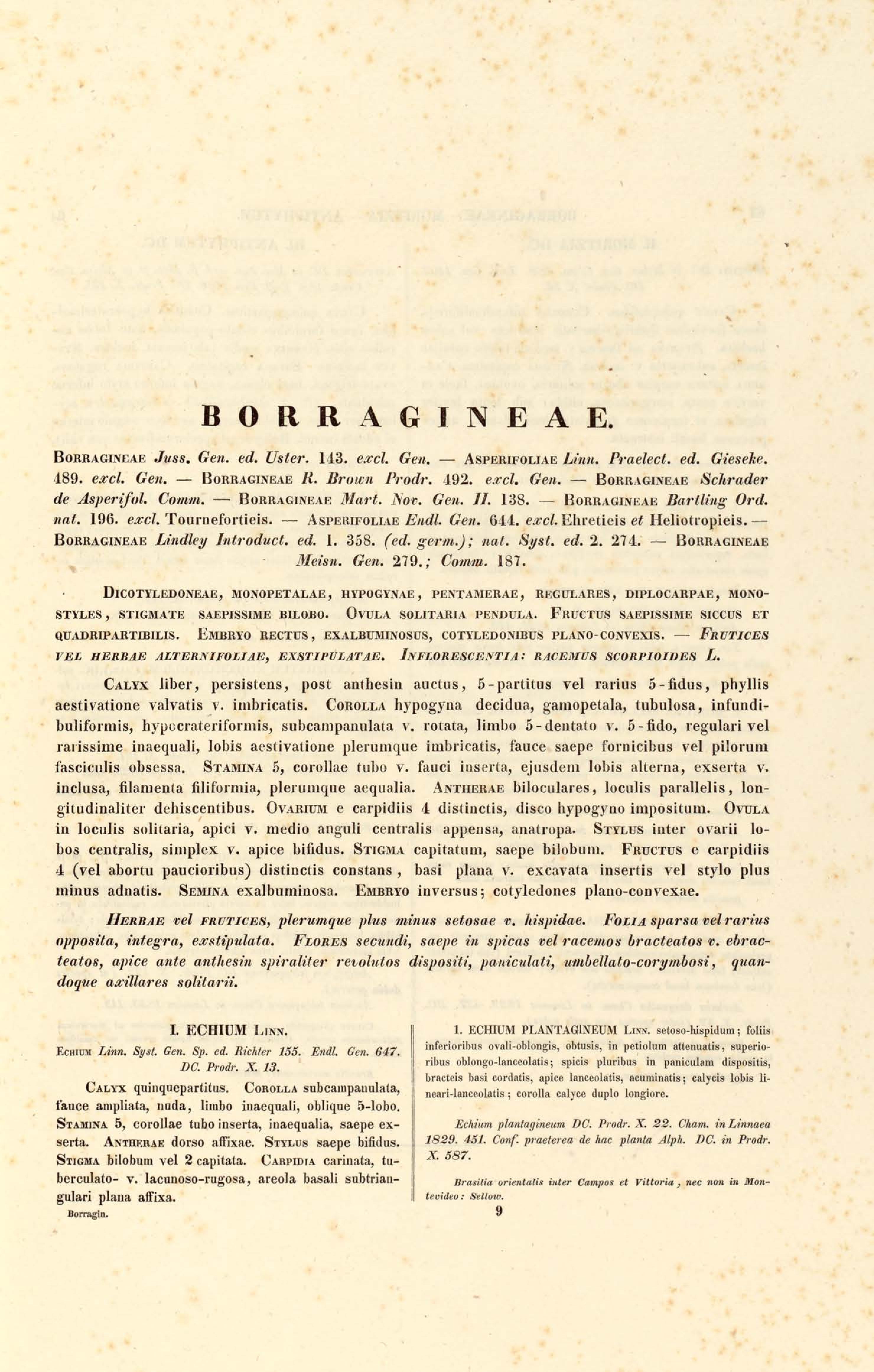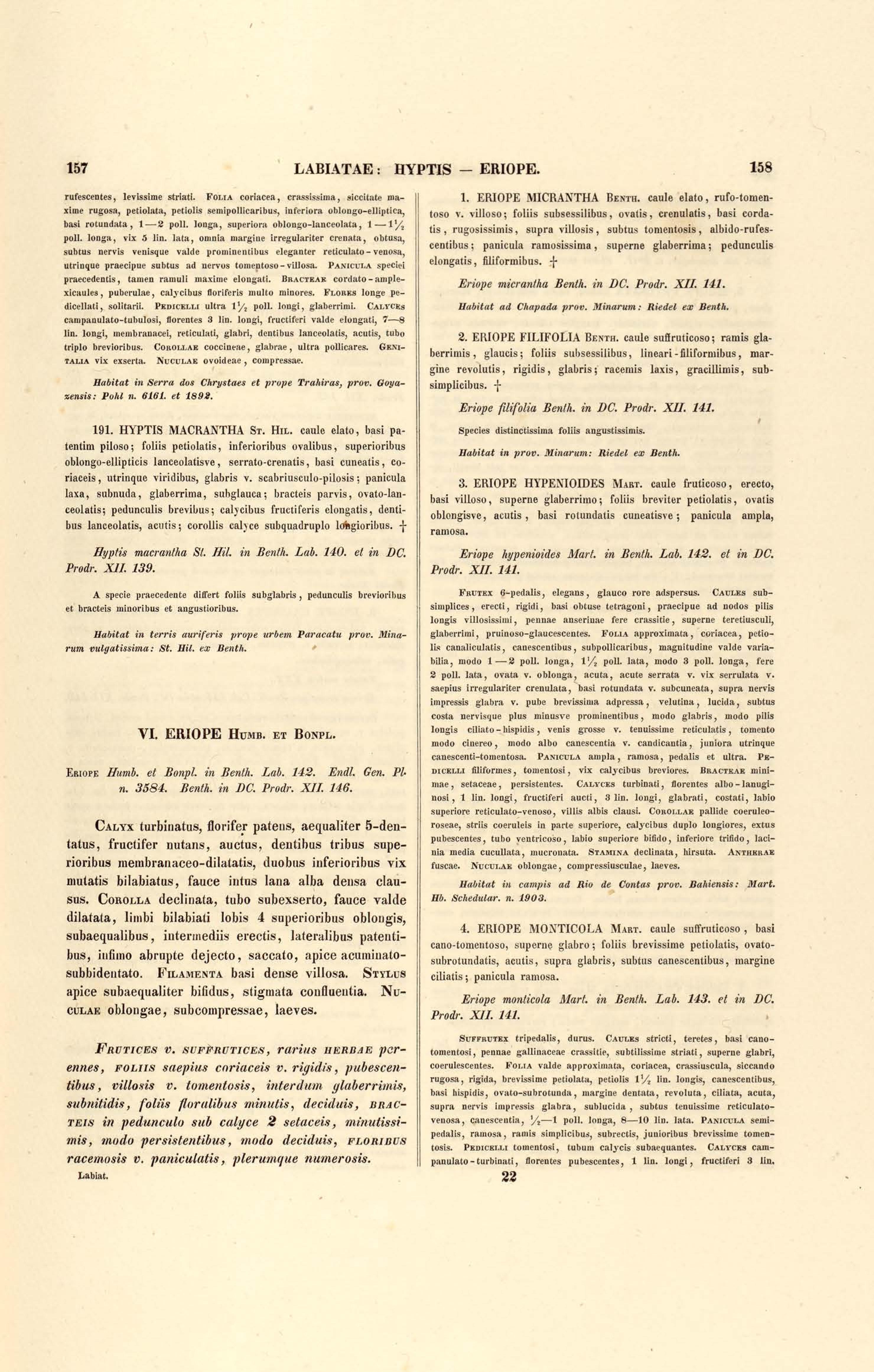 Flora brasiliensis : enumeratio plantarum in Brasilia hactenus detectarum quas suis aliorumque botanicorum studiis descriptas et methodo naturali digestas partim icone illustratas. Volumen VIII, Pars I, Cordiaceae, Heliotropieae, Borragineae, labiatae, Scrophularinae, Gesneraceae