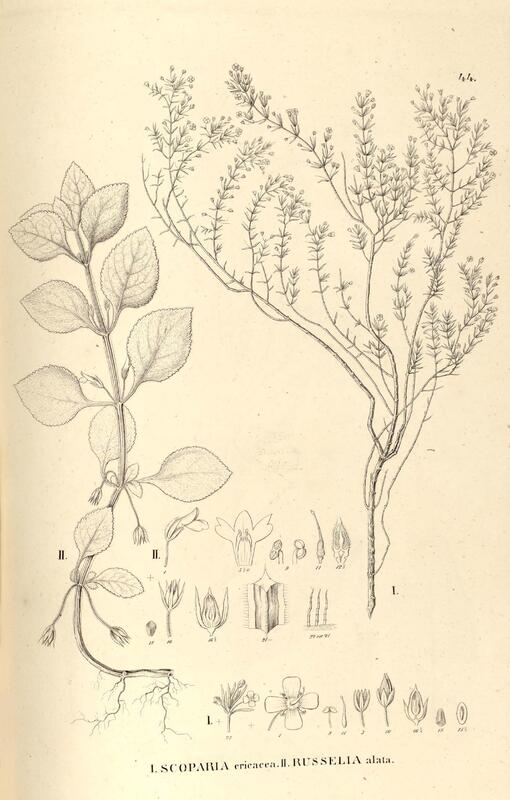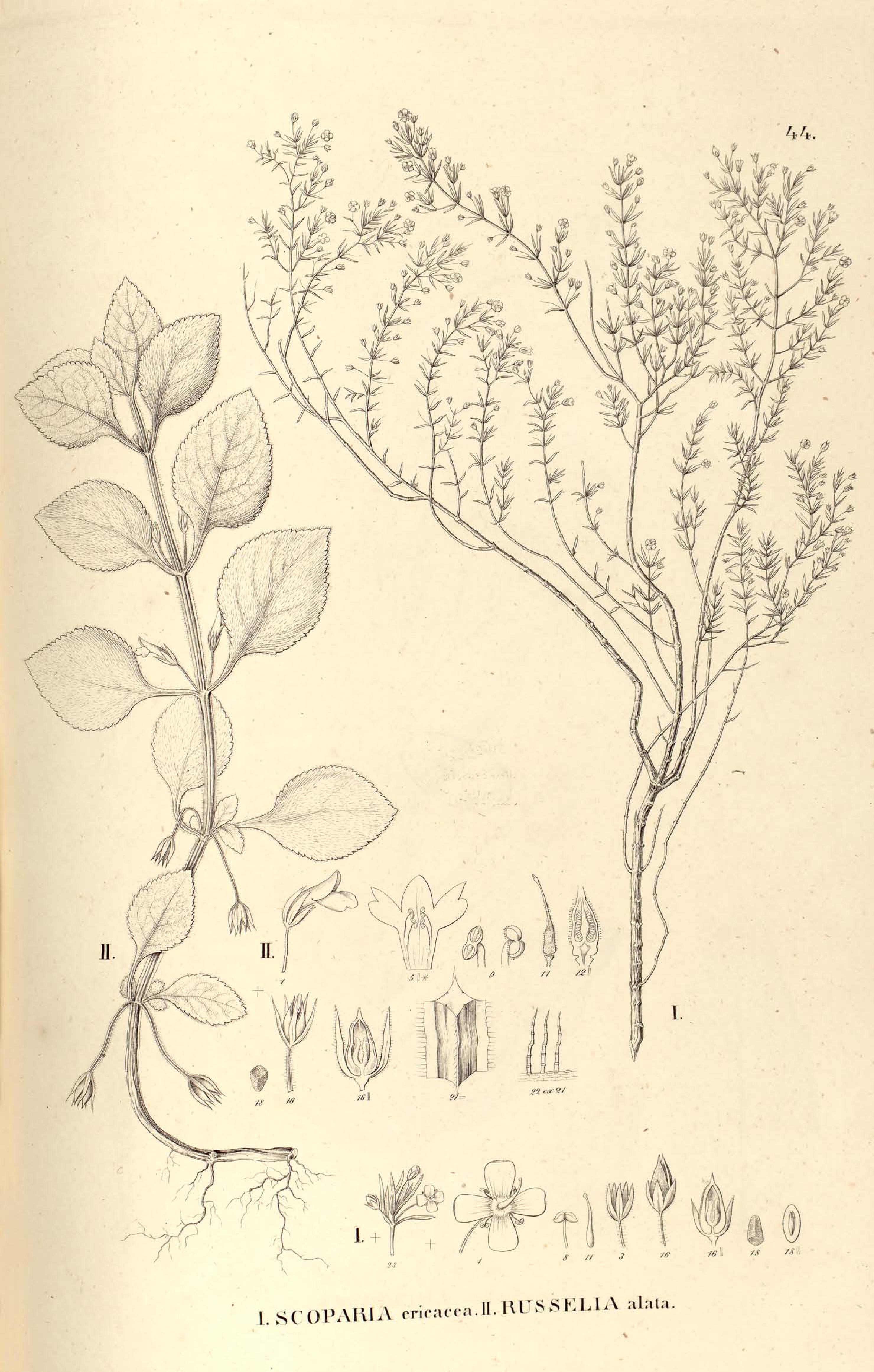44. I. SCOPARIA cricacea. II. RUSSELIA alata.