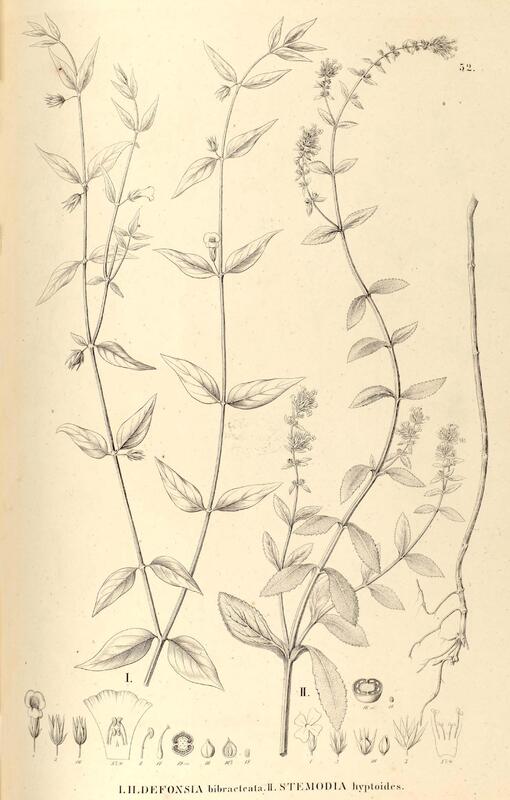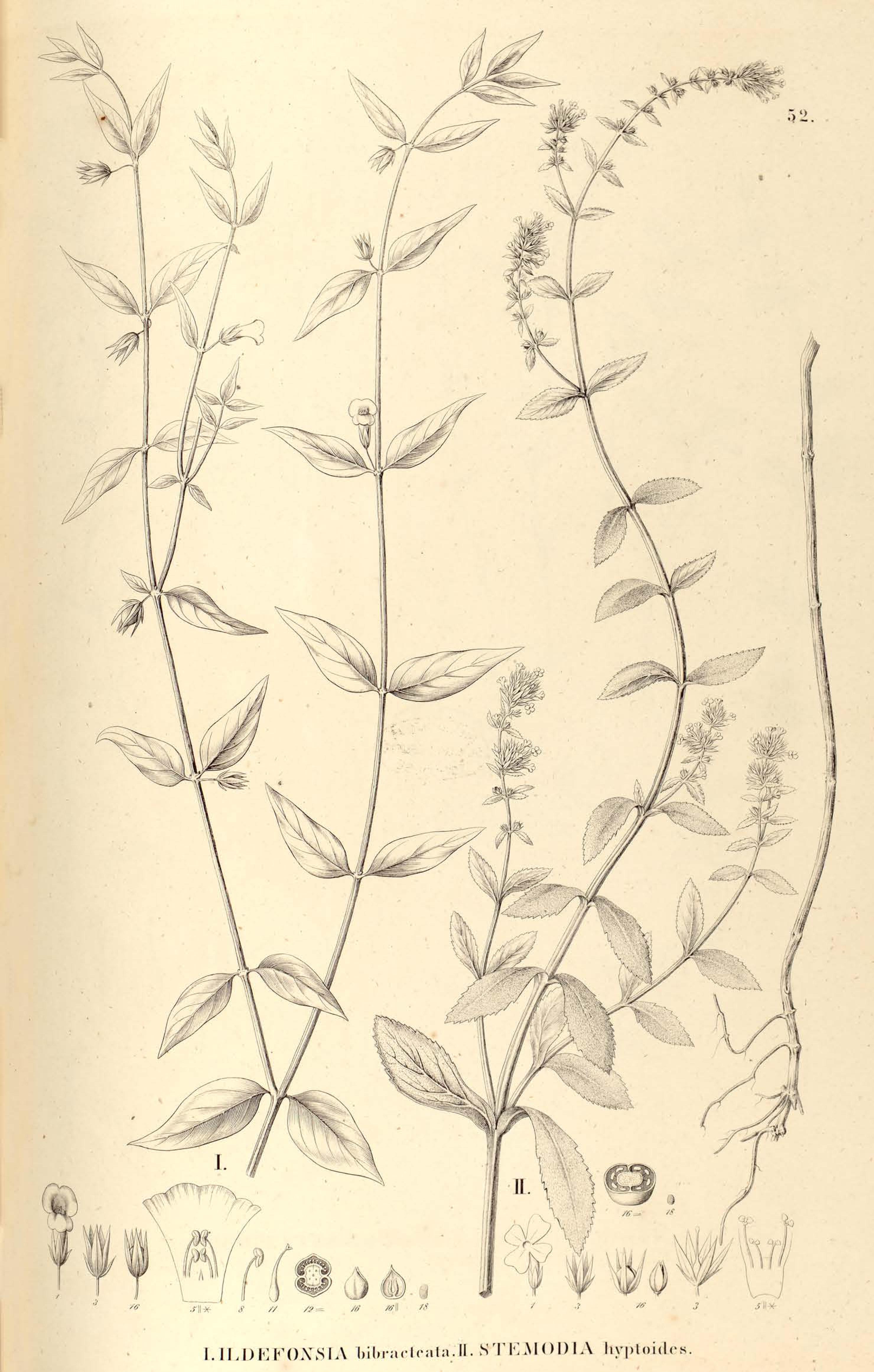 52. I. ILDEFONSIA bibracteata. II. STEMODIA hyptoides.