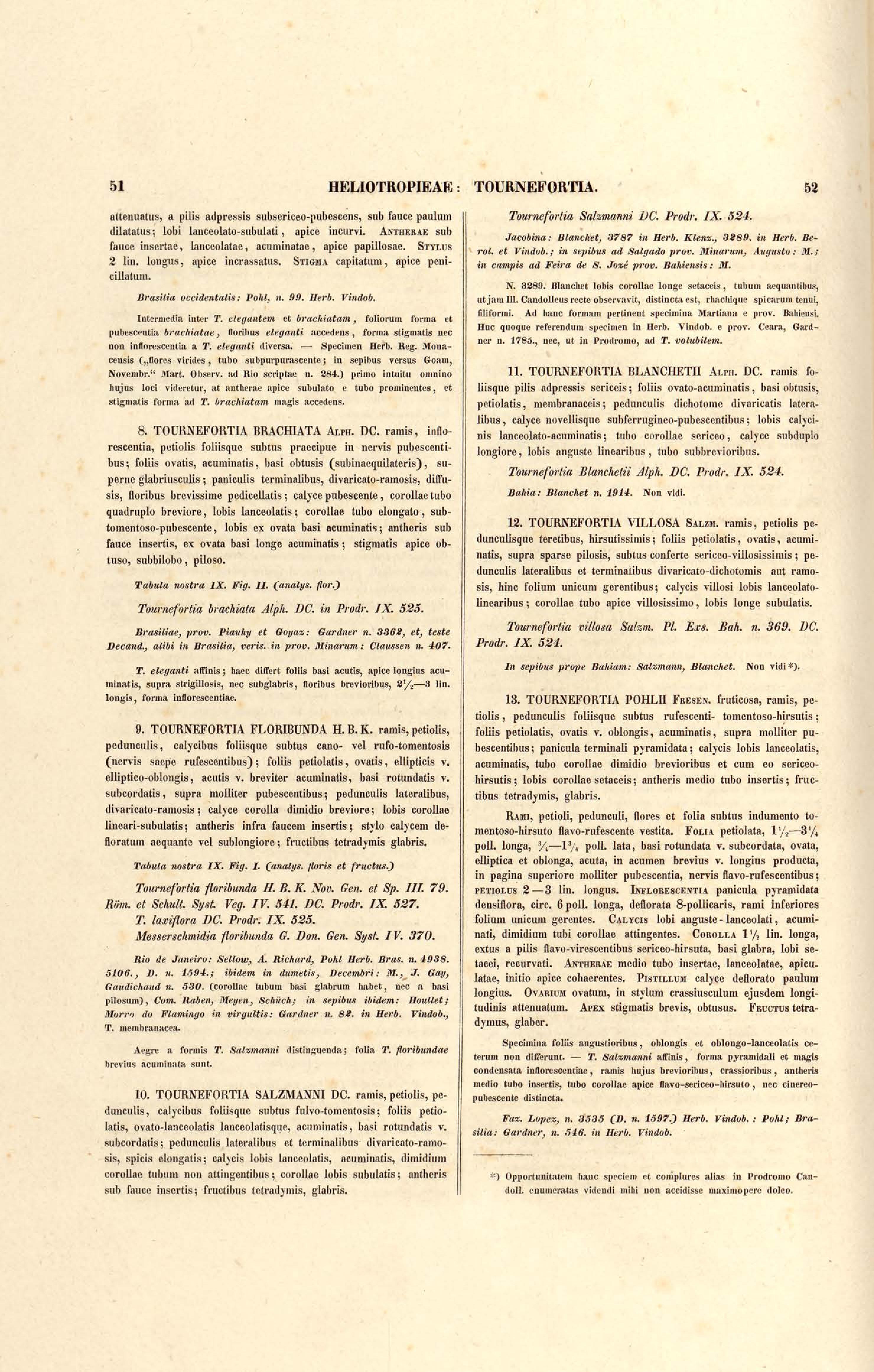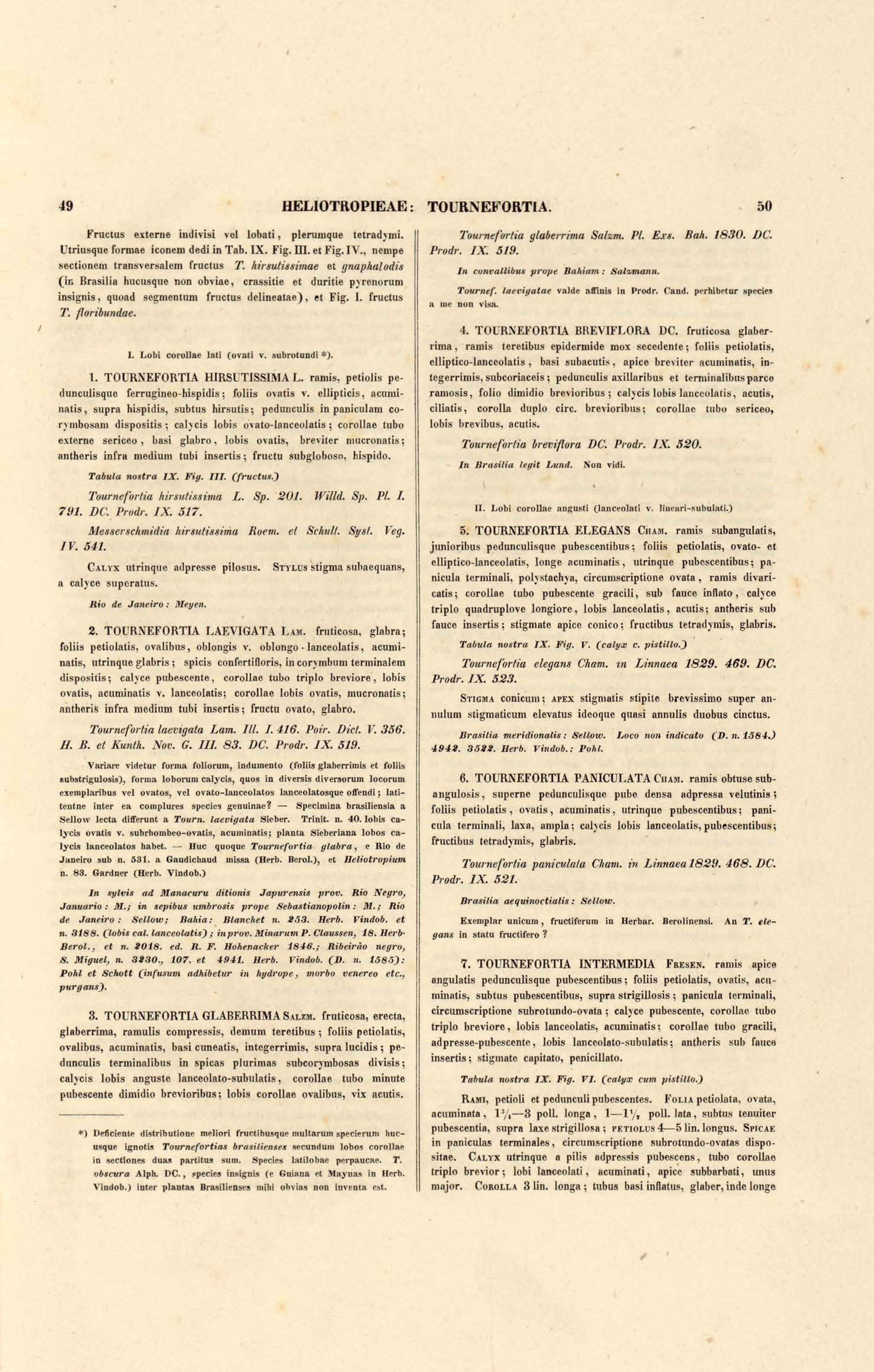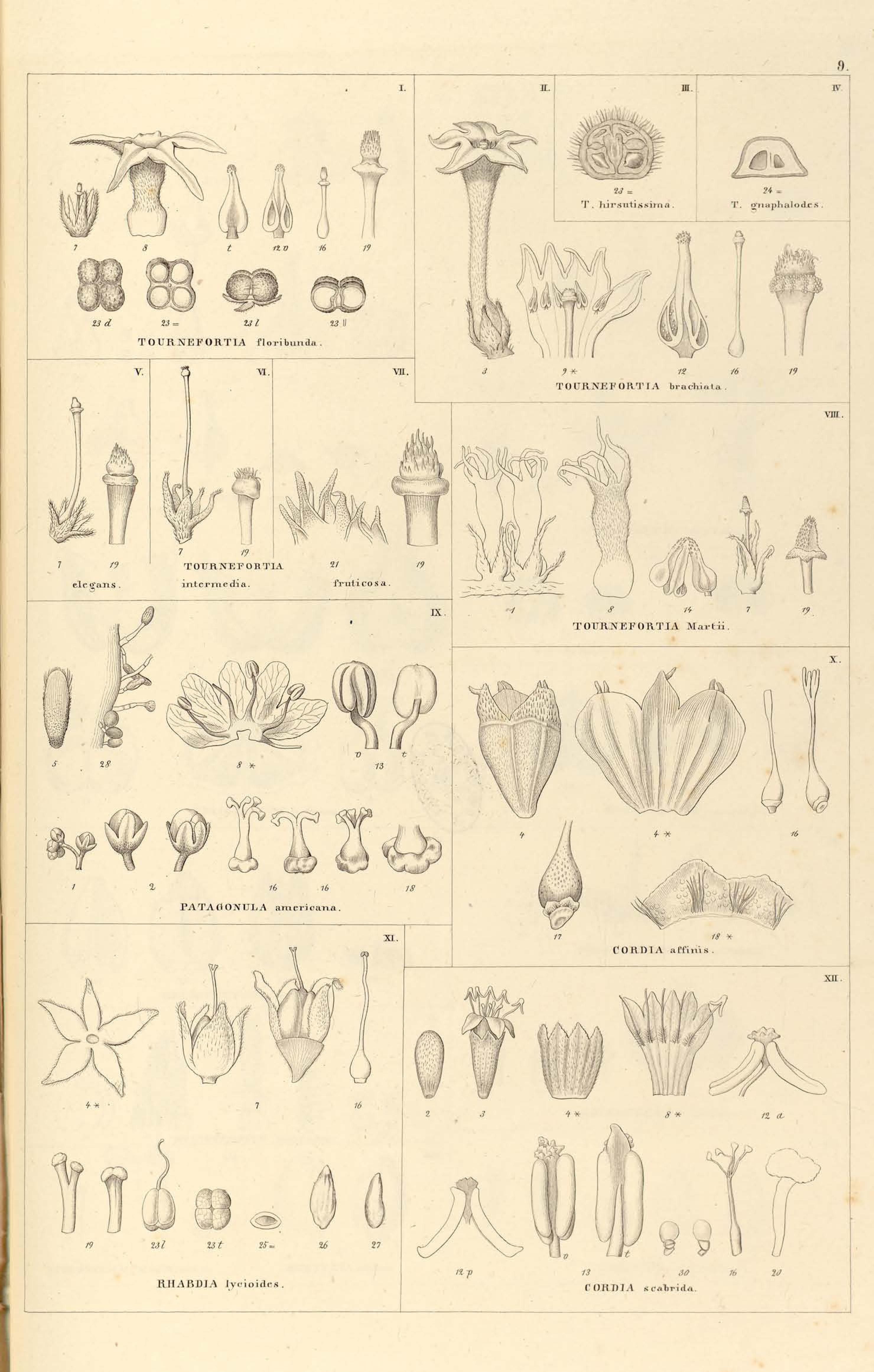 9. V. TOURNEFORTIA elegans., VI. TOURNEFORTIA intermedia., VII. TOURNEFORTIA fruticosa.