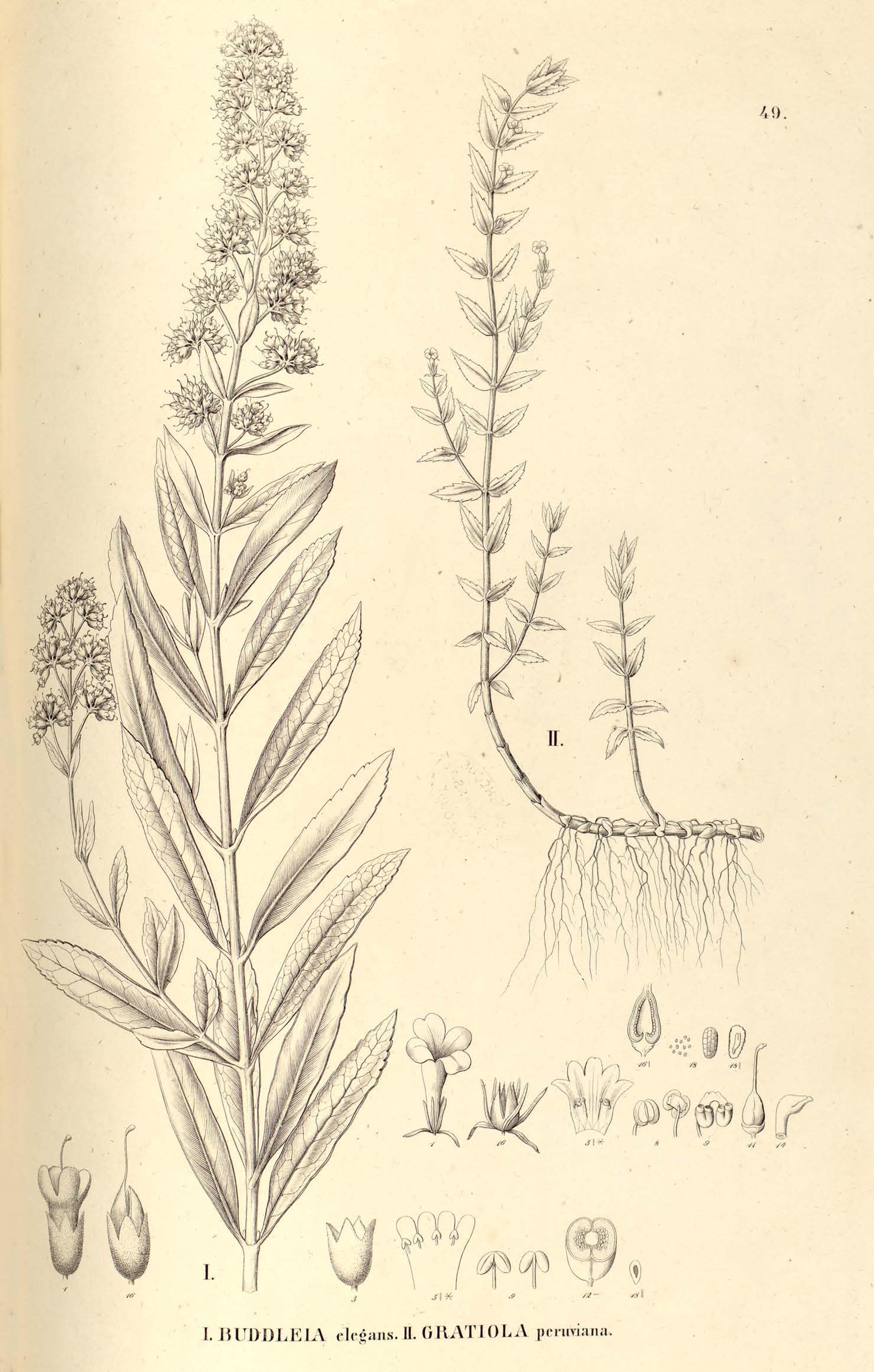 49. I. BUDDLEIA elegans. II. GRATIOLA peruviana.