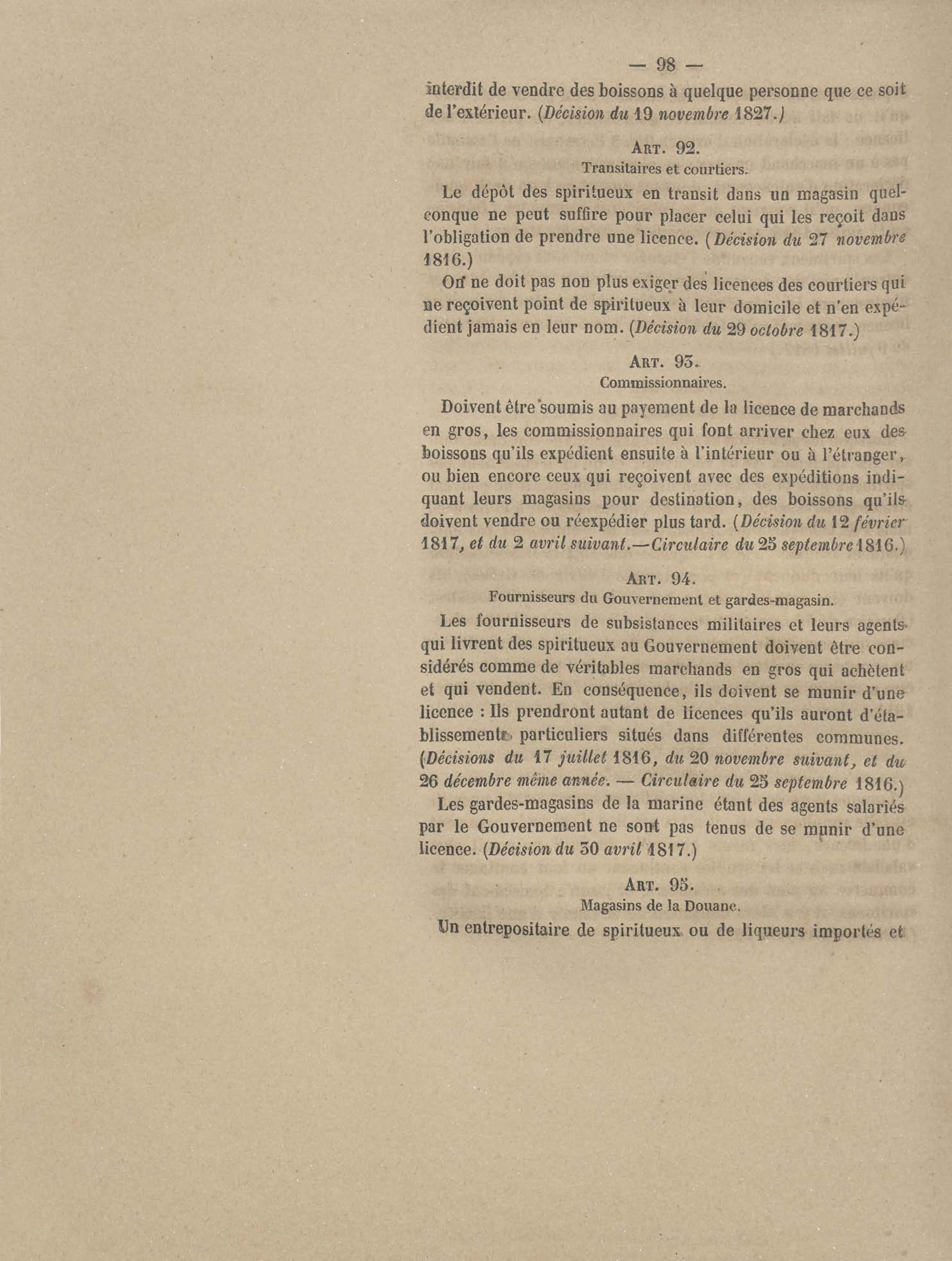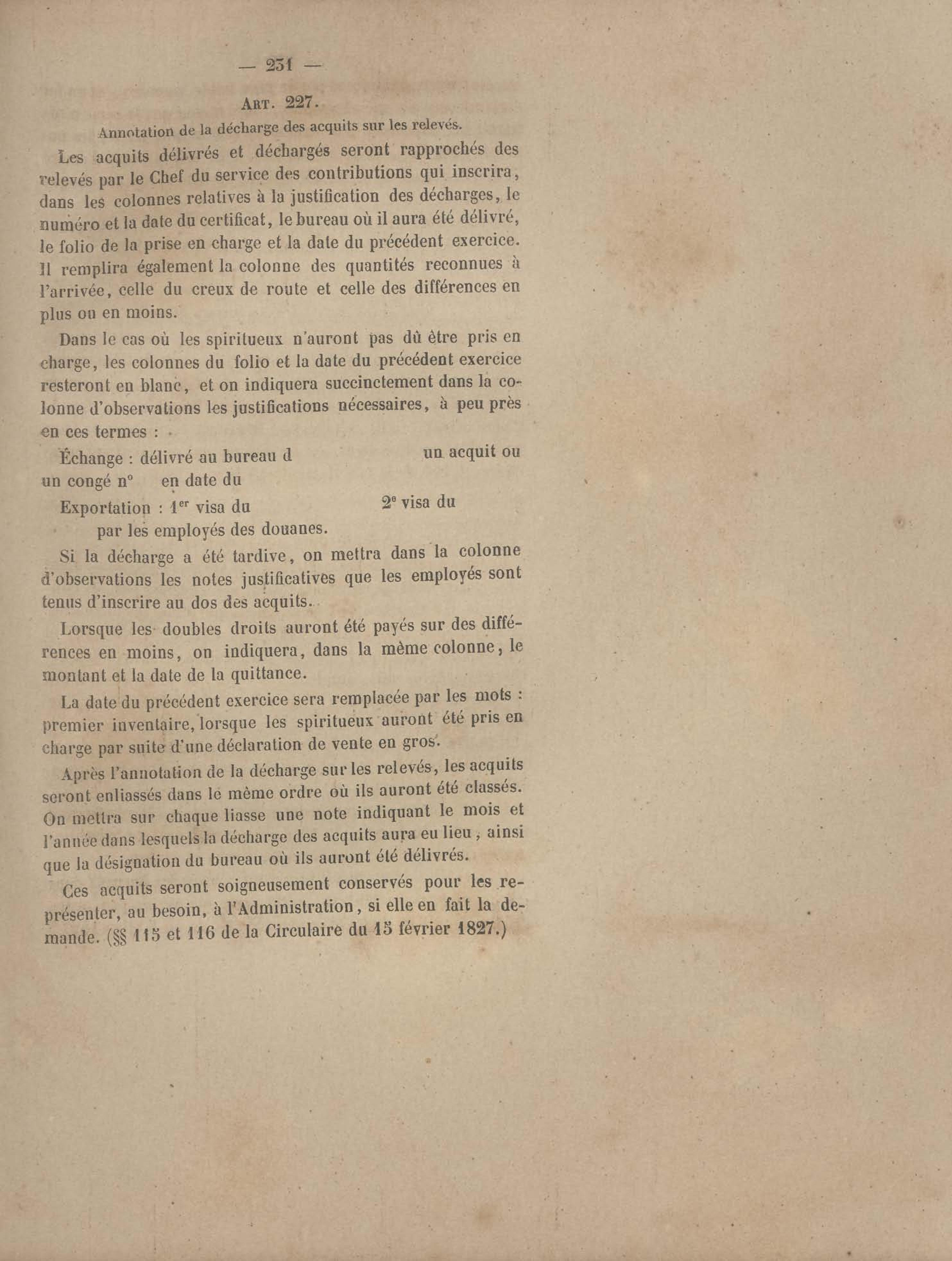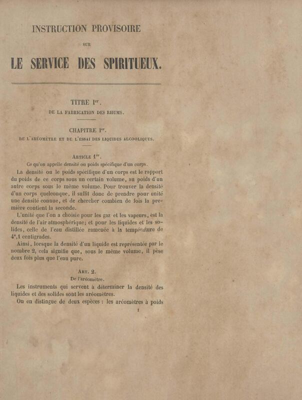 - Instruction provisoire sur le service des spiritueux