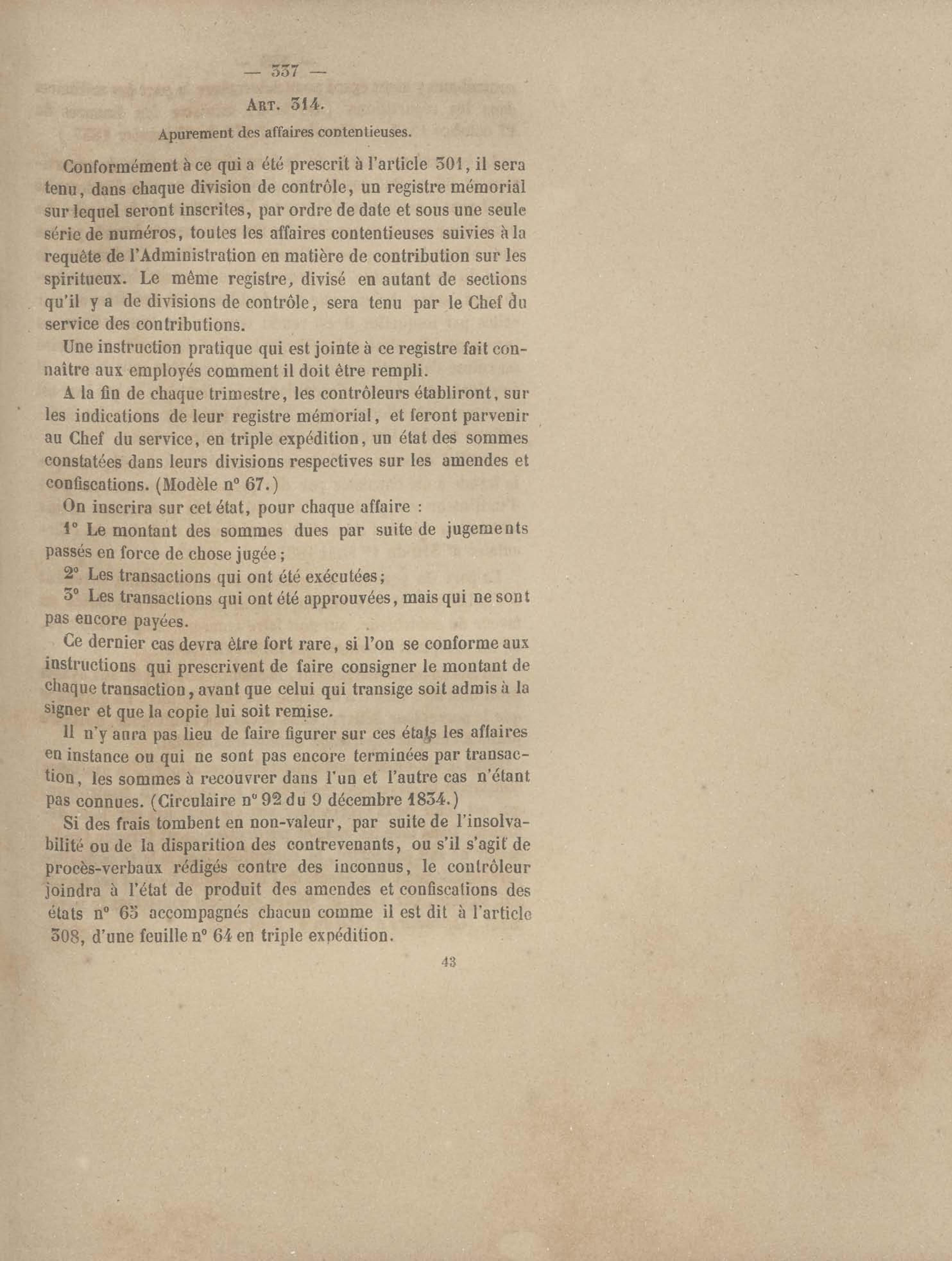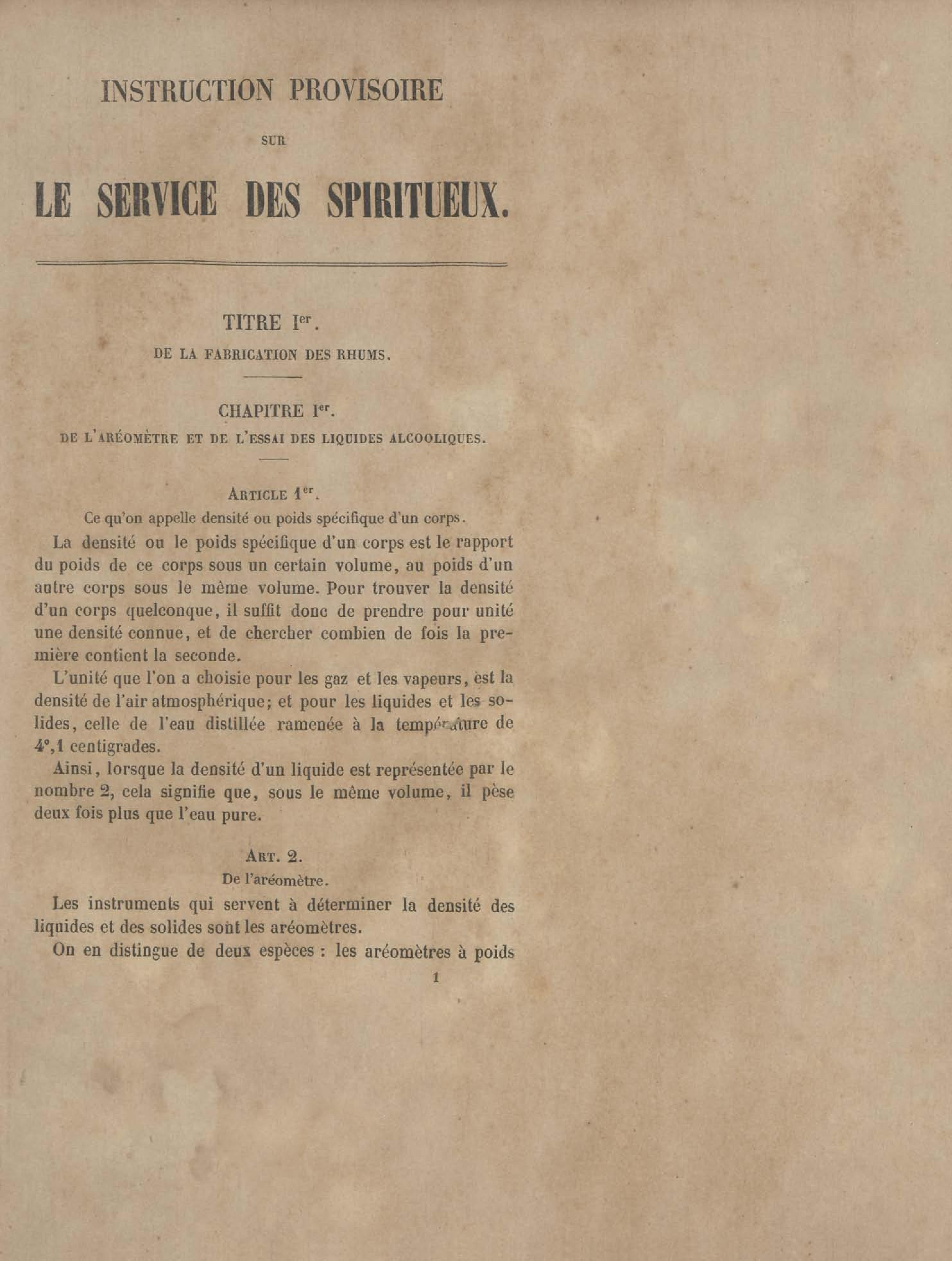 Instruction provisoire sur le service des spiritueux