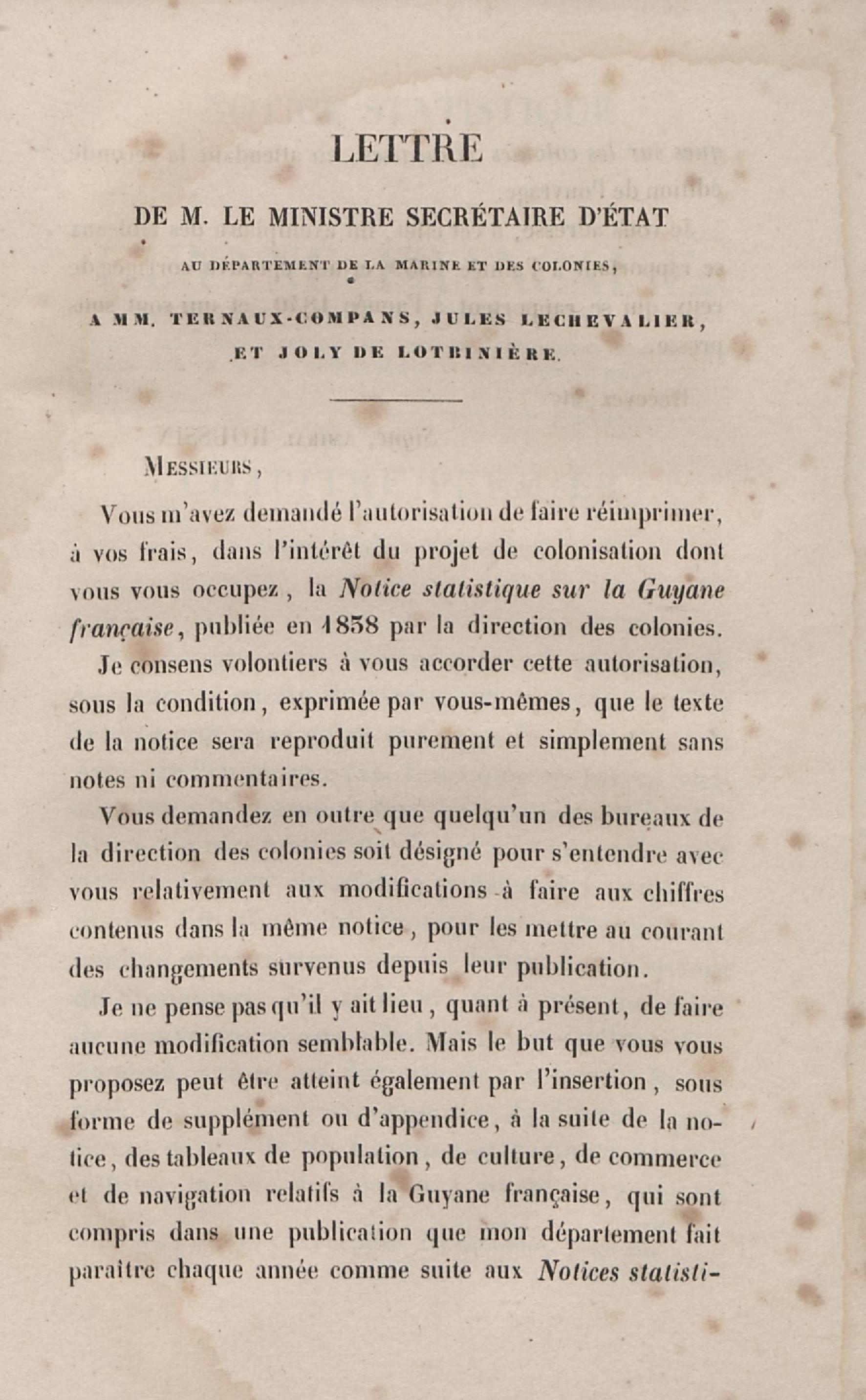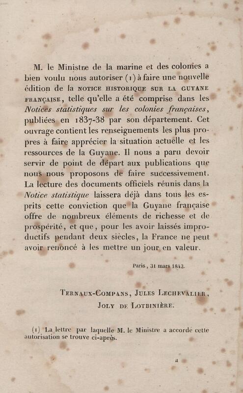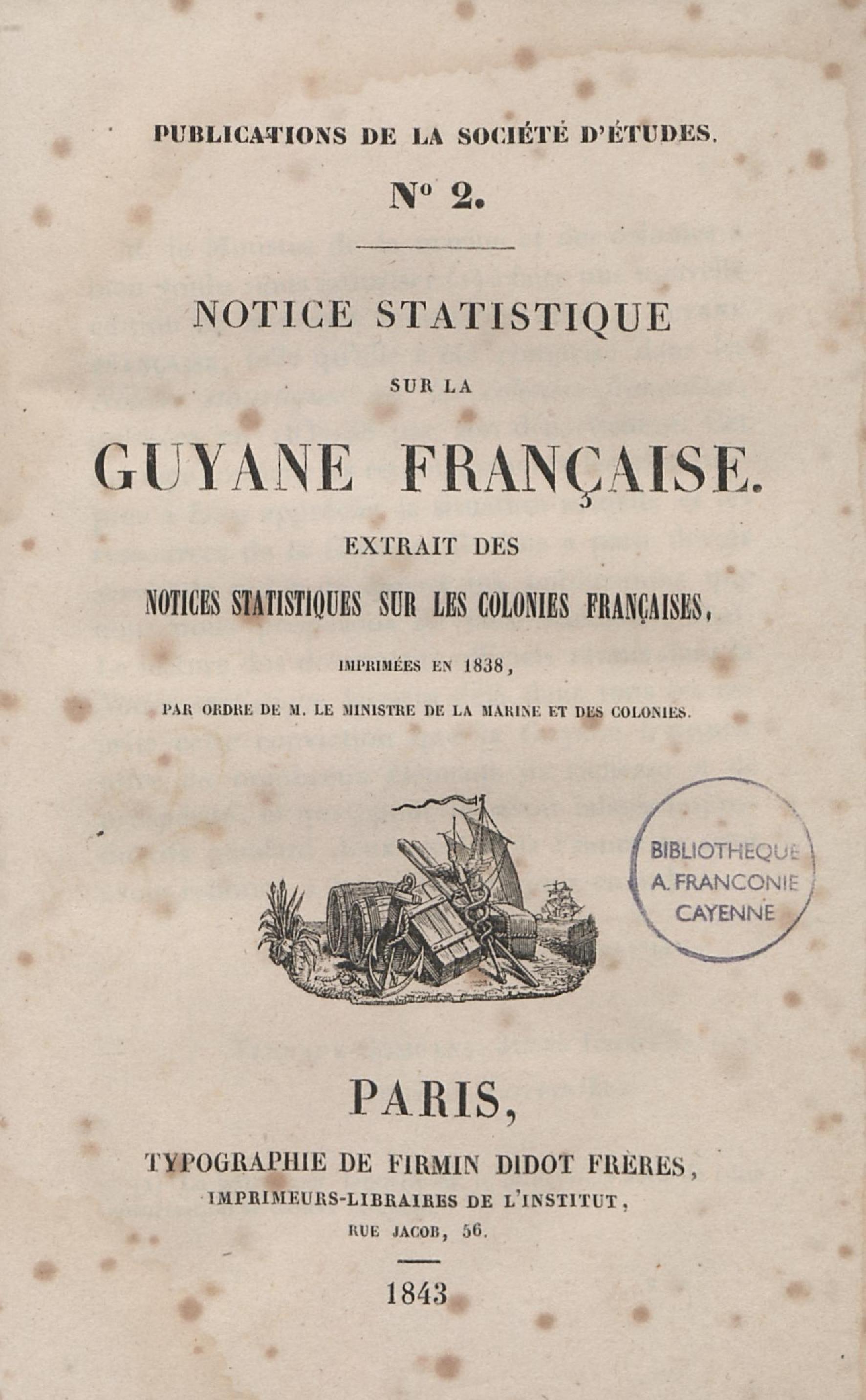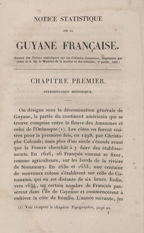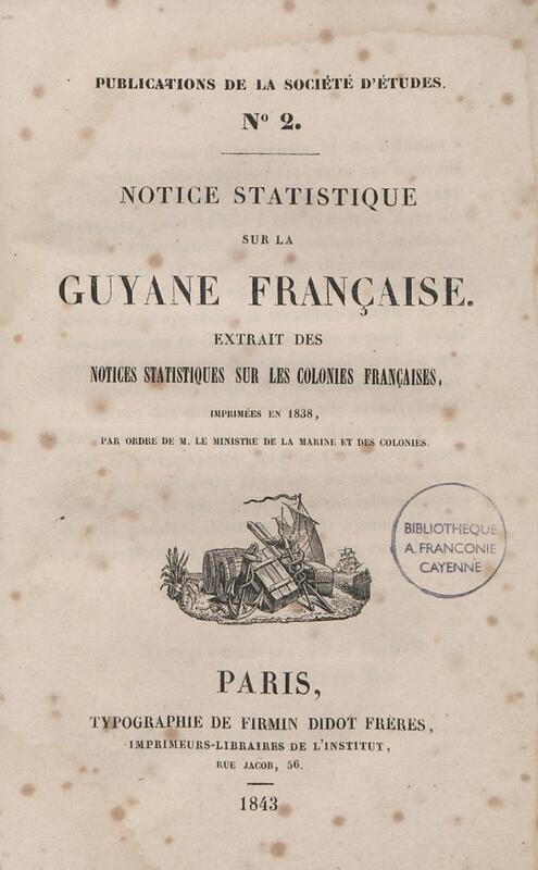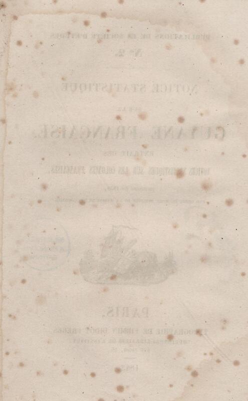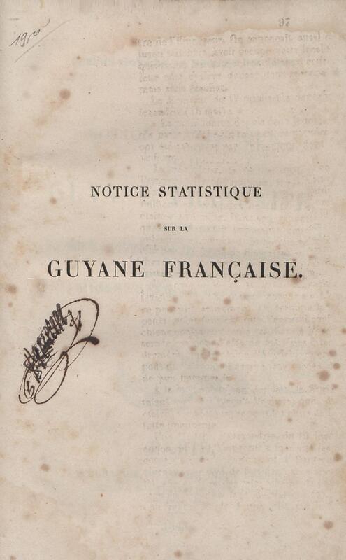 - Notice statistique sur la Guyane française : extrait des Notices statistiques sur les colonies françaises, imprimées en 1838, par ordre de M. le Ministre de la marine et des colonies