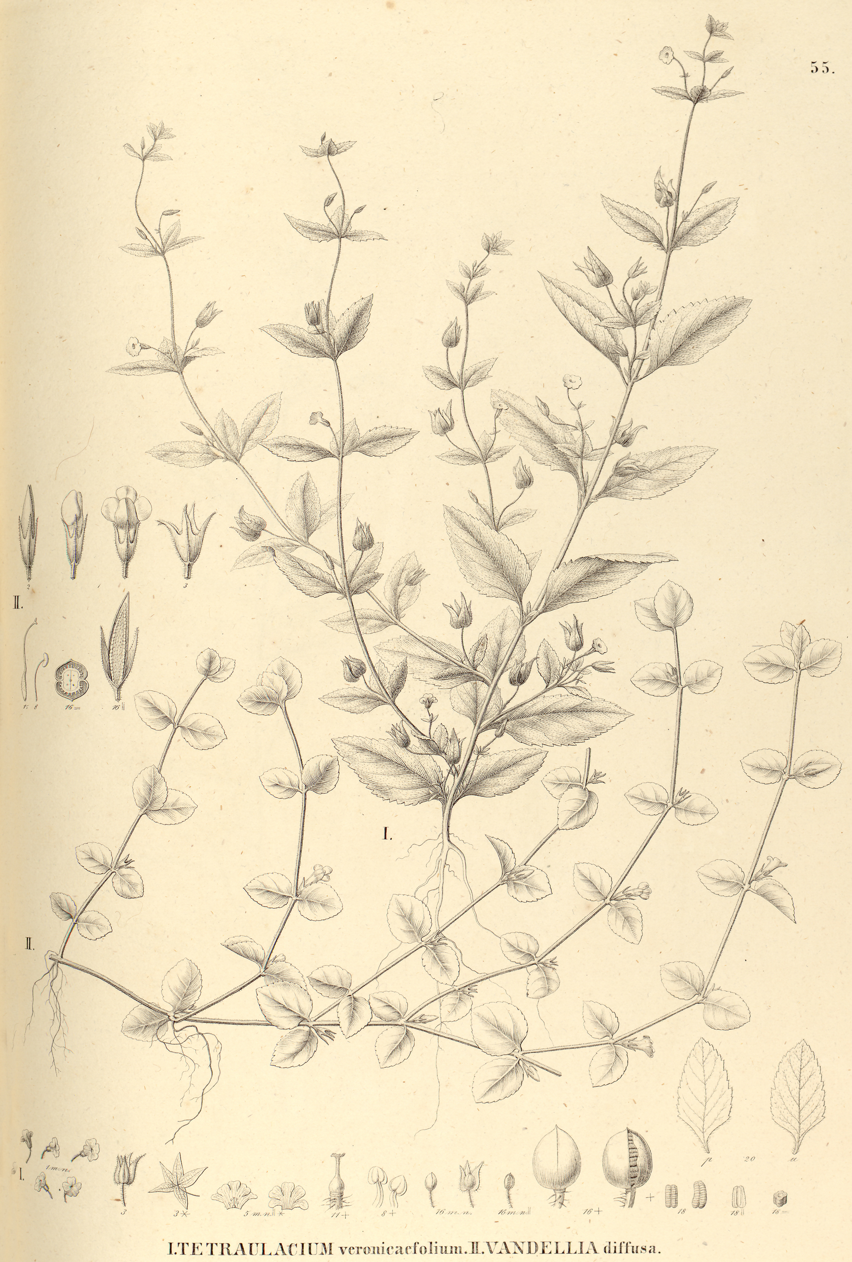 55. I. TETRAULACIUM veronicaefolium. II. VANDELLIA diffusa.
