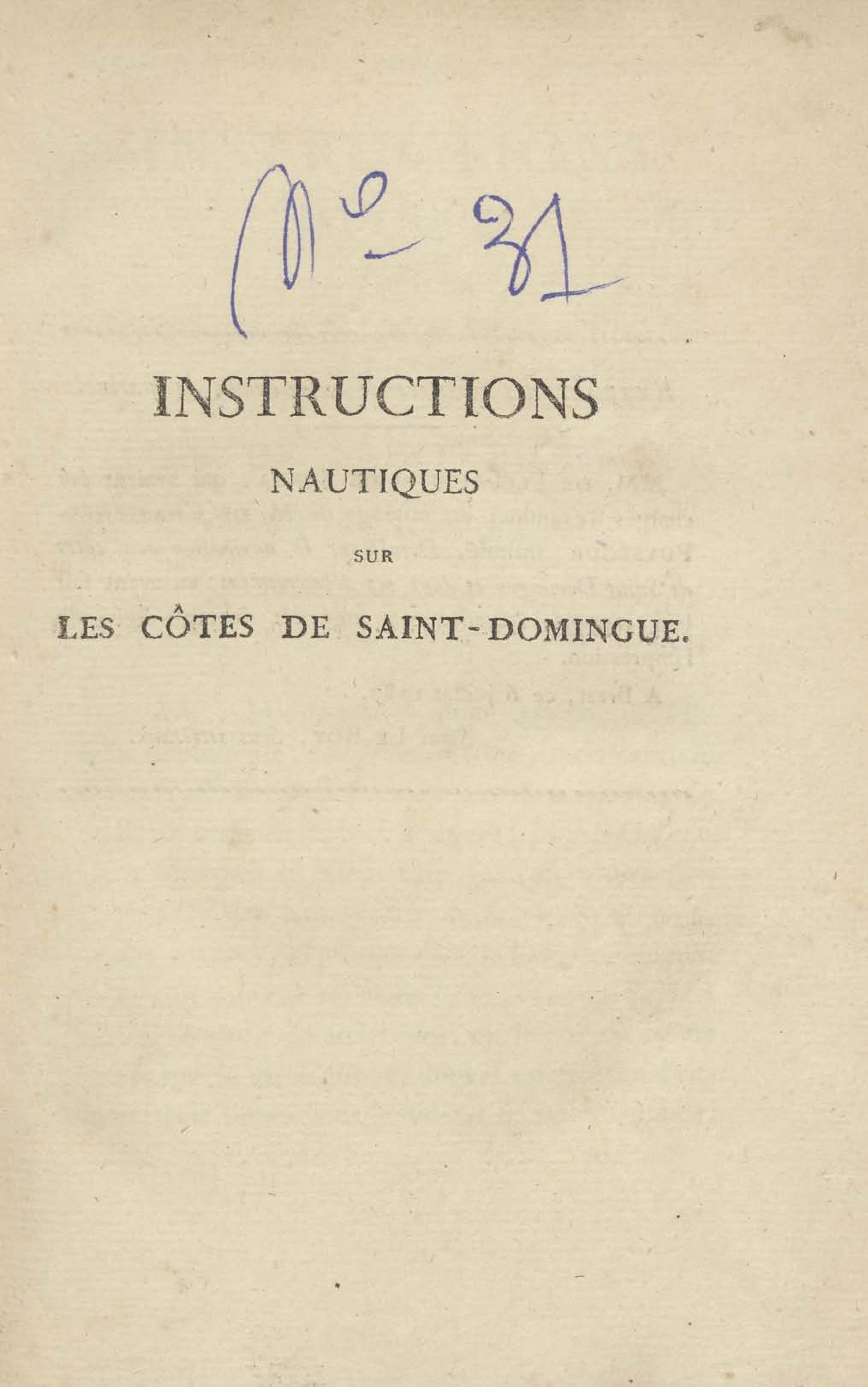 - Instructions nautiques sur les côtes et les débouquements de Saint-Domingue