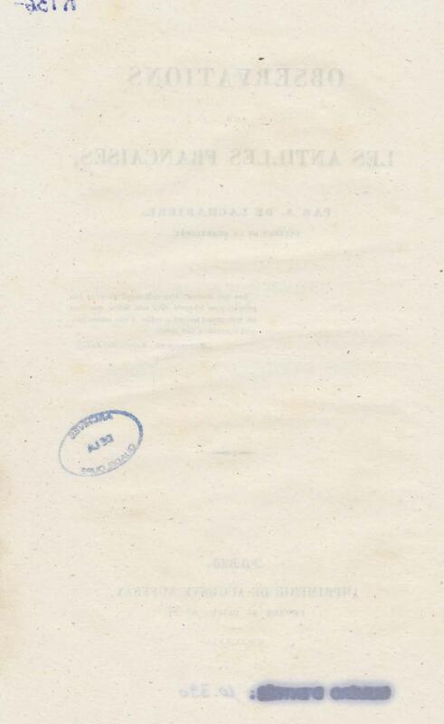- Observations sur les Antilles françaises