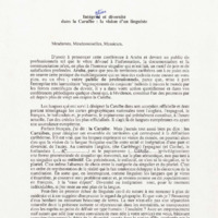 Travaux universitaires - Colloques et conférences - Congrès de l'Association of Caribbean University, Research and Institutional Libraries (ACURIL), Aruba, avril 1994 - « Intégration et diversité dans la Caraïbe : la vision d'un linguiste », tapuscrit de l'intervention - Etat 2