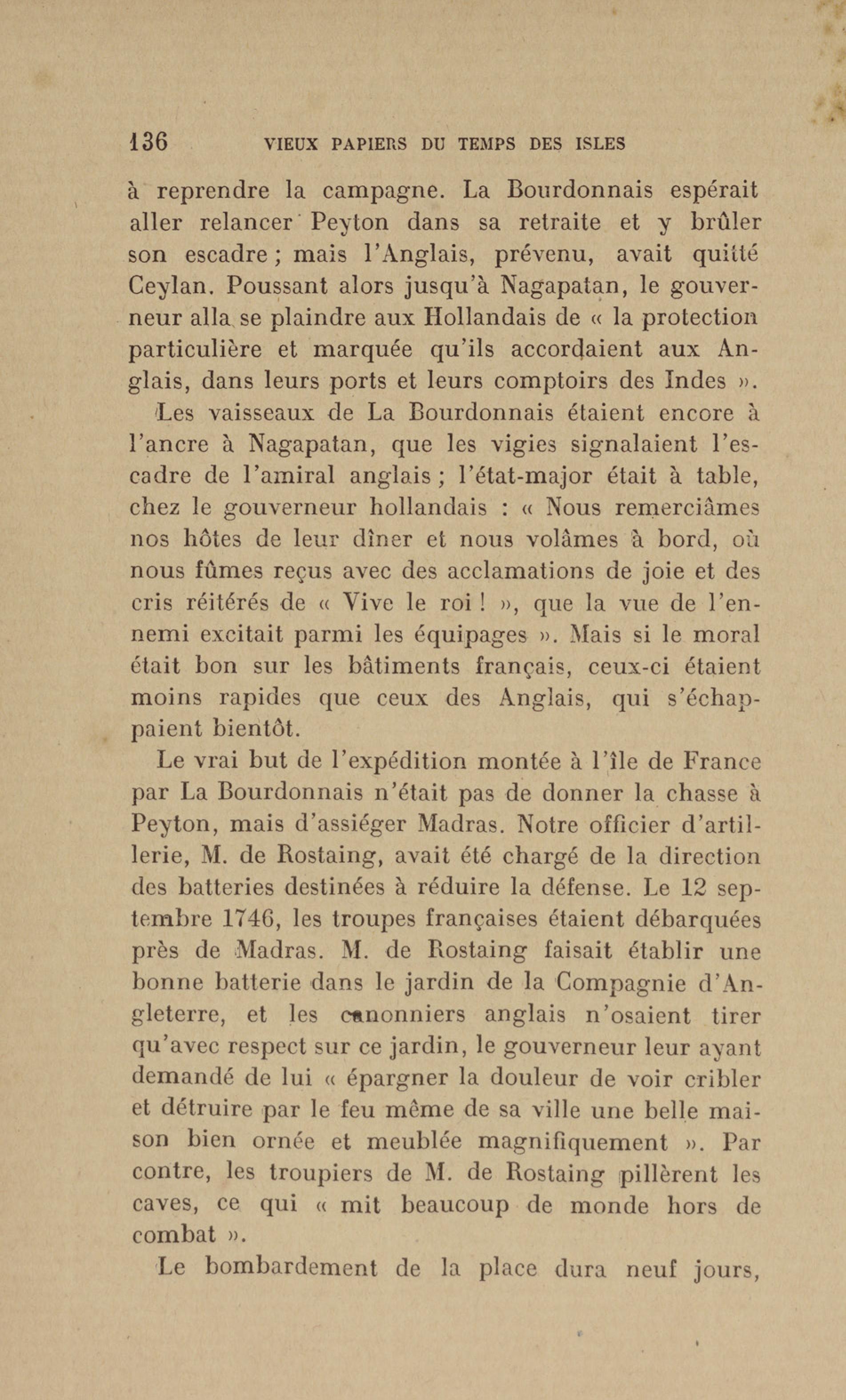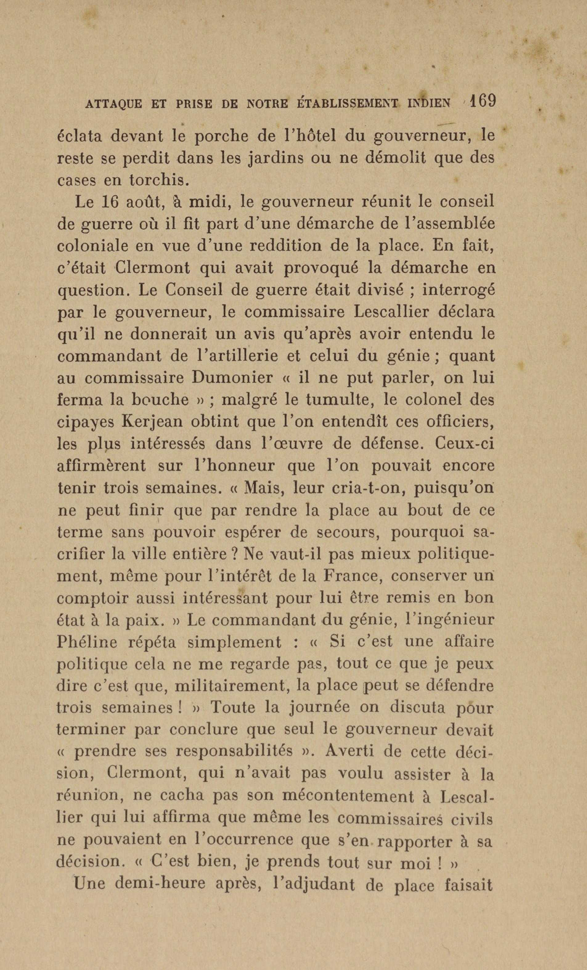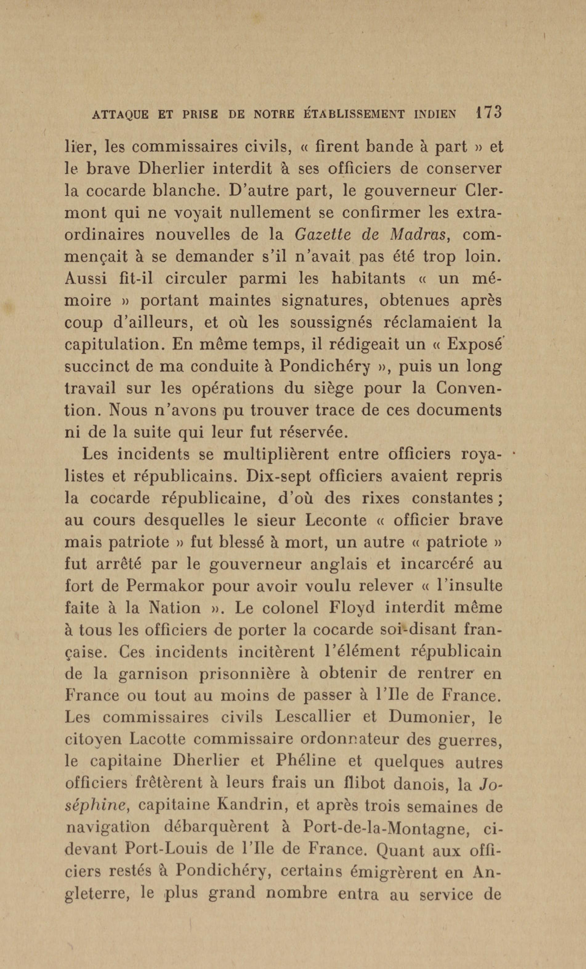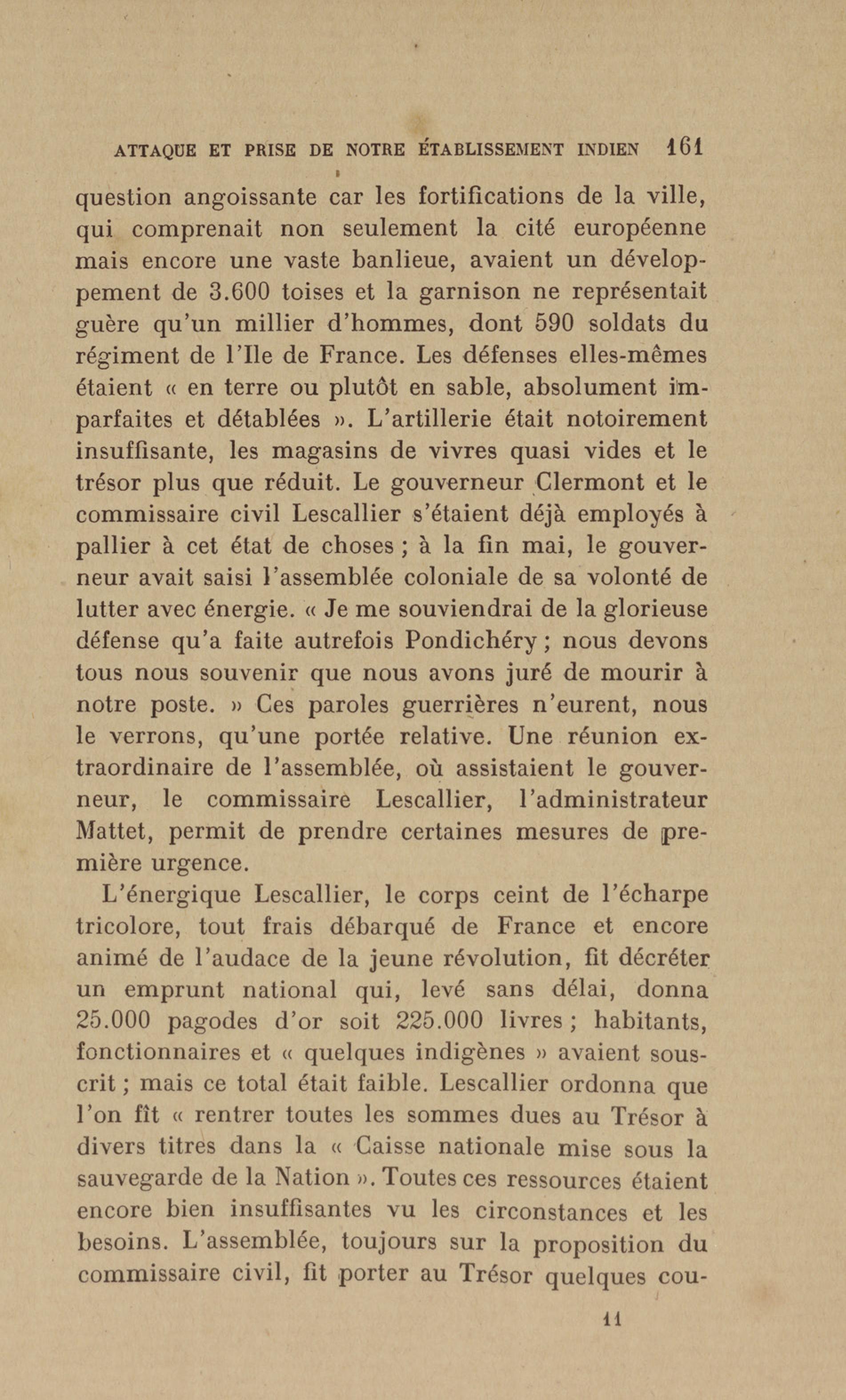 Madras : étang dans lequel les français se précipitèrent pour aller assiéger le fort. Le bruit de l'eau réveilla les sentinelles qui alertèrent les soldats anglais