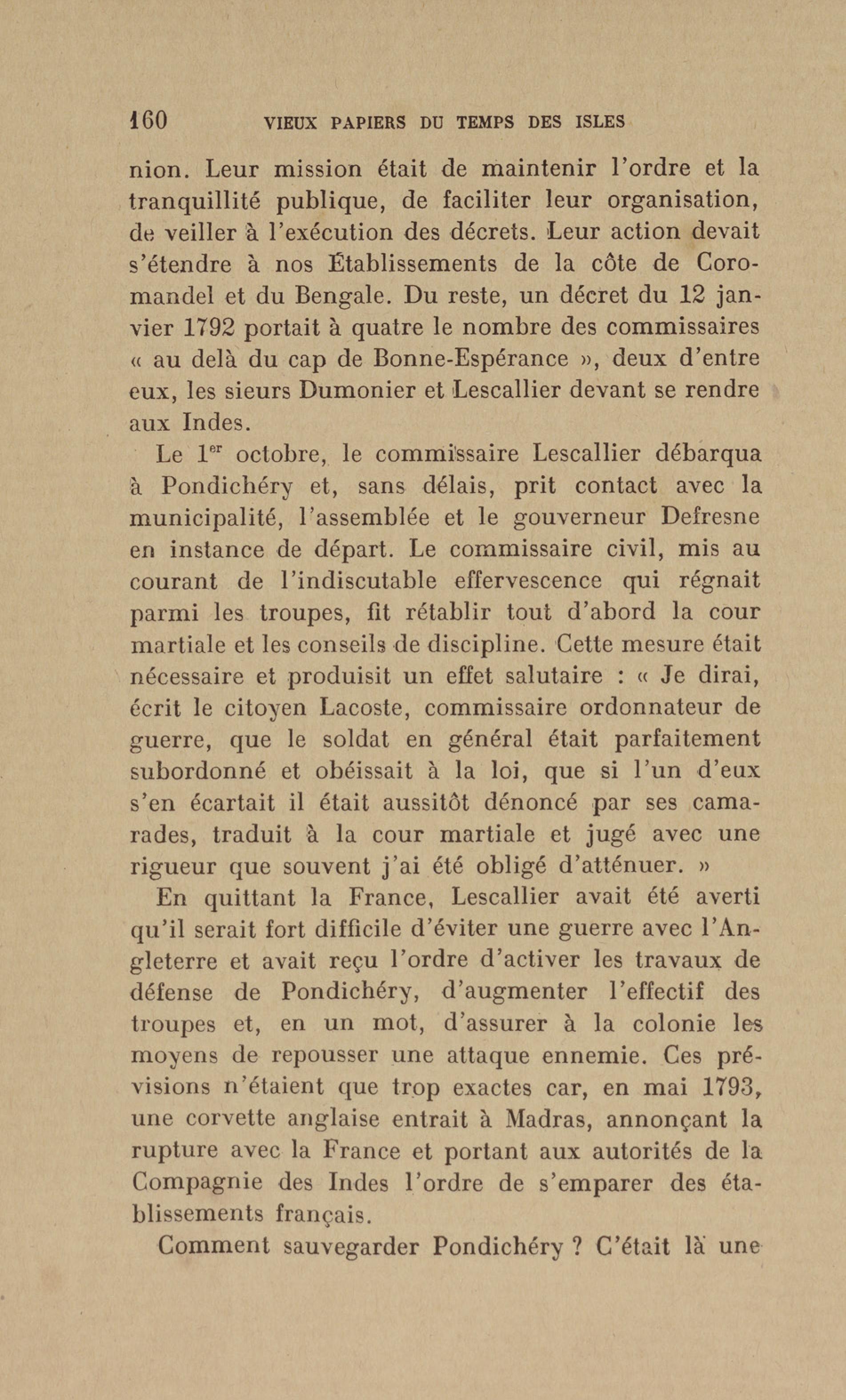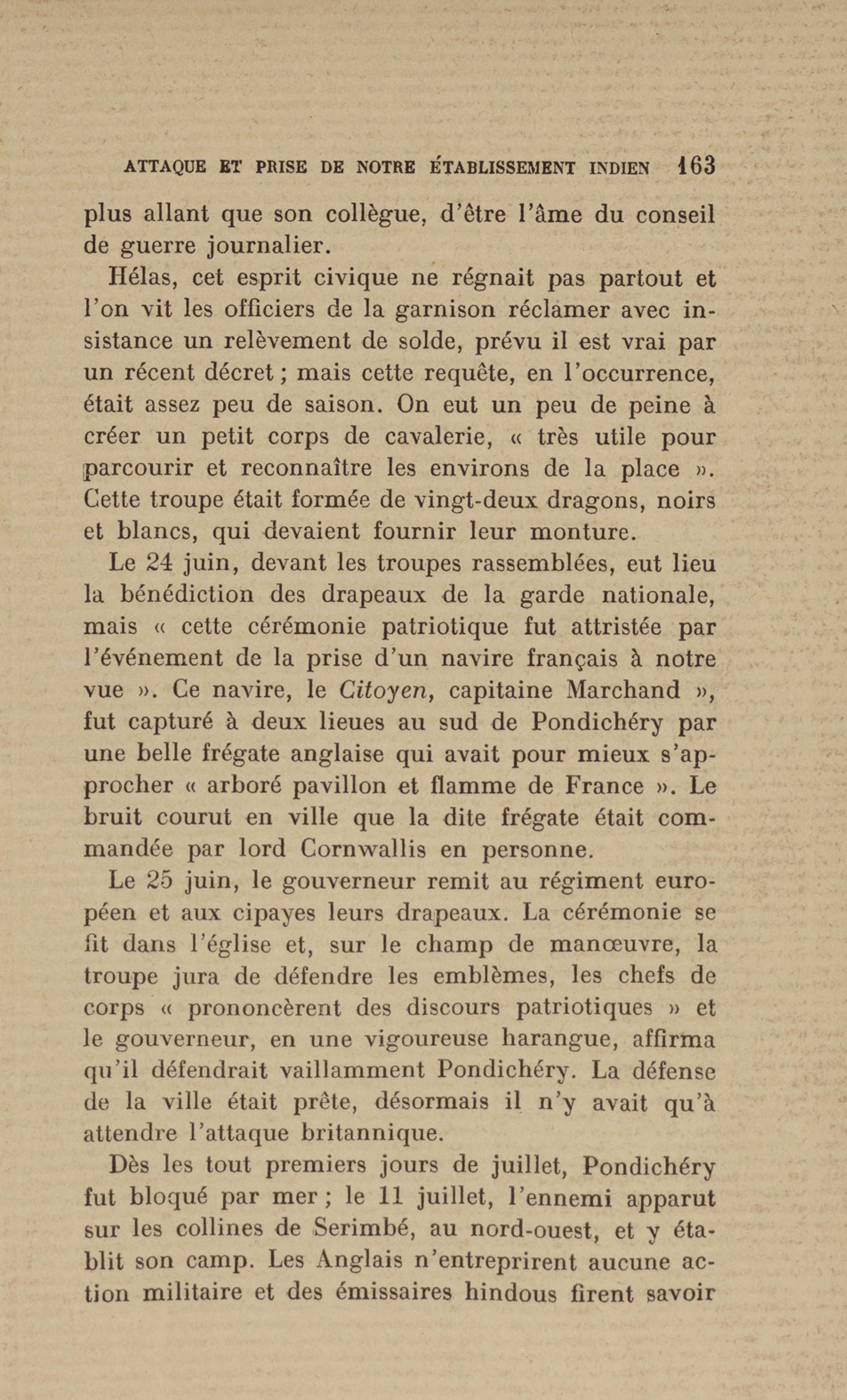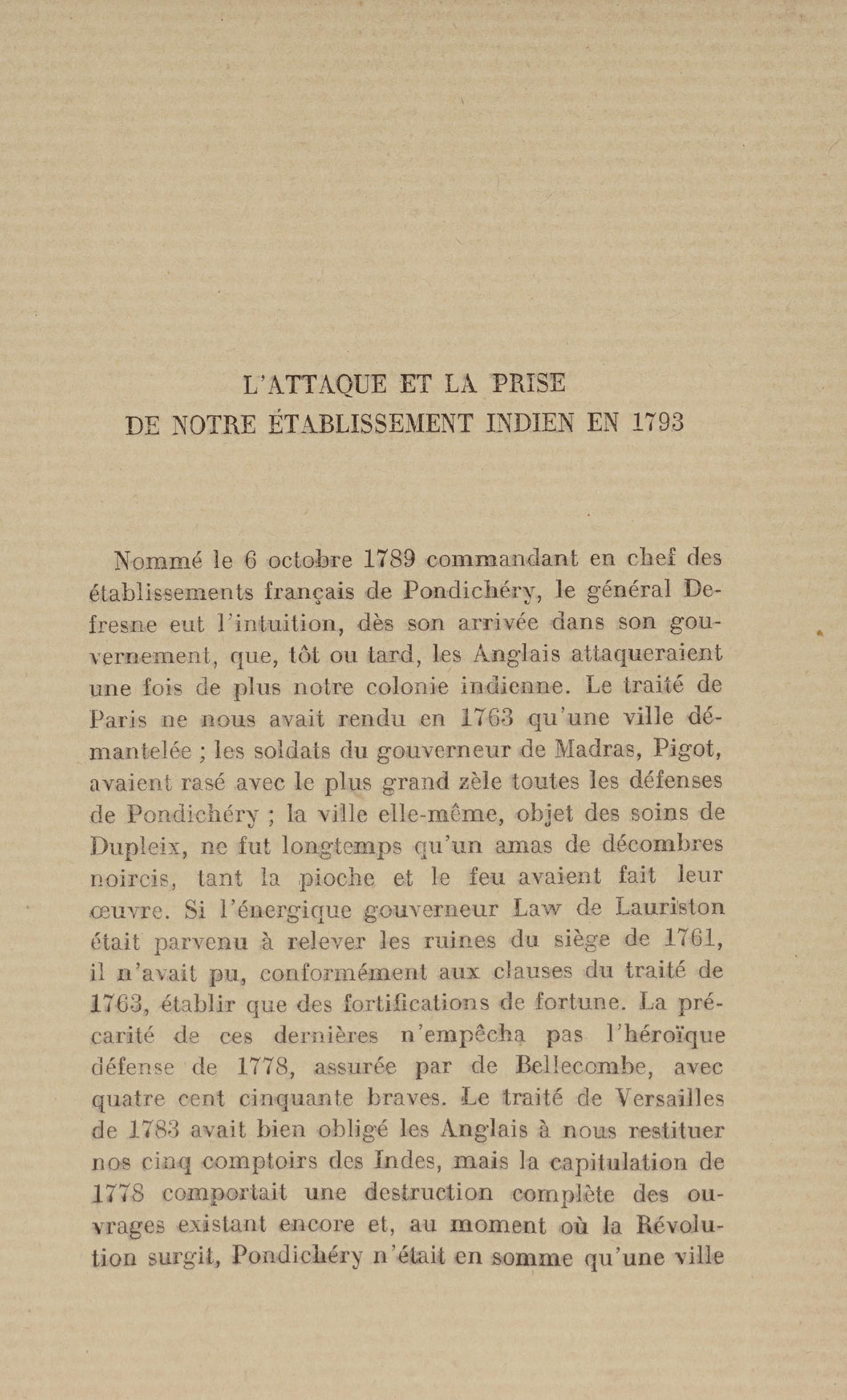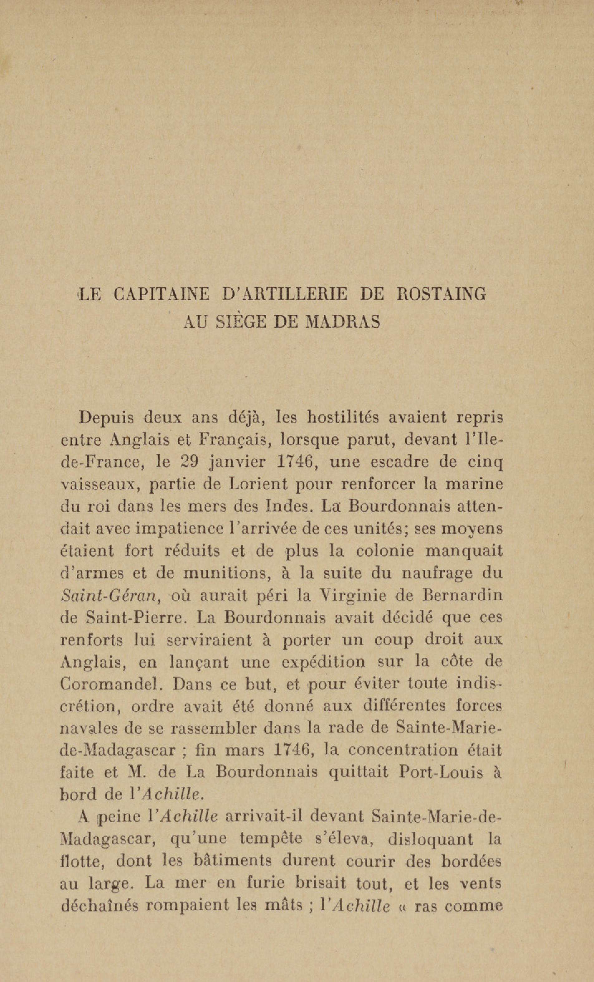 Madras : étang dans lequel les français se précipitèrent pour aller assiéger le fort. Le bruit de l'eau réveilla les sentinelles qui alertèrent les soldats anglais