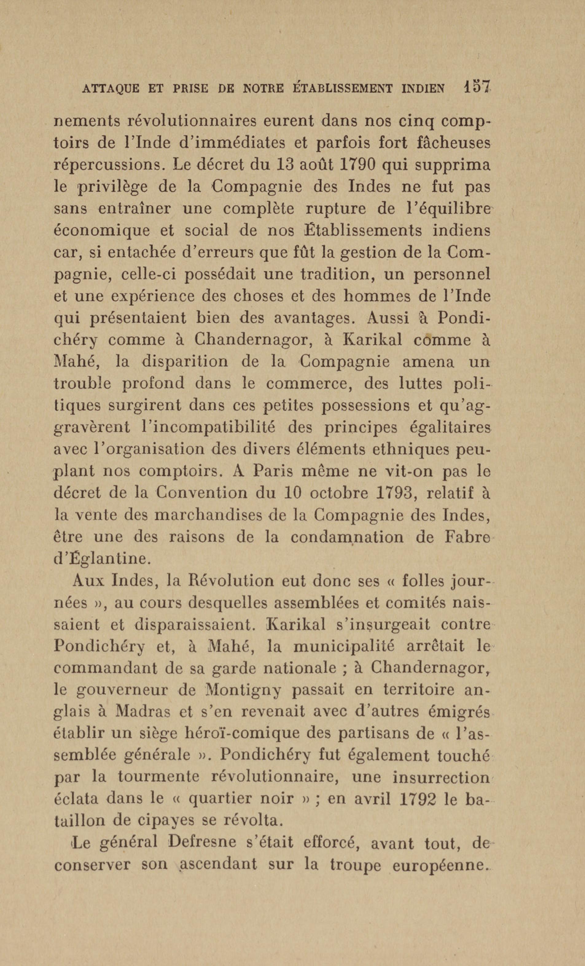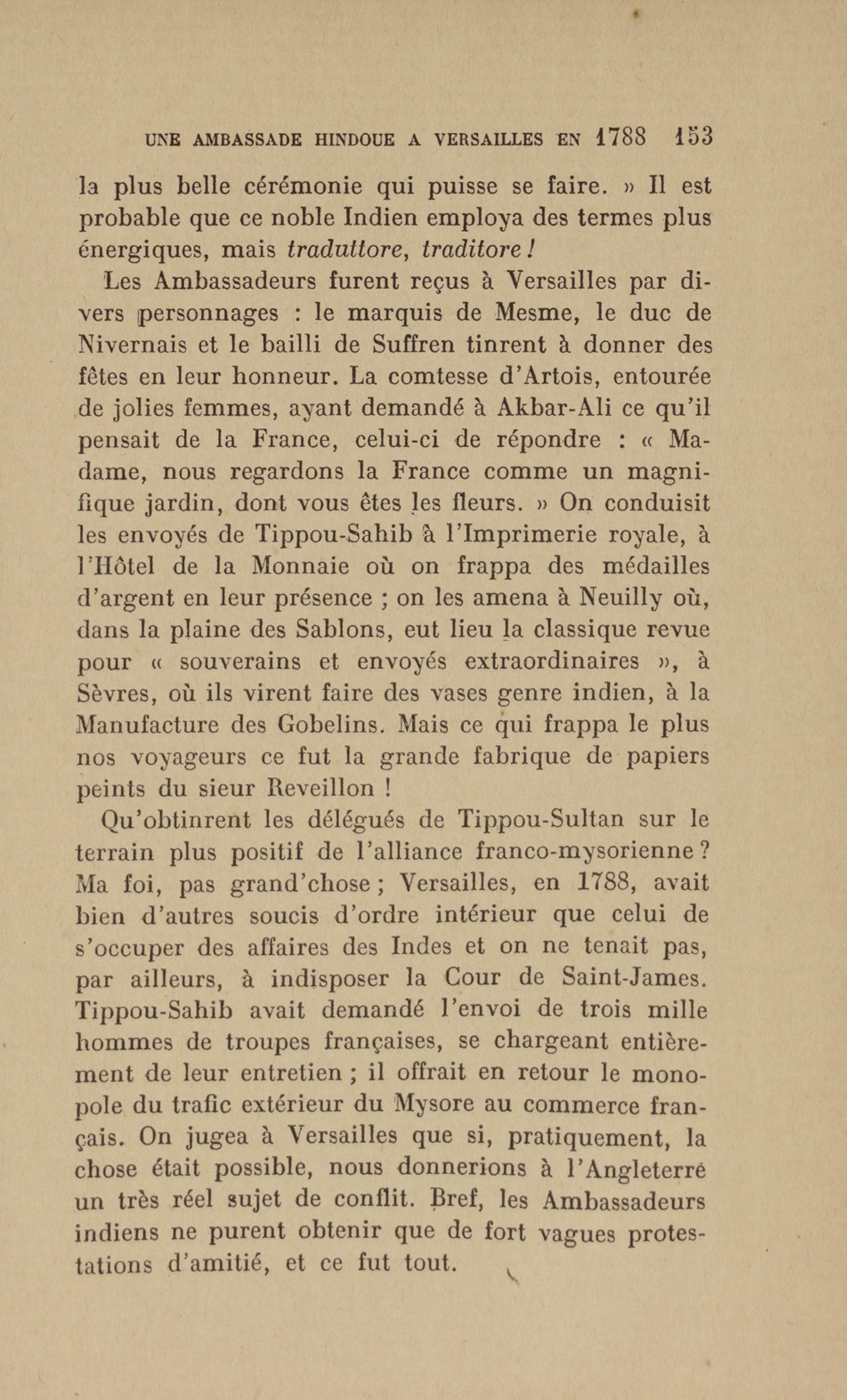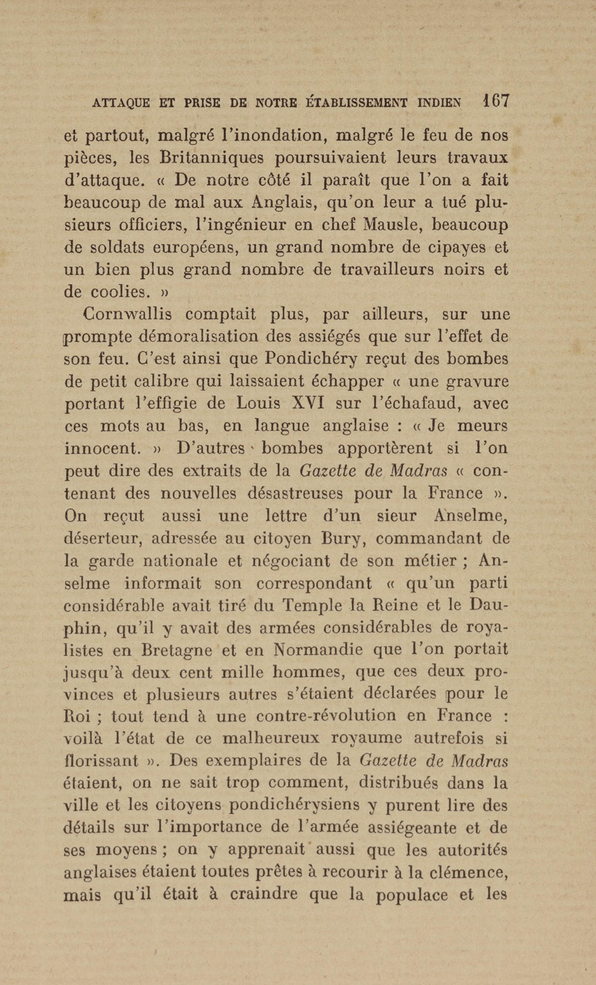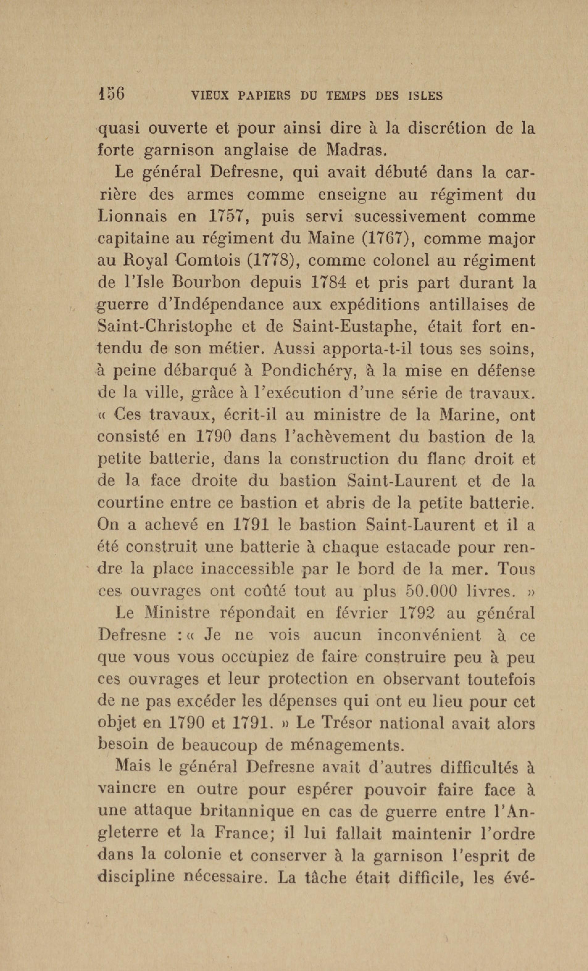 Madras : étang dans lequel les français se précipitèrent pour aller assiéger le fort. Le bruit de l'eau réveilla les sentinelles qui alertèrent les soldats anglais