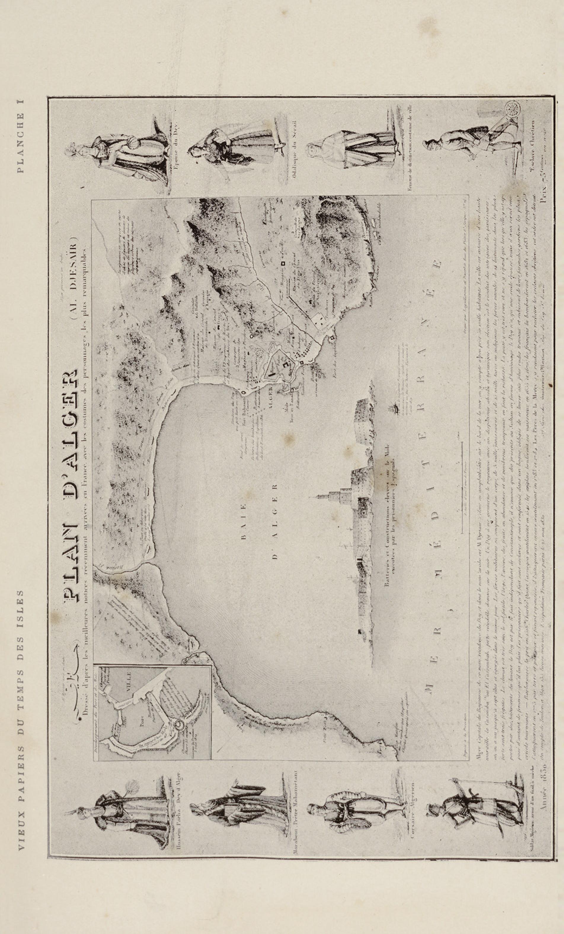Plan d'Alger dressée d'après les meilleures notices récemment arrivées en France avec les costumes des personnages les plus remarquables