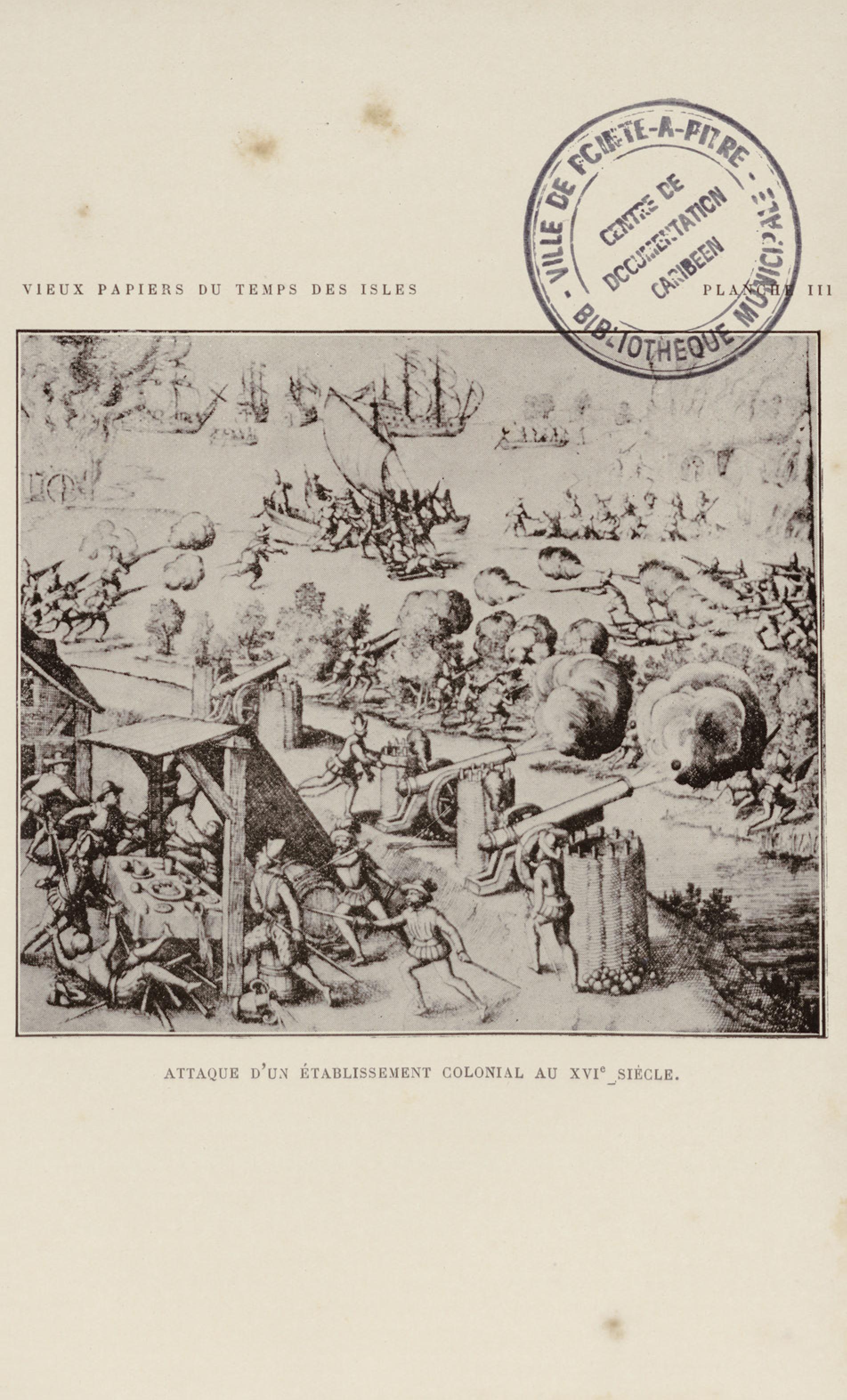 Attaque d'un établissement colonial au XVIe siècle |