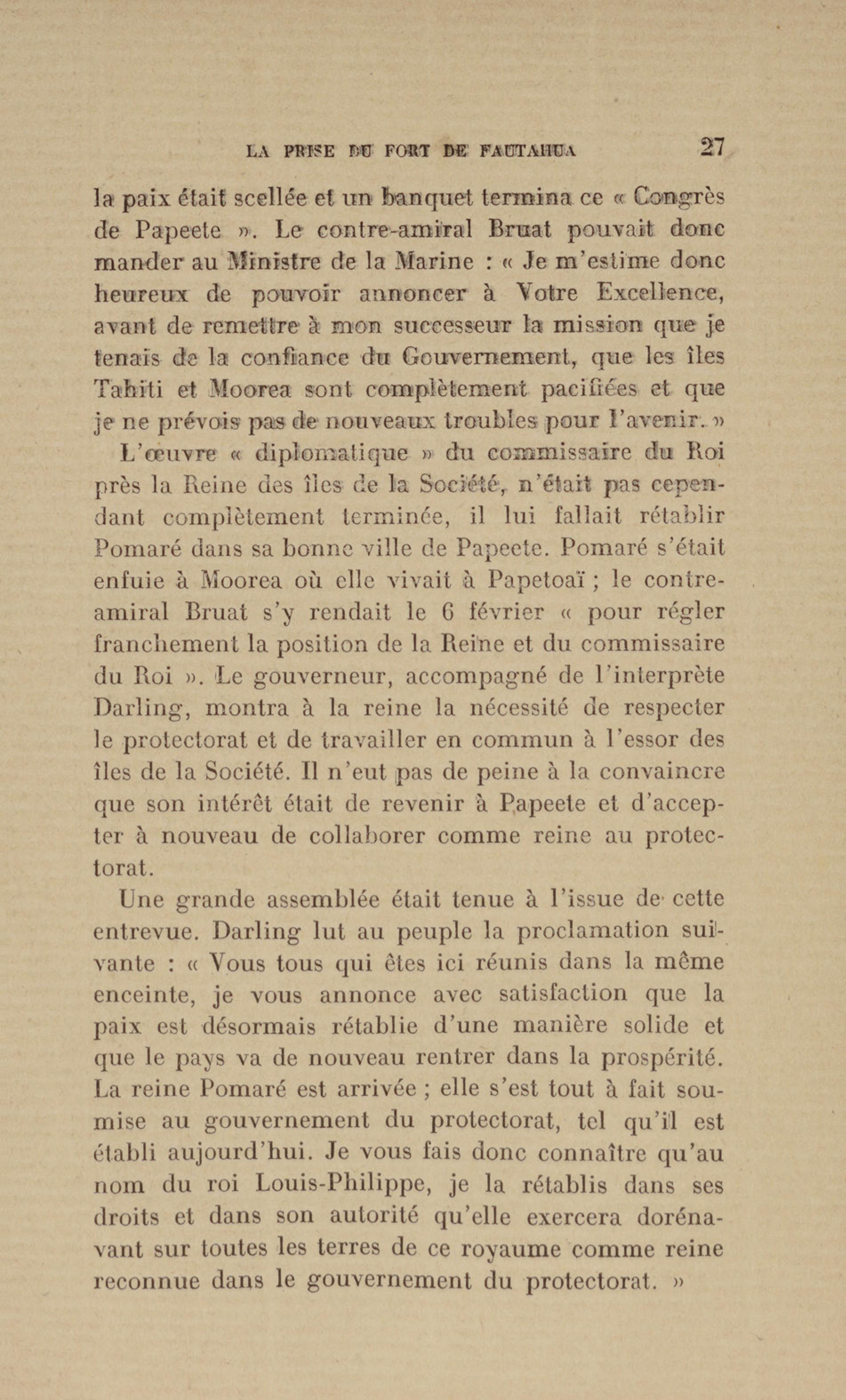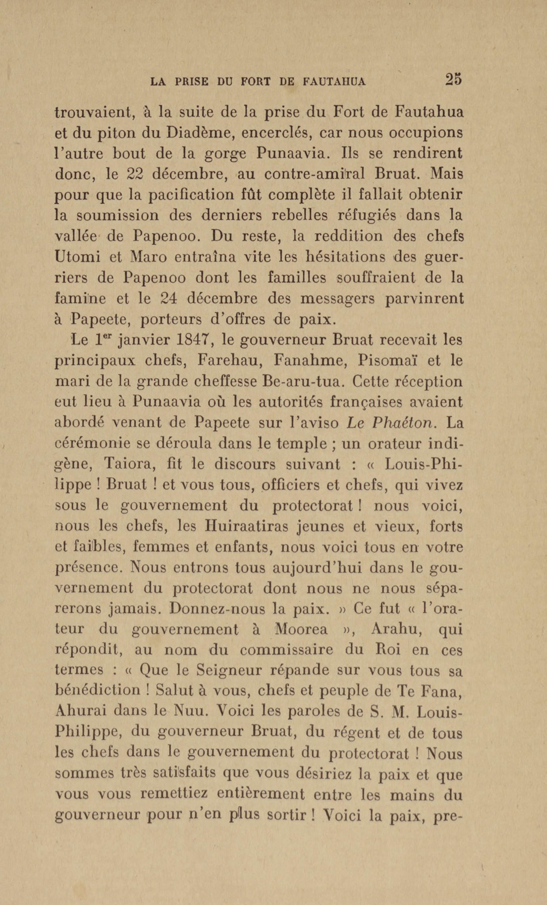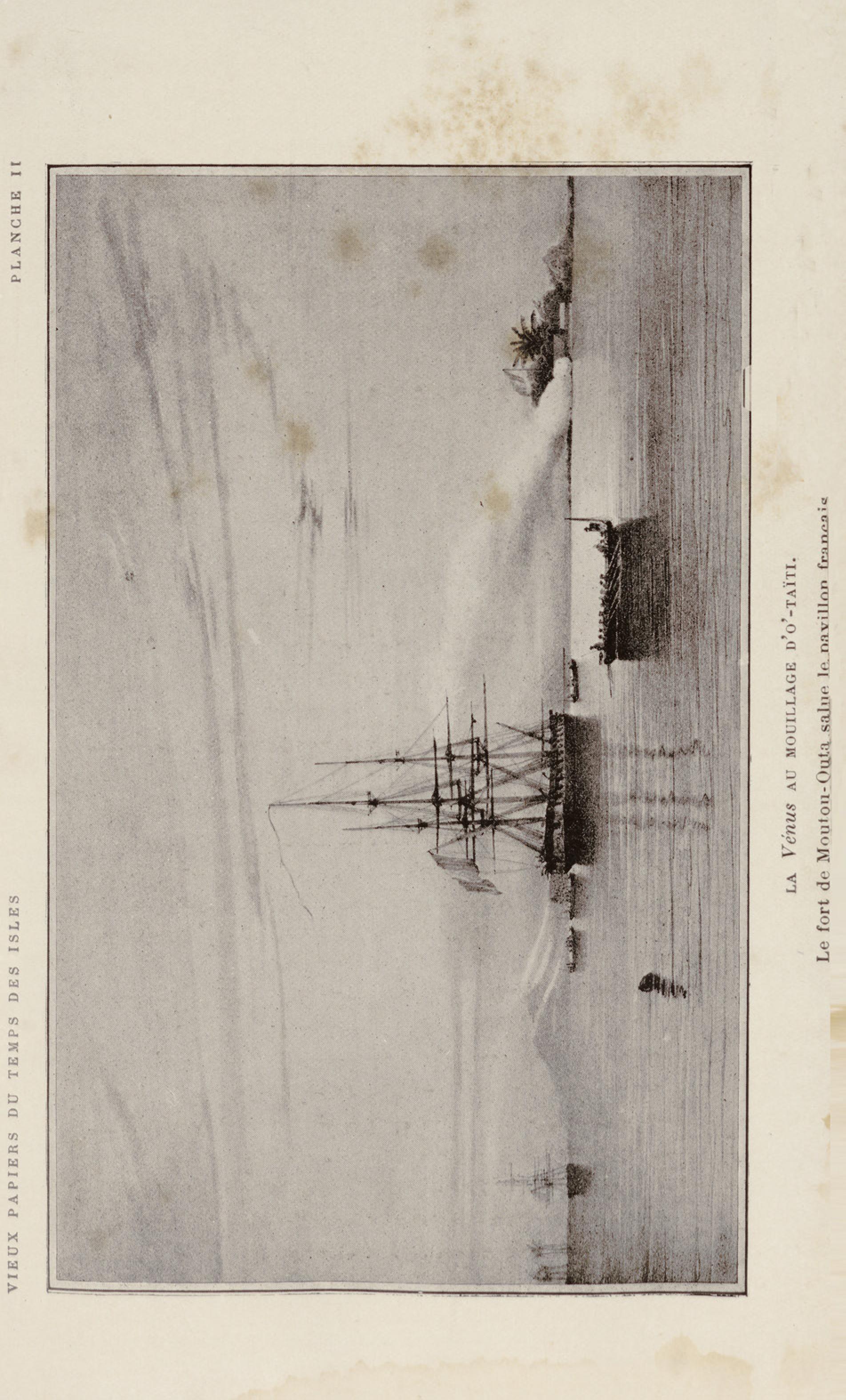 La Vénus au Mouillage d'O'-Taïti : le fort de Moutou-Outa salue le pavillon français |