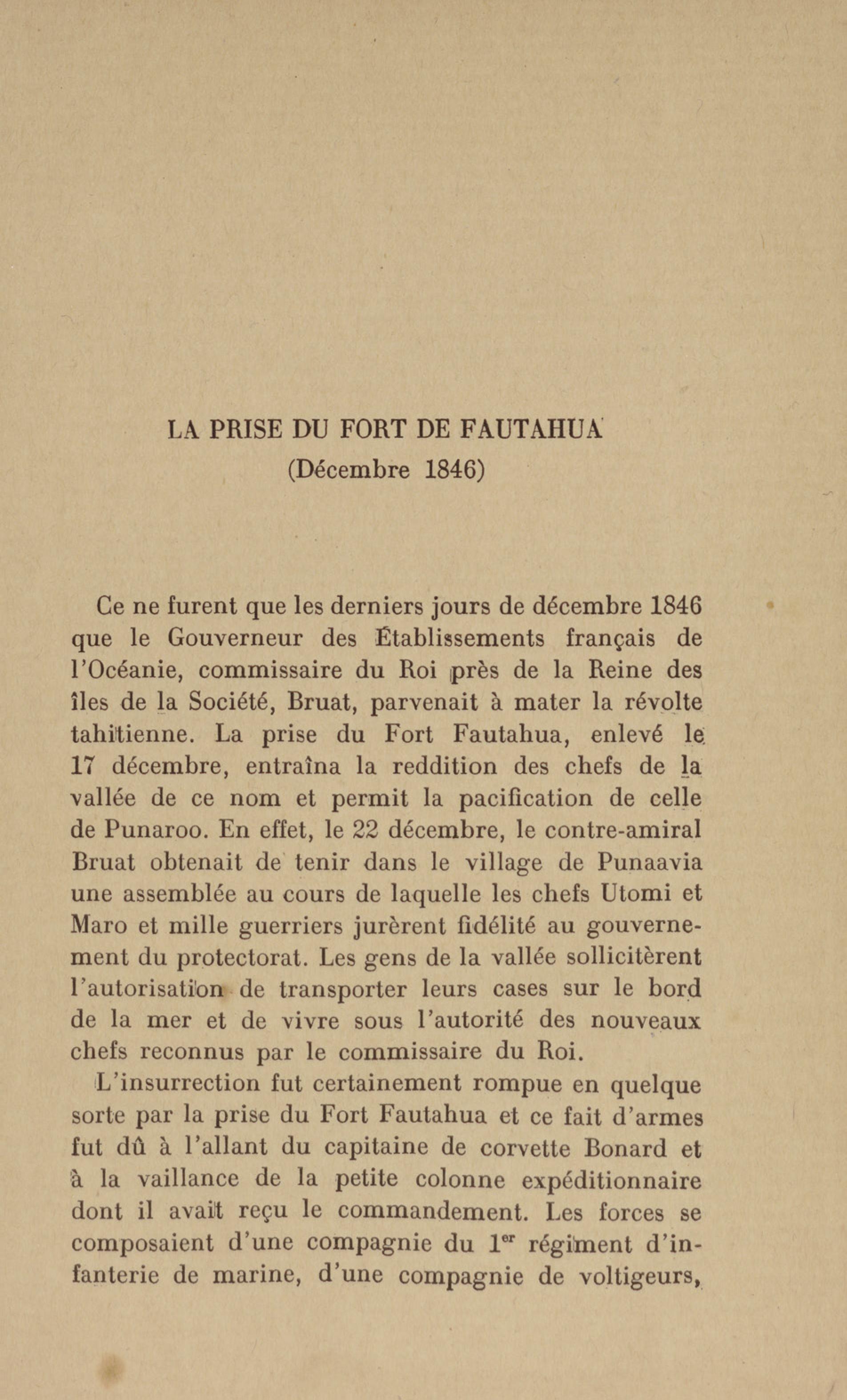 La Vénus au Mouillage d'O'-Taïti : le fort de Moutou-Outa salue le pavillon français
