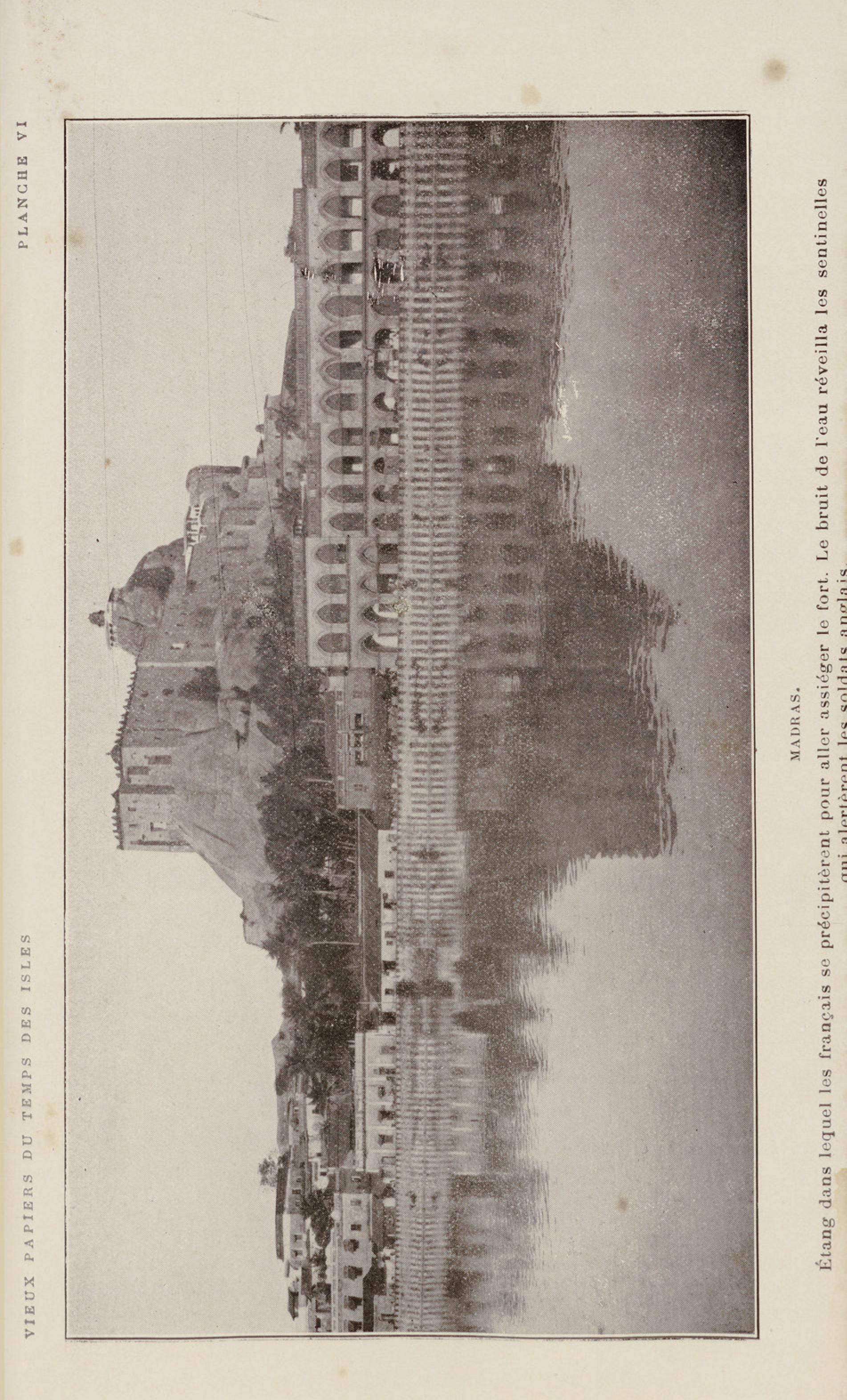 Madras : étang dans lequel les français se précipitèrent pour aller assiéger le fort. Le bruit de l'eau réveilla les sentinelles qui alertèrent les soldats anglais |