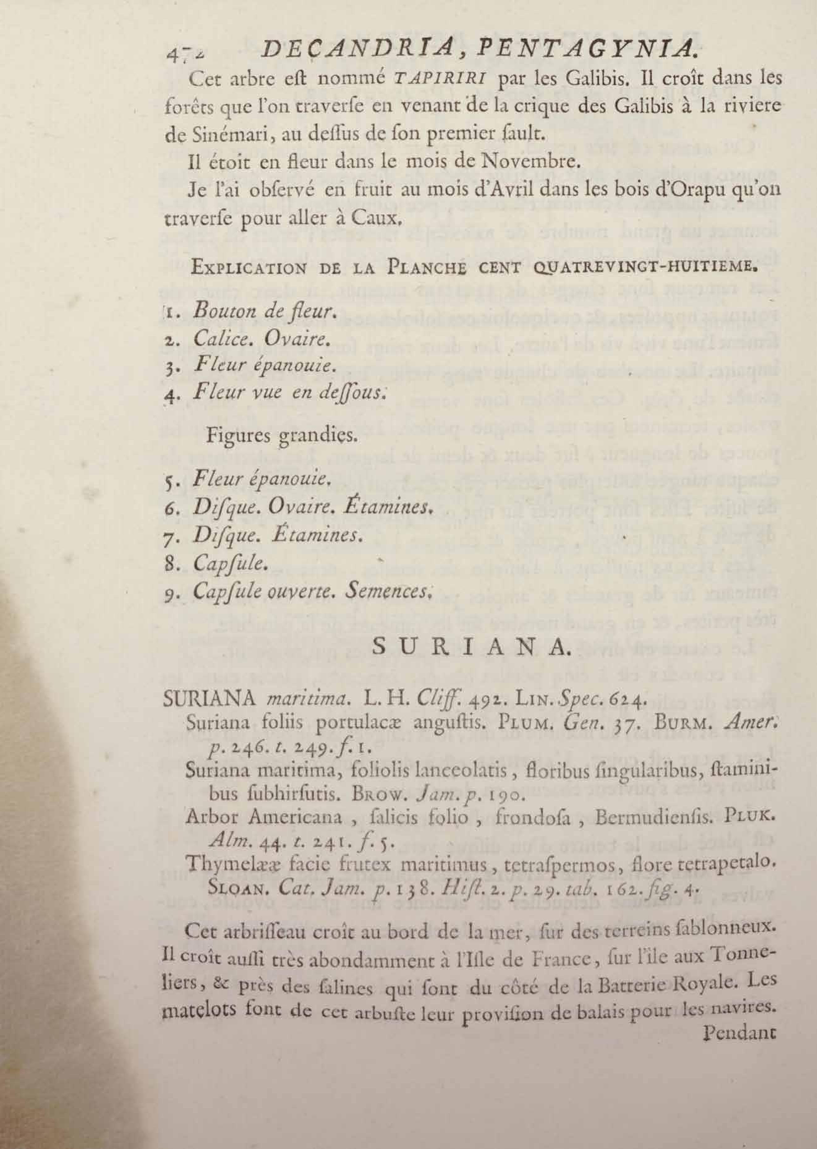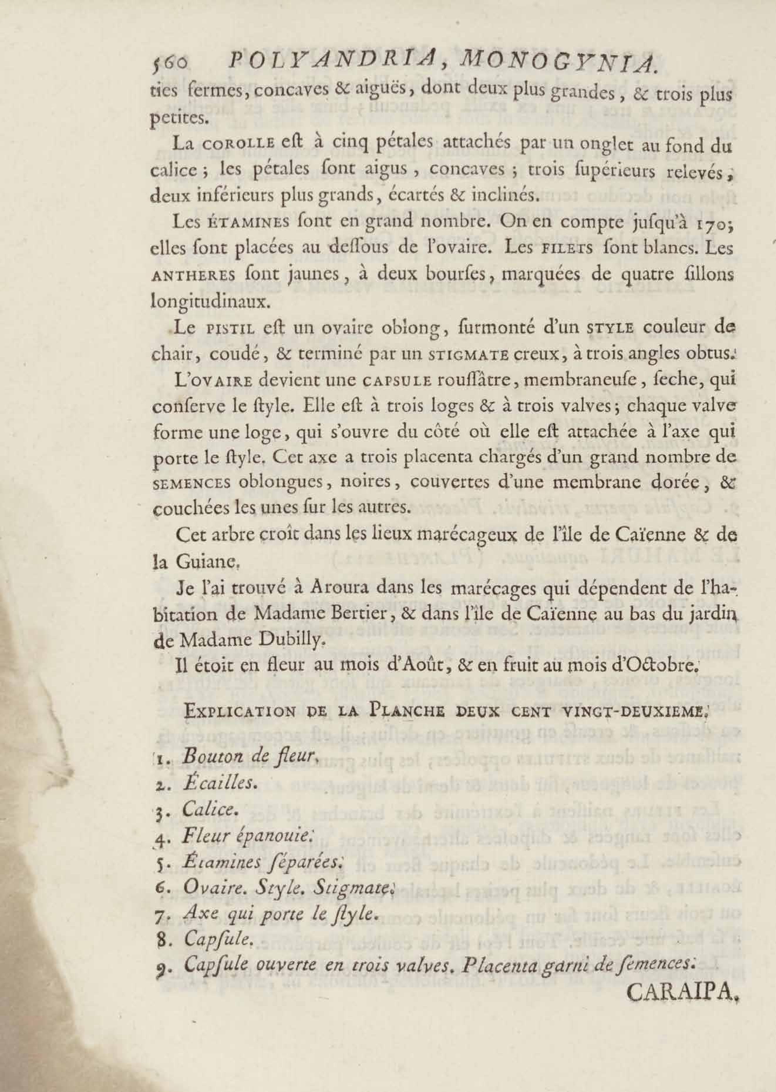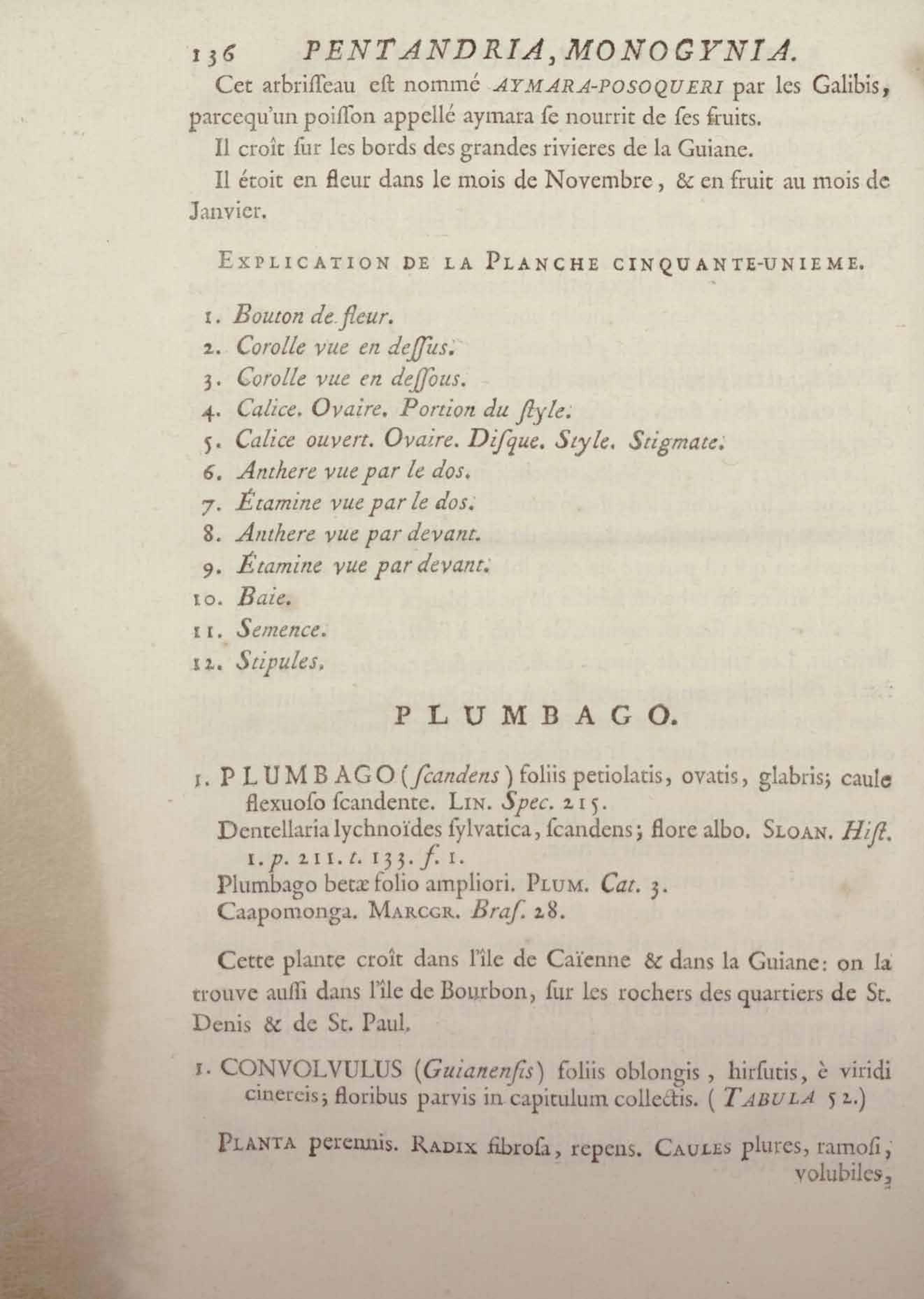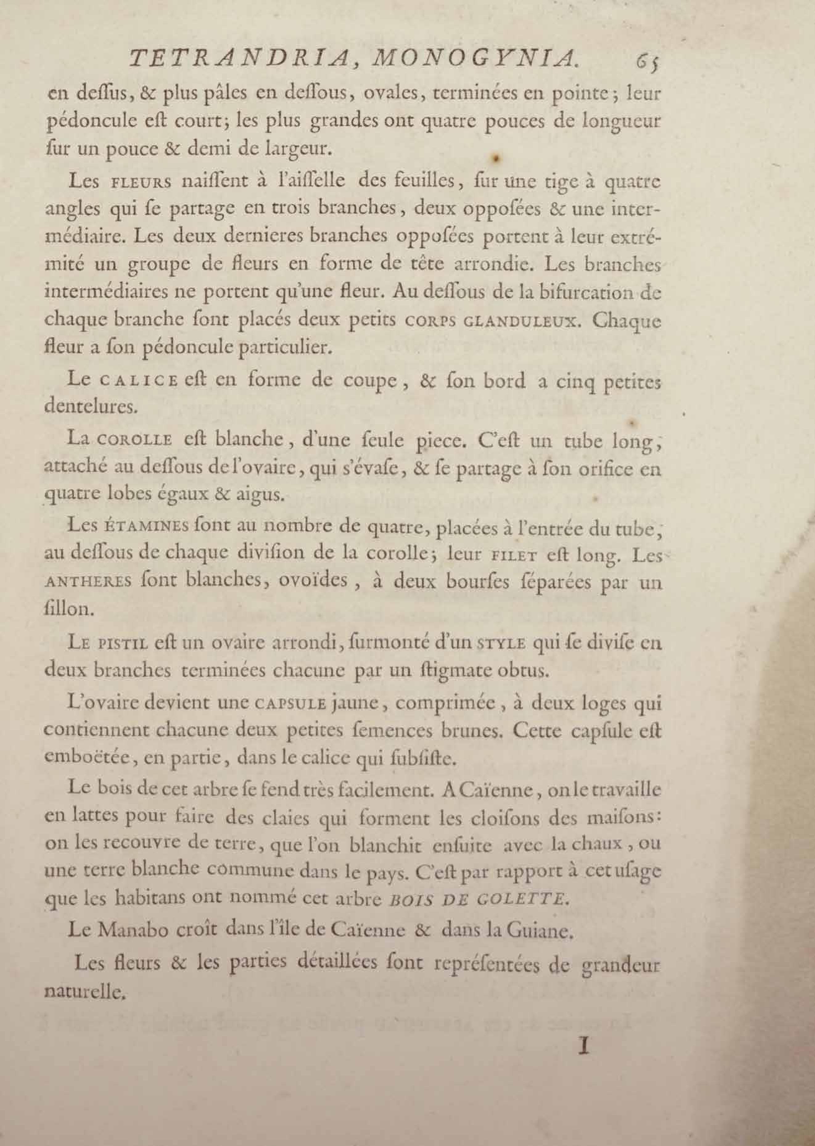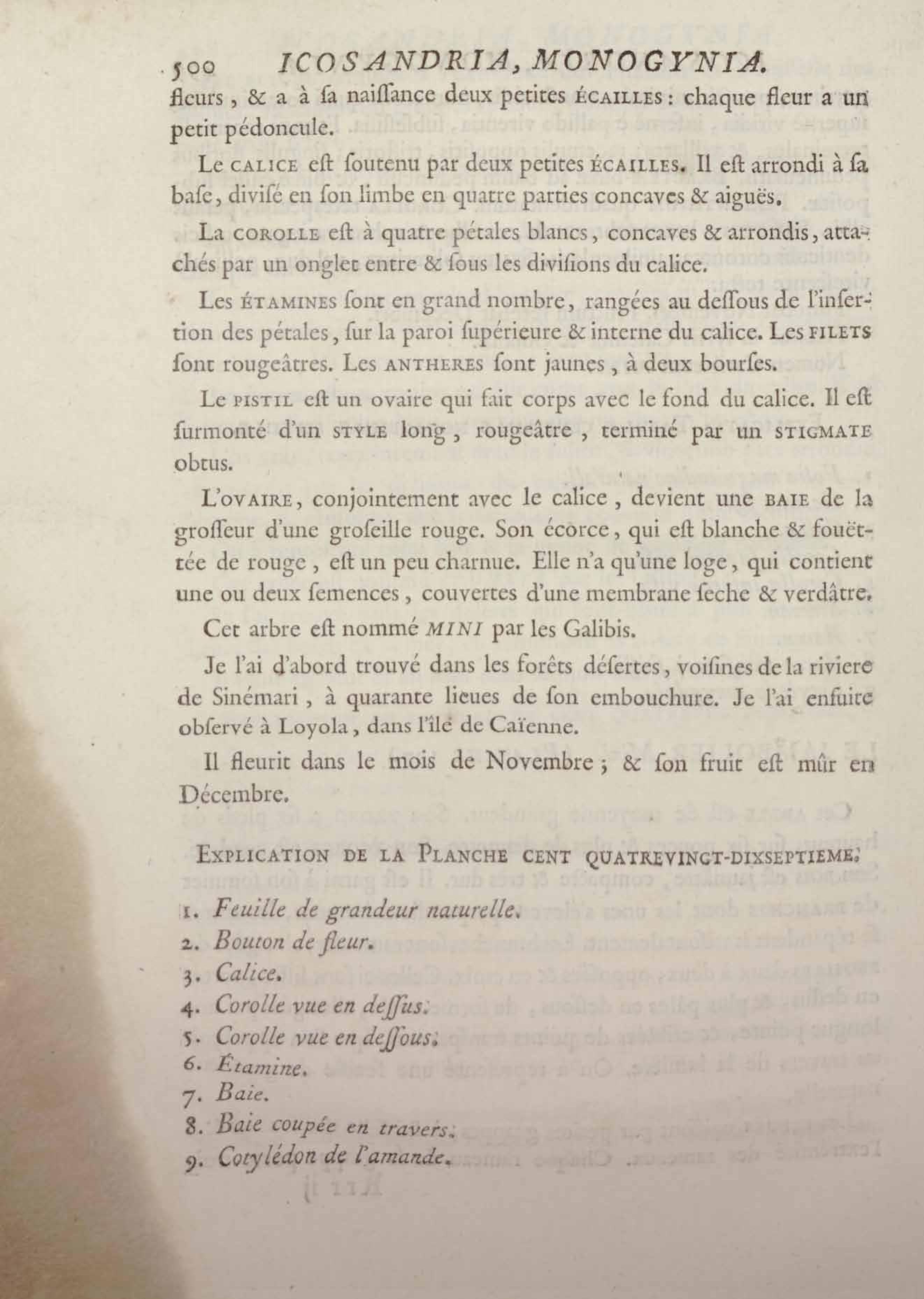 Histoire des plantes de la Guiane françoise, rangées suivant la méthode sexuelle : avec plusieurs mémoires sur différens objets intéressans, relatifs à la culture & au commerce de la Guiane françoise, & une notice des plantes de l'Isle-de-France : ouvrage orné de près de quatre cents planches en taille-douce, où sont représentées des plantes qui n'ont point encore été décrites ni gravées, ou qui ne l'ont été qu'imparfaitement. Tome premier