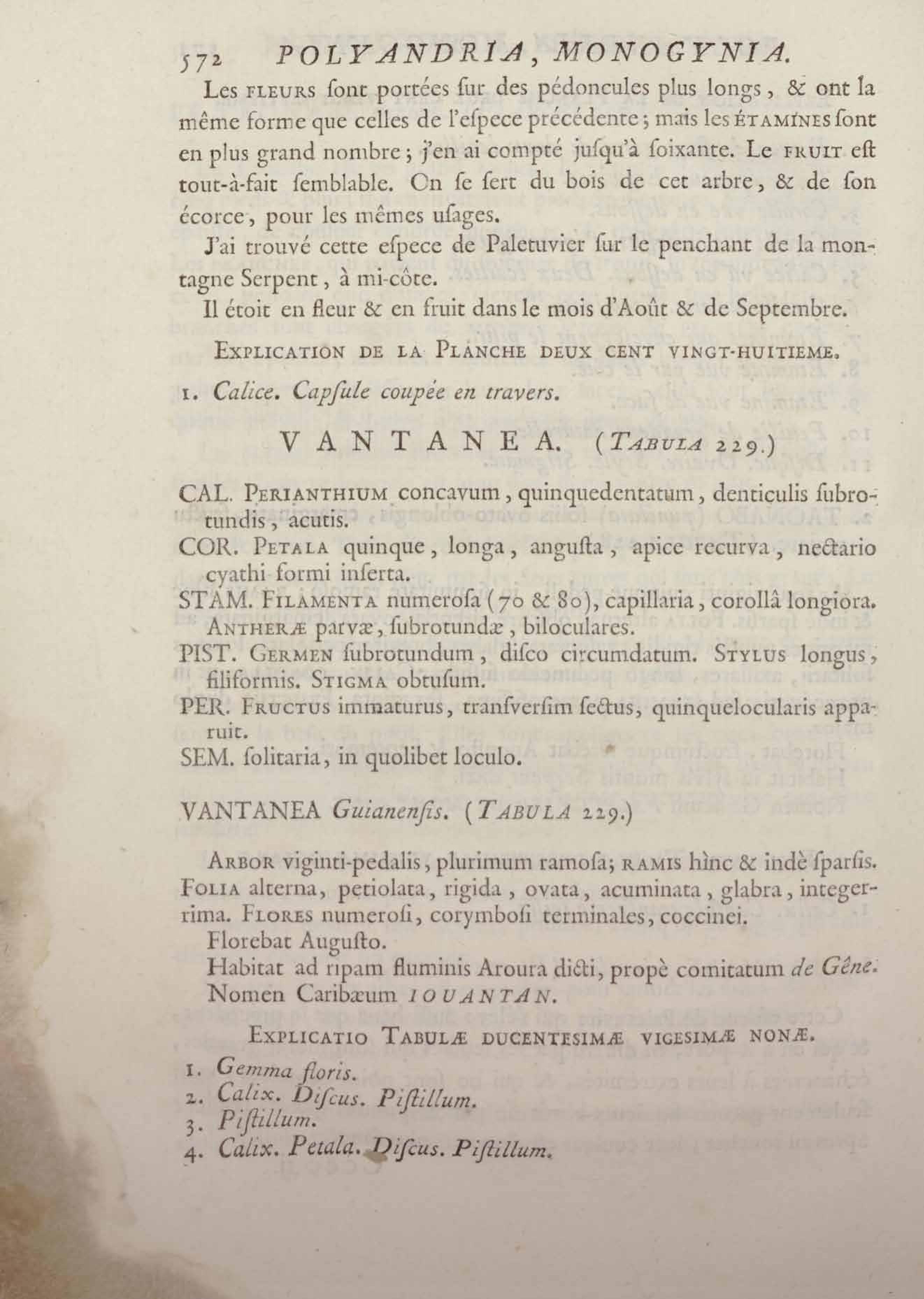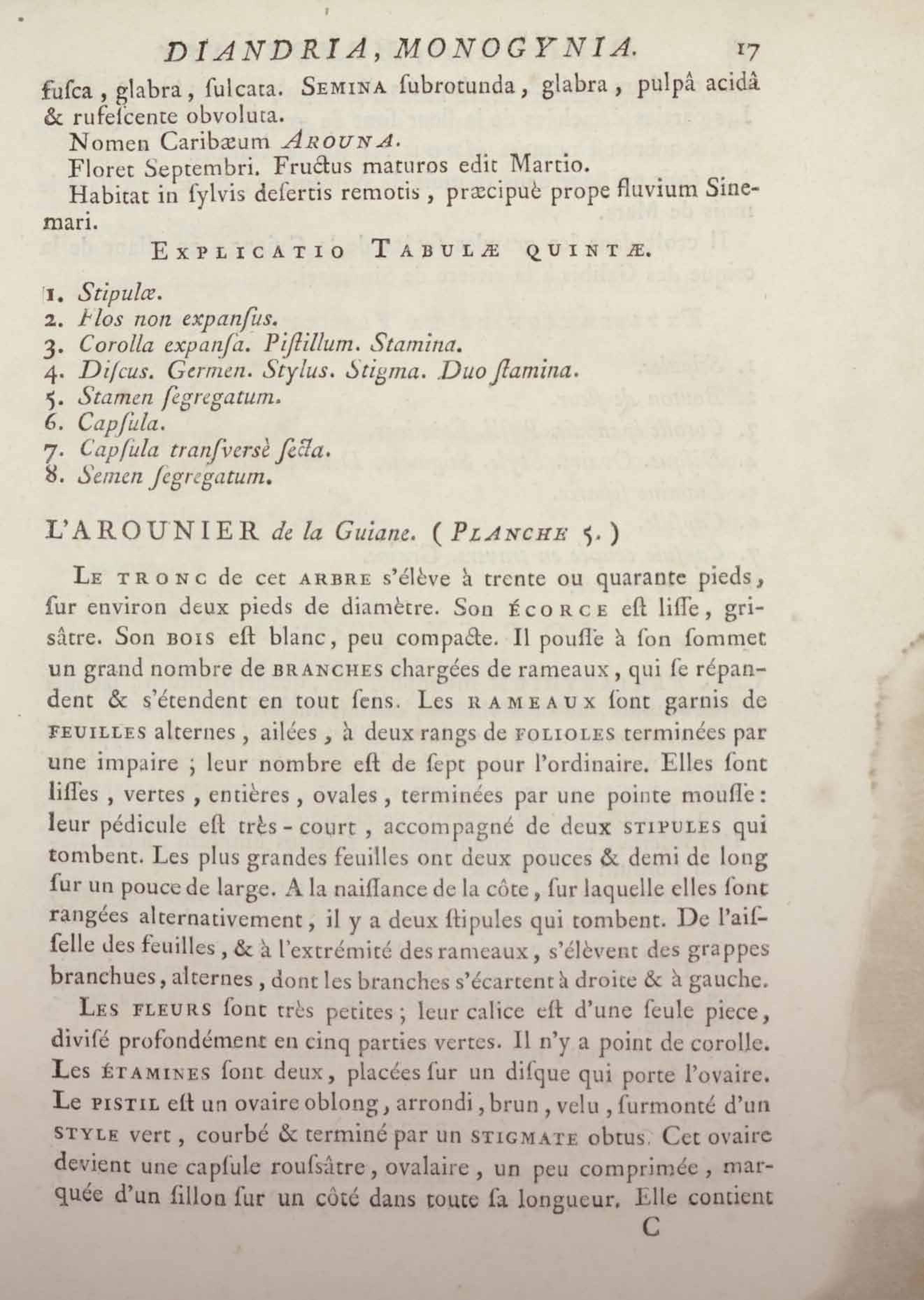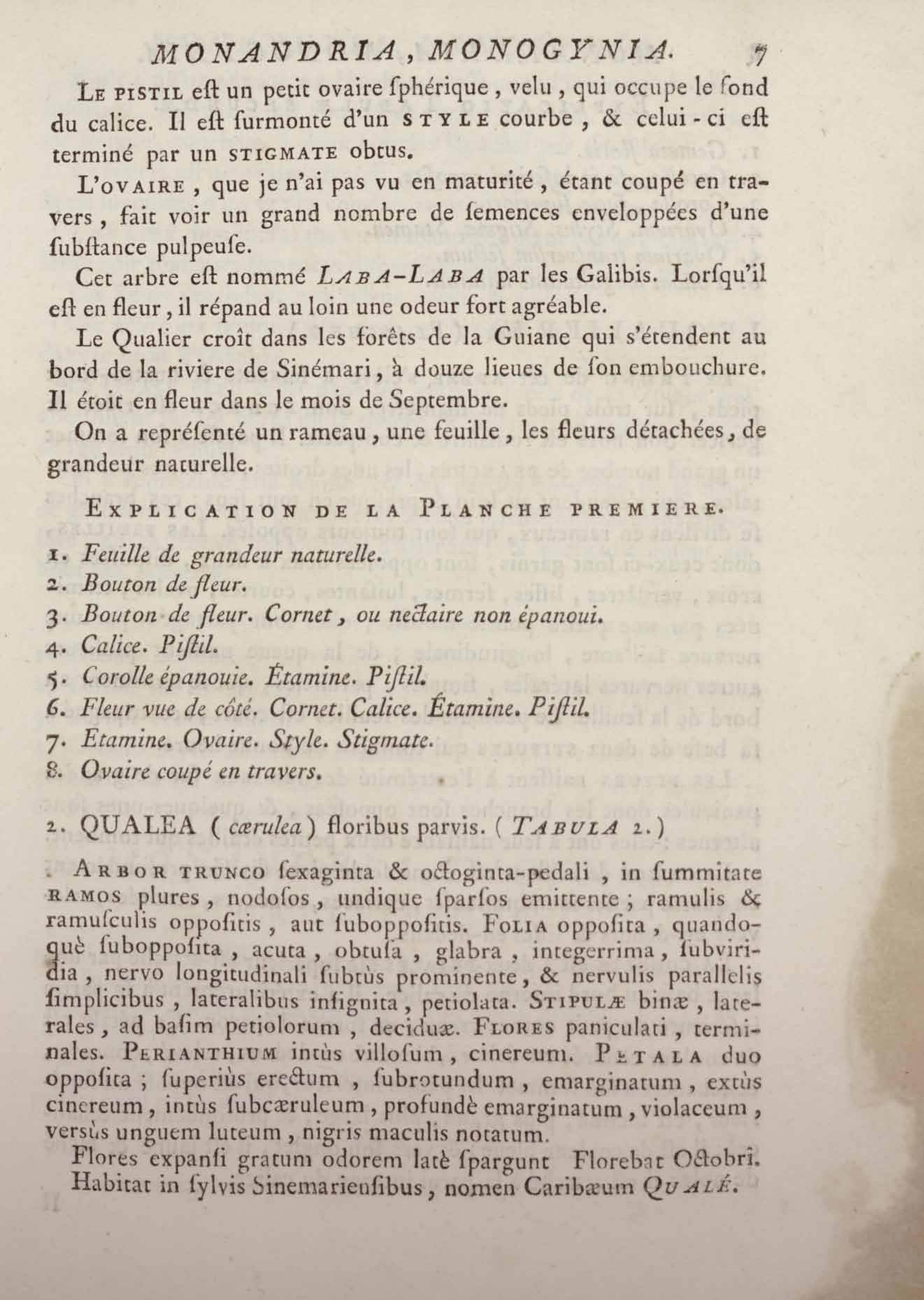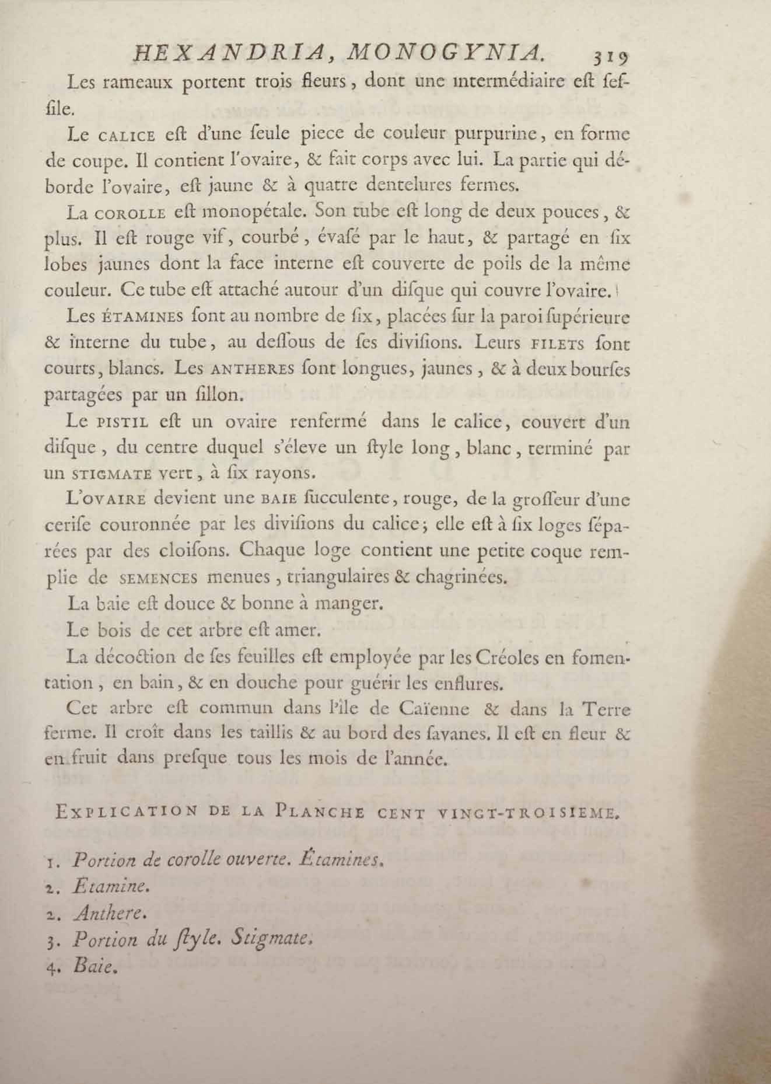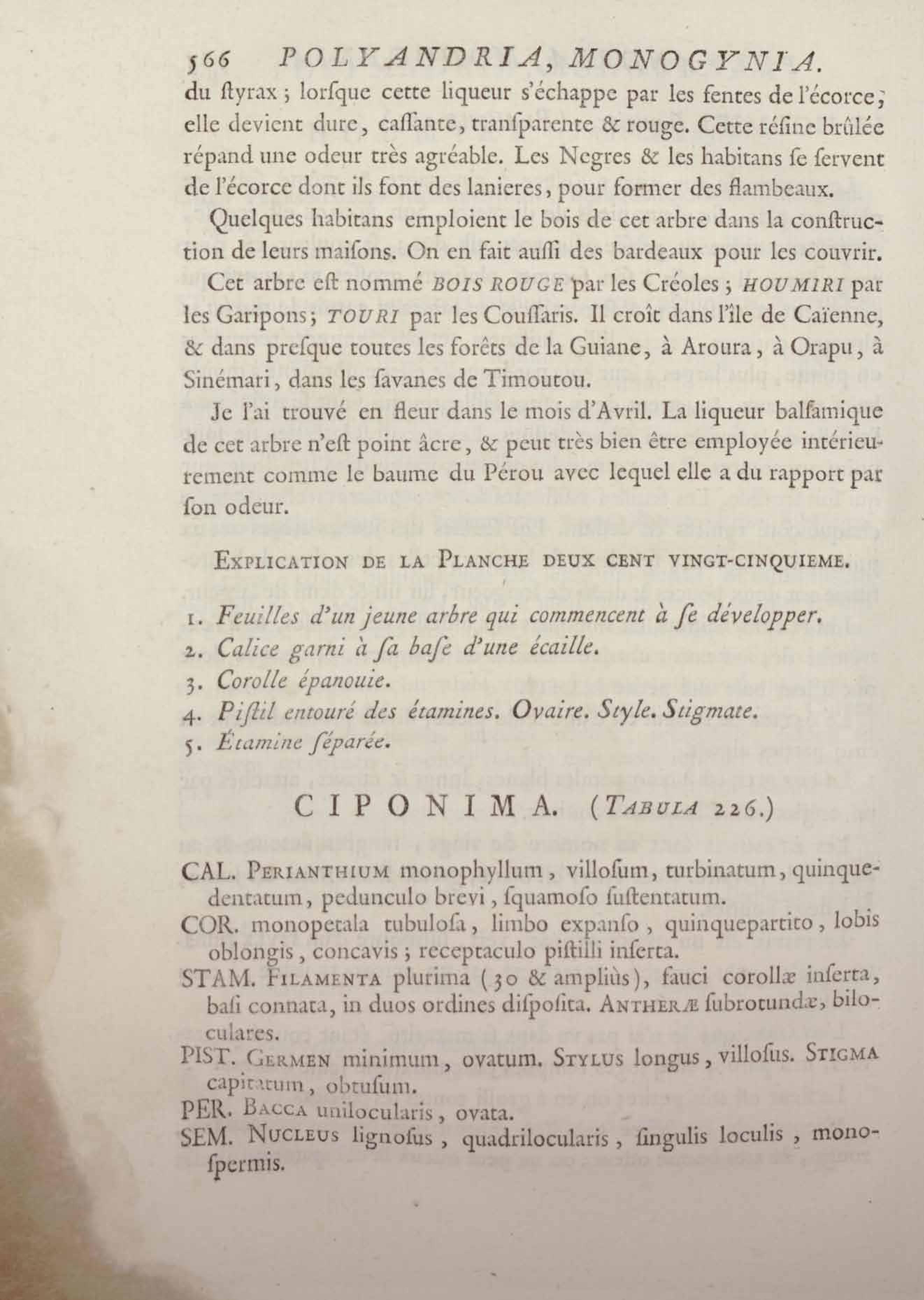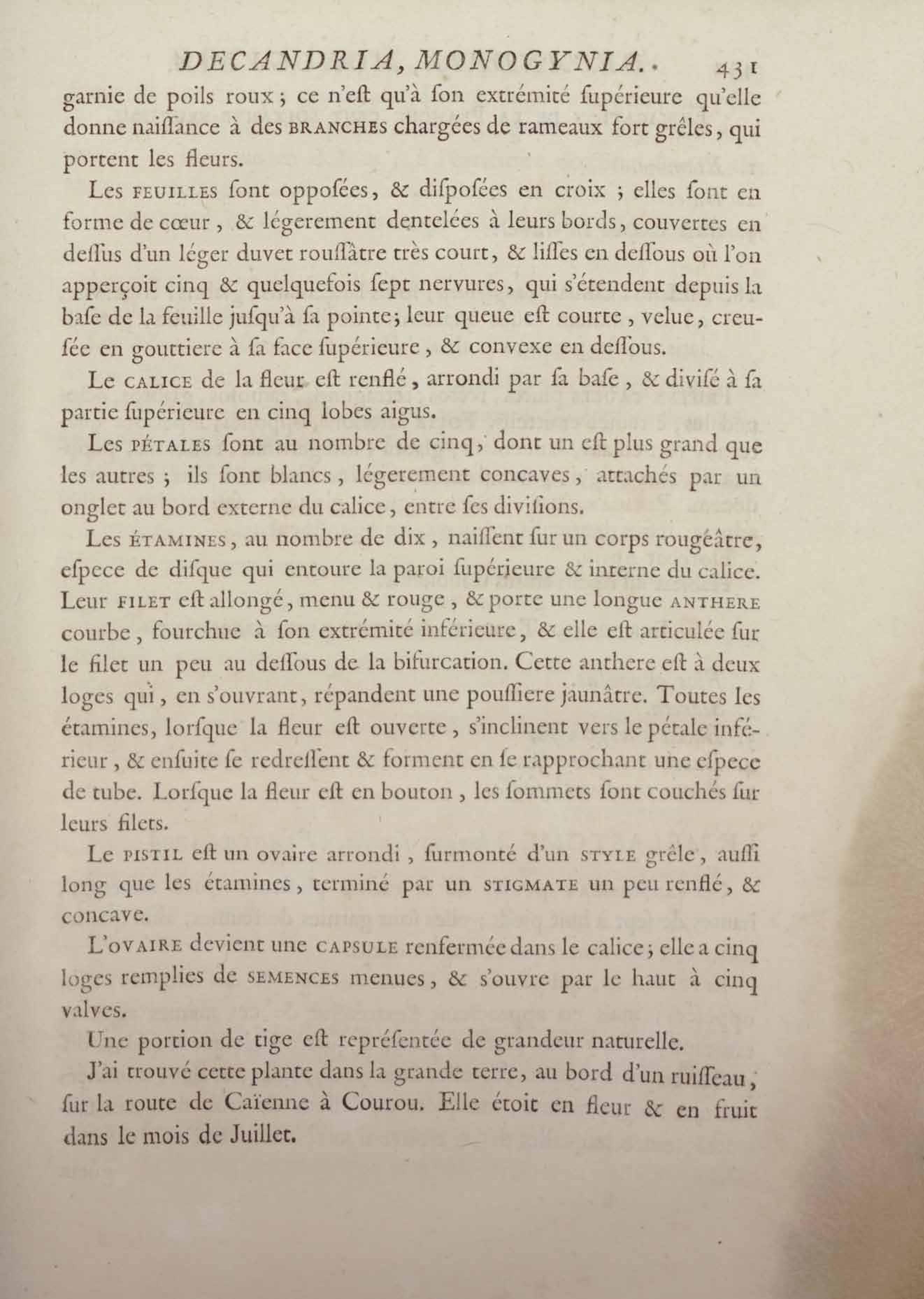 Histoire des plantes de la Guiane françoise, rangées suivant la méthode sexuelle : avec plusieurs mémoires sur différens objets intéressans, relatifs à la culture & au commerce de la Guiane françoise, & une notice des plantes de l'Isle-de-France : ouvrage orné de près de quatre cents planches en taille-douce, où sont représentées des plantes qui n'ont point encore été décrites ni gravées, ou qui ne l'ont été qu'imparfaitement. Tome premier