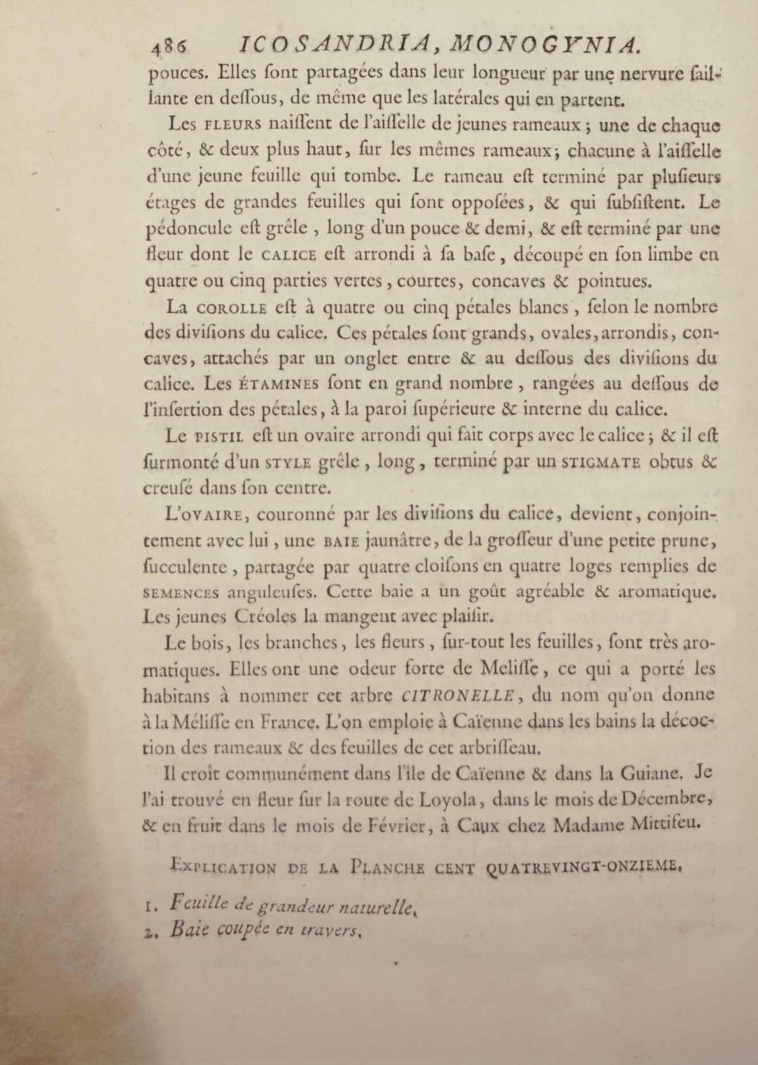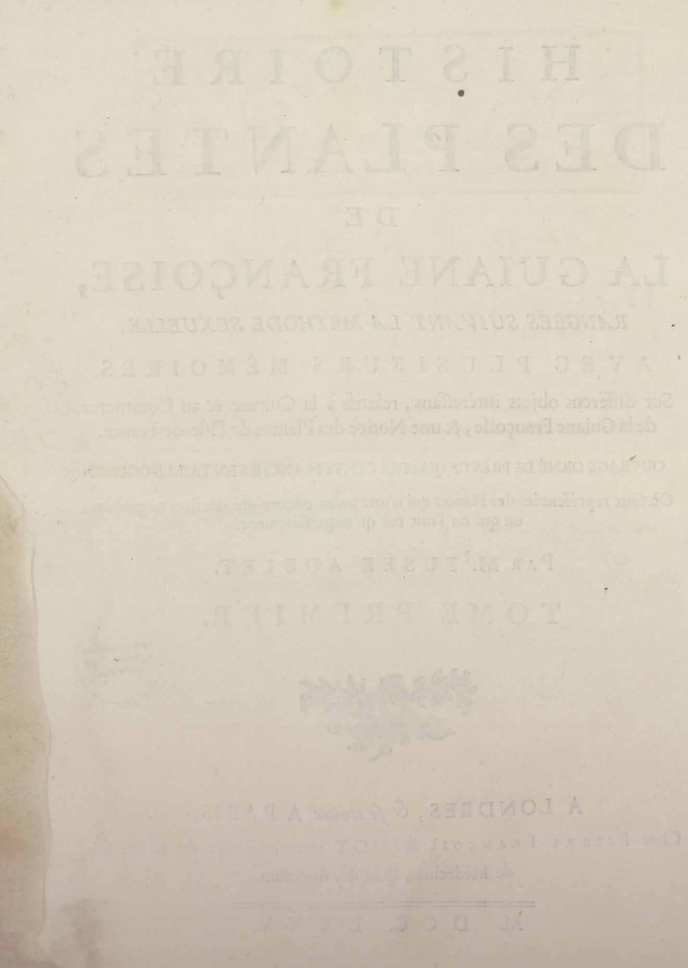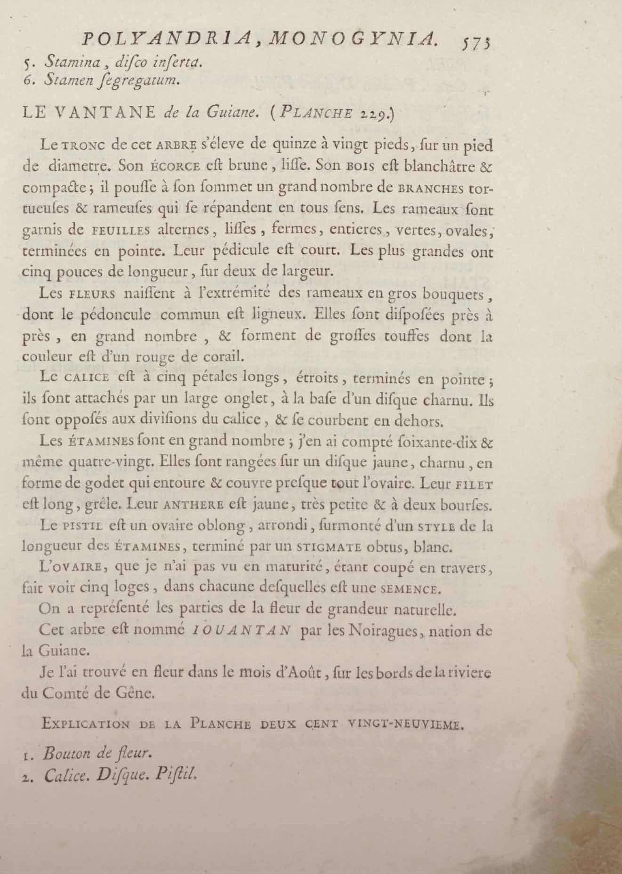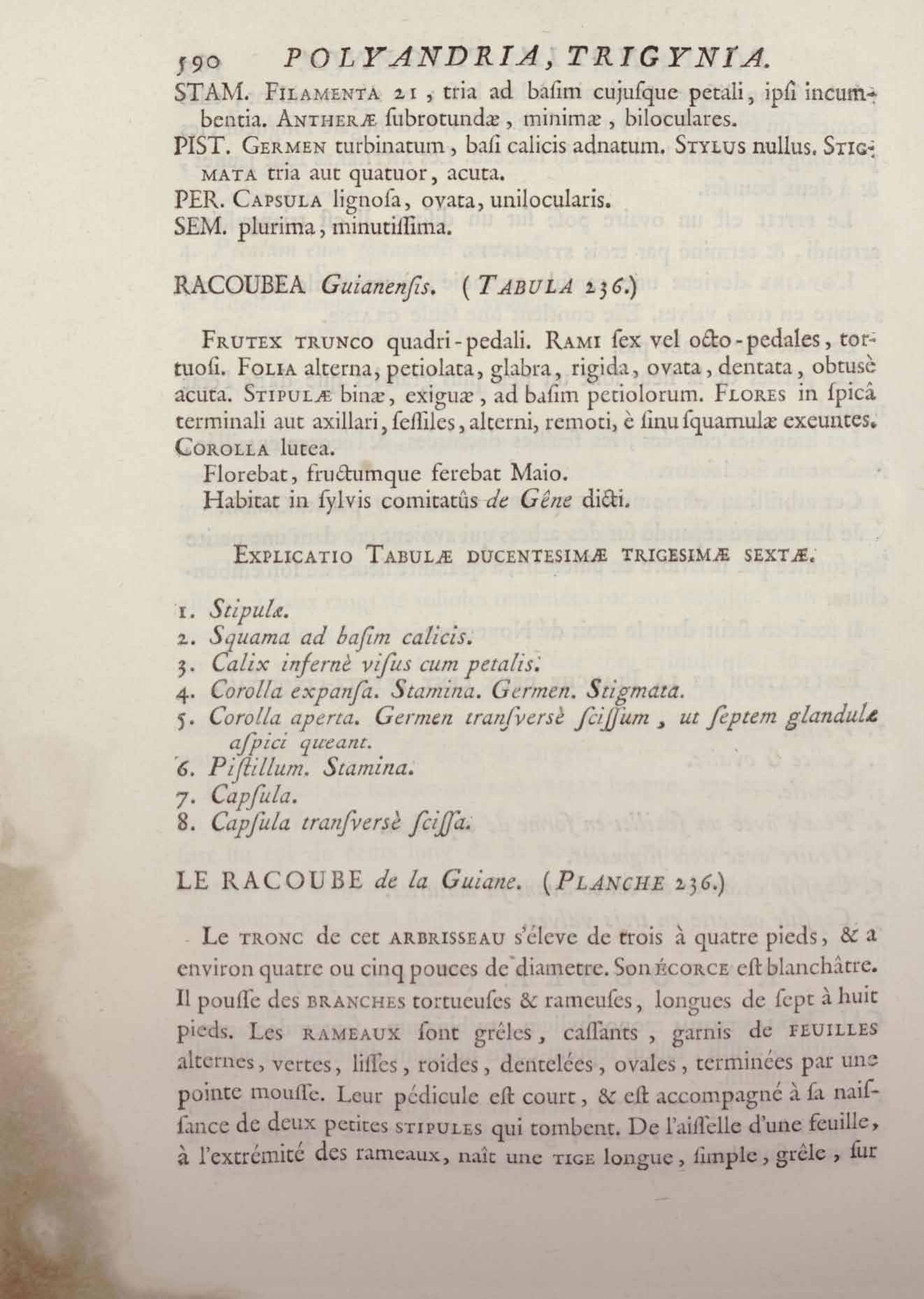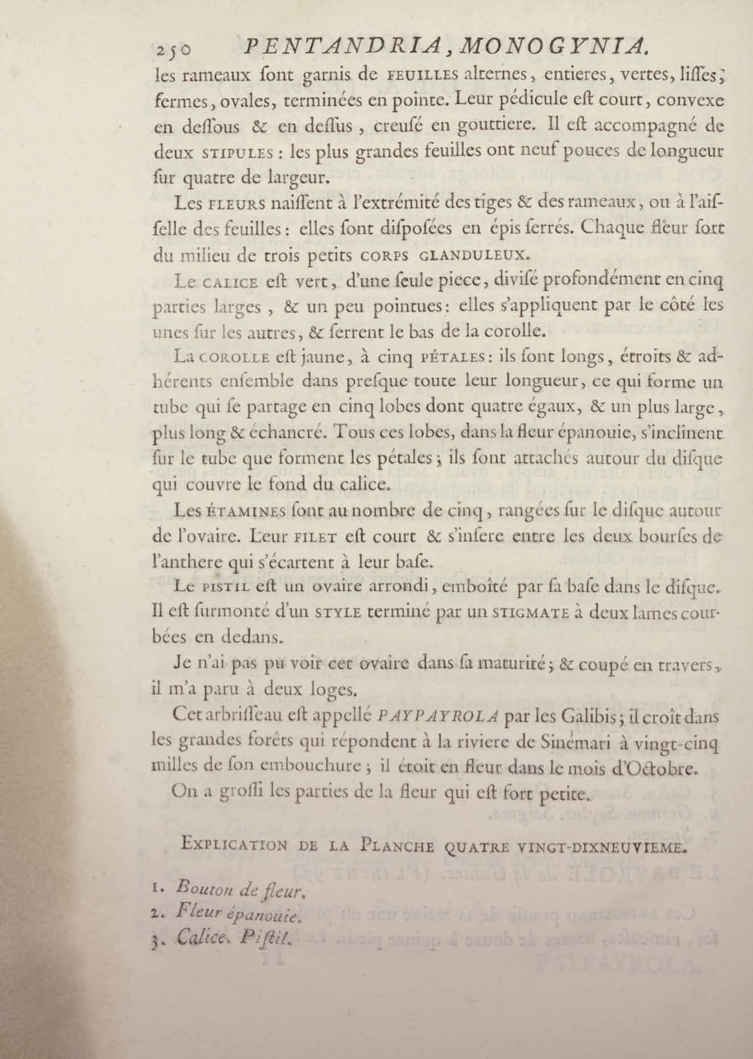 Histoire des plantes de la Guiane françoise, rangées suivant la méthode sexuelle : avec plusieurs mémoires sur différens objets intéressans, relatifs à la culture & au commerce de la Guiane françoise, & une notice des plantes de l'Isle-de-France : ouvrage orné de près de quatre cents planches en taille-douce, où sont représentées des plantes qui n'ont point encore été décrites ni gravées, ou qui ne l'ont été qu'imparfaitement. Tome premier