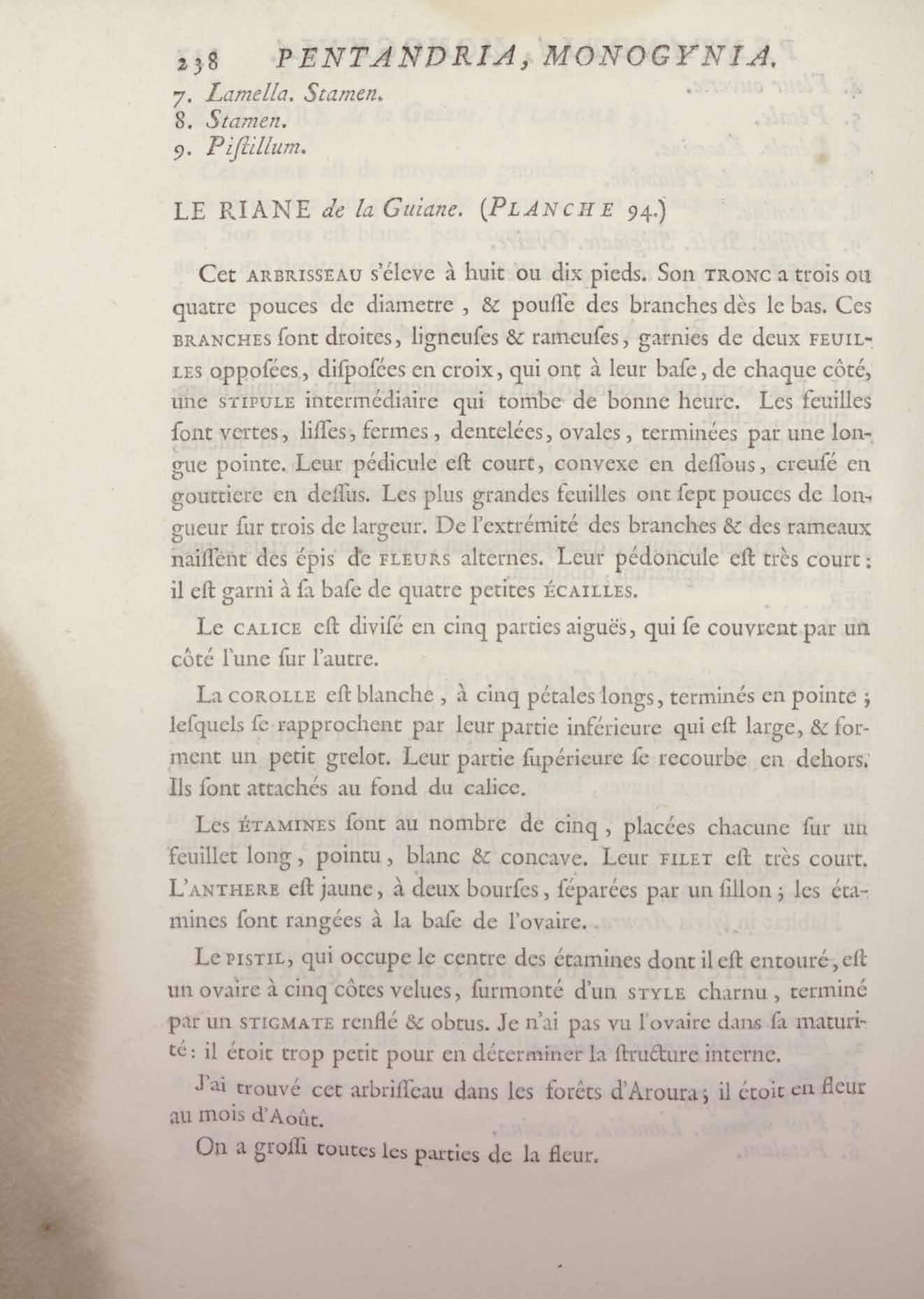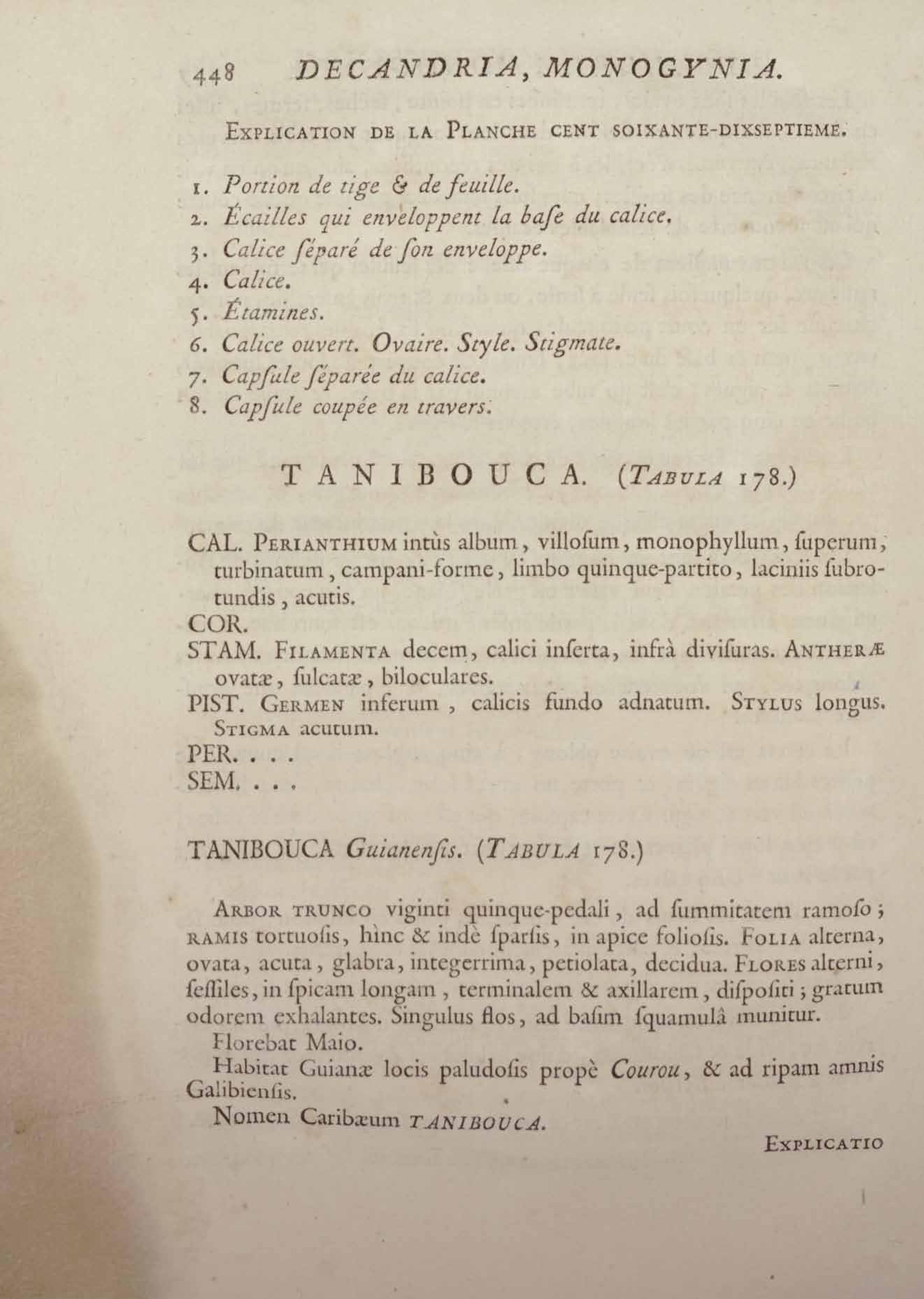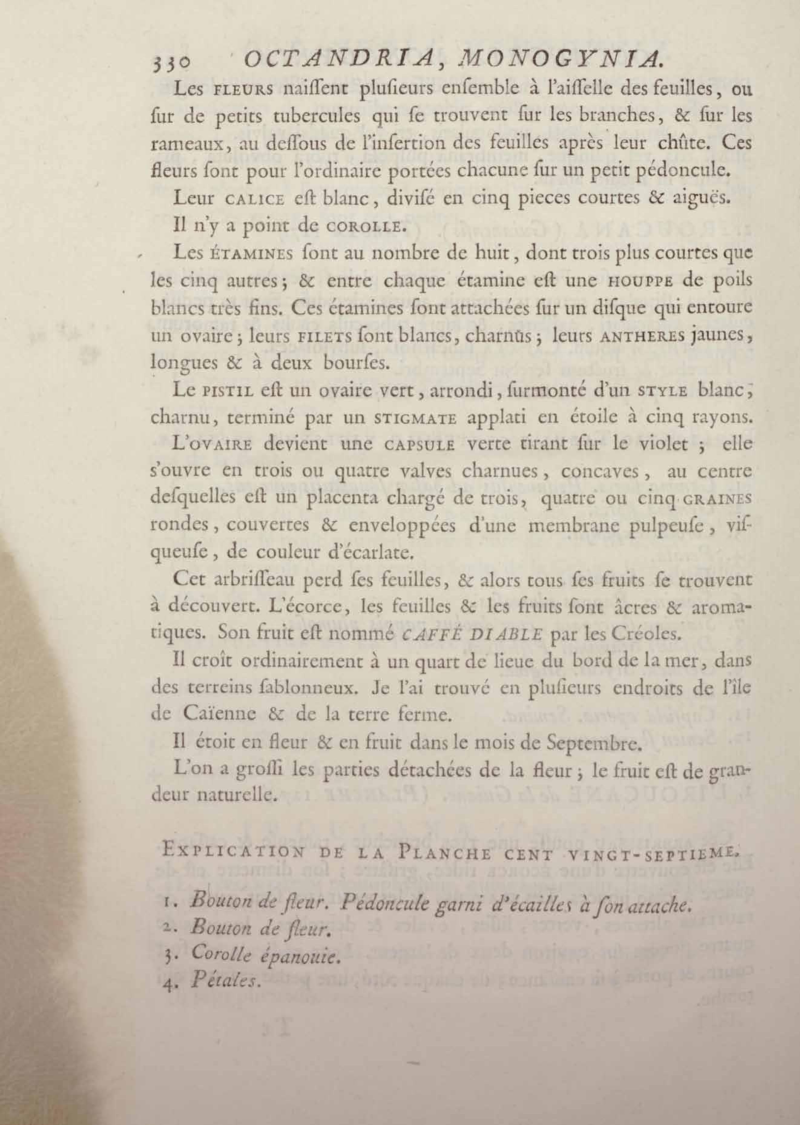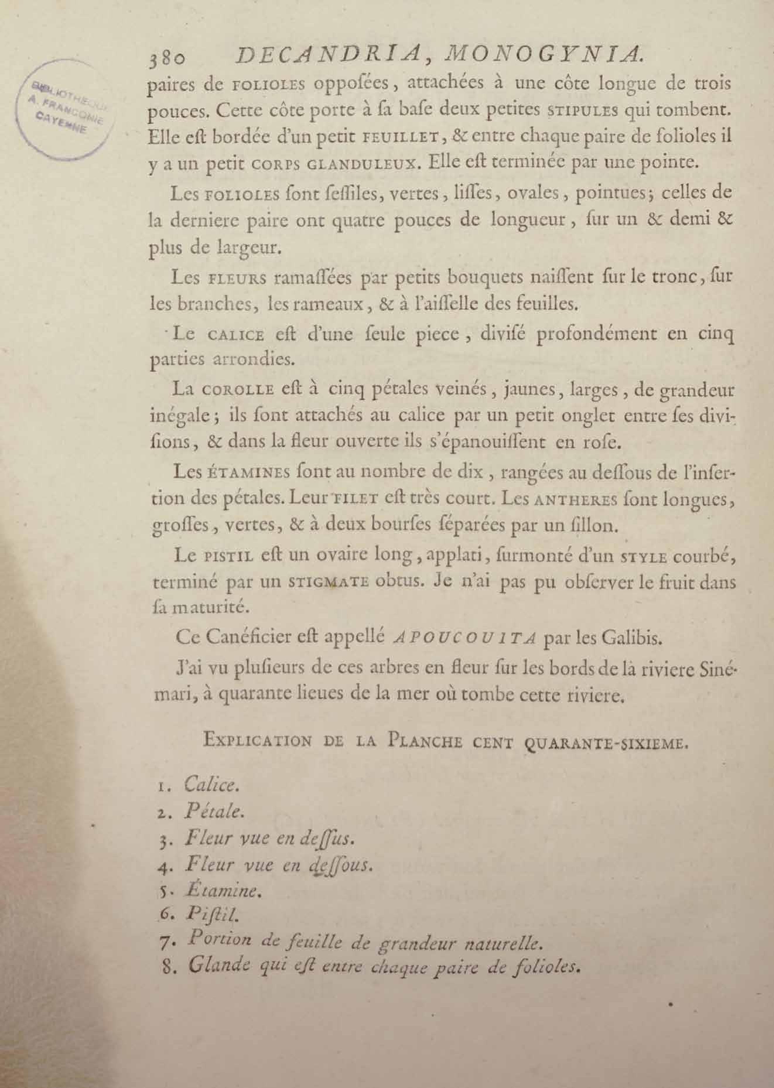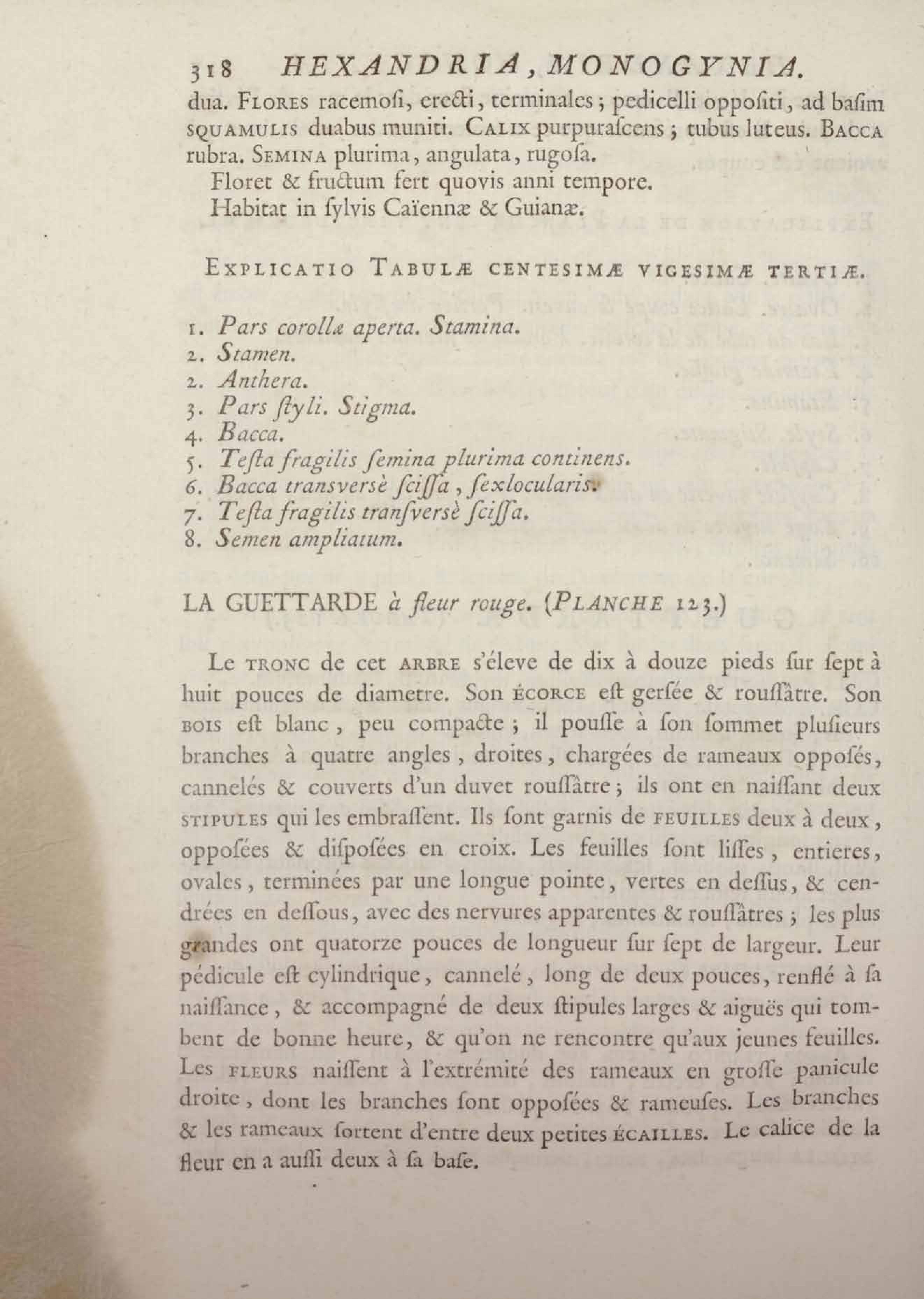 Histoire des plantes de la Guiane françoise, rangées suivant la méthode sexuelle : avec plusieurs mémoires sur différens objets intéressans, relatifs à la culture & au commerce de la Guiane françoise, & une notice des plantes de l'Isle-de-France : ouvrage orné de près de quatre cents planches en taille-douce, où sont représentées des plantes qui n'ont point encore été décrites ni gravées, ou qui ne l'ont été qu'imparfaitement. Tome premier