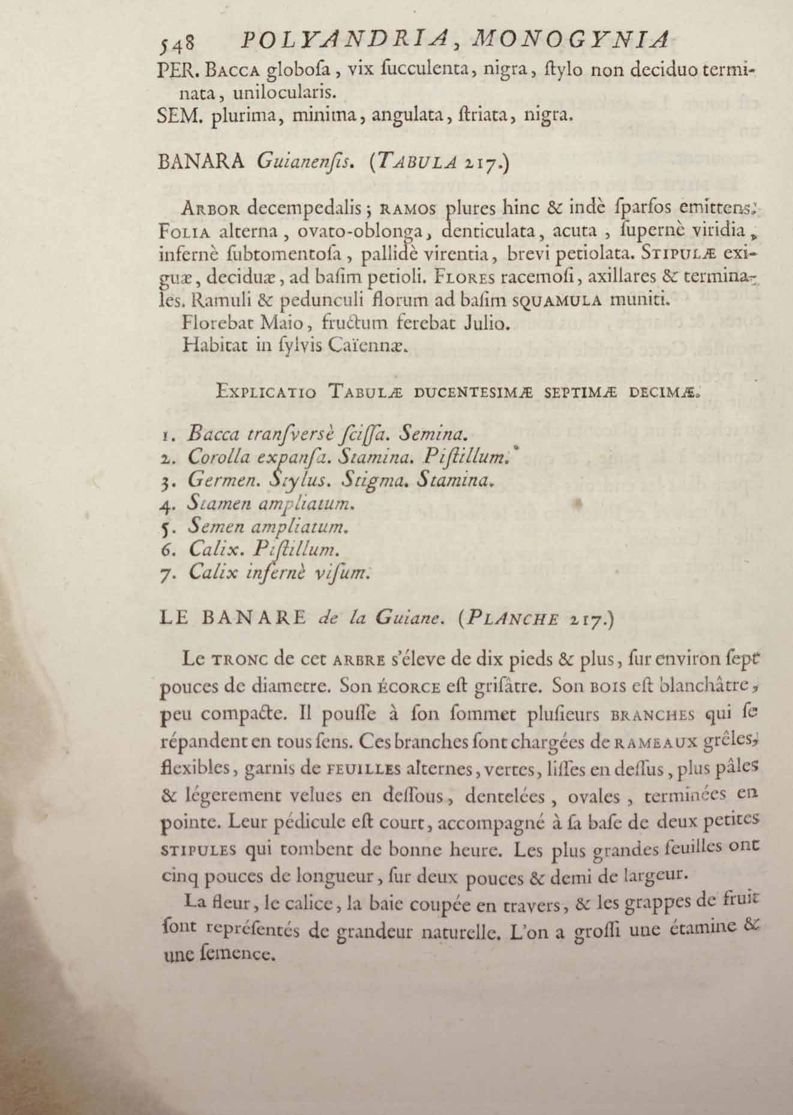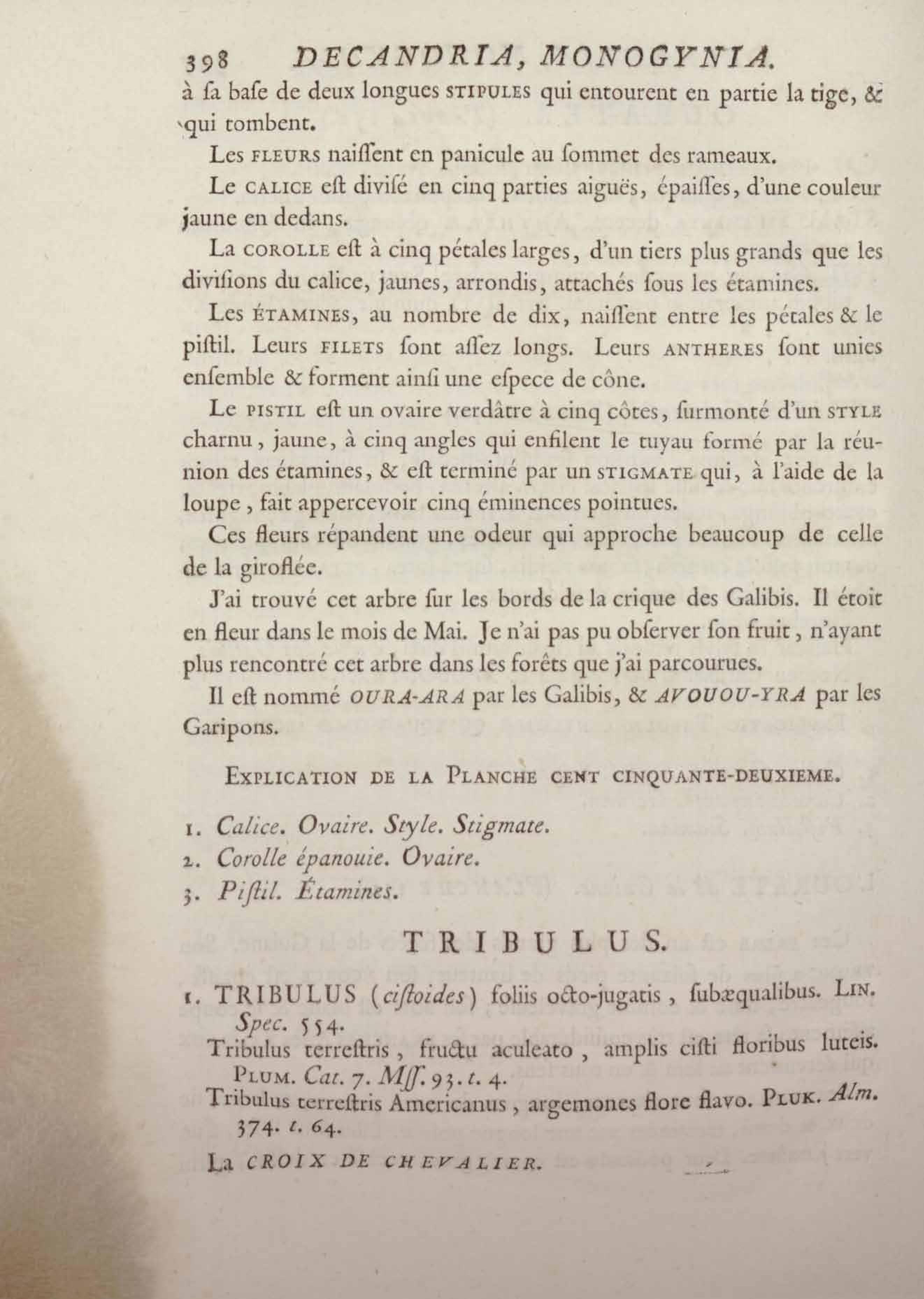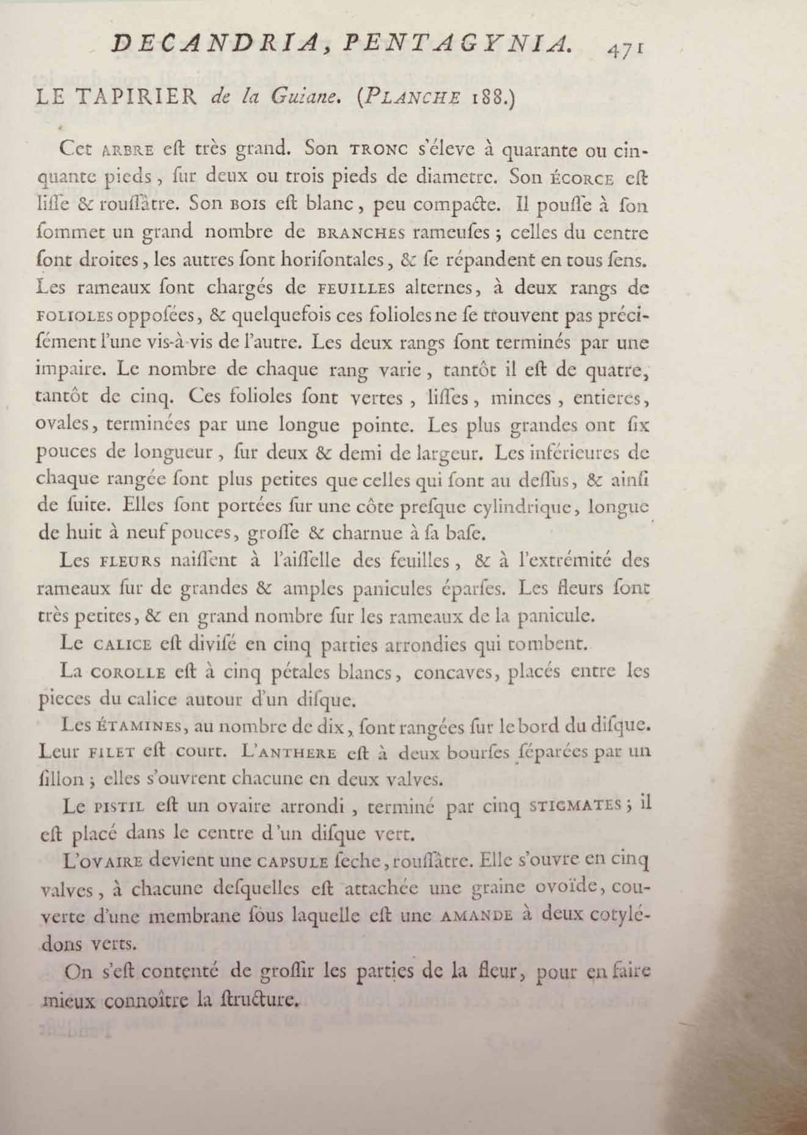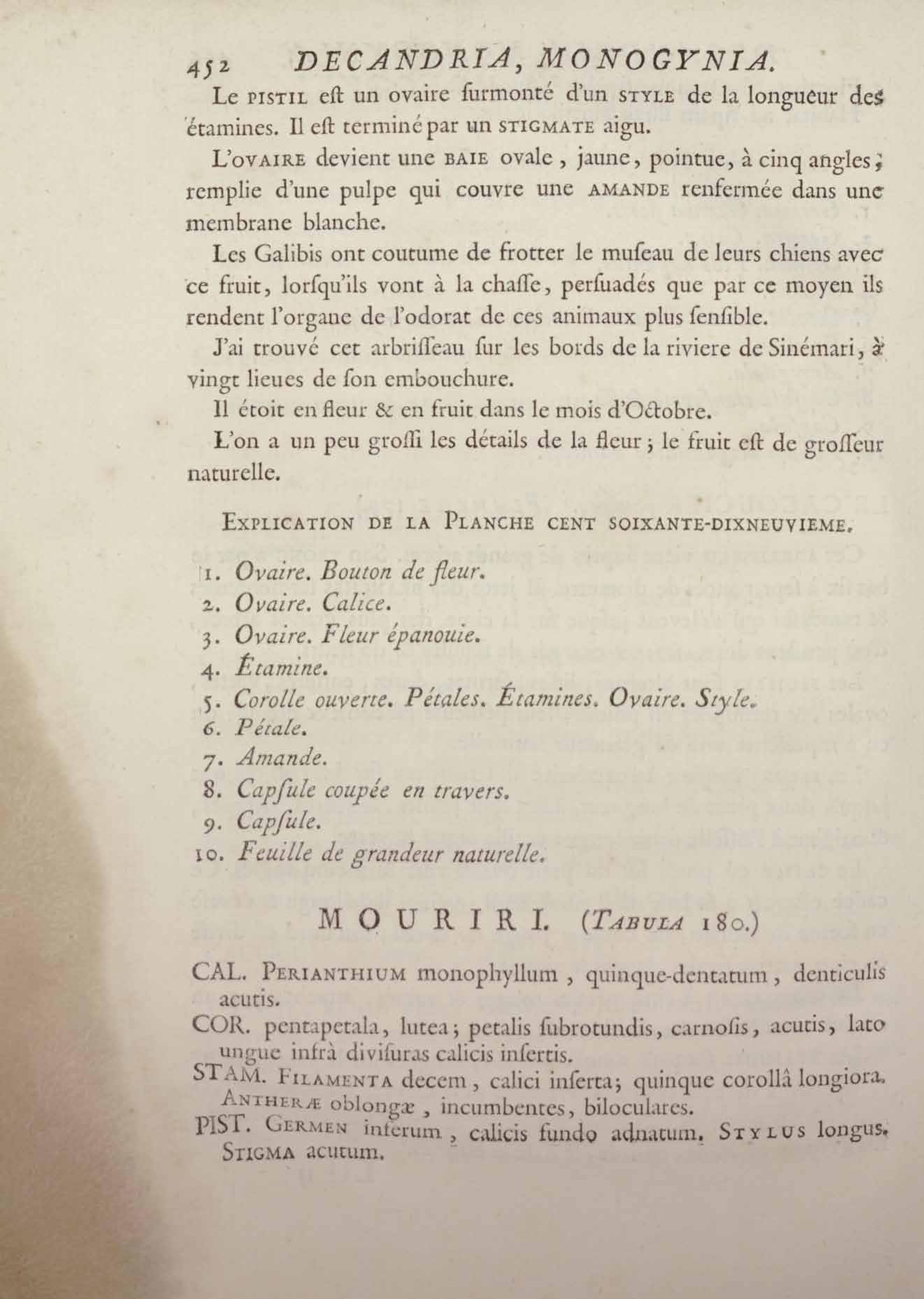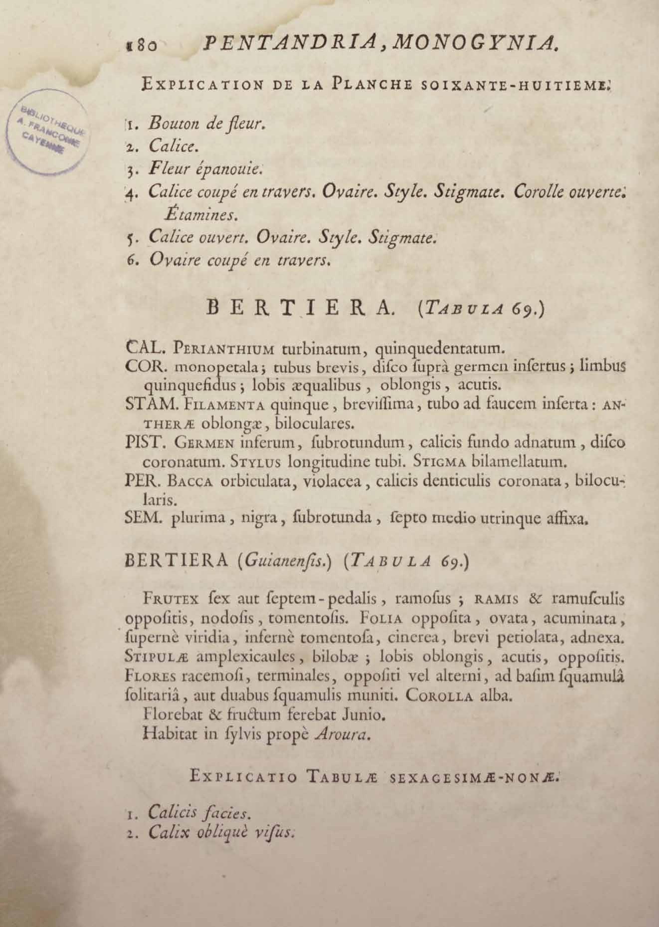 Histoire des plantes de la Guiane françoise, rangées suivant la méthode sexuelle : avec plusieurs mémoires sur différens objets intéressans, relatifs à la culture & au commerce de la Guiane françoise, & une notice des plantes de l'Isle-de-France : ouvrage orné de près de quatre cents planches en taille-douce, où sont représentées des plantes qui n'ont point encore été décrites ni gravées, ou qui ne l'ont été qu'imparfaitement. Tome premier