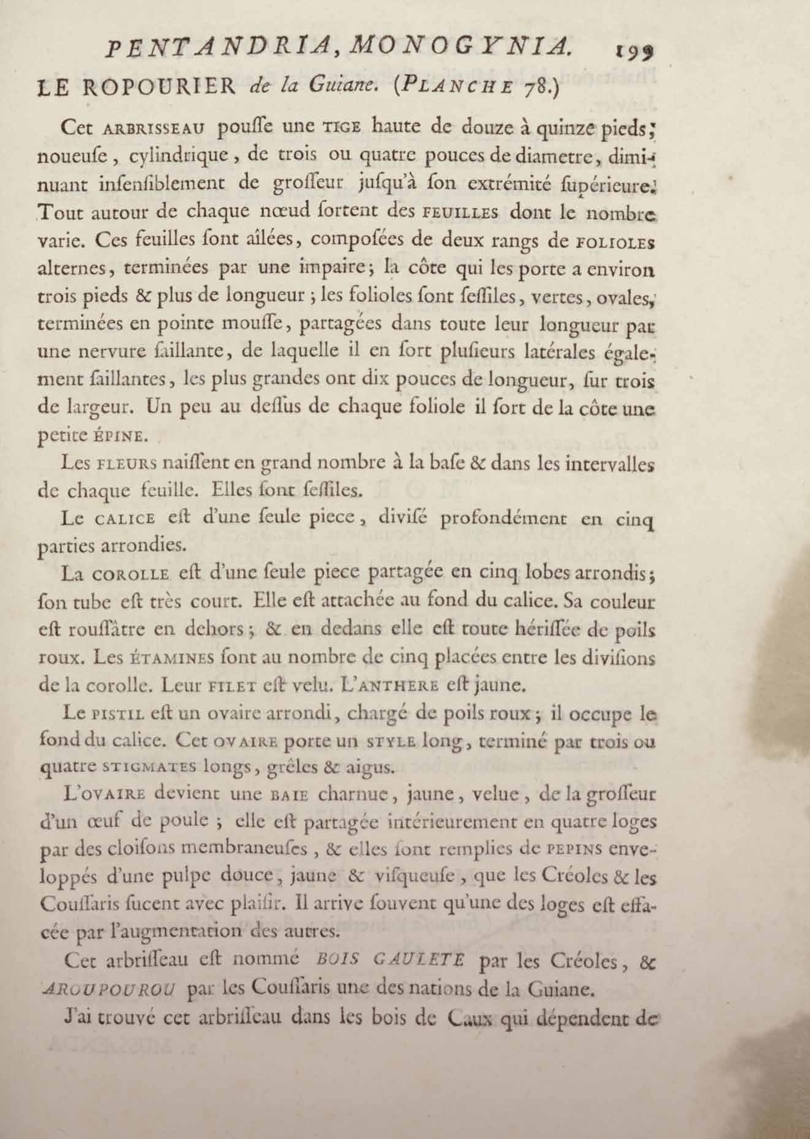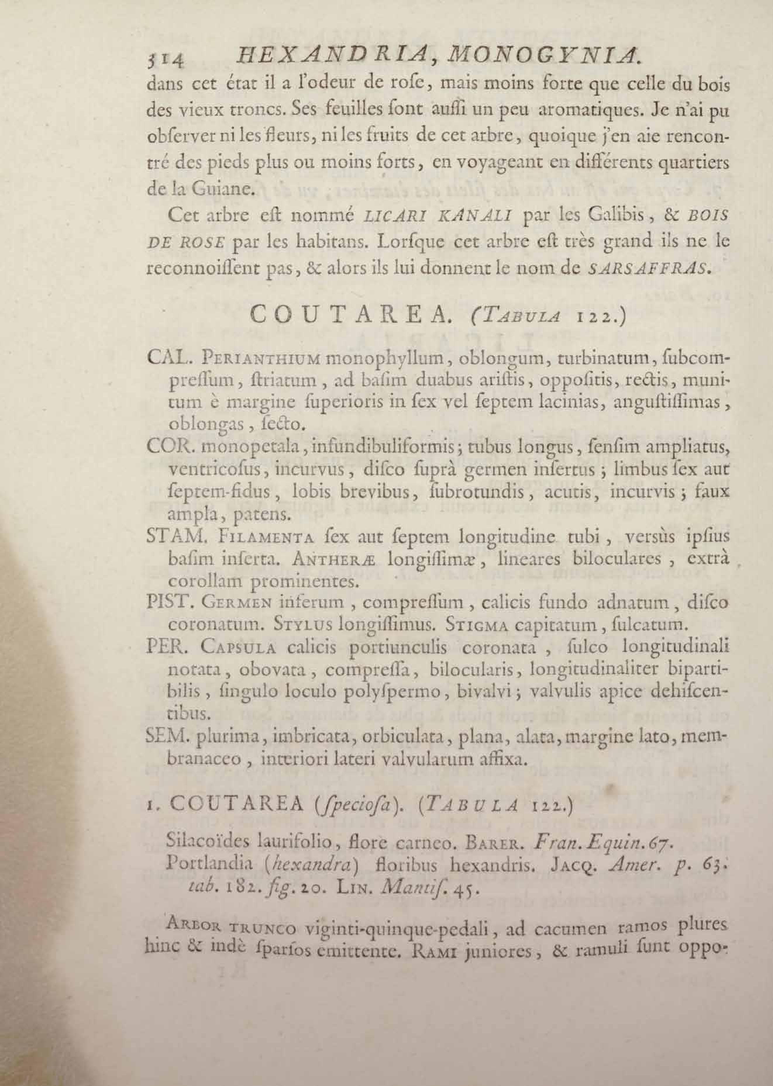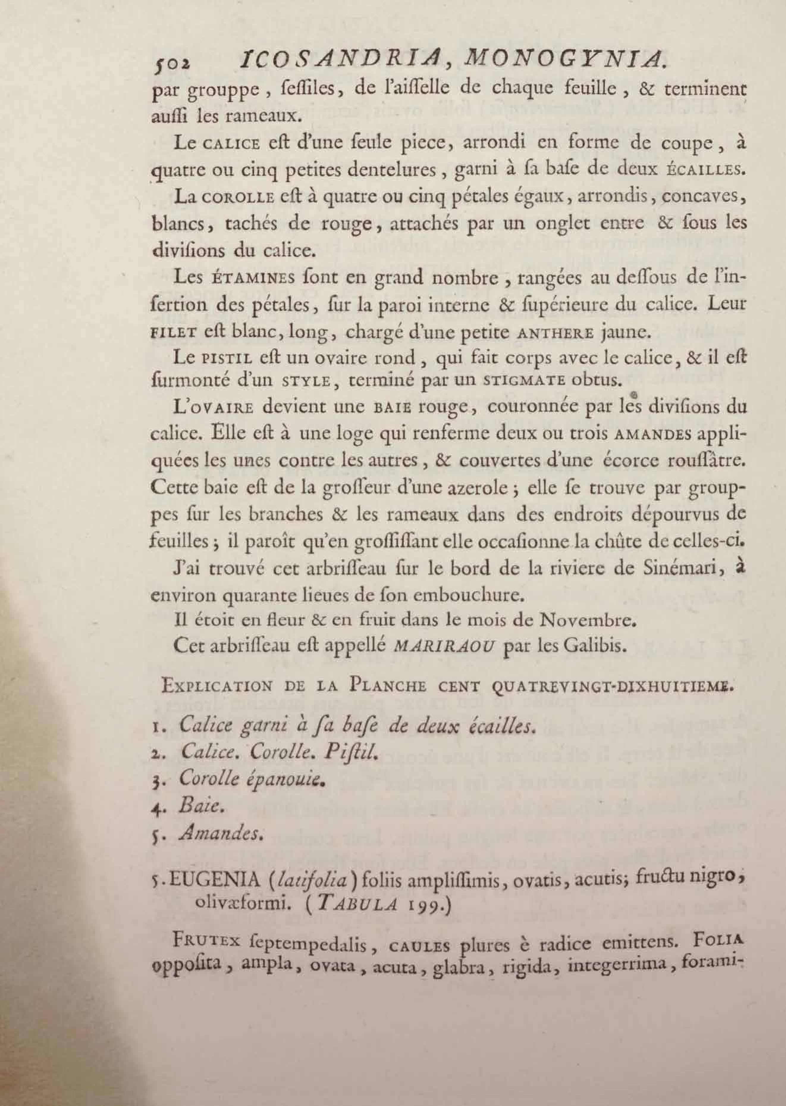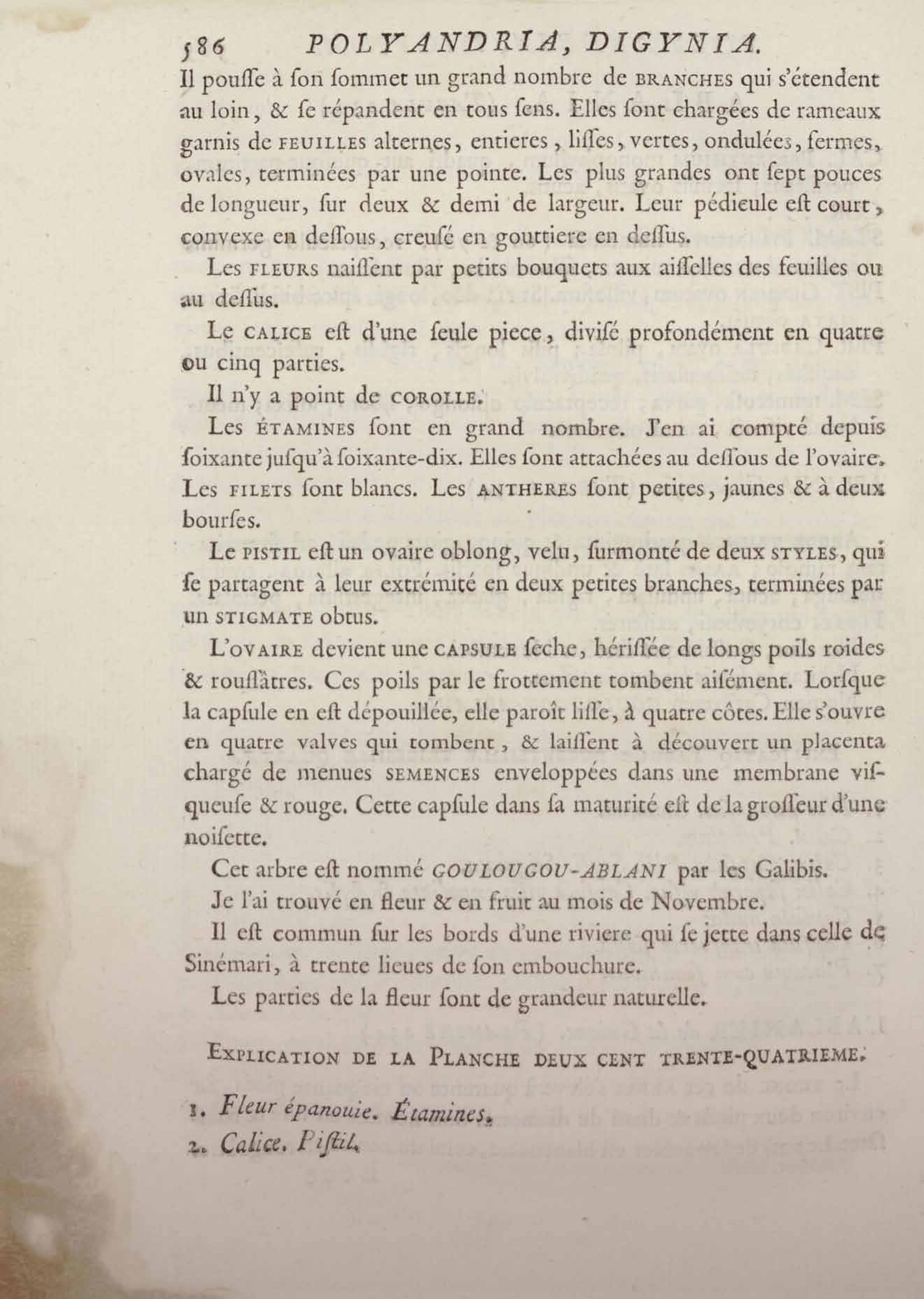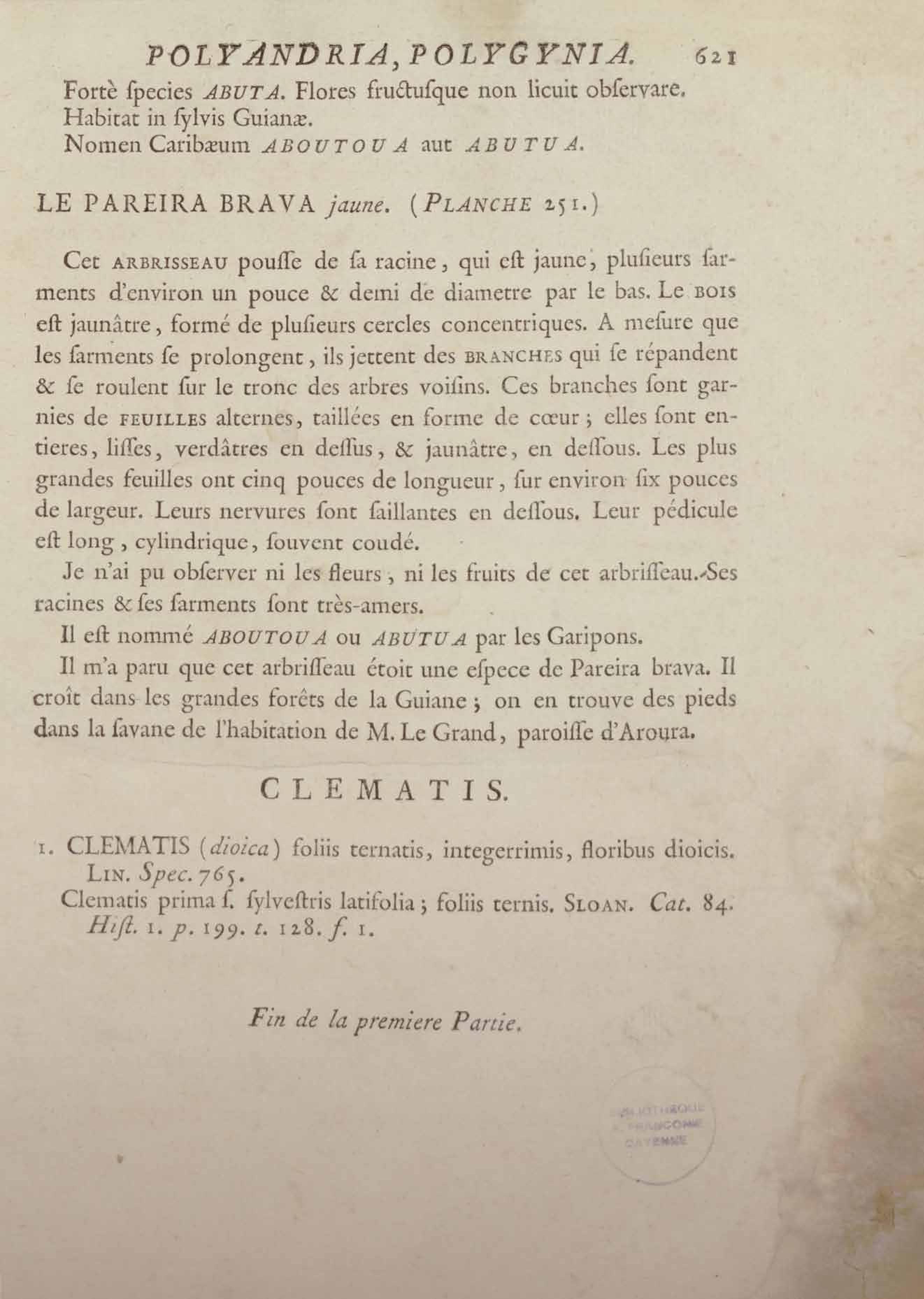 Histoire des plantes de la Guiane françoise, rangées suivant la méthode sexuelle : avec plusieurs mémoires sur différens objets intéressans, relatifs à la culture & au commerce de la Guiane françoise, & une notice des plantes de l'Isle-de-France : ouvrage orné de près de quatre cents planches en taille-douce, où sont représentées des plantes qui n'ont point encore été décrites ni gravées, ou qui ne l'ont été qu'imparfaitement. Tome premier