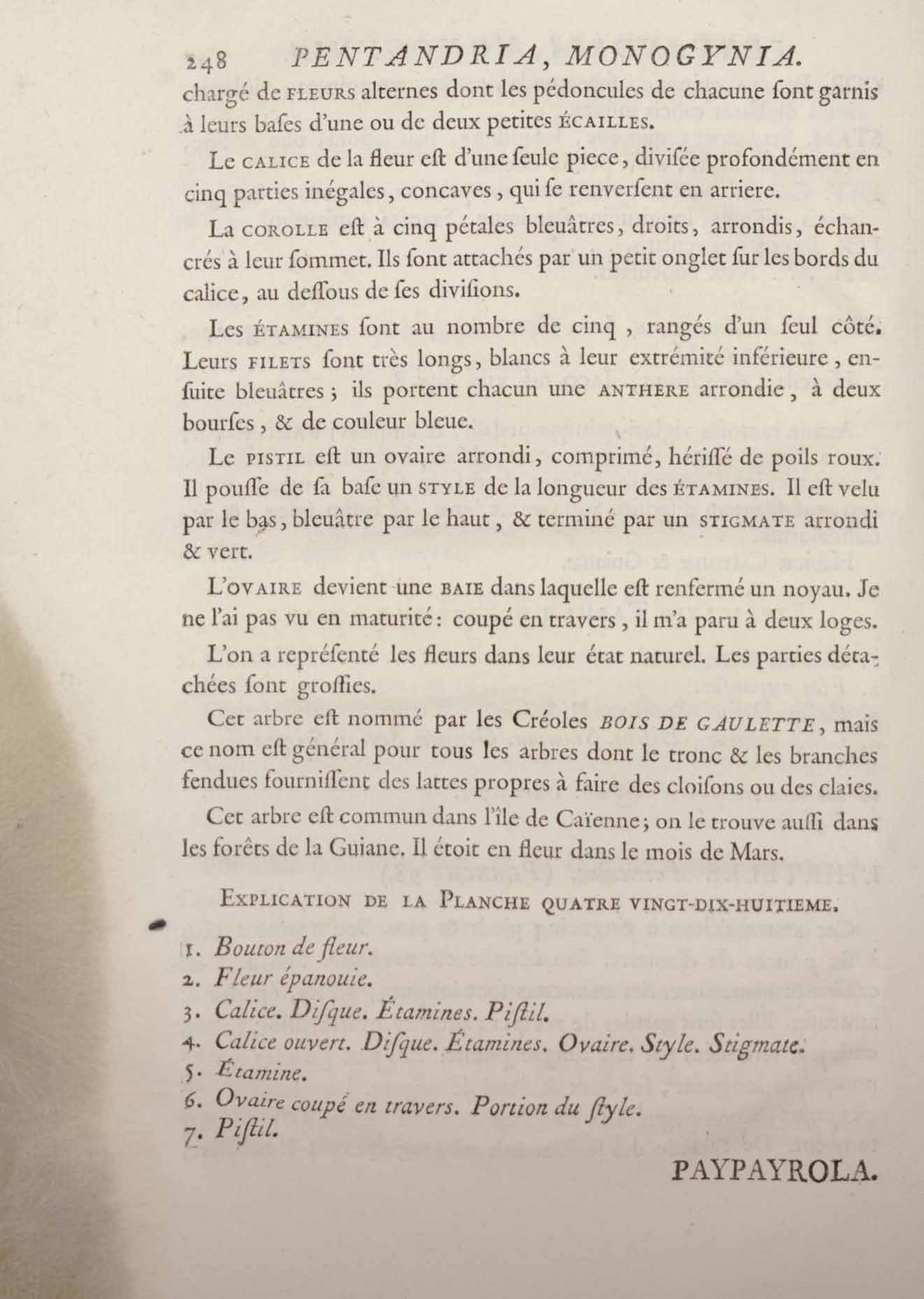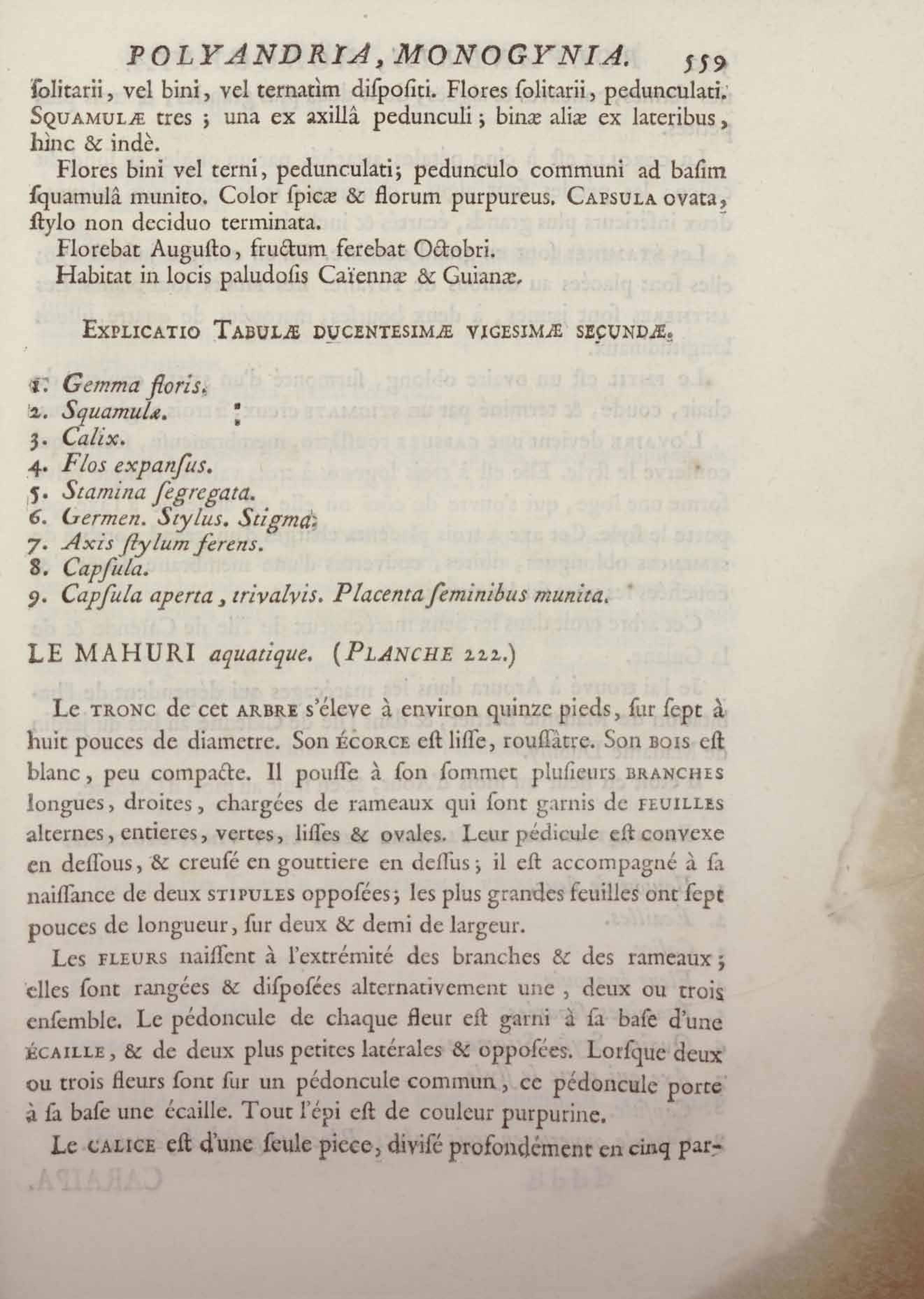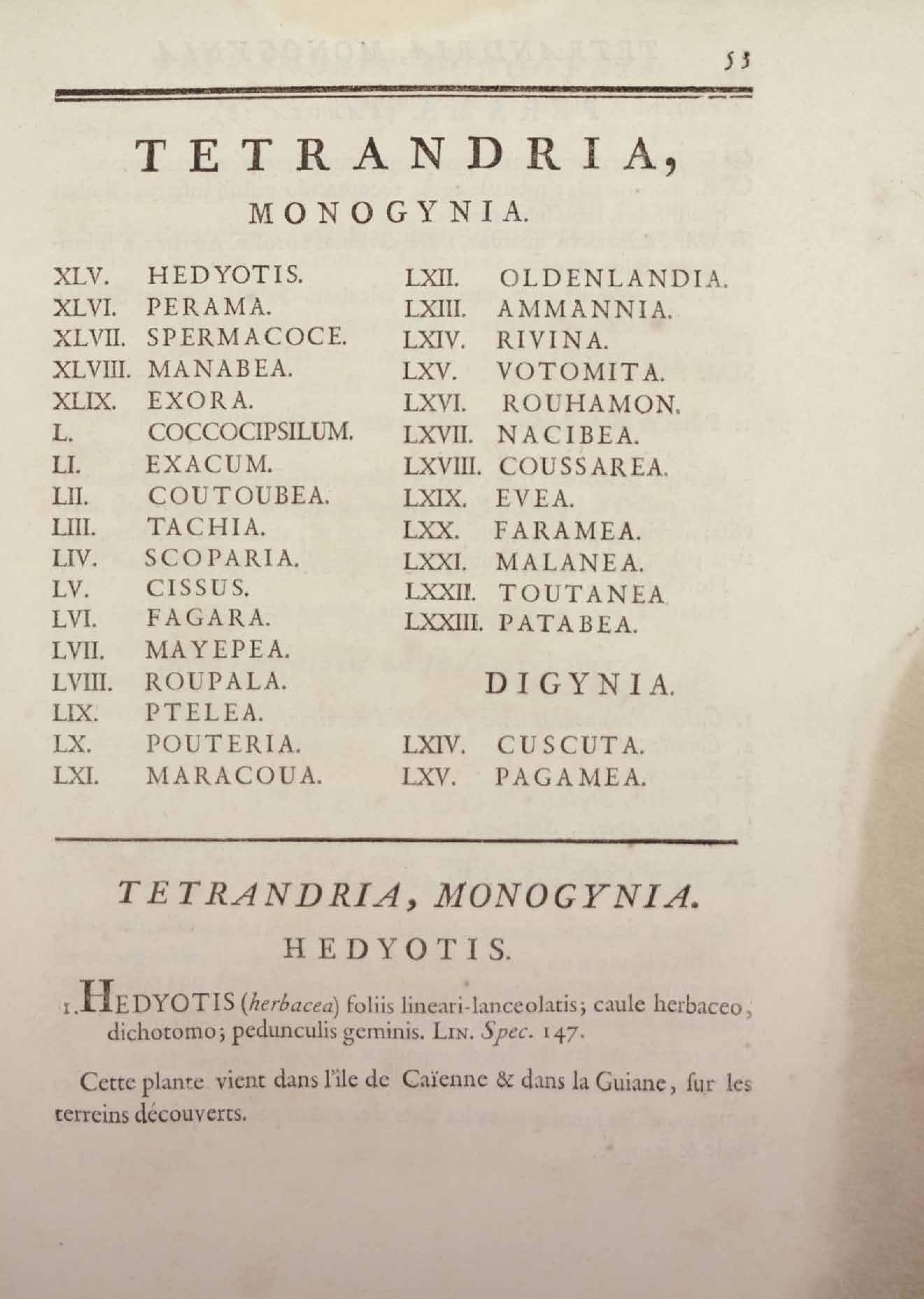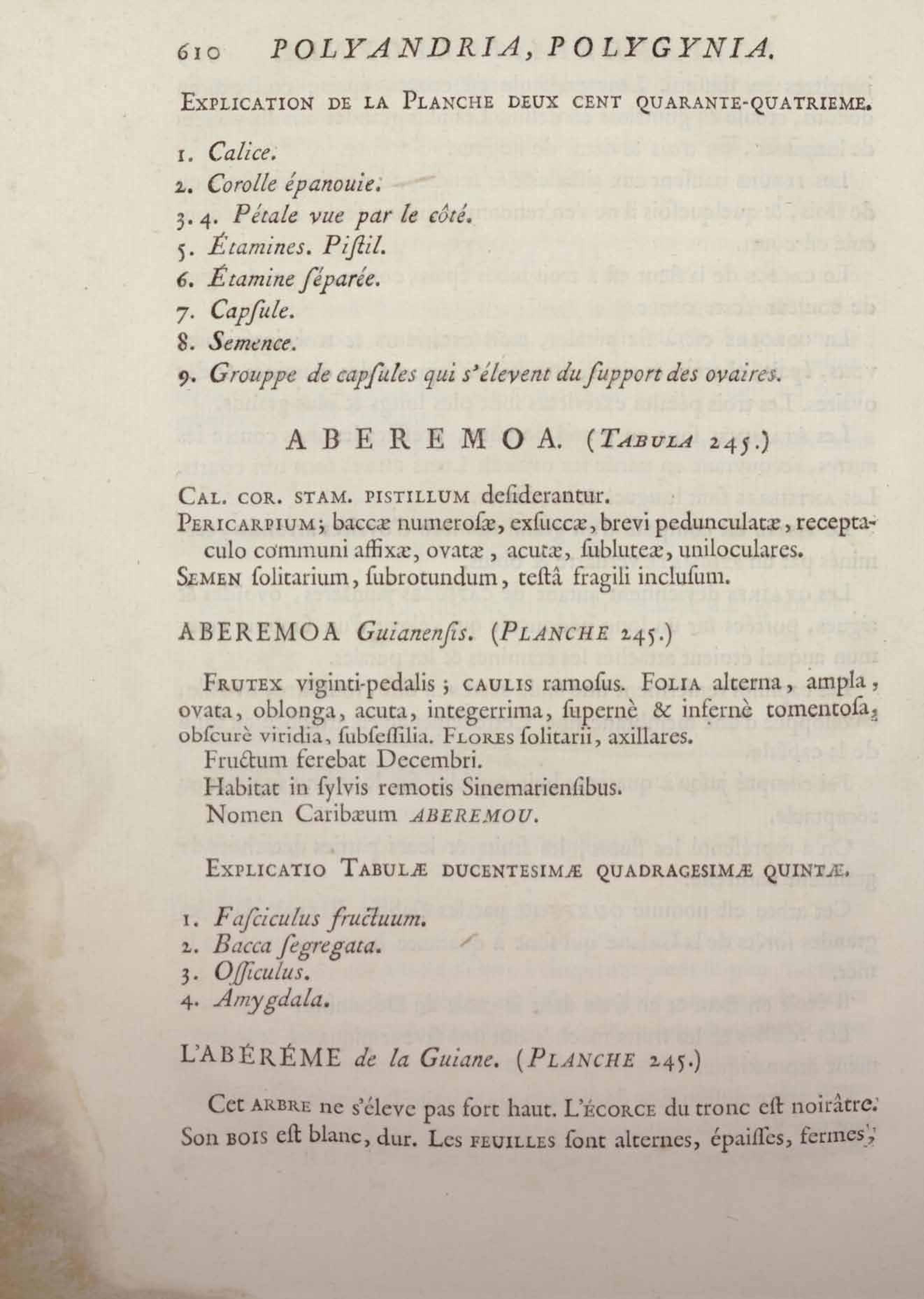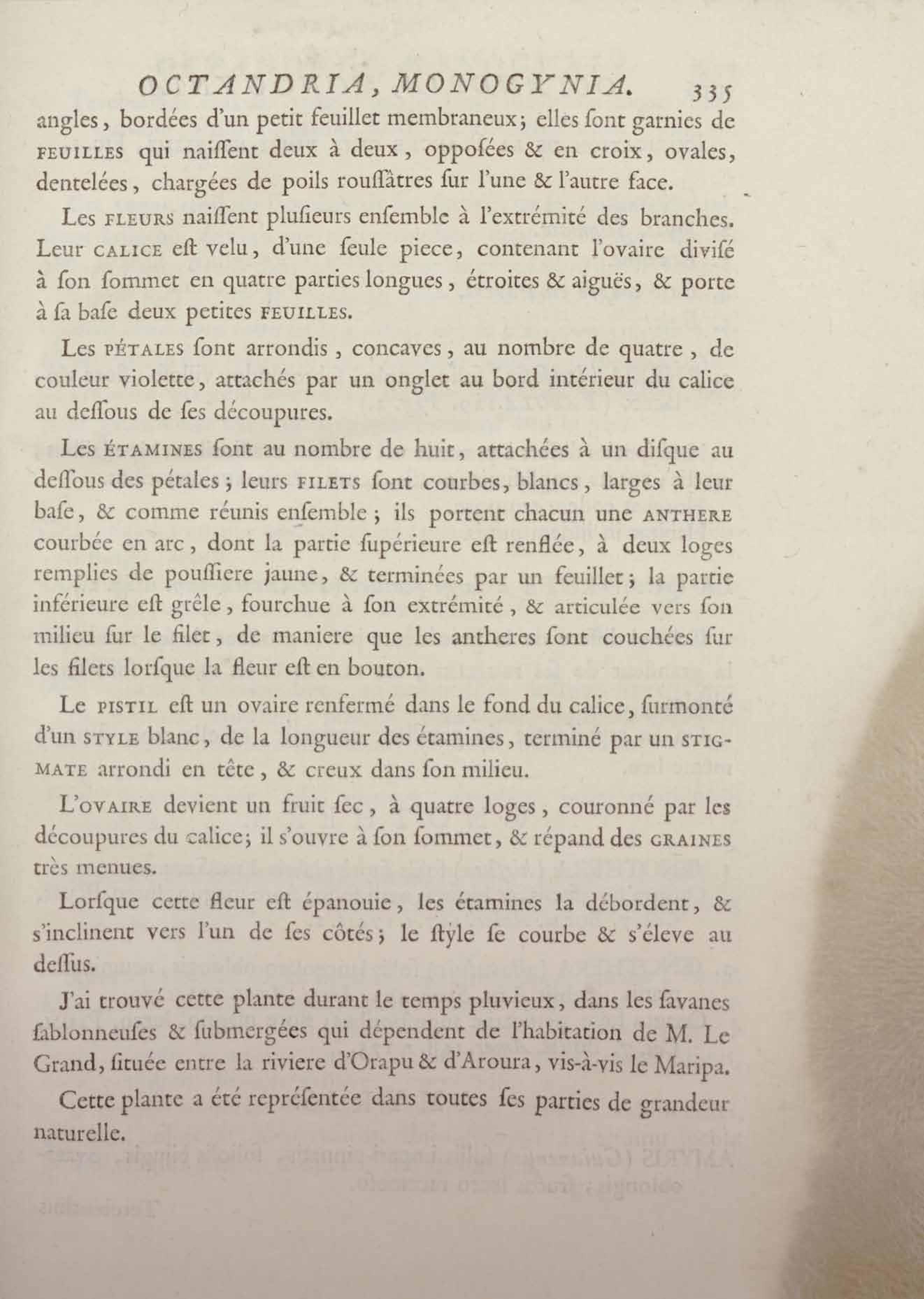 Histoire des plantes de la Guiane françoise, rangées suivant la méthode sexuelle : avec plusieurs mémoires sur différens objets intéressans, relatifs à la culture & au commerce de la Guiane françoise, & une notice des plantes de l'Isle-de-France : ouvrage orné de près de quatre cents planches en taille-douce, où sont représentées des plantes qui n'ont point encore été décrites ni gravées, ou qui ne l'ont été qu'imparfaitement. Tome premier