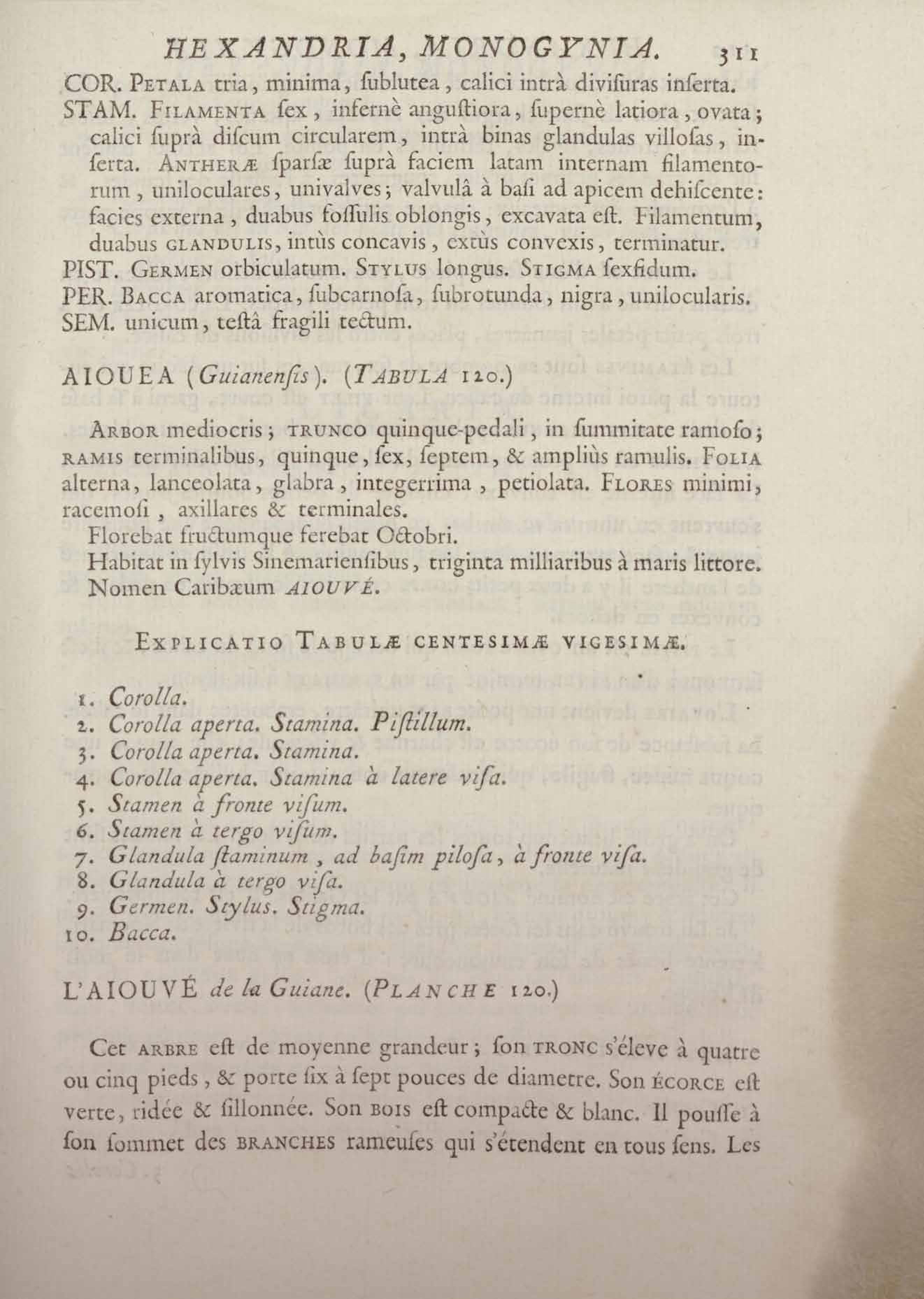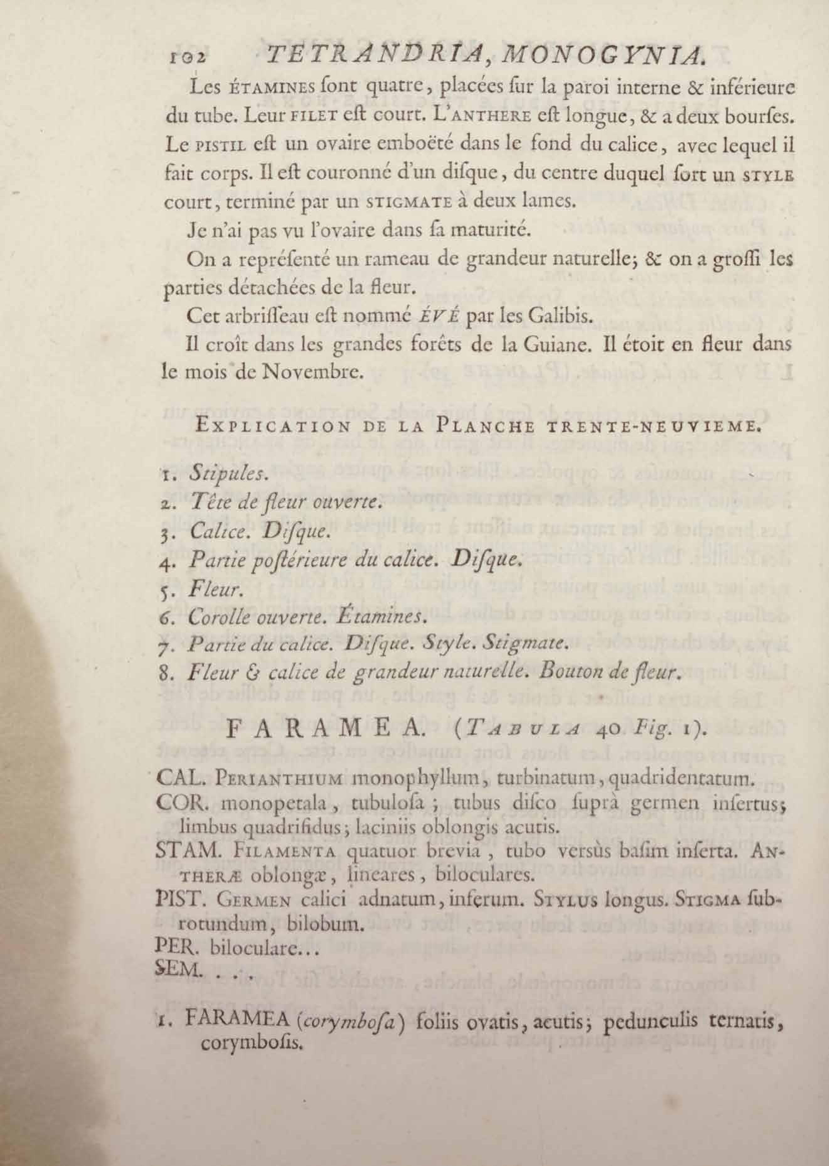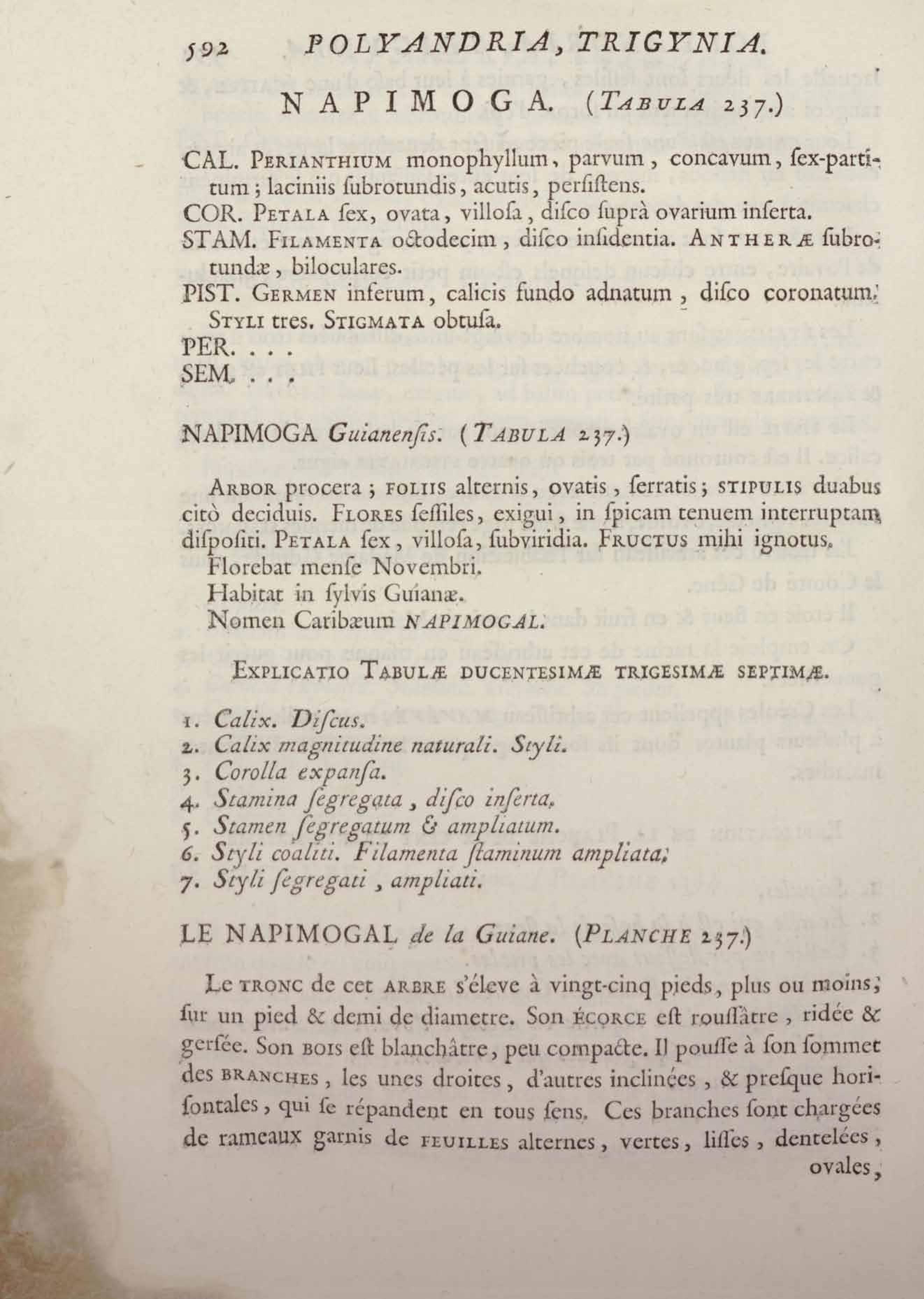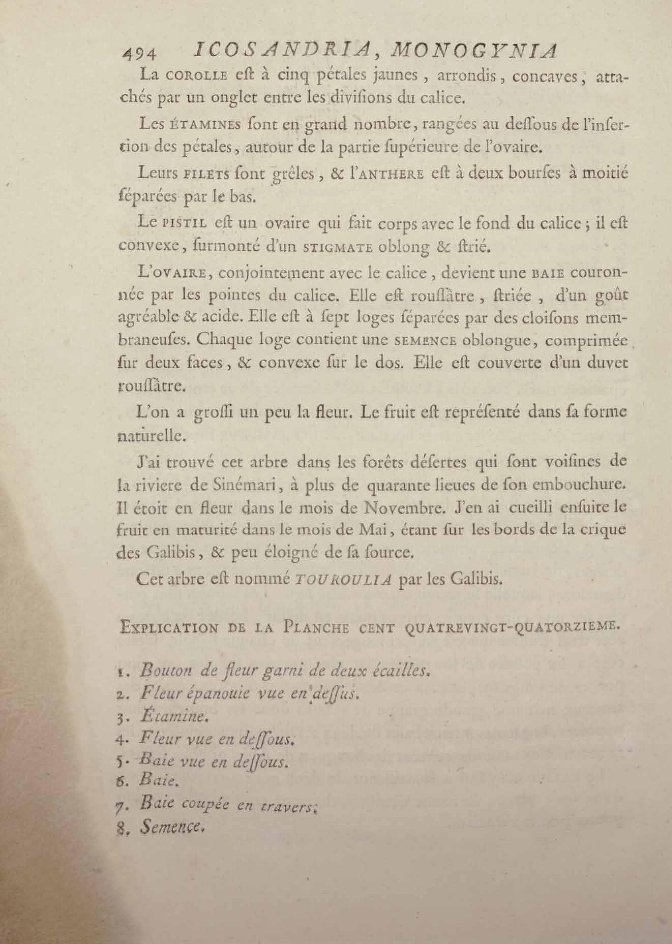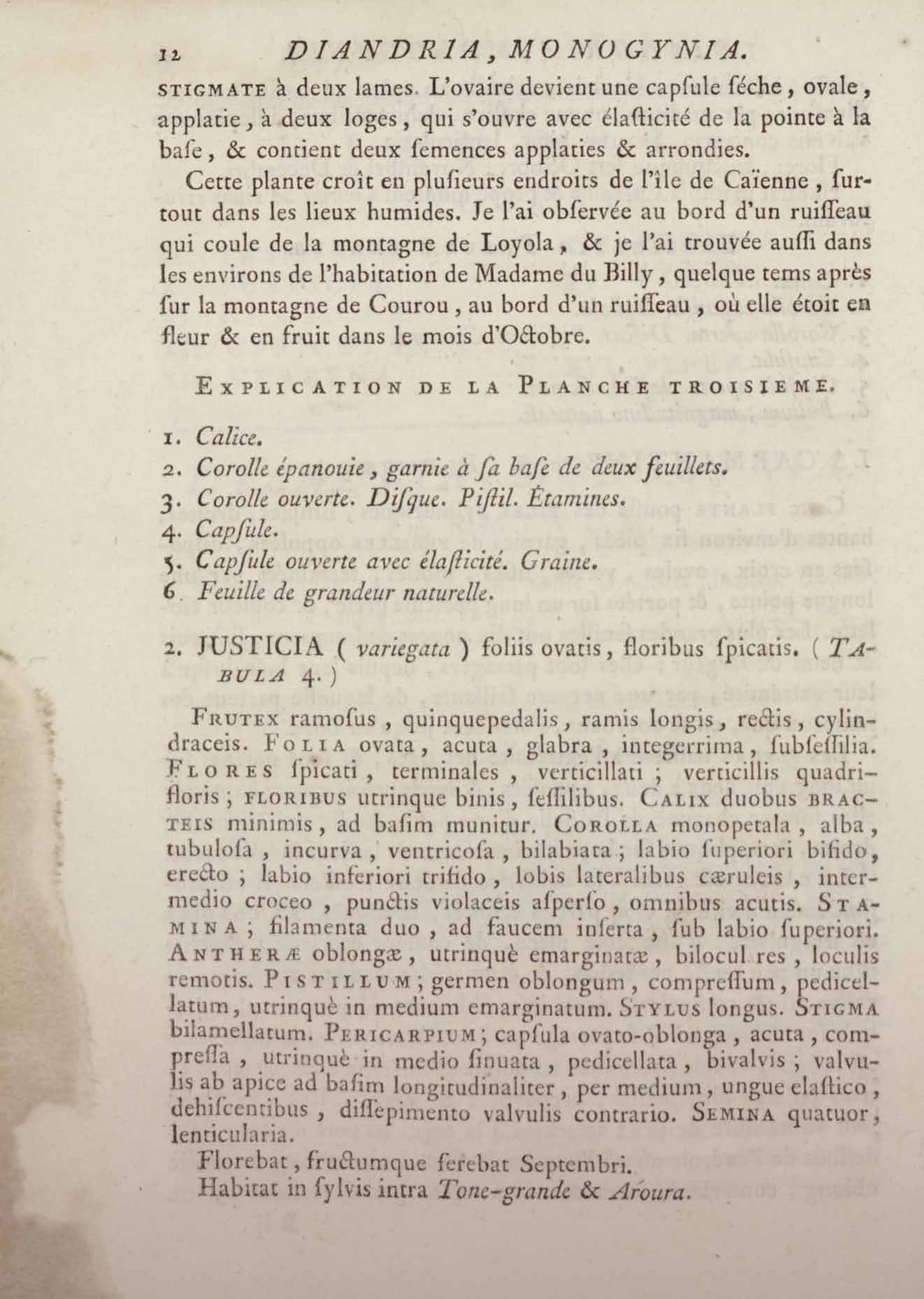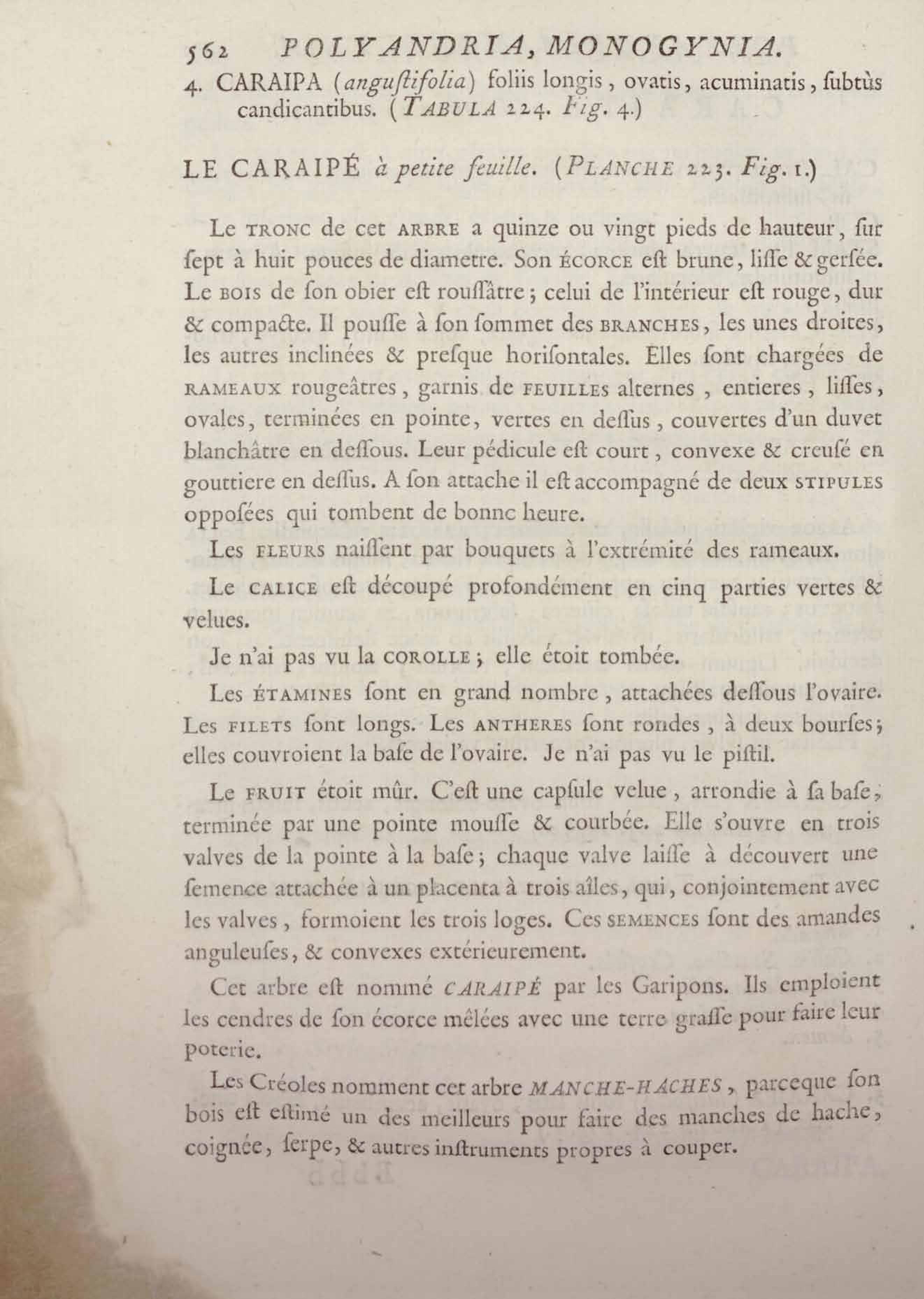 Histoire des plantes de la Guiane françoise, rangées suivant la méthode sexuelle : avec plusieurs mémoires sur différens objets intéressans, relatifs à la culture & au commerce de la Guiane françoise, & une notice des plantes de l'Isle-de-France : ouvrage orné de près de quatre cents planches en taille-douce, où sont représentées des plantes qui n'ont point encore été décrites ni gravées, ou qui ne l'ont été qu'imparfaitement. Tome premier