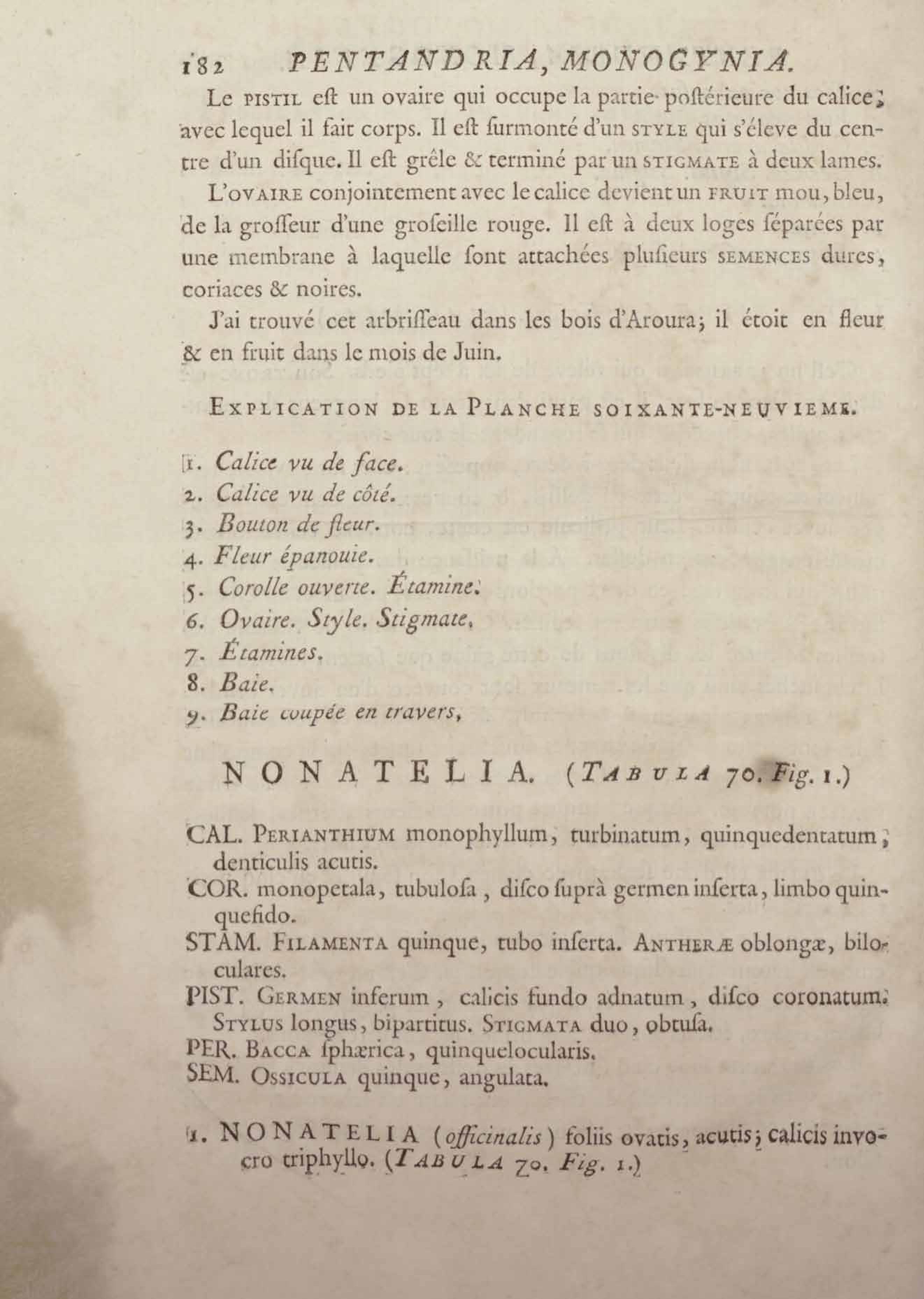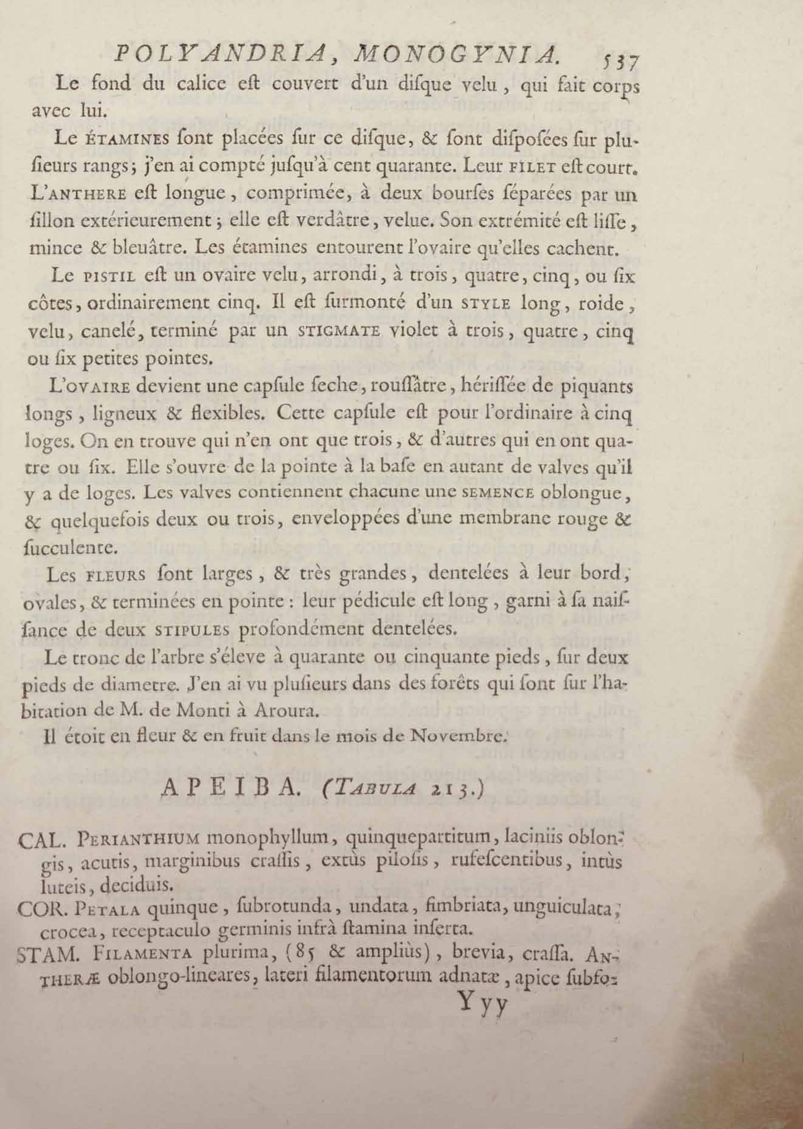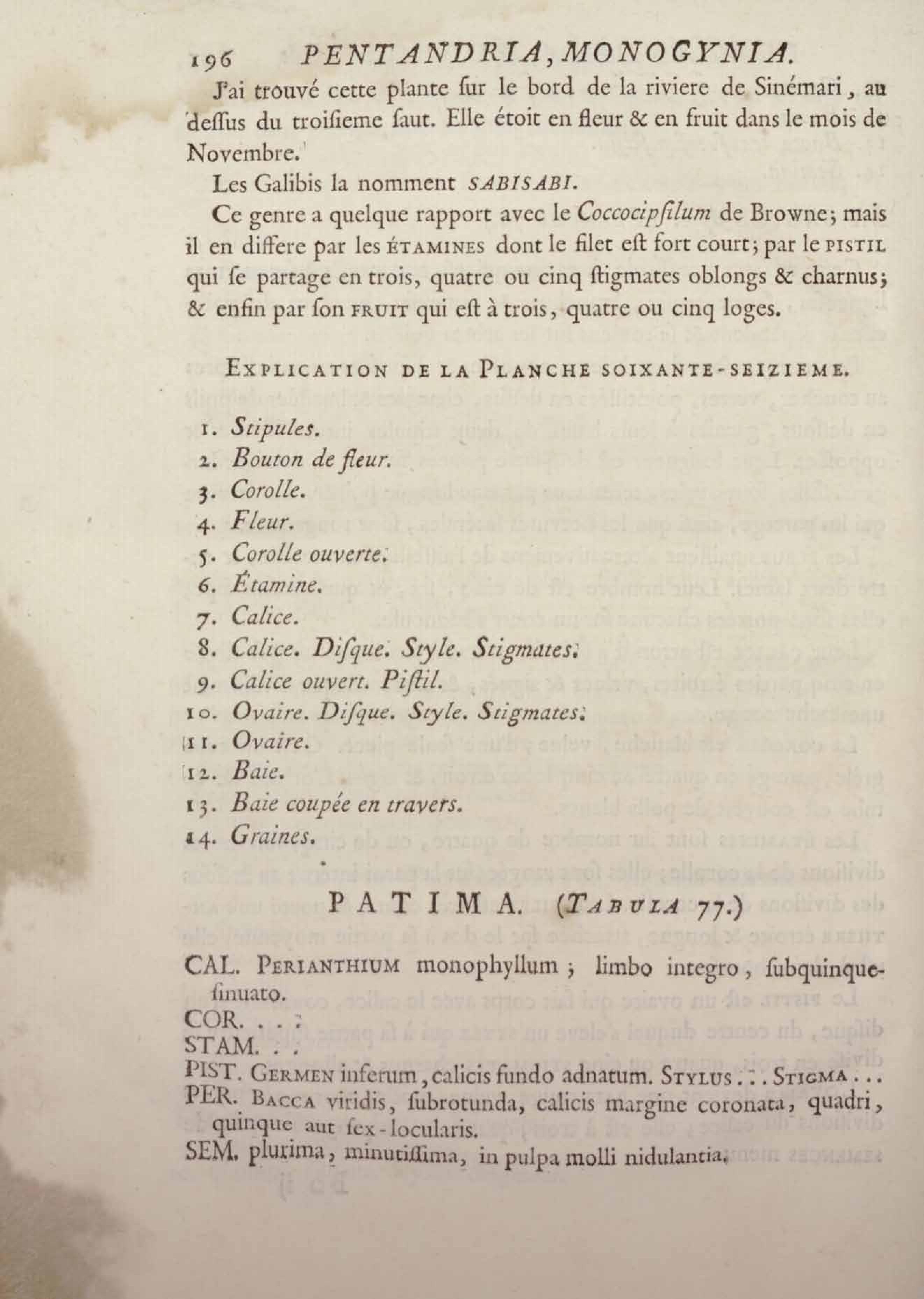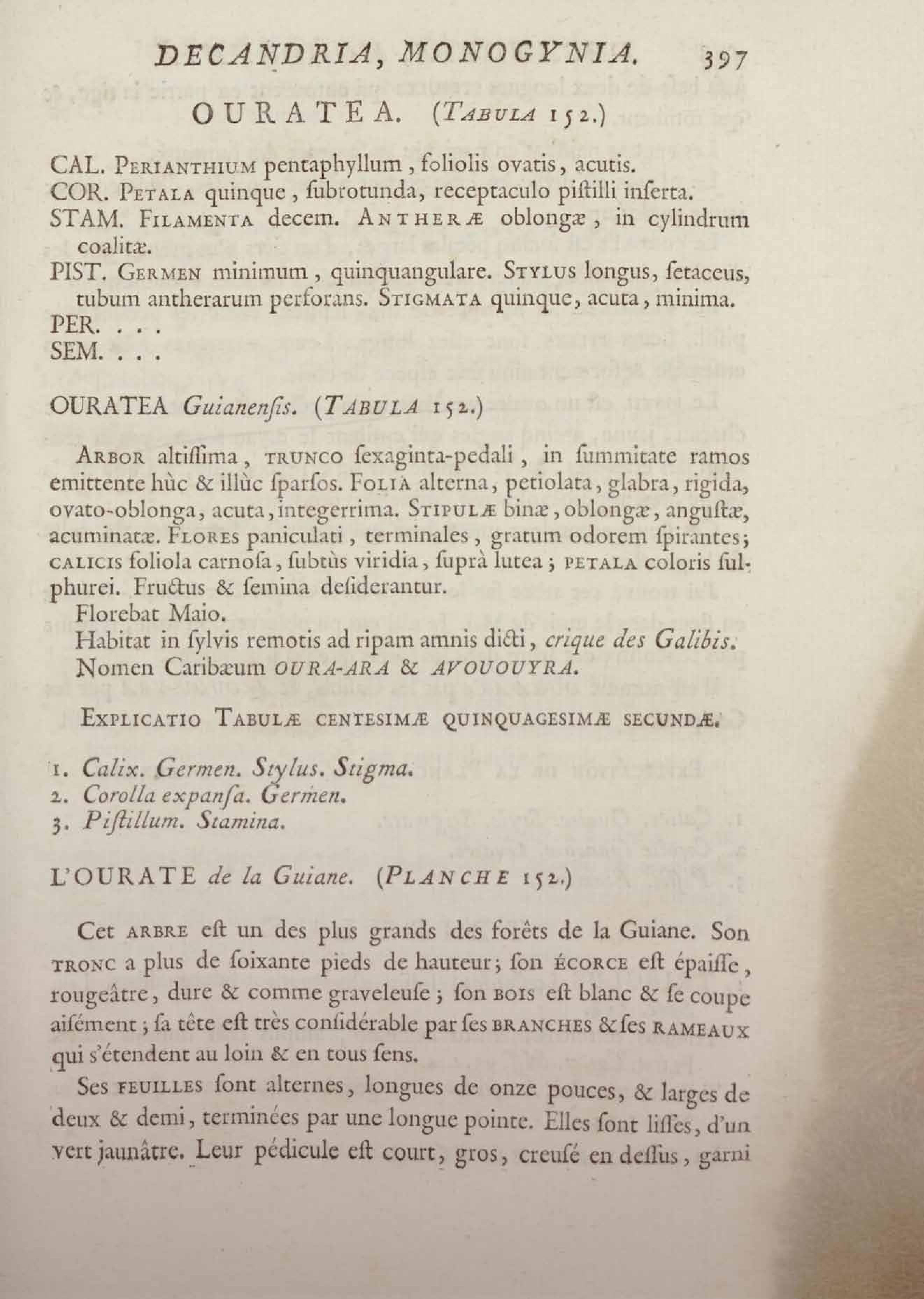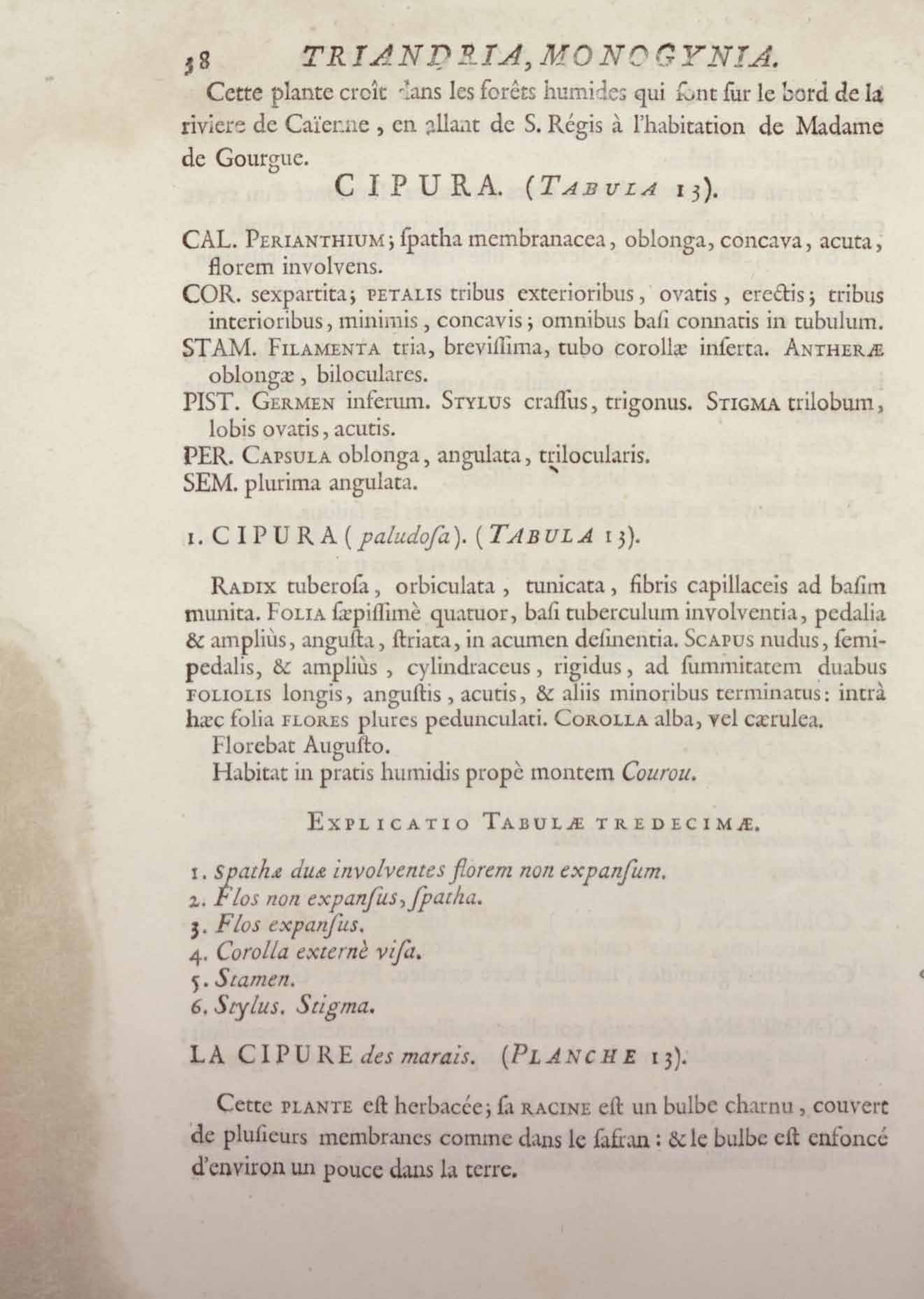 Histoire des plantes de la Guiane françoise, rangées suivant la méthode sexuelle : avec plusieurs mémoires sur différens objets intéressans, relatifs à la culture & au commerce de la Guiane françoise, & une notice des plantes de l'Isle-de-France : ouvrage orné de près de quatre cents planches en taille-douce, où sont représentées des plantes qui n'ont point encore été décrites ni gravées, ou qui ne l'ont été qu'imparfaitement. Tome premier