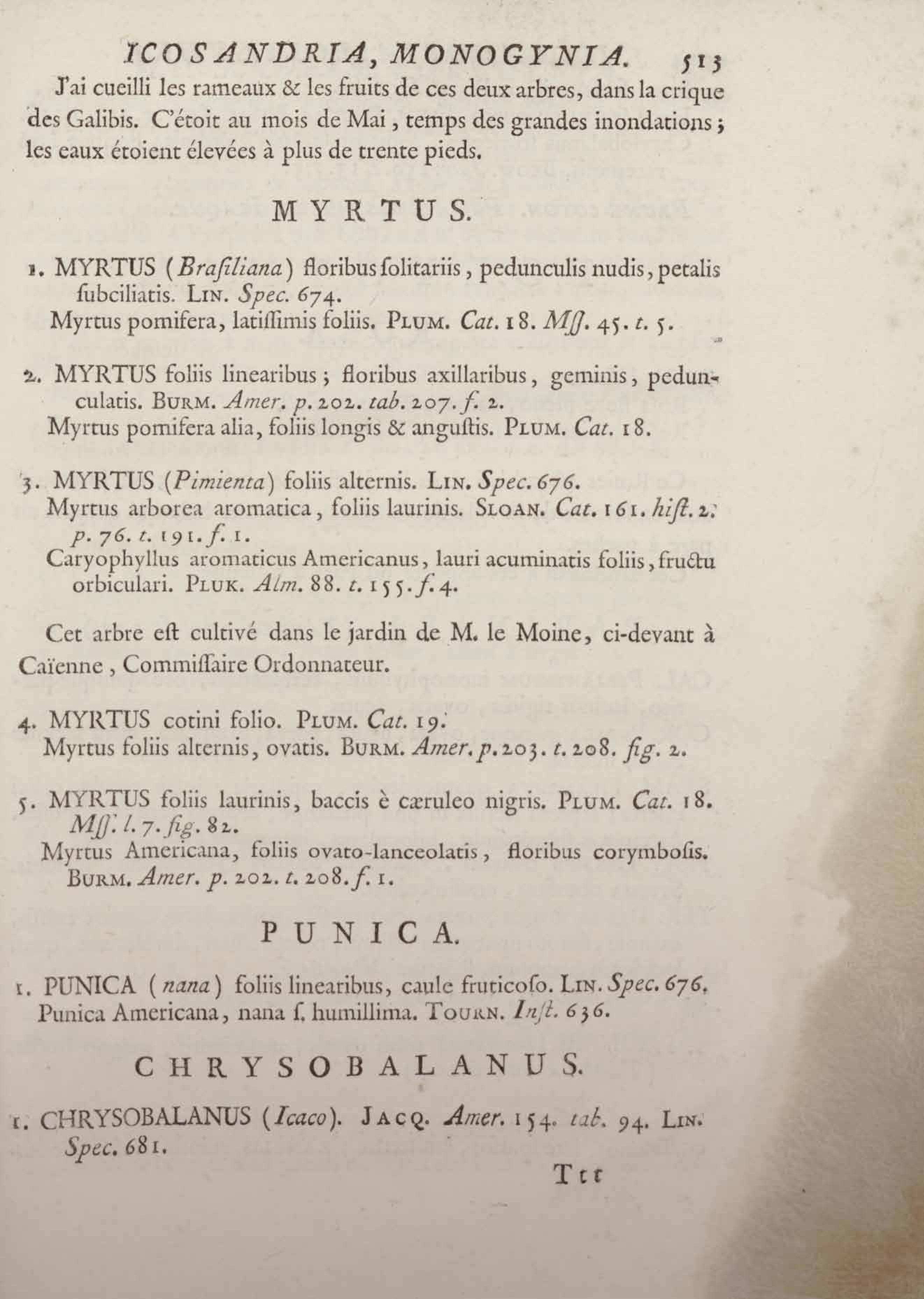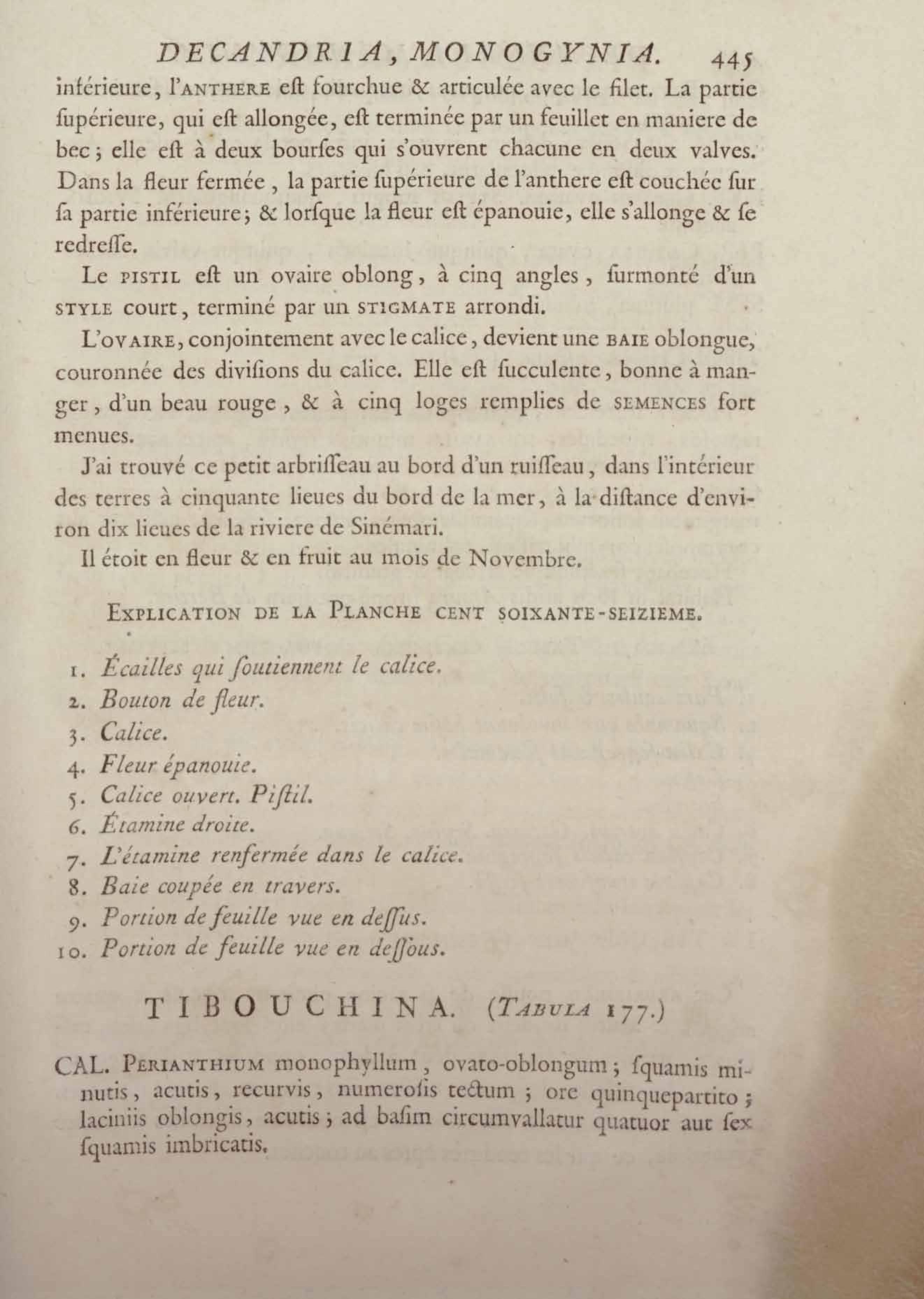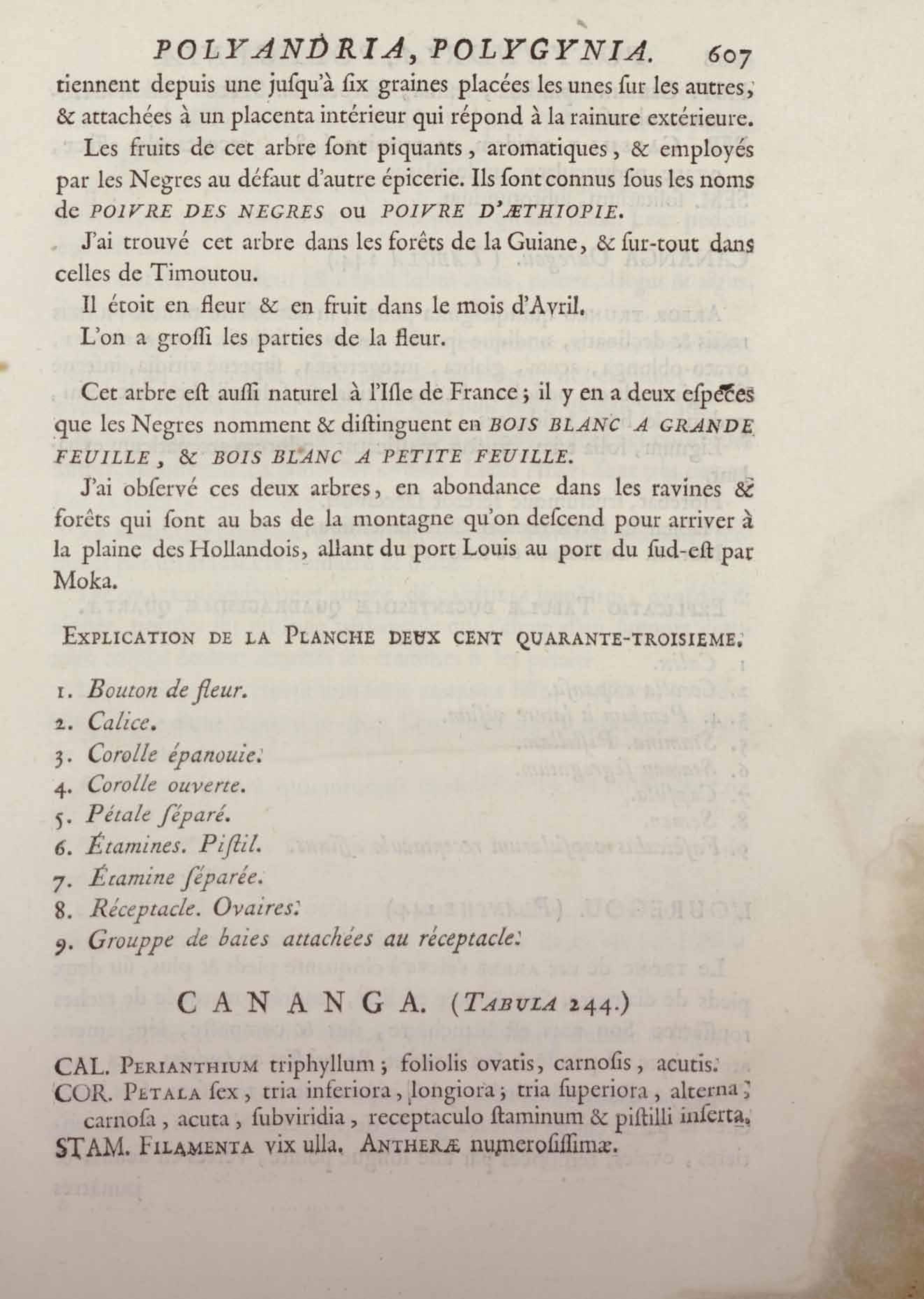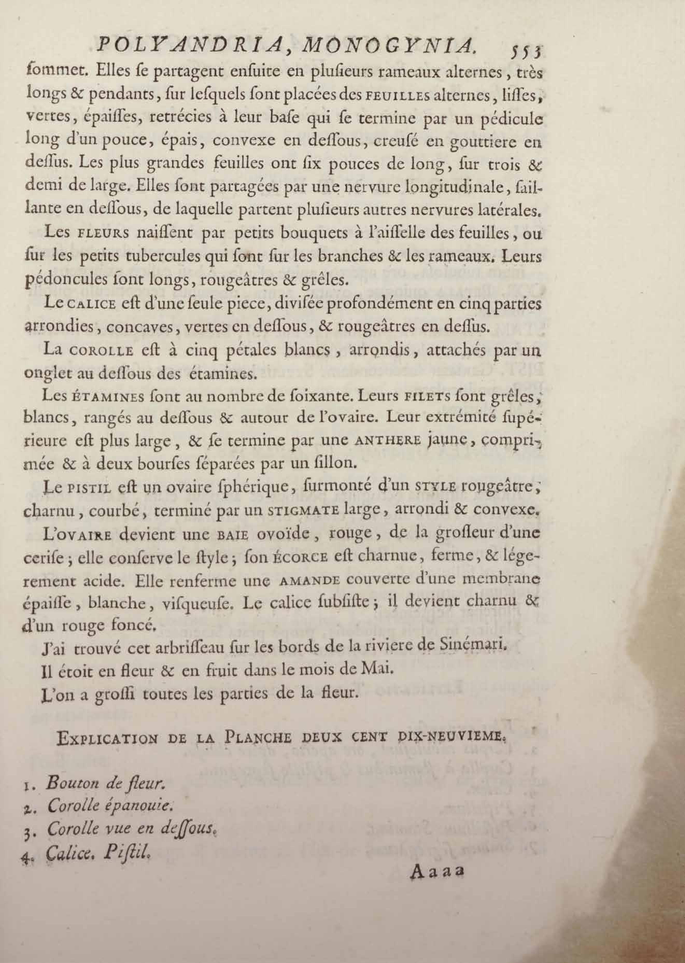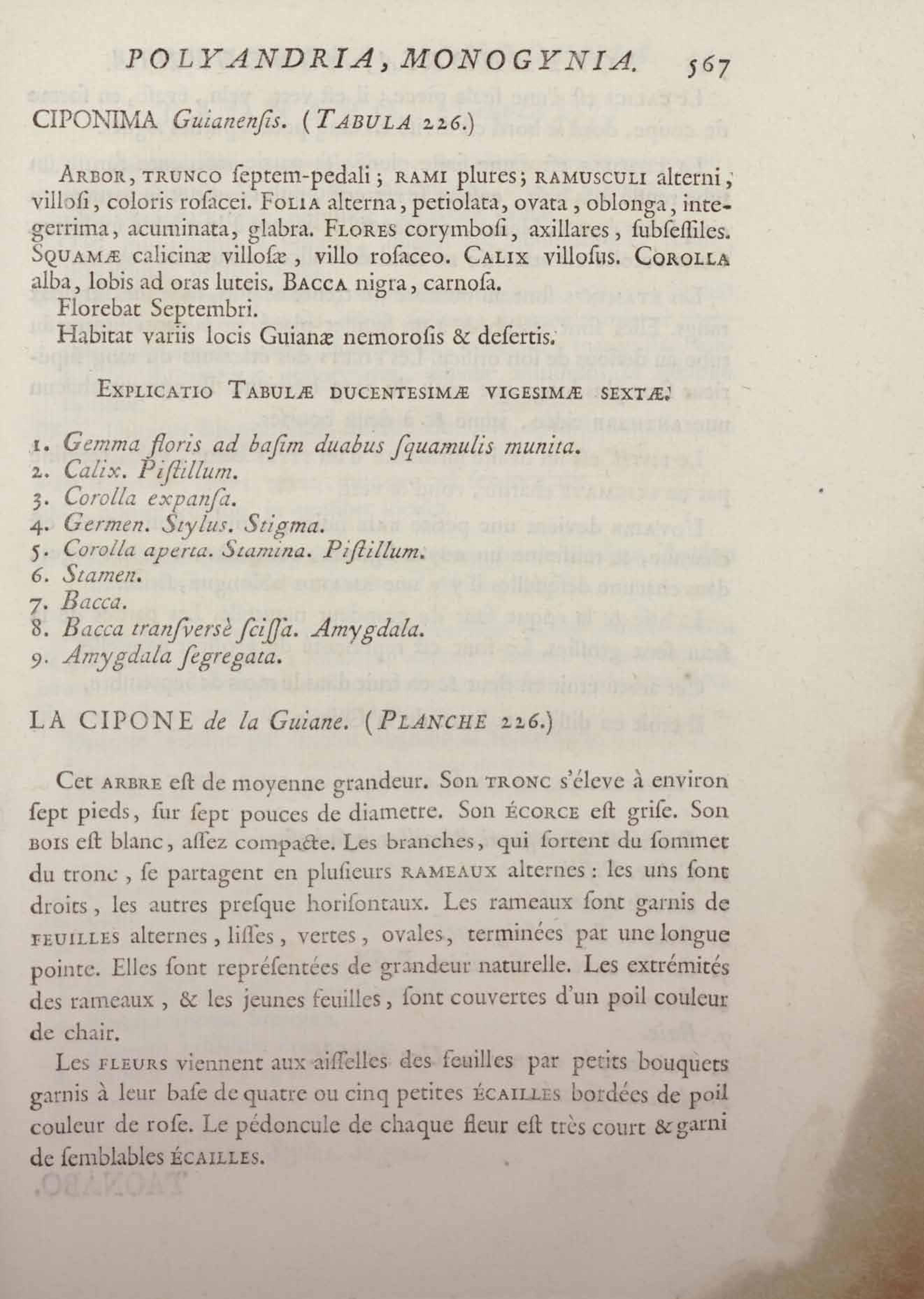 Histoire des plantes de la Guiane françoise, rangées suivant la méthode sexuelle : avec plusieurs mémoires sur différens objets intéressans, relatifs à la culture & au commerce de la Guiane françoise, & une notice des plantes de l'Isle-de-France : ouvrage orné de près de quatre cents planches en taille-douce, où sont représentées des plantes qui n'ont point encore été décrites ni gravées, ou qui ne l'ont été qu'imparfaitement. Tome premier